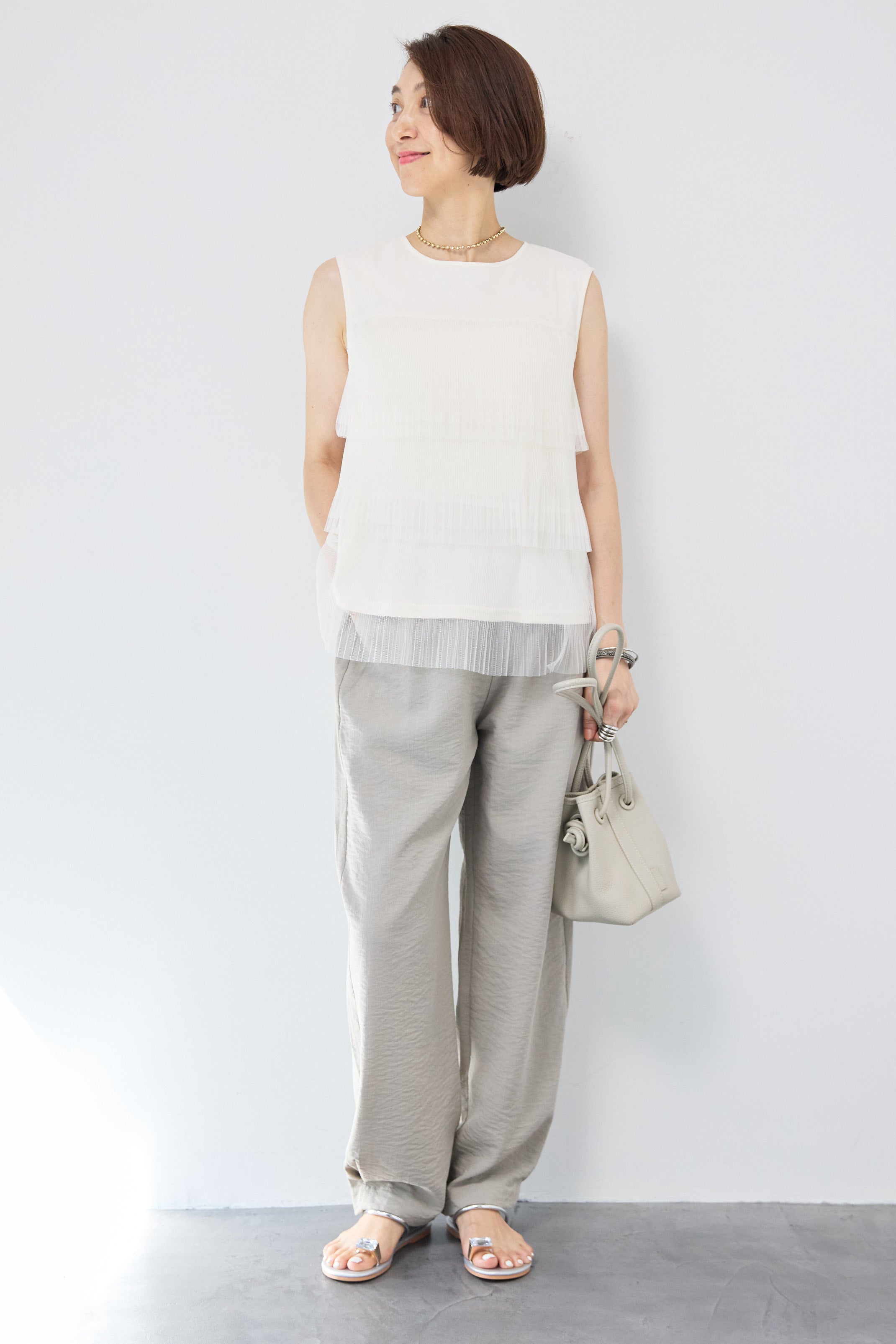 ティアードチュールノースリーブブラウス