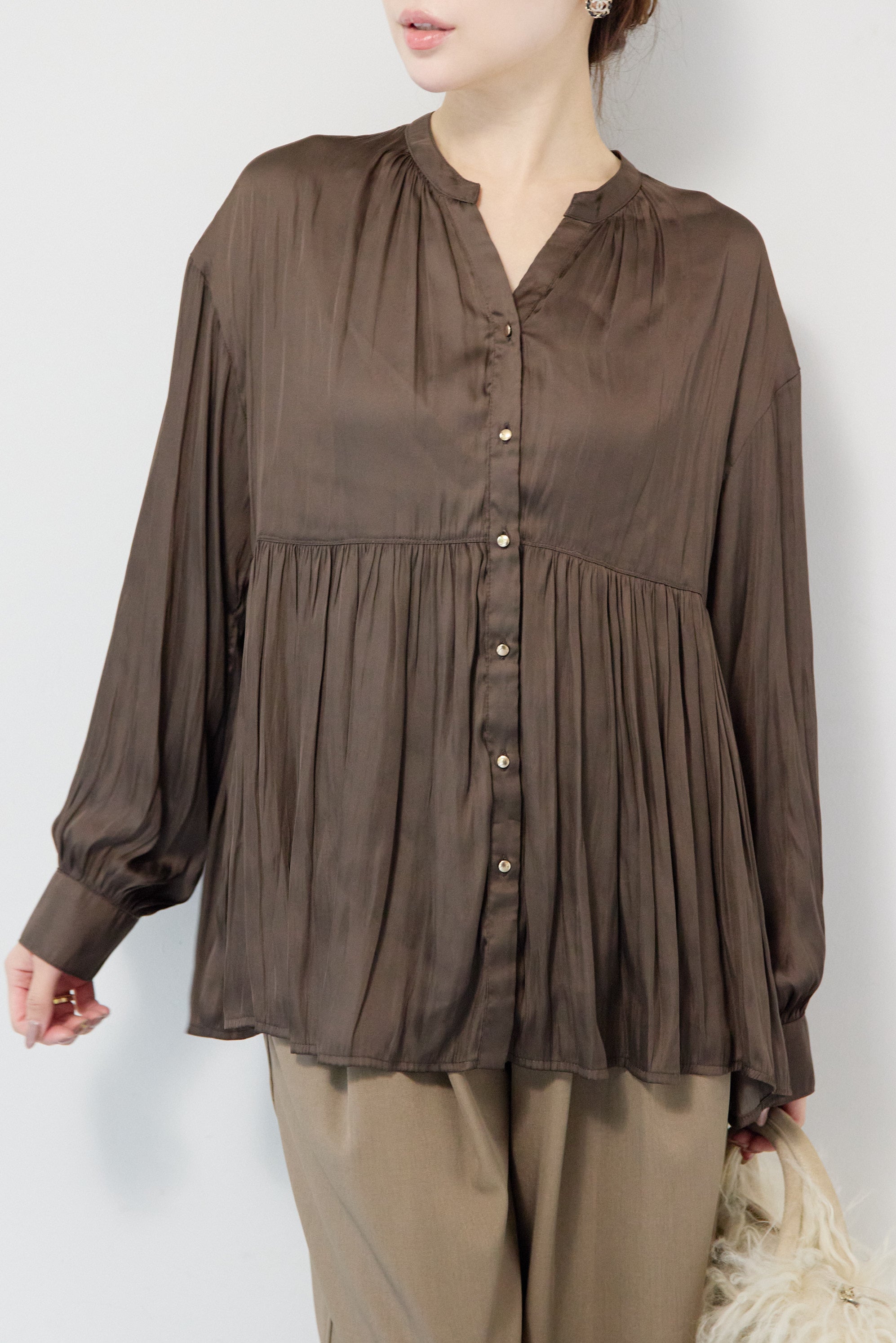 サテンギャザーブラウス