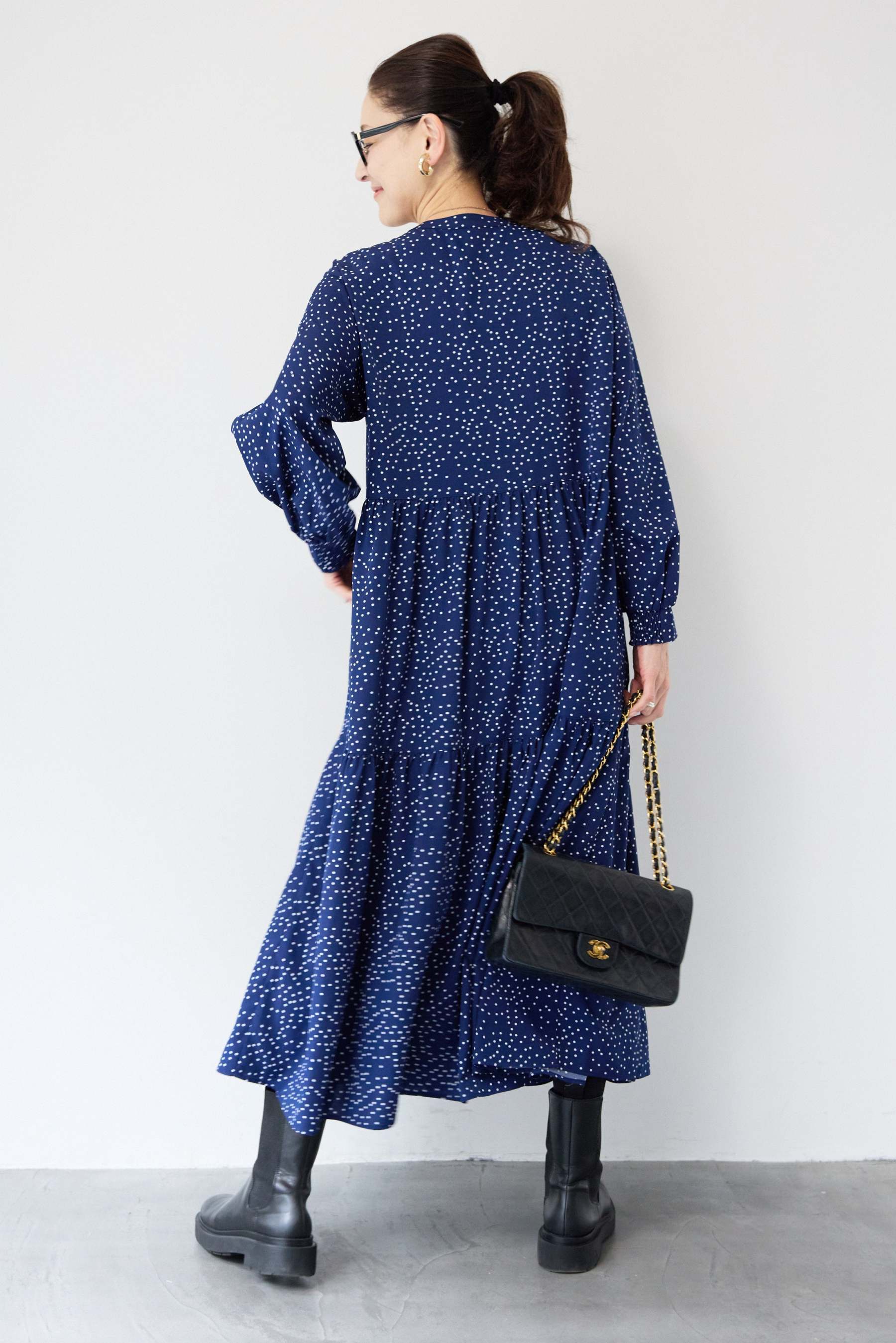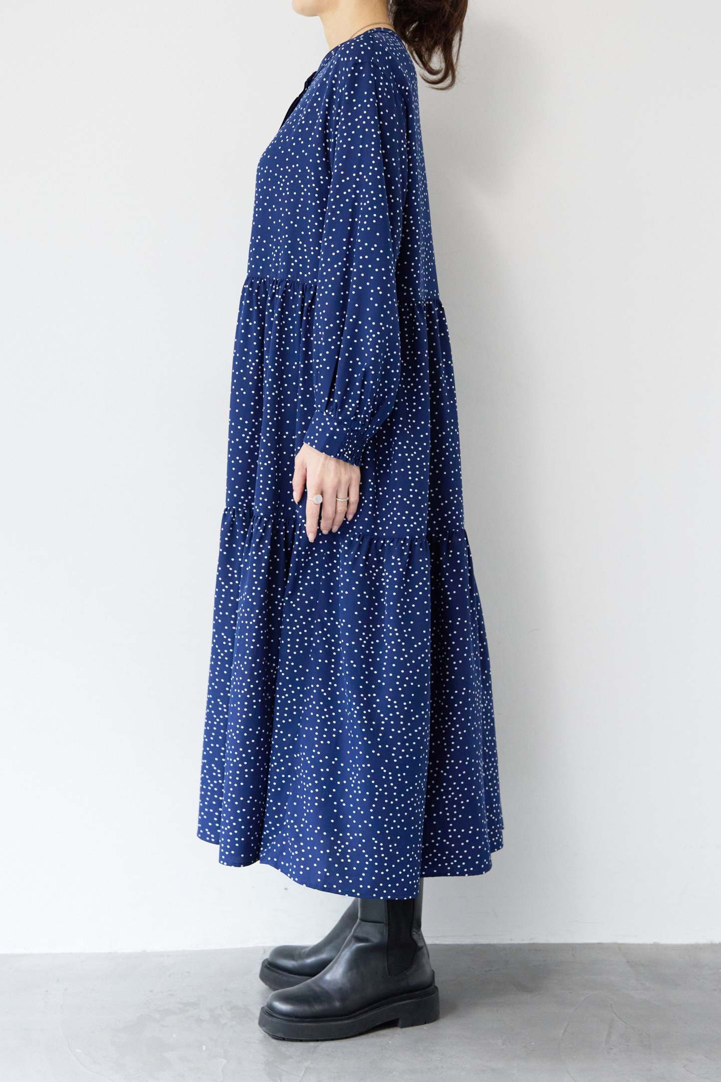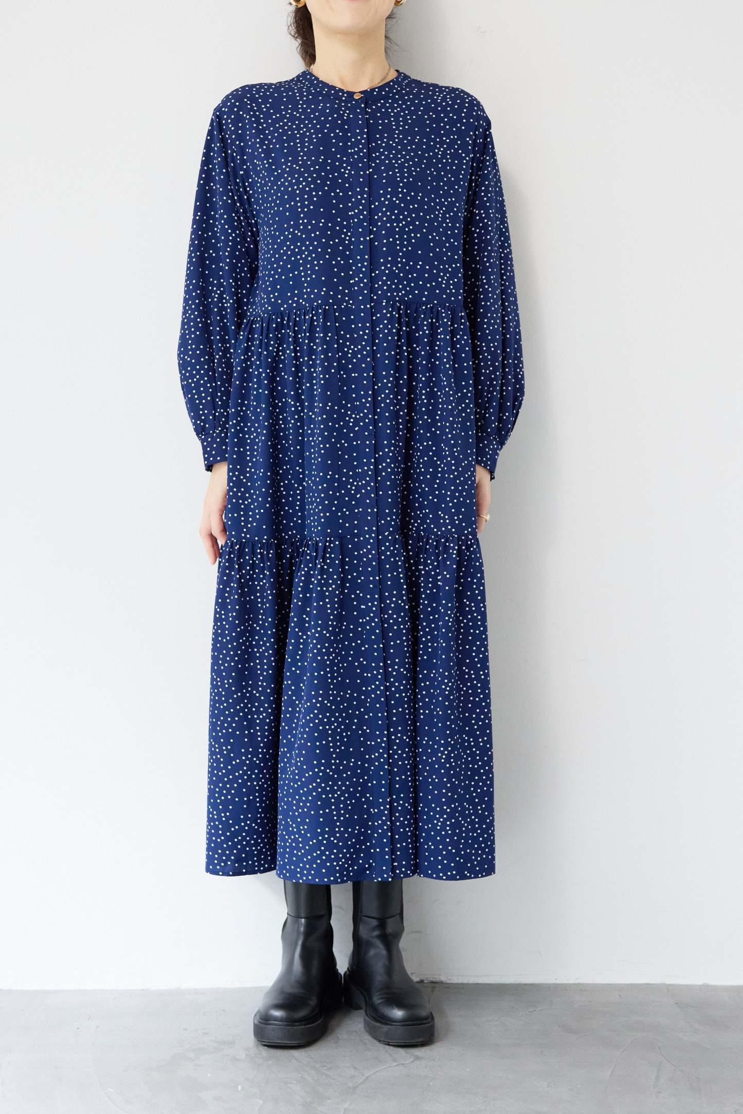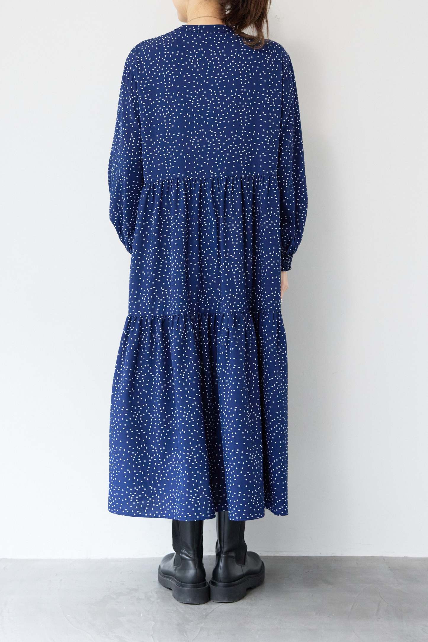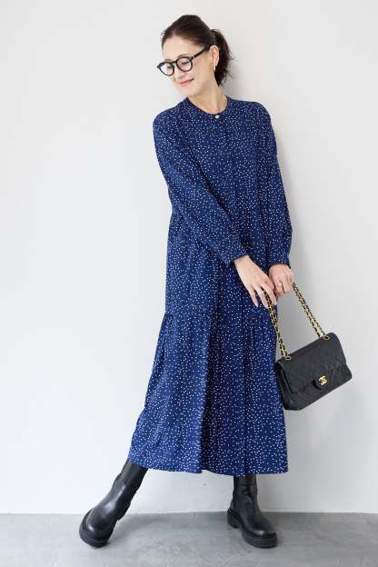 ドット柄ティアードワンピース