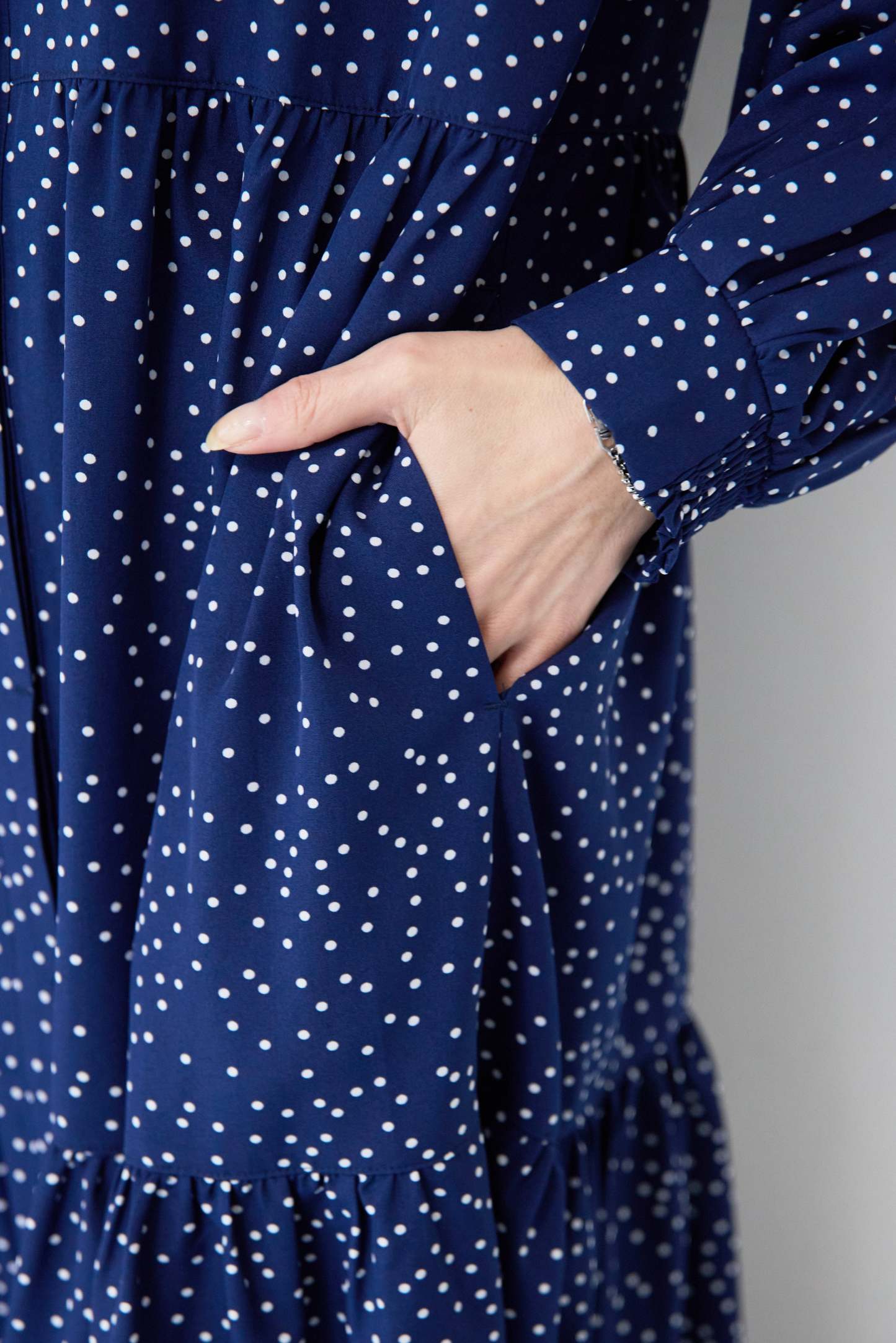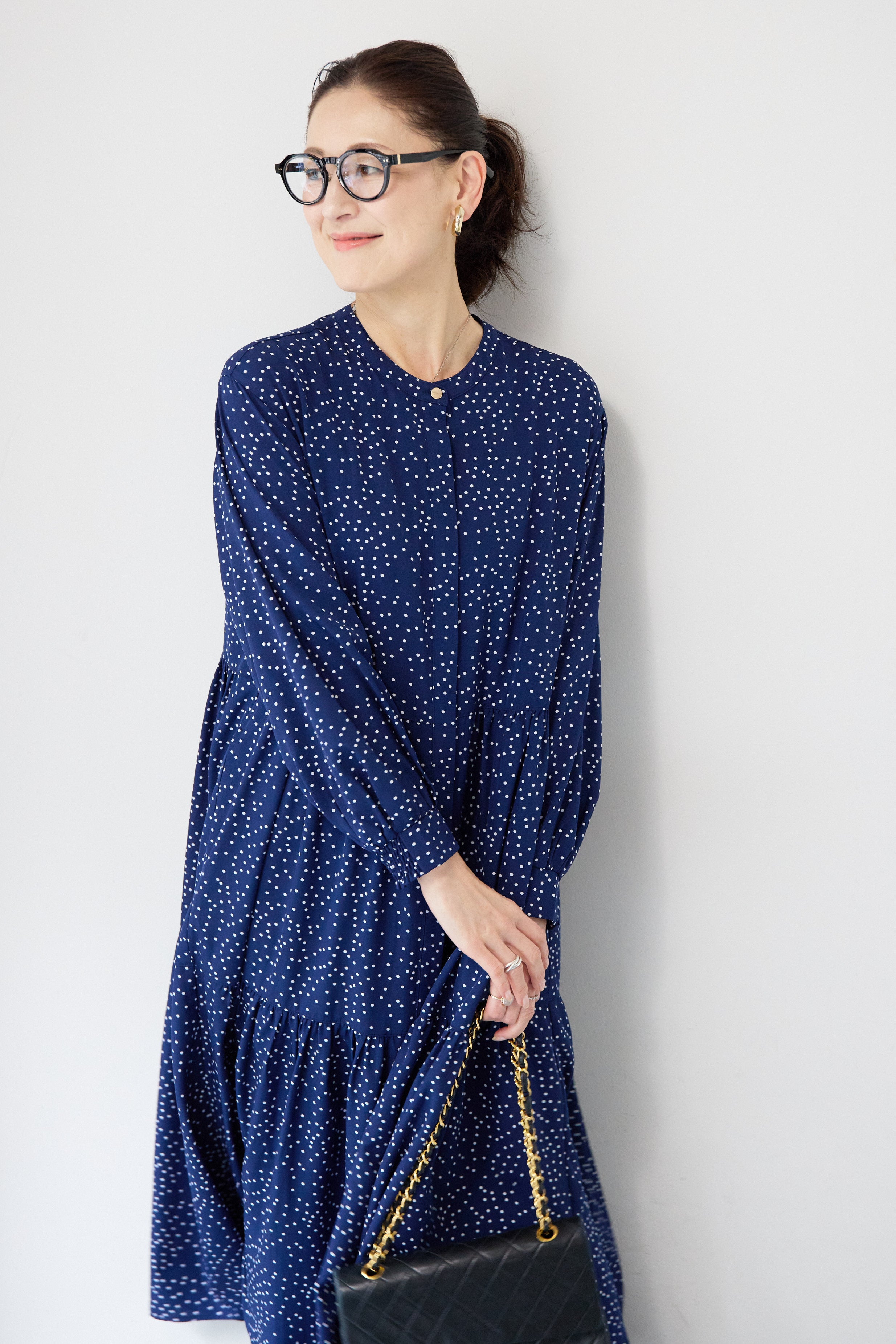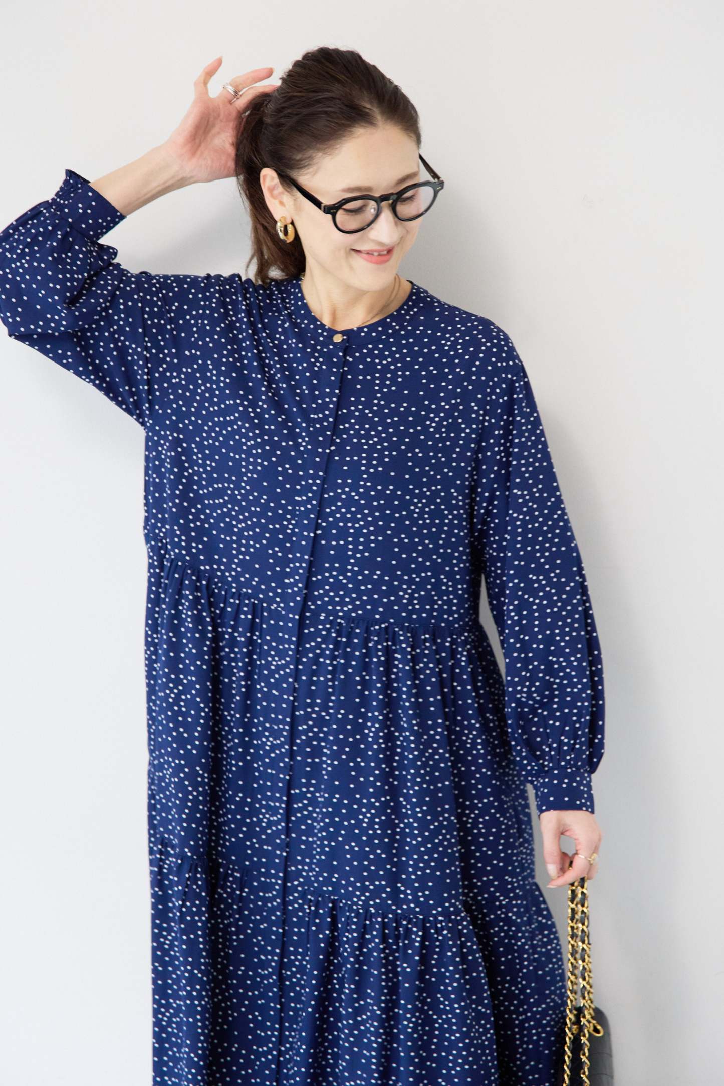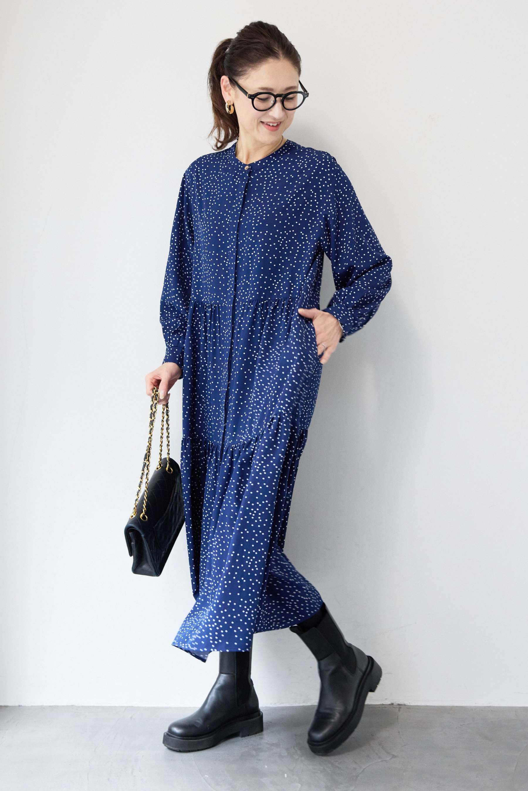 ドット柄ティアードワンピース
