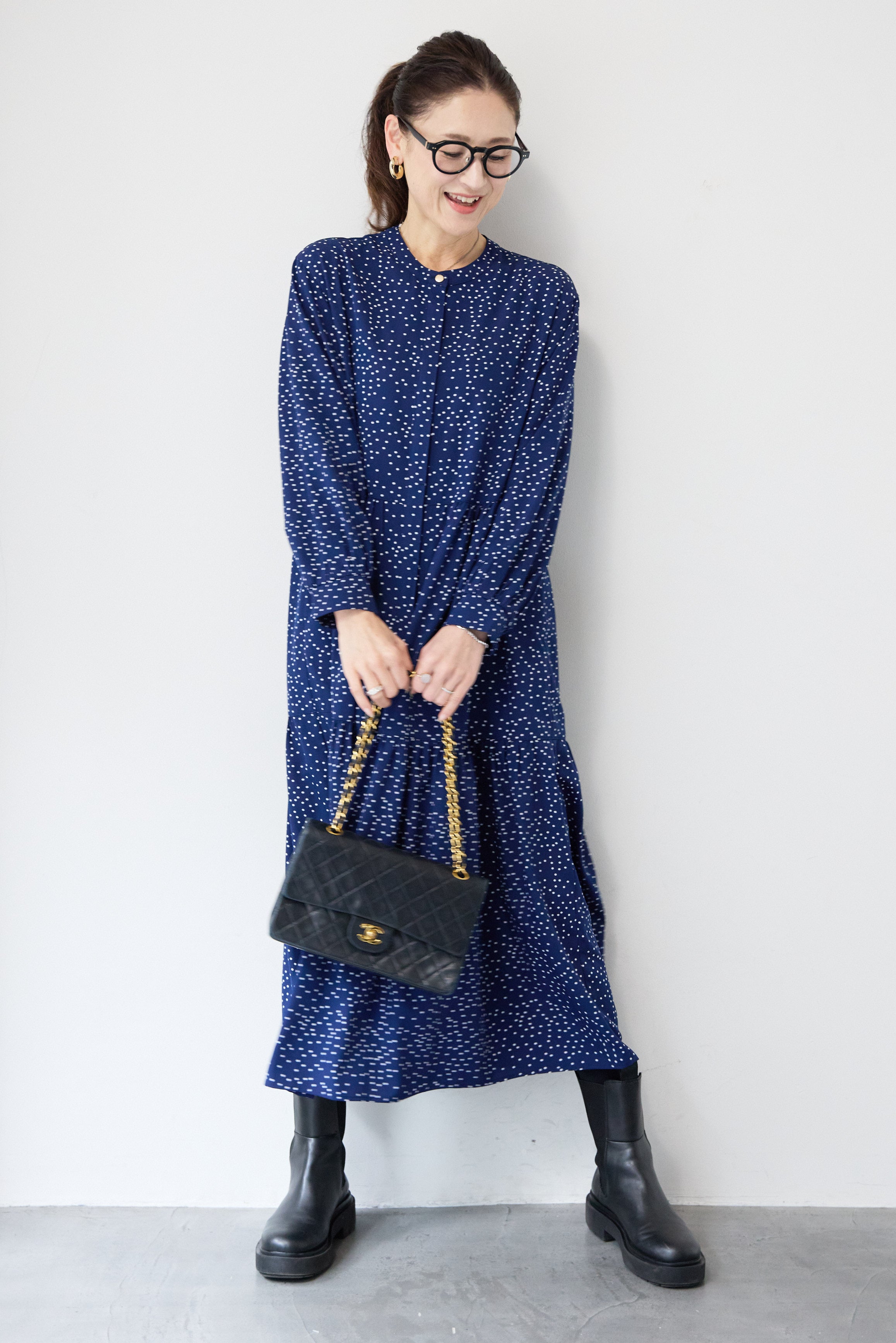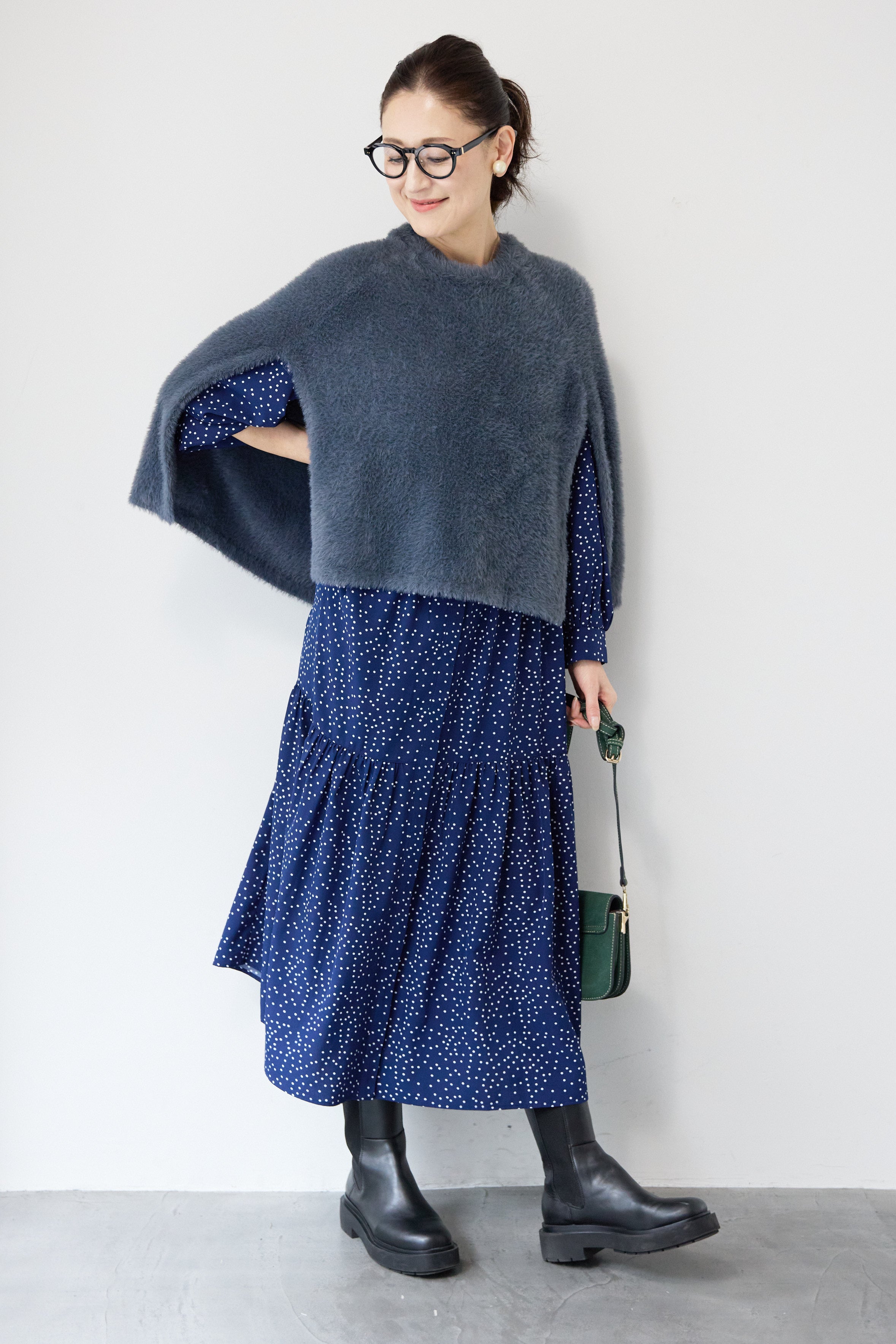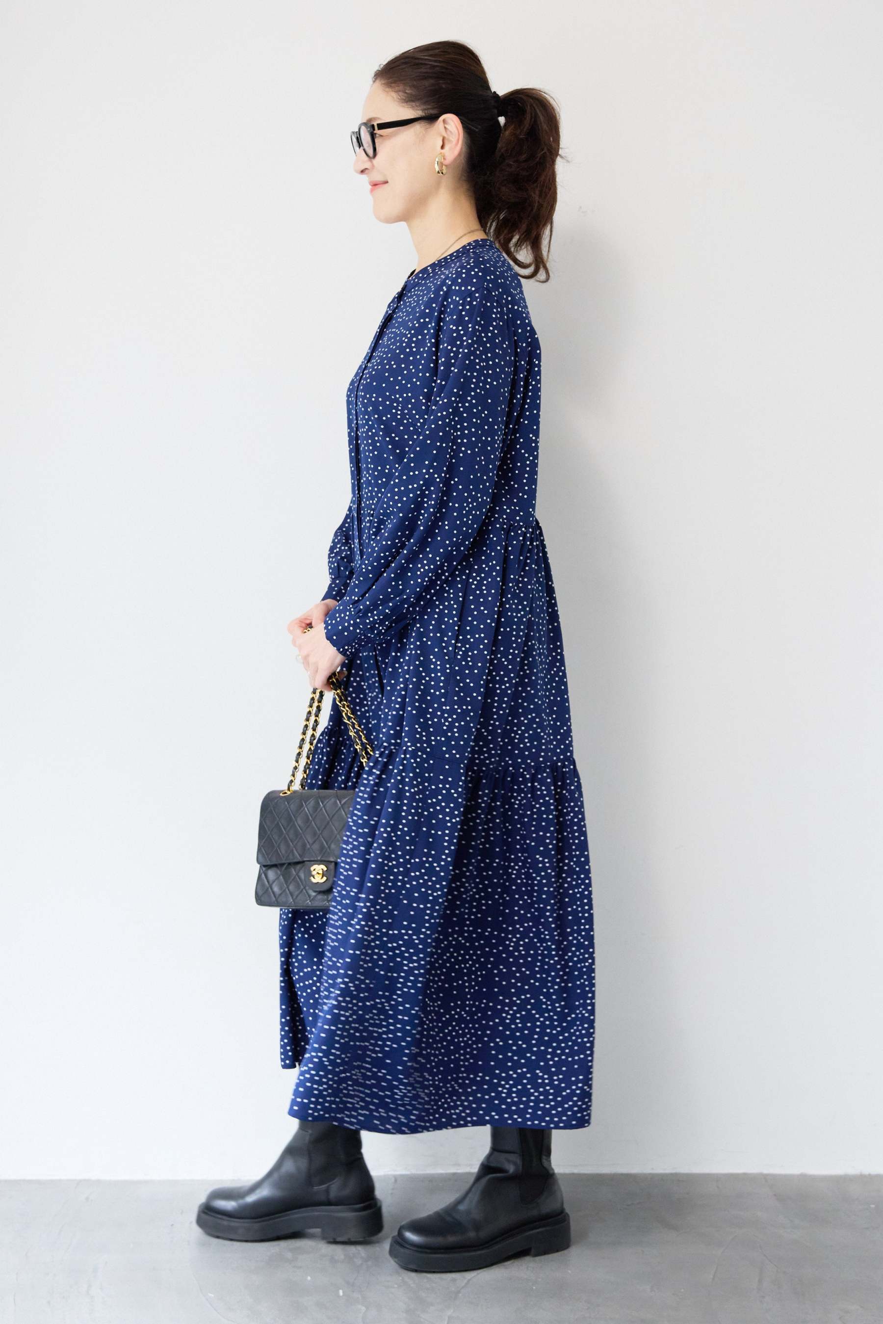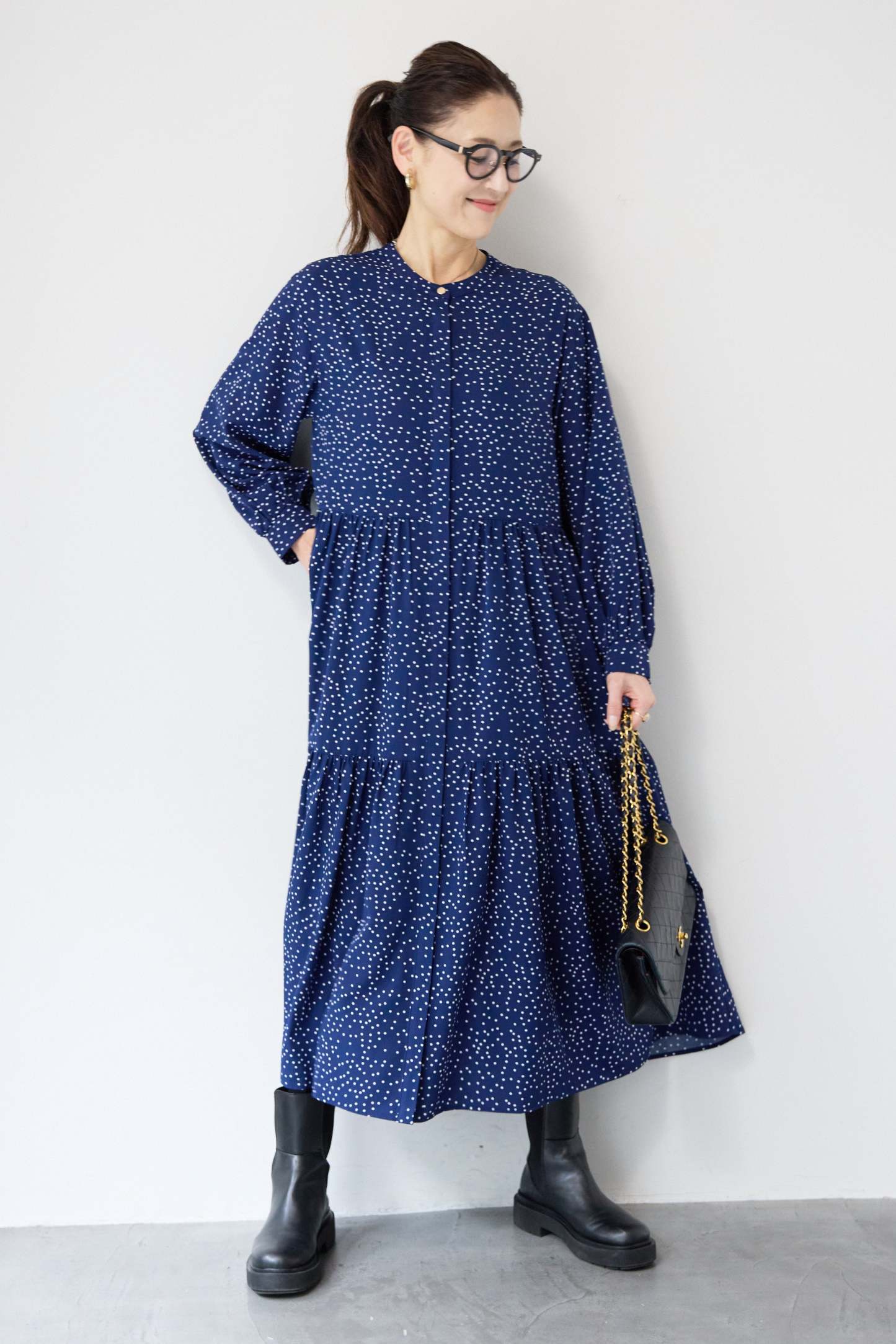 ドット柄ティアードワンピース