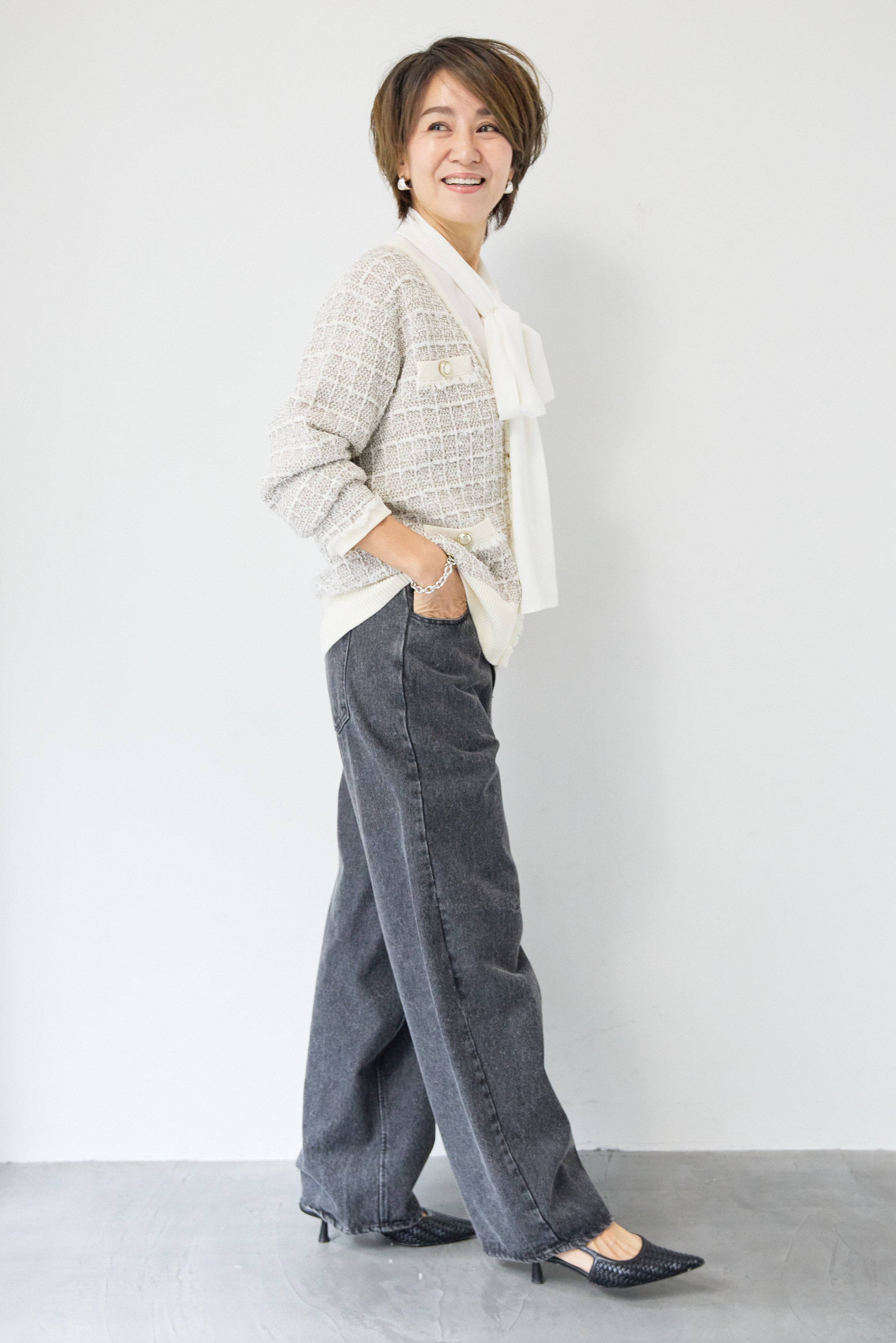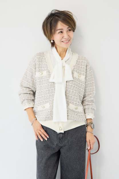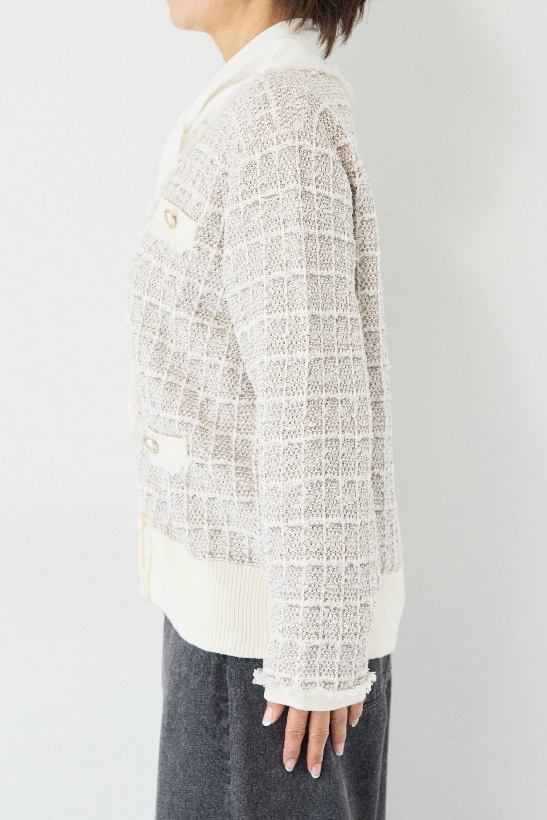 ツイードジャガードニットカーディガン