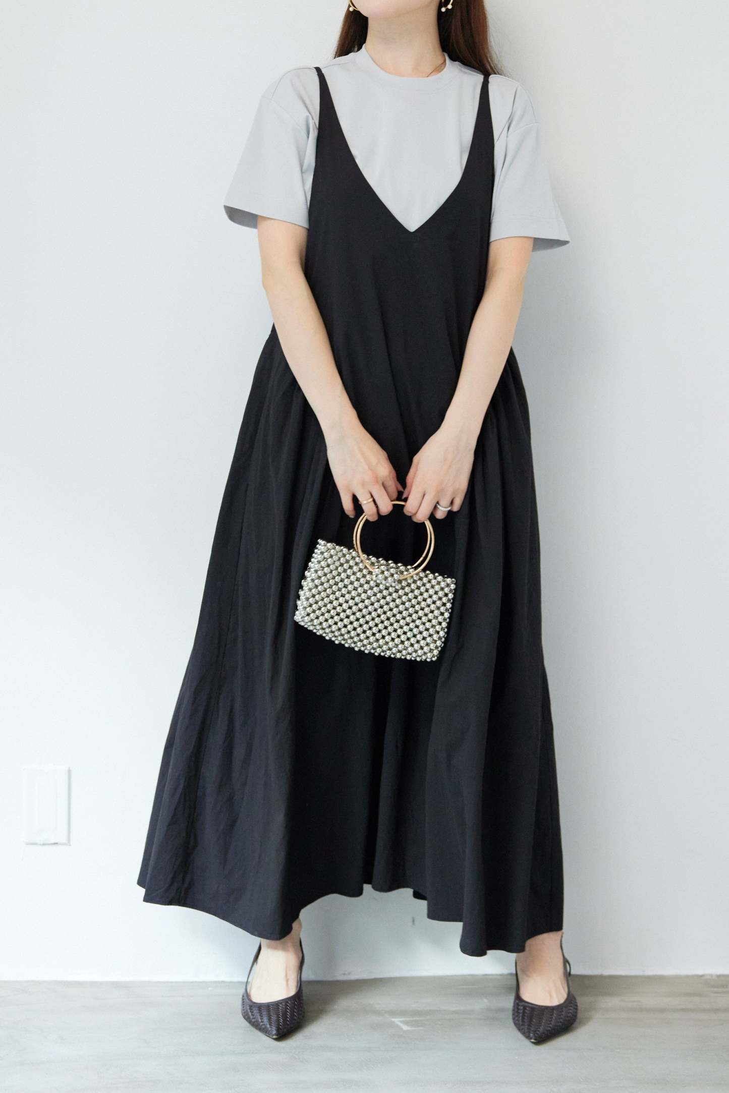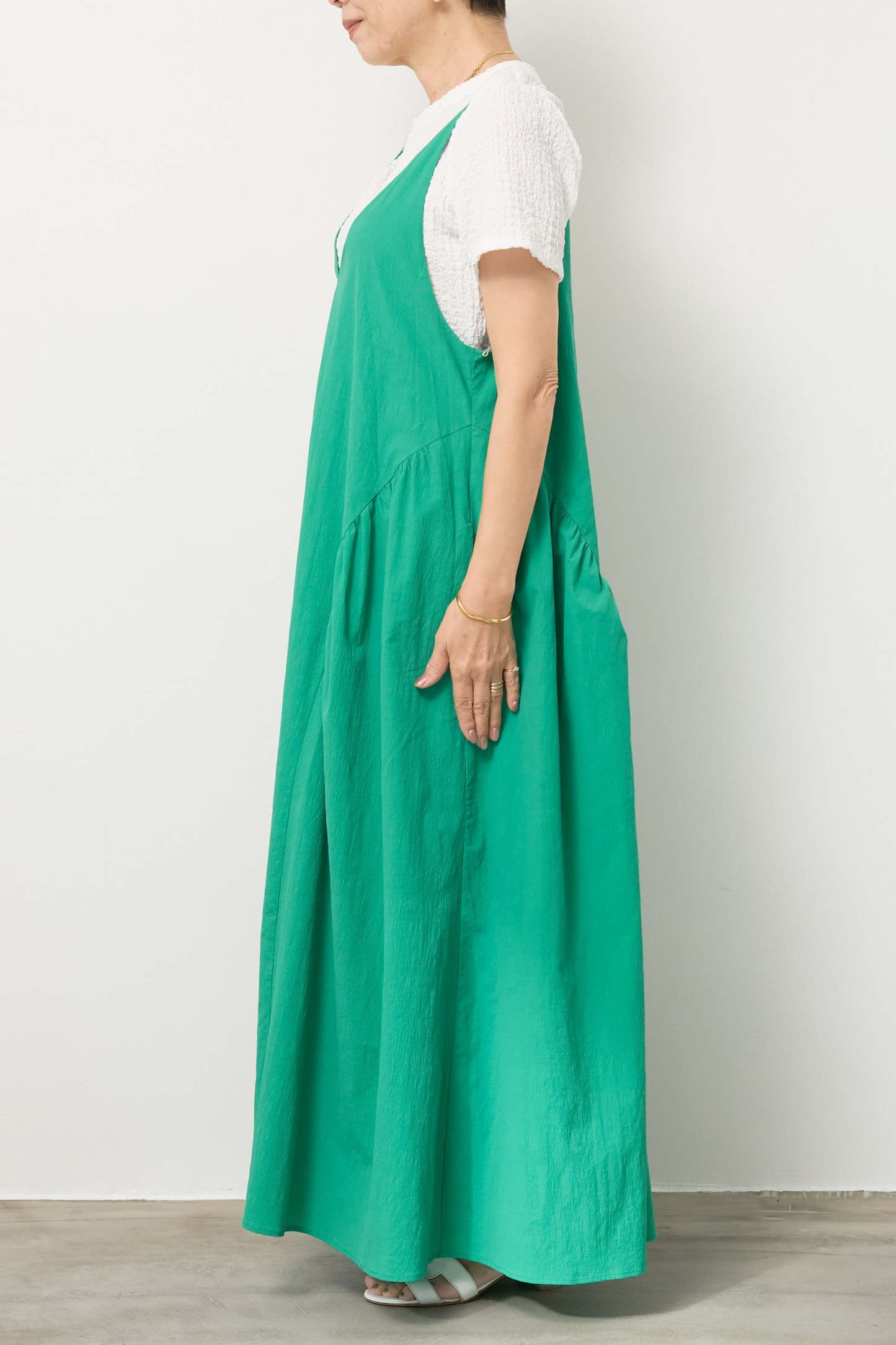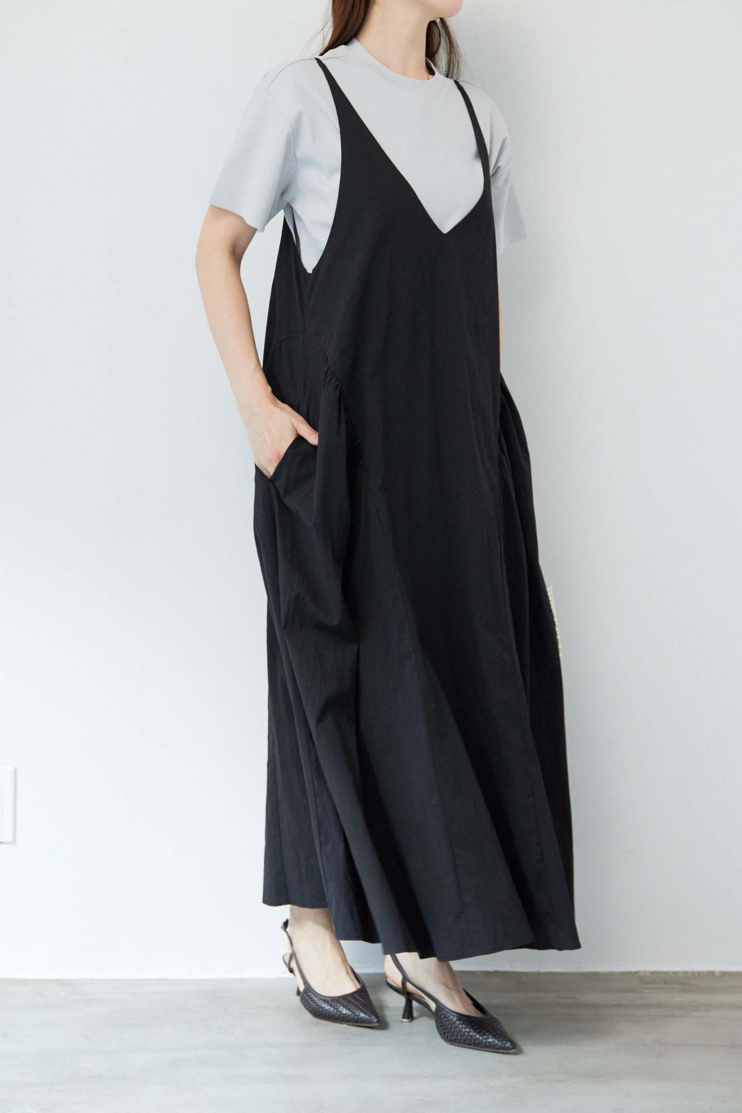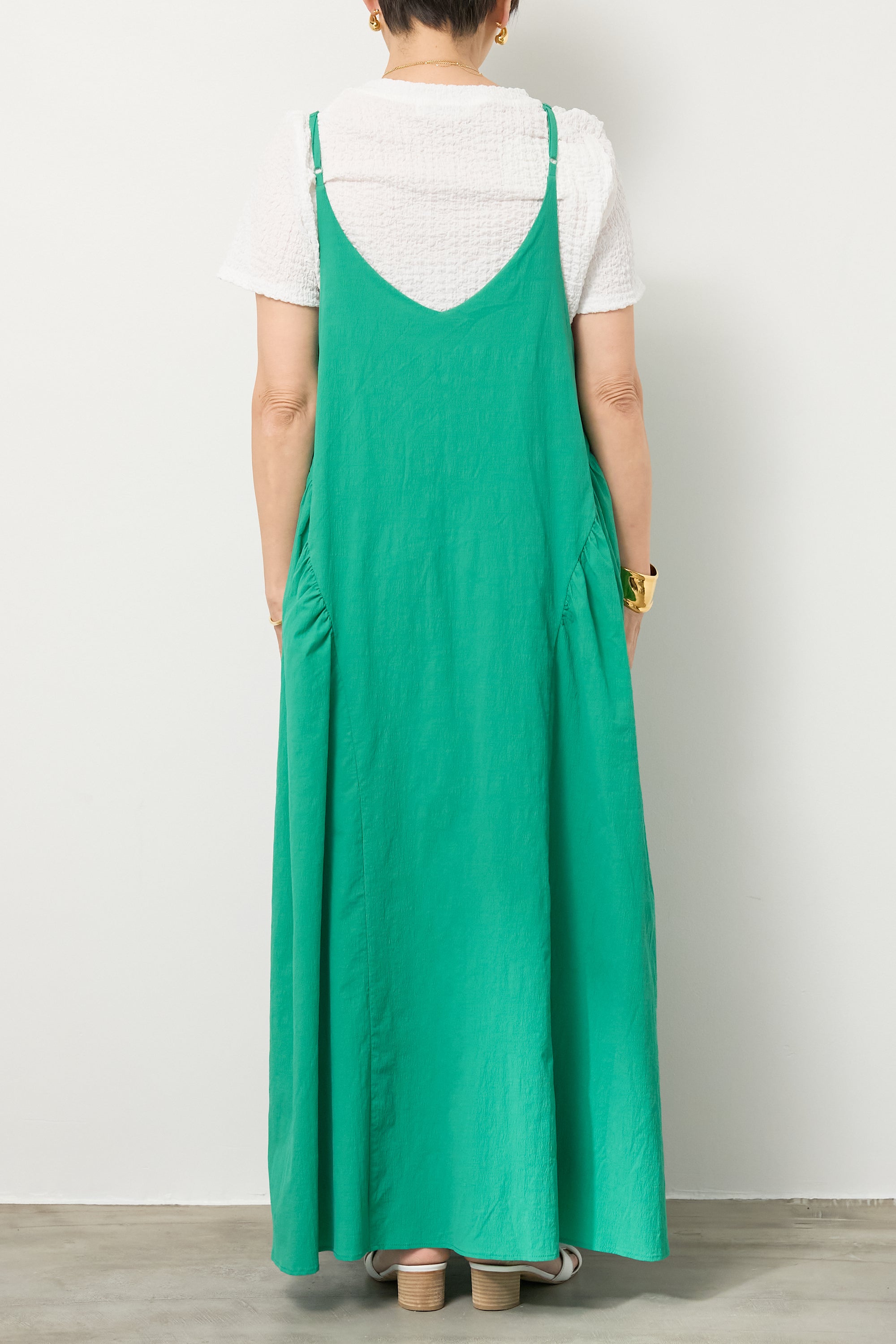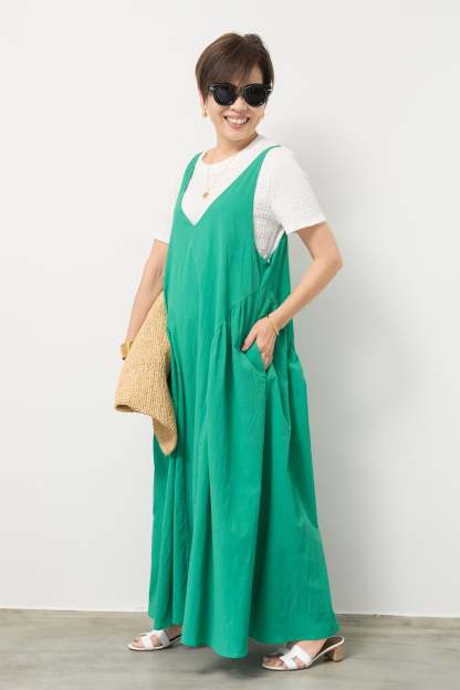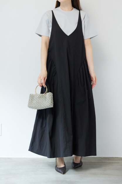 サイドギャザーVネックキャミワンピース