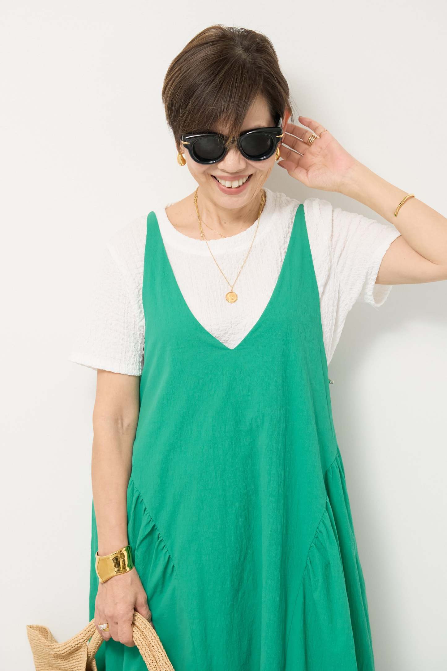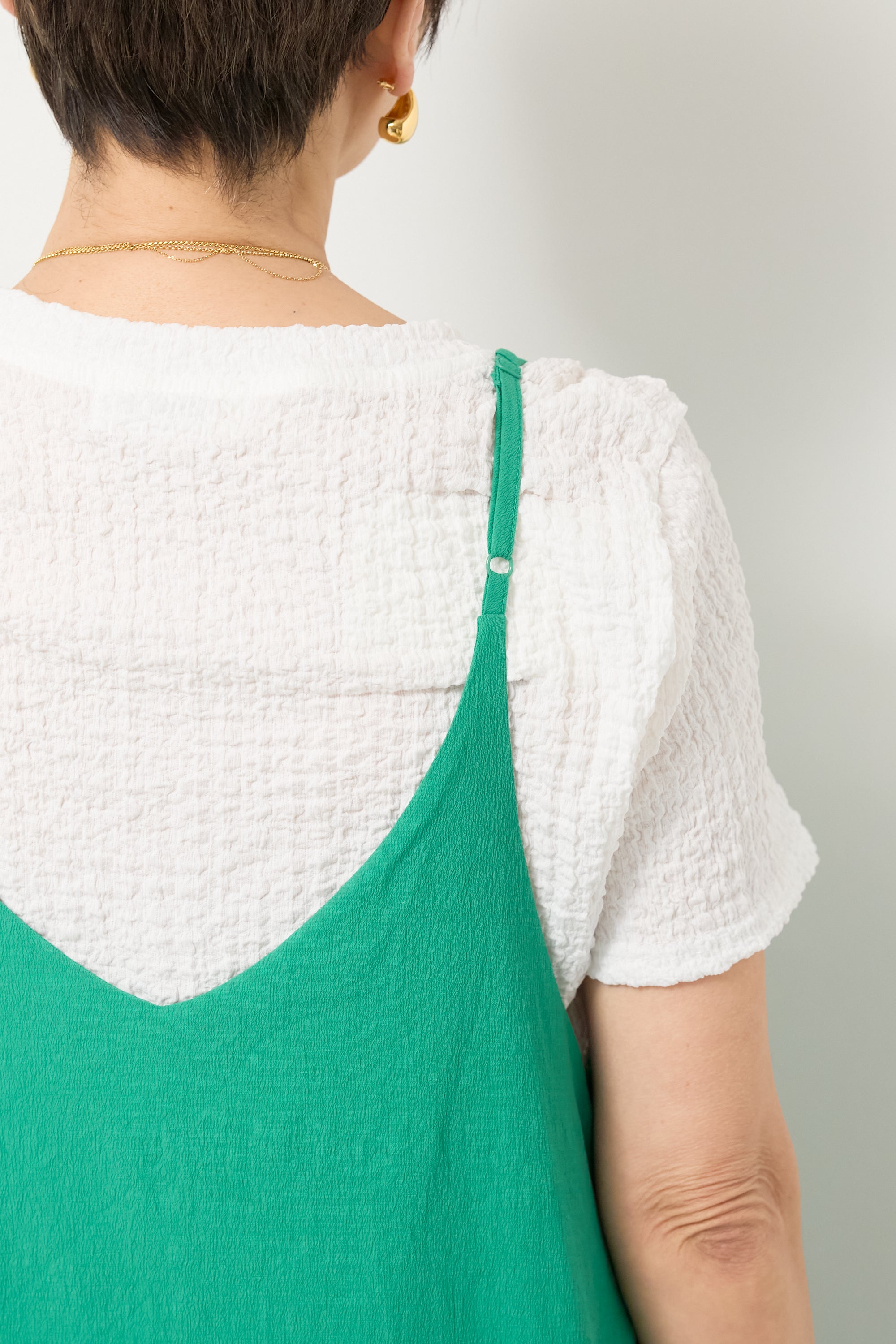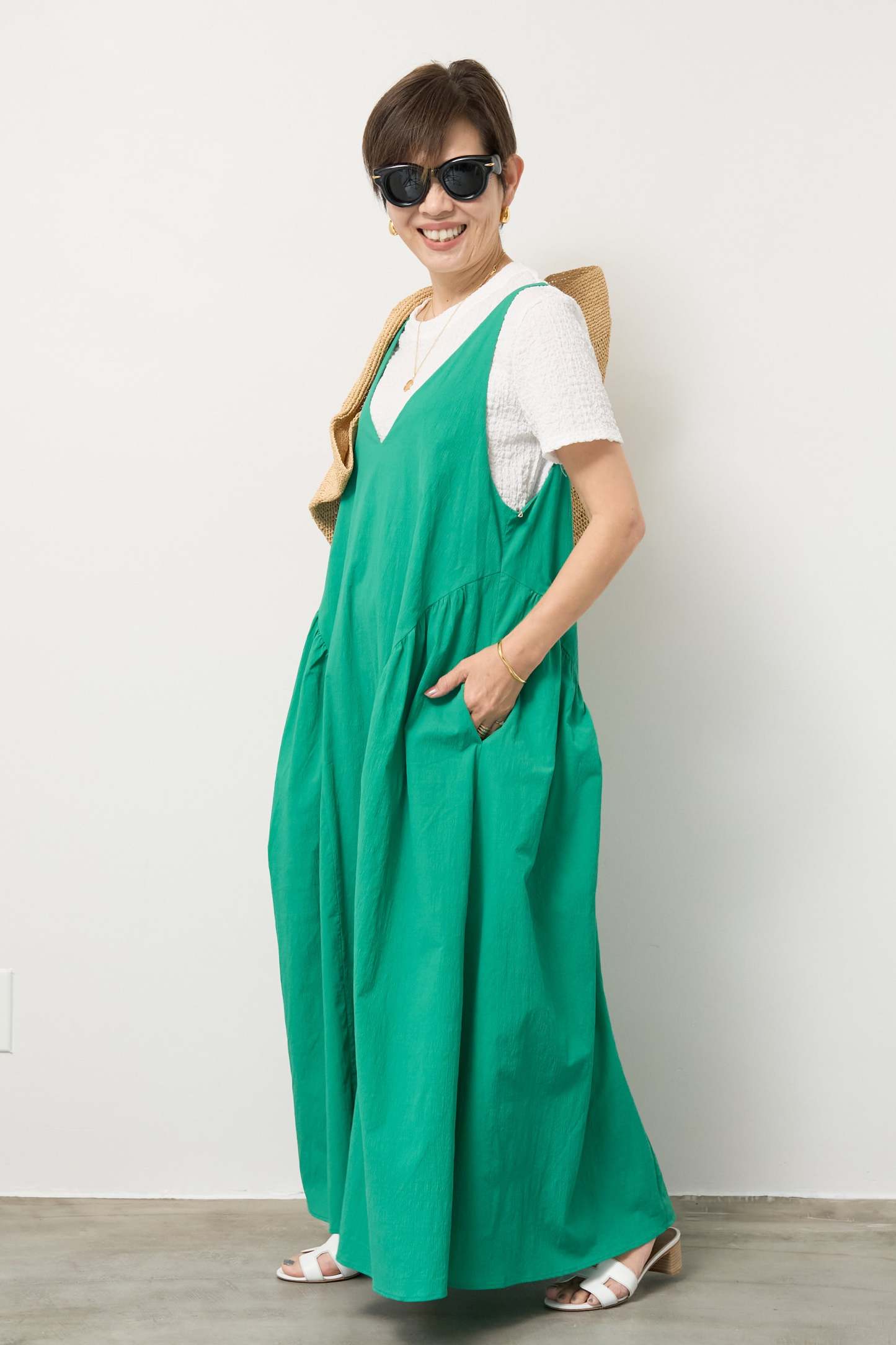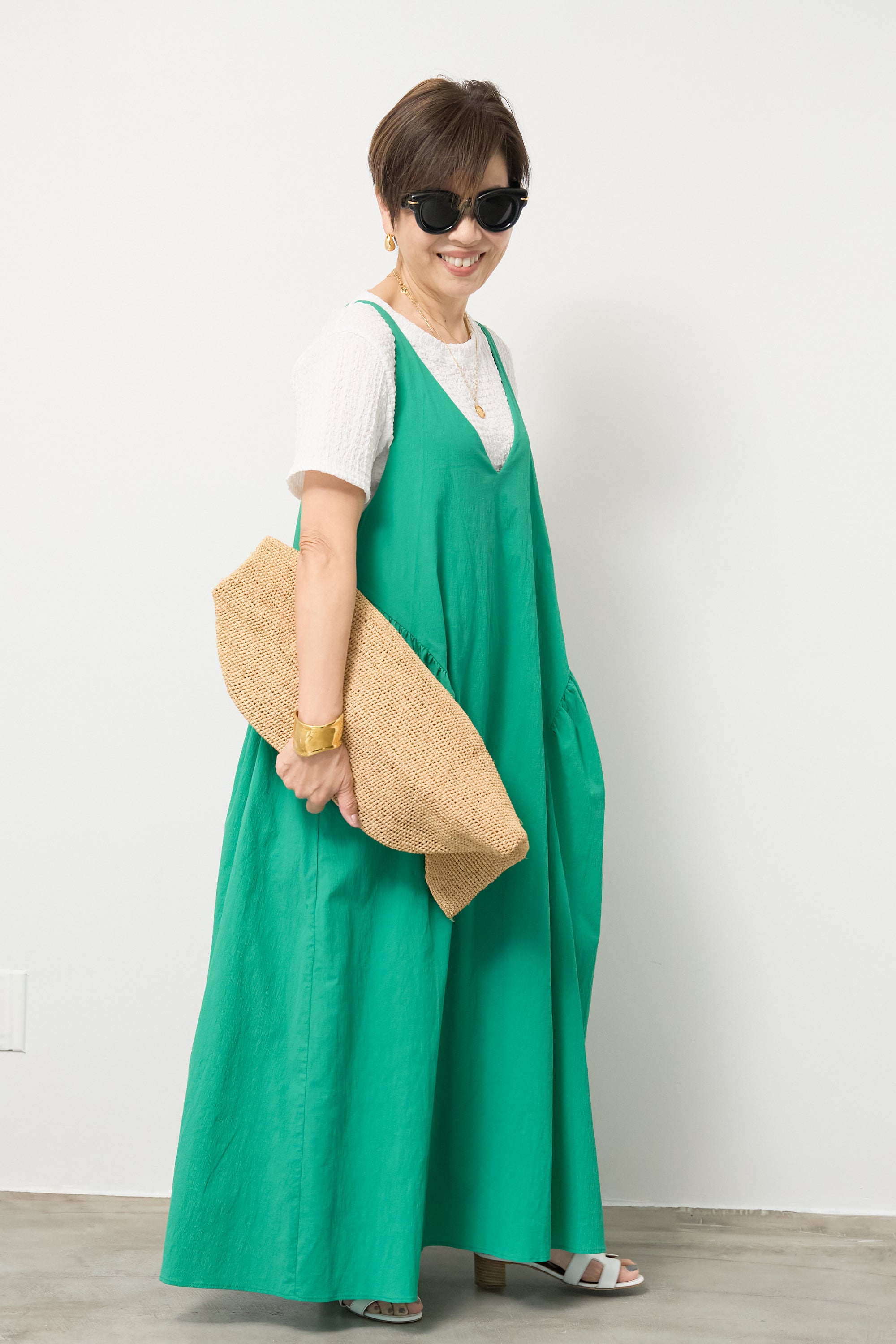 サイドギャザーVネックキャミワンピース