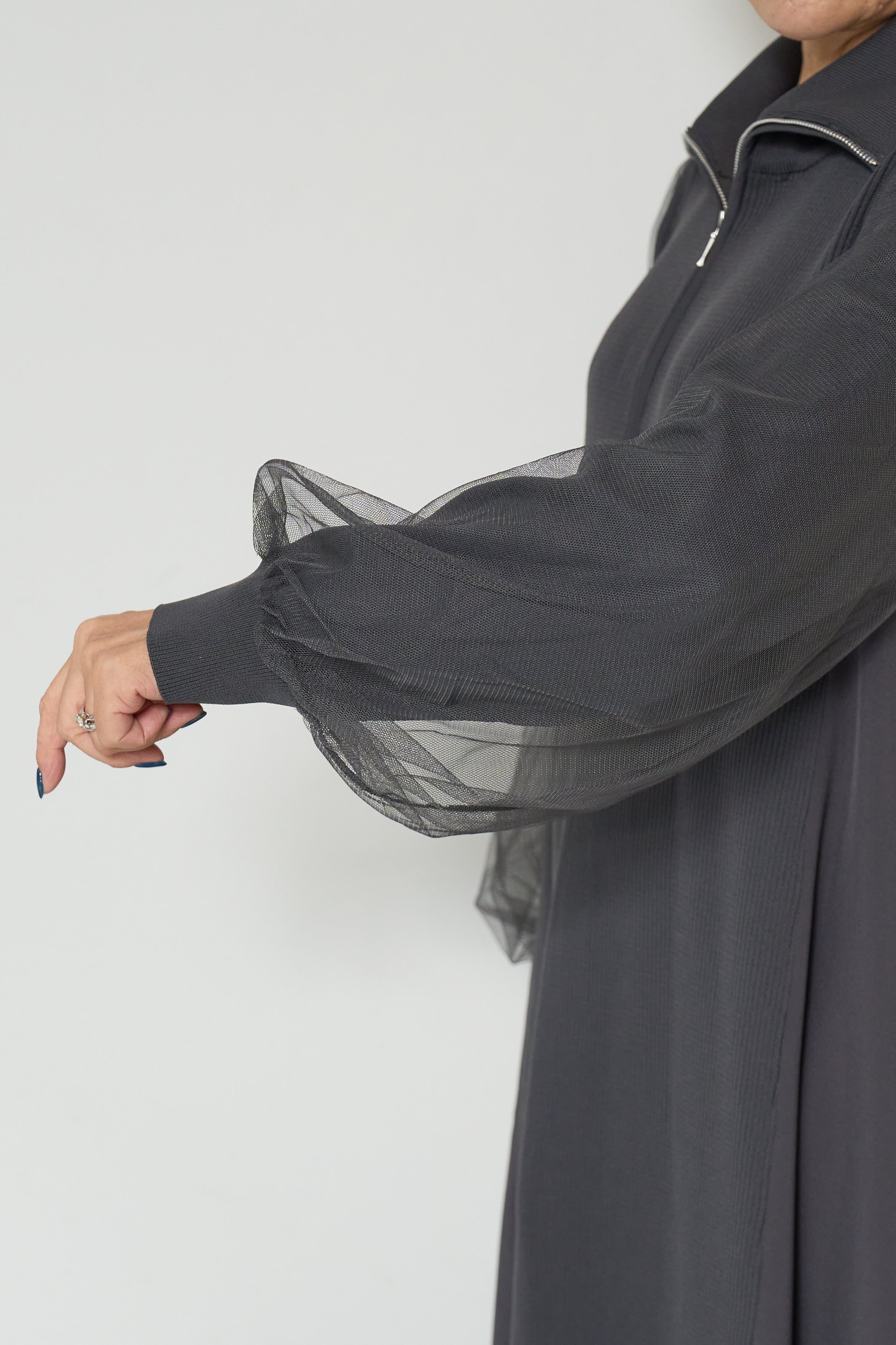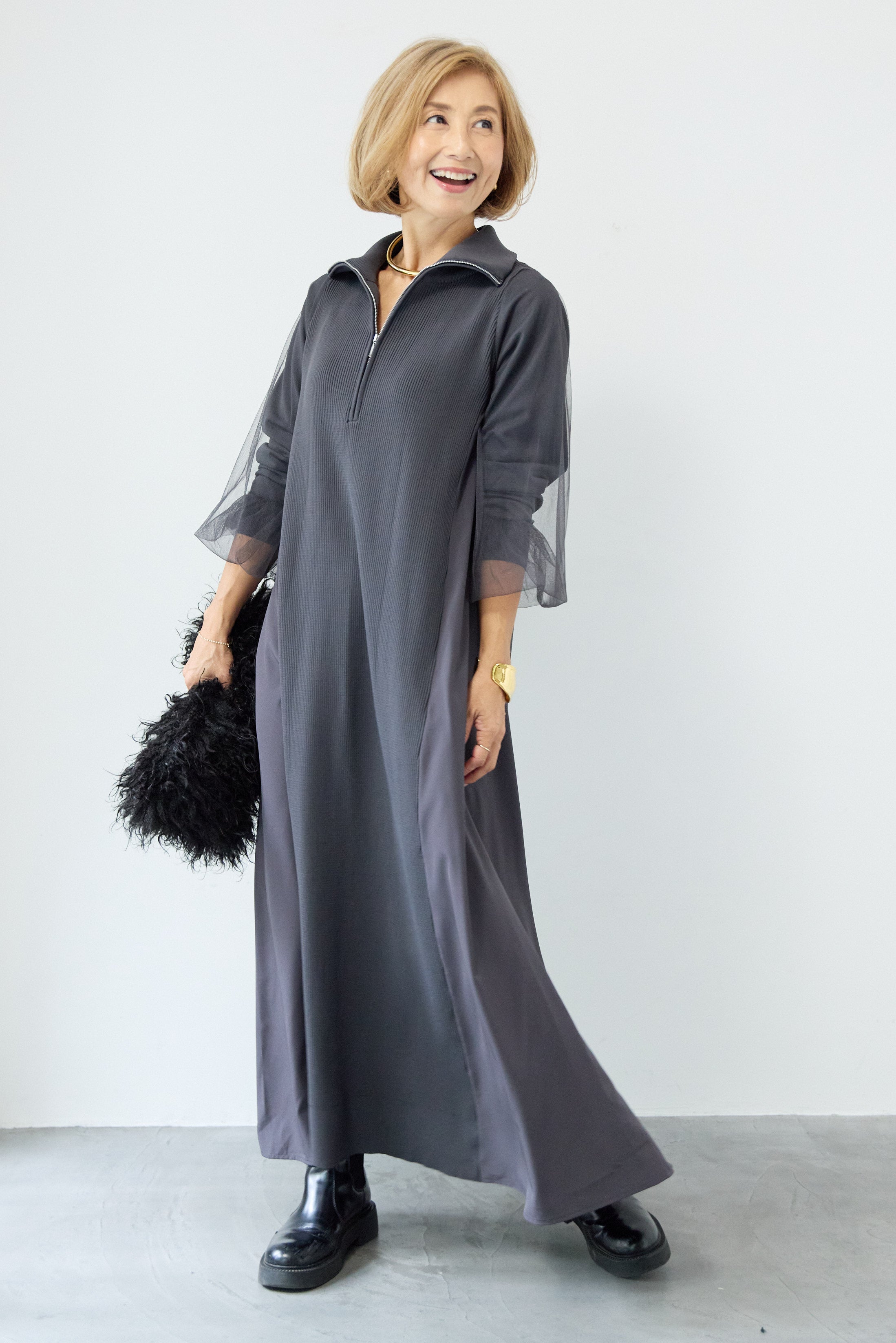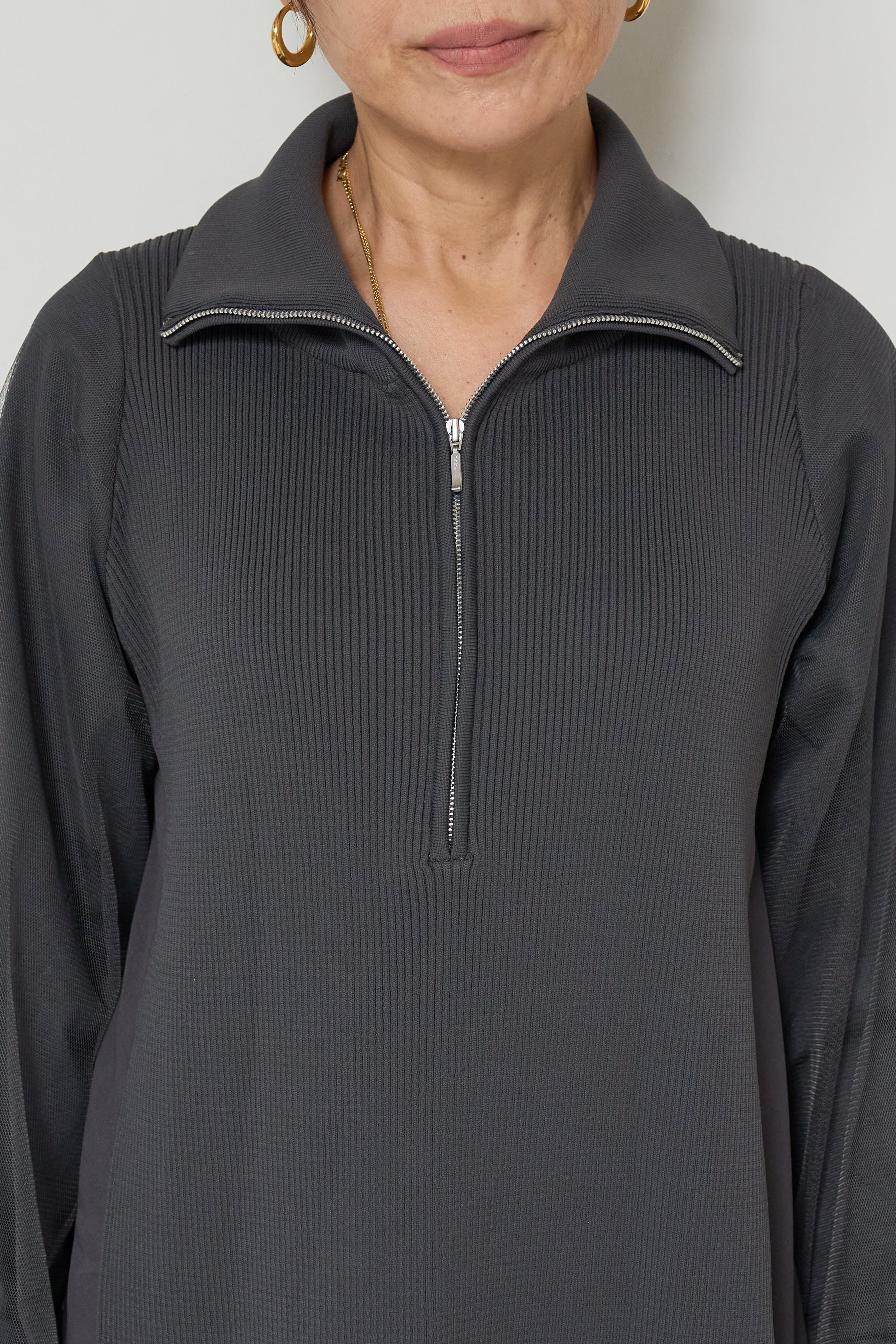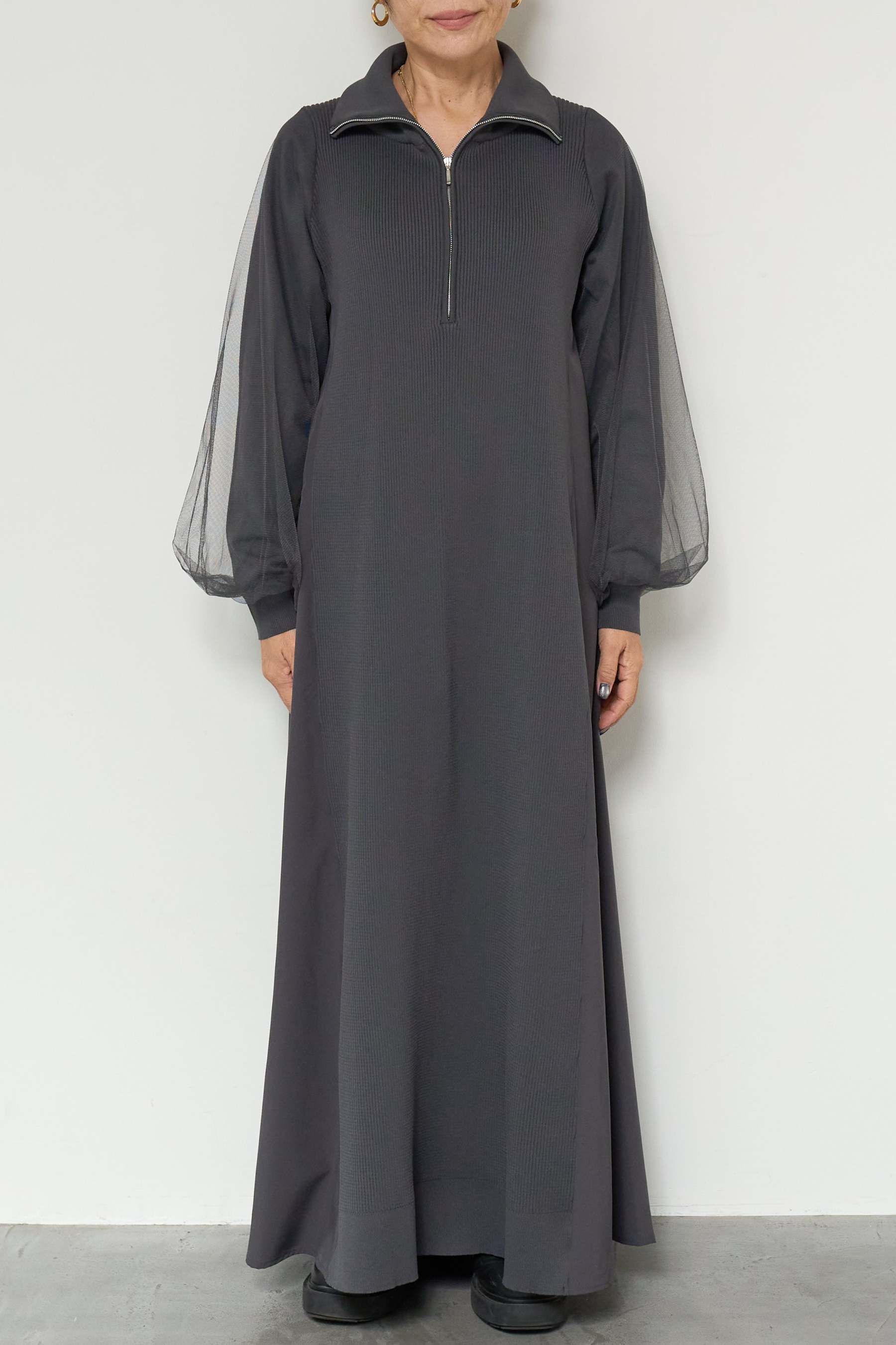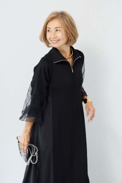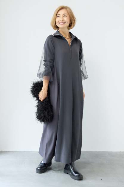 チュールスリーブニットワンピース