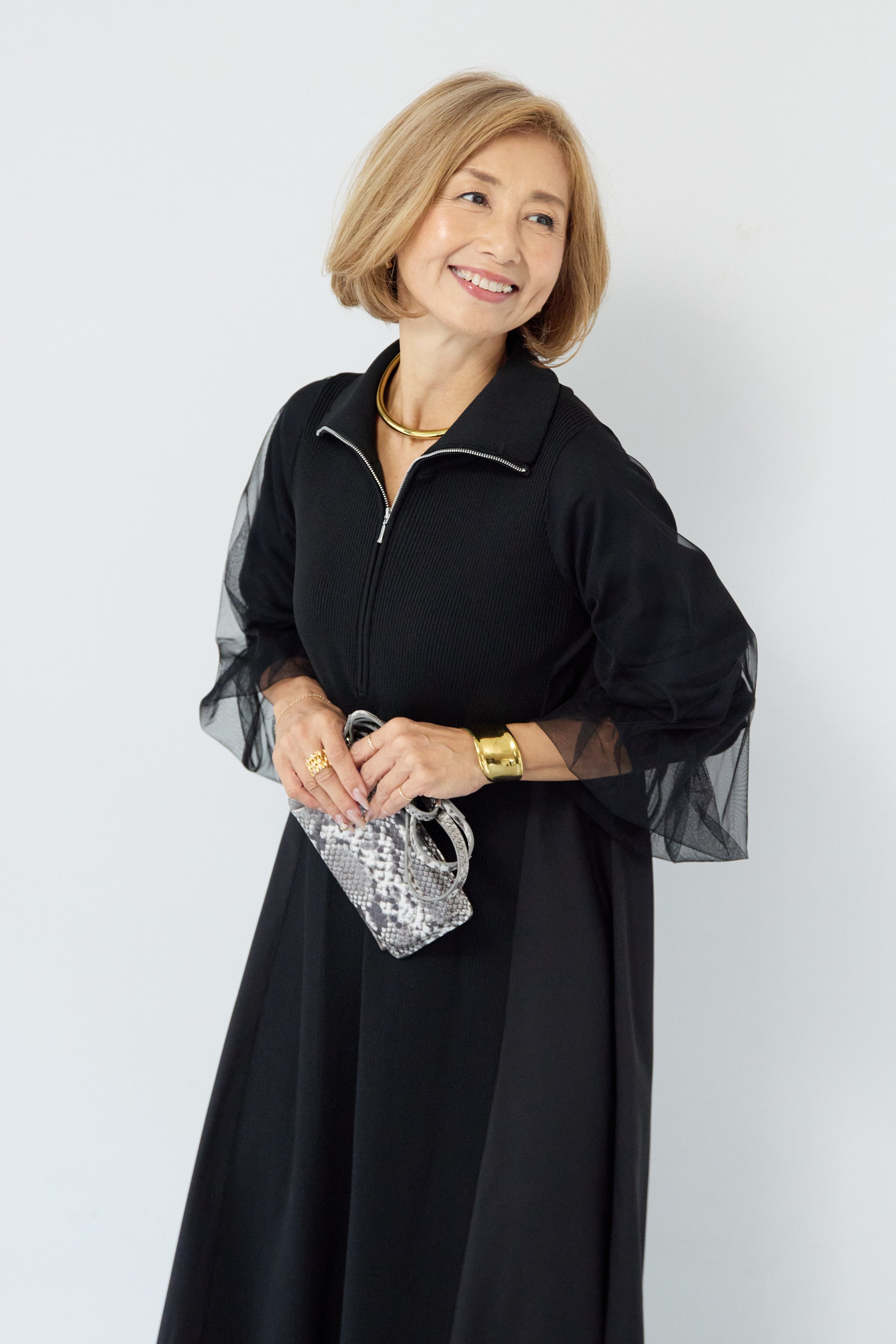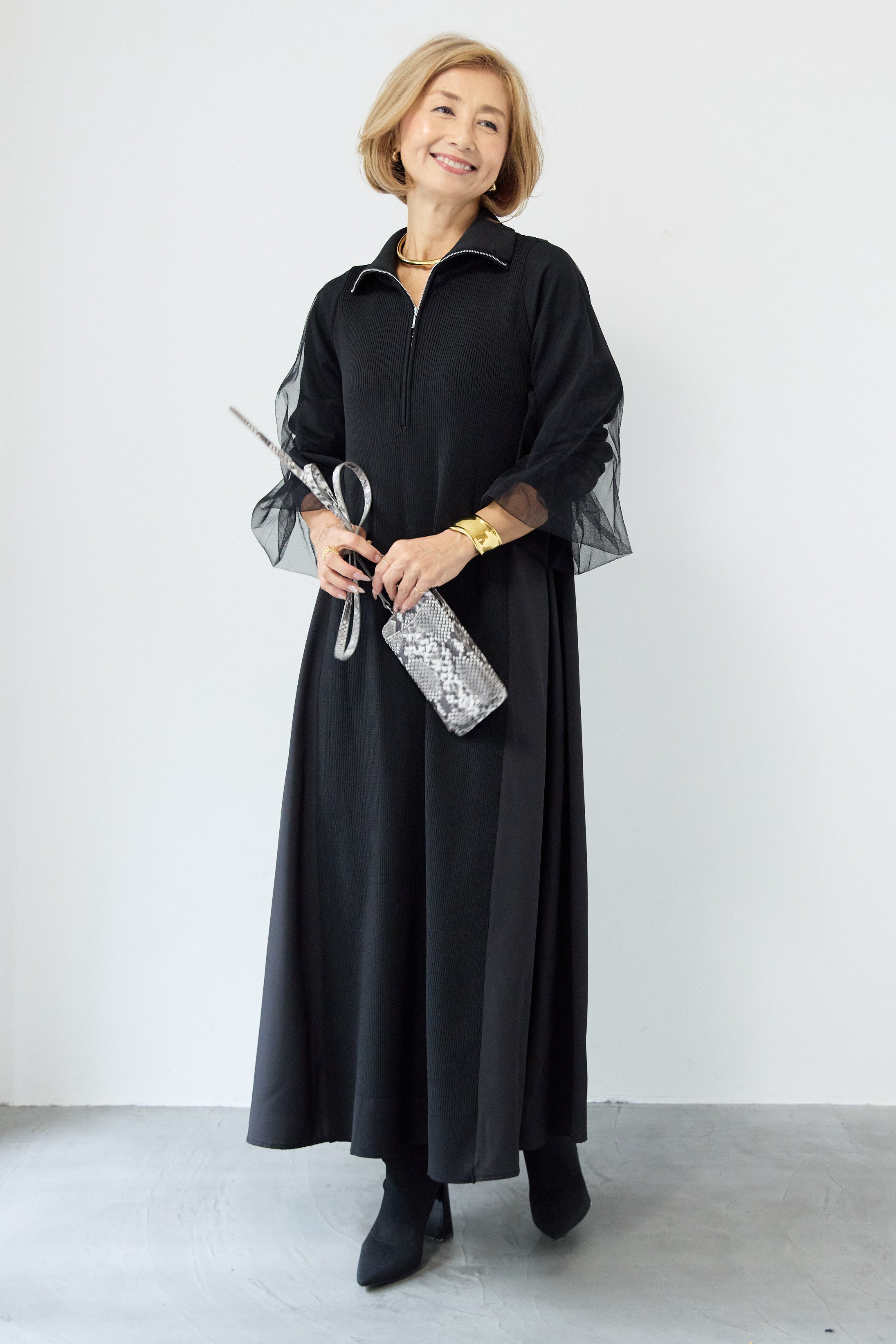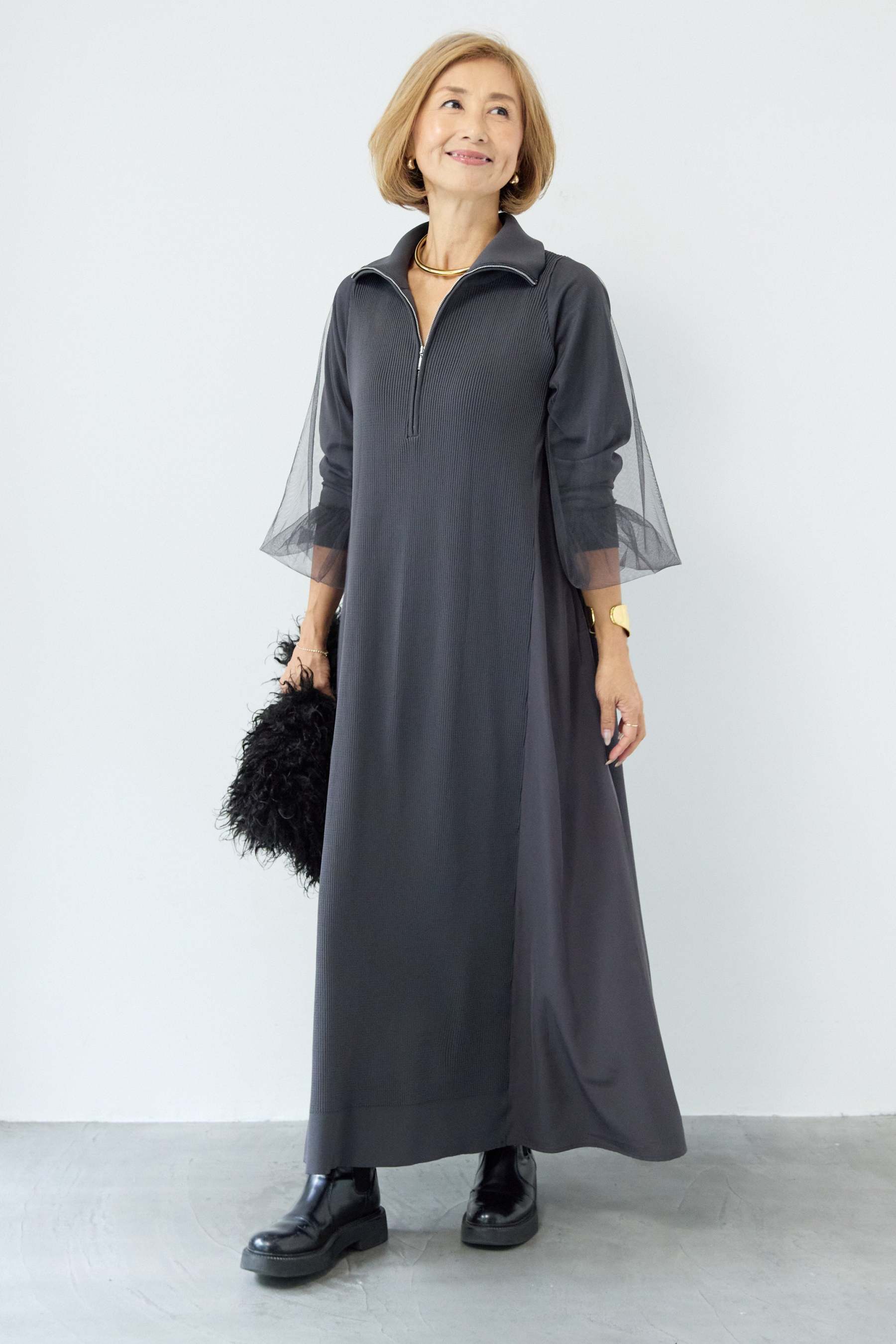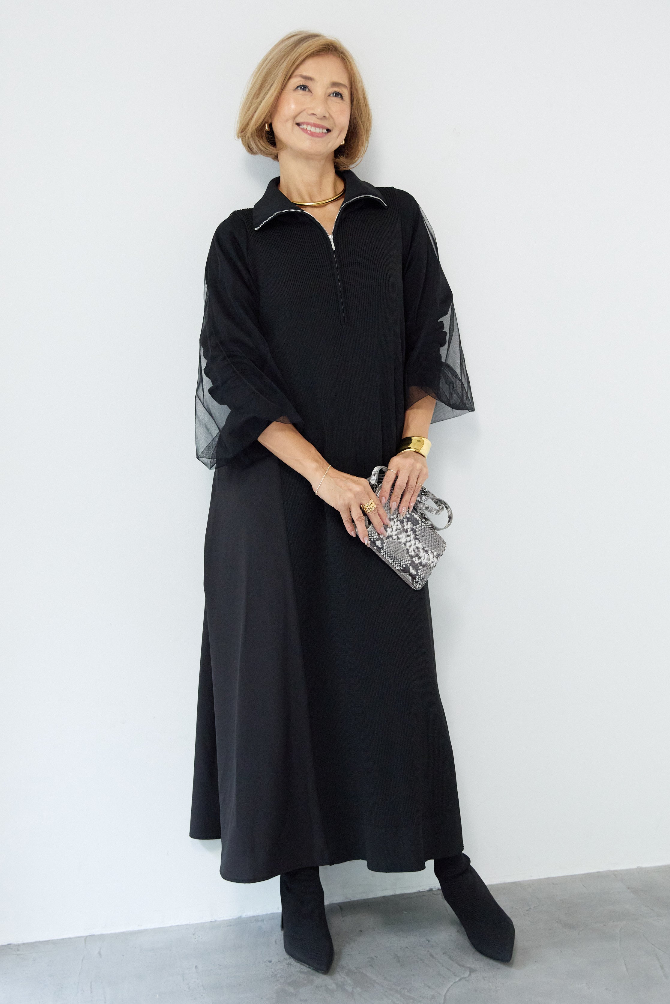 チュールスリーブニットワンピース