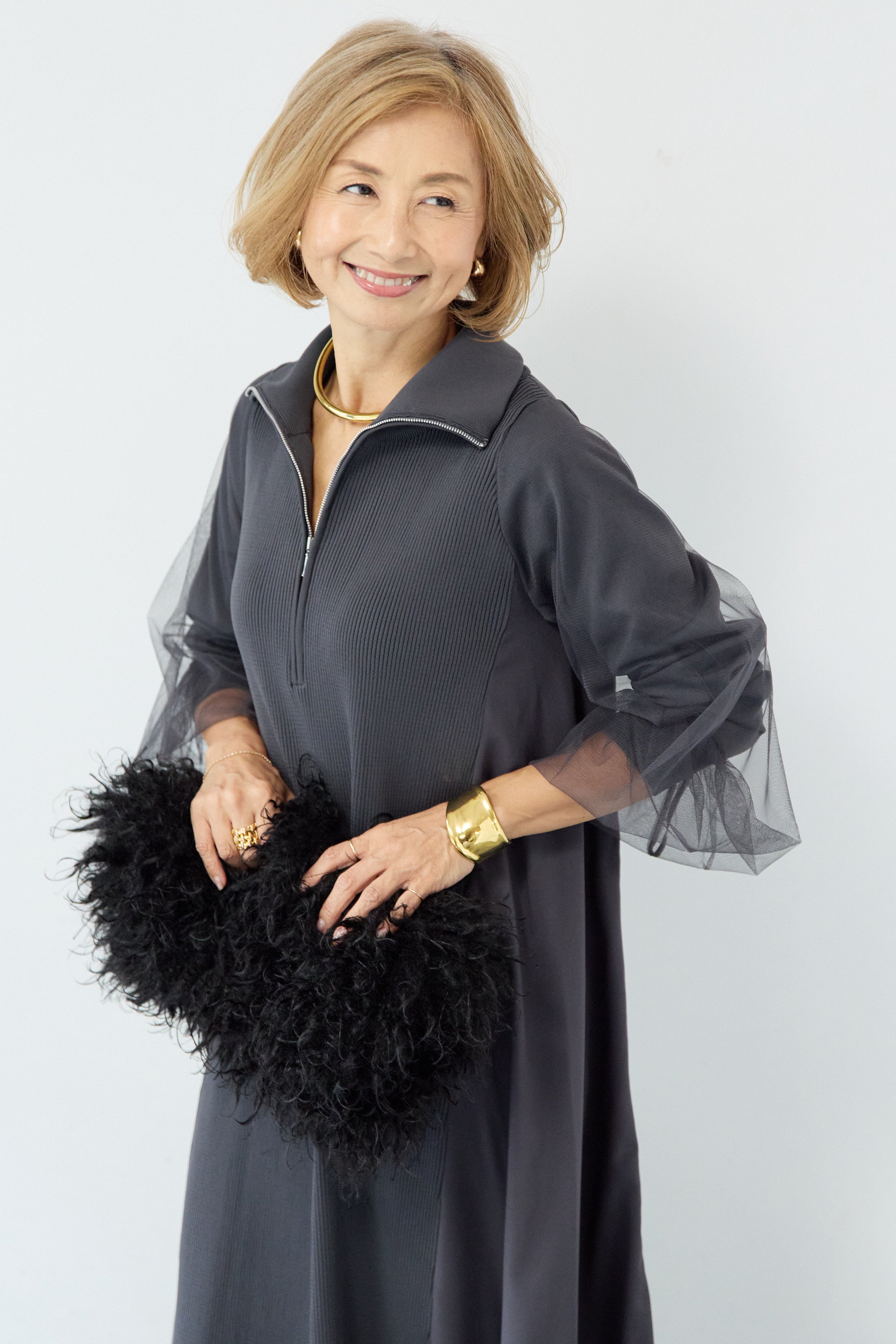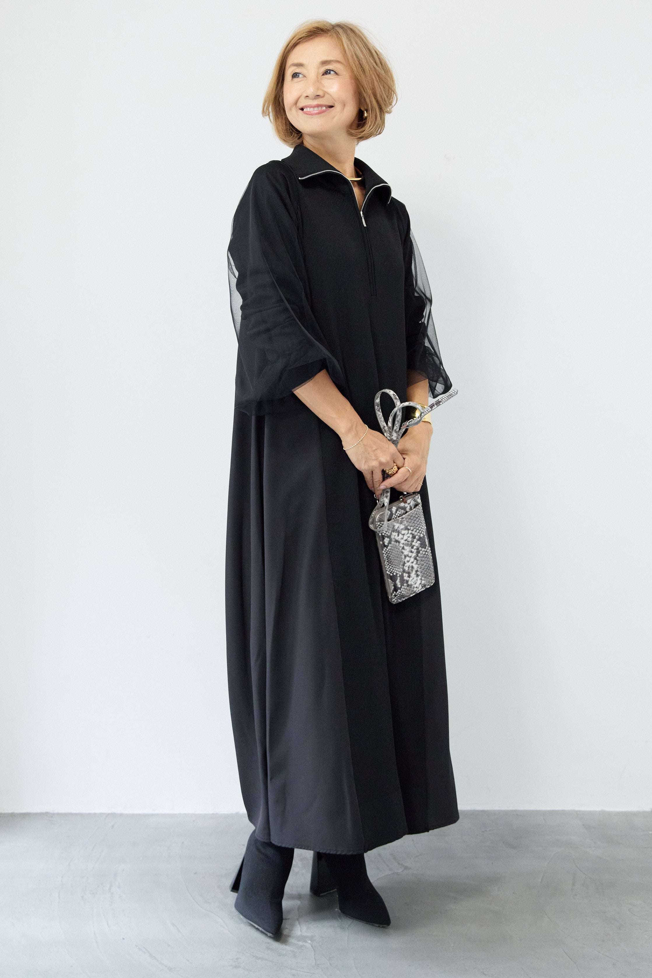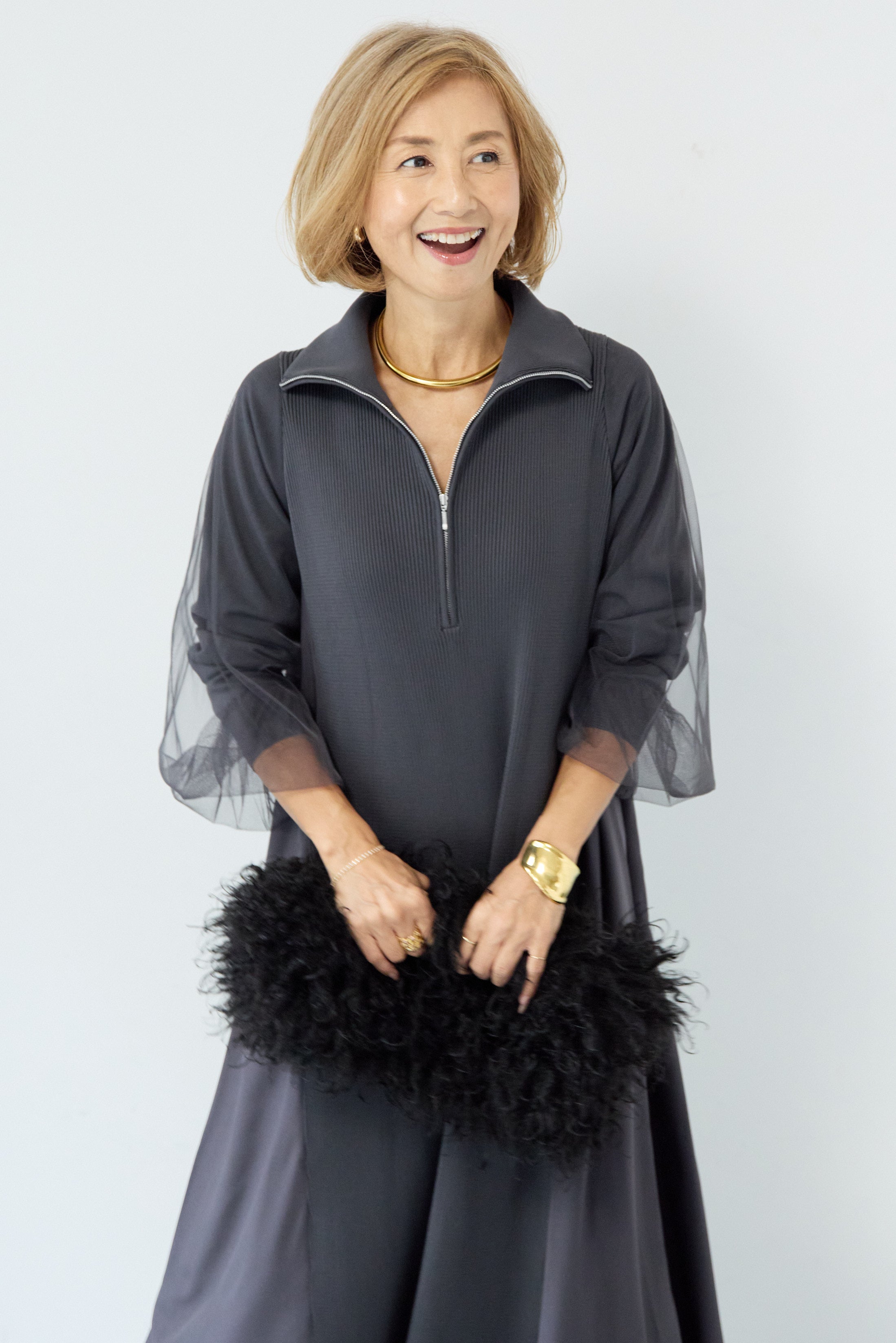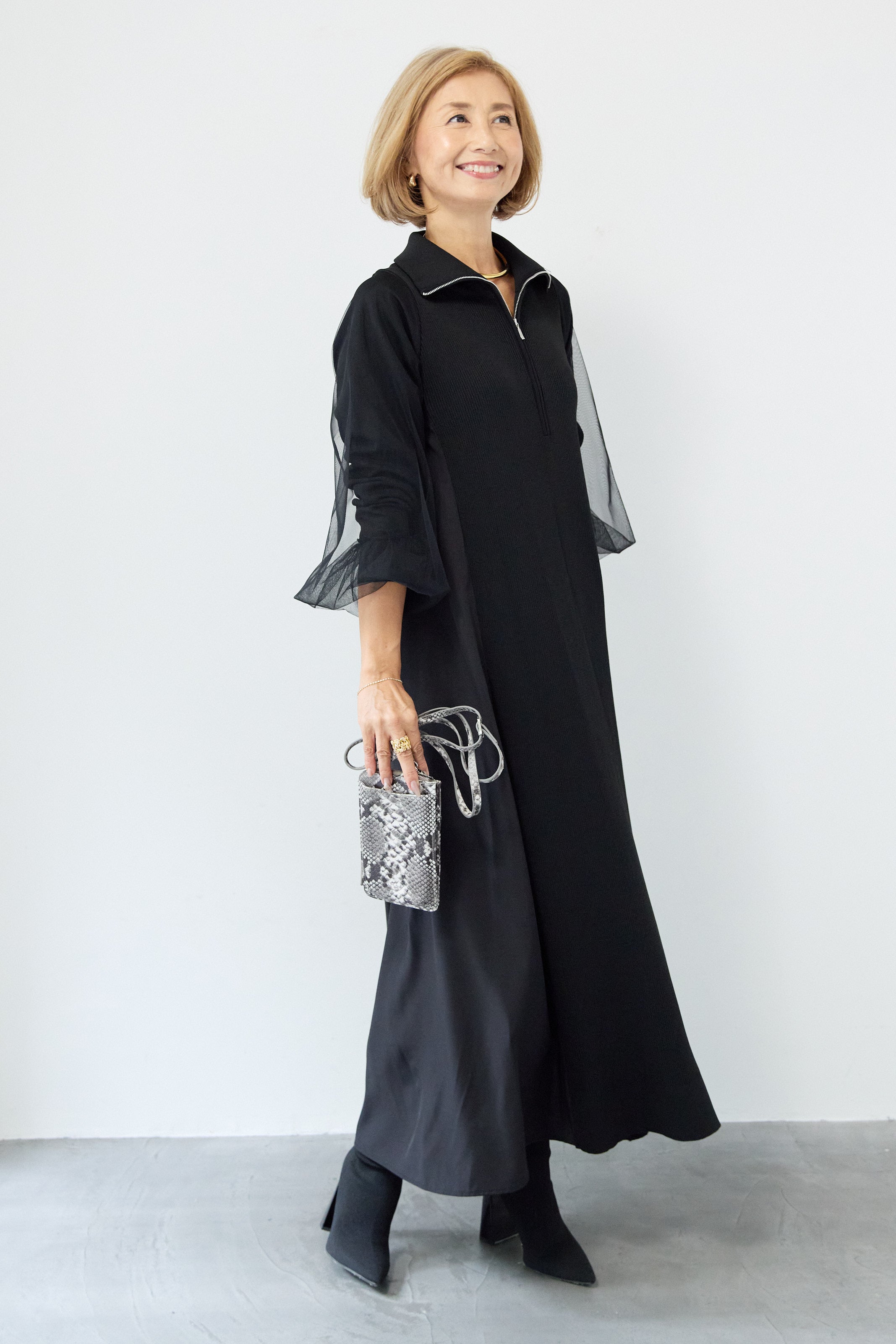 チュールスリーブニットワンピース