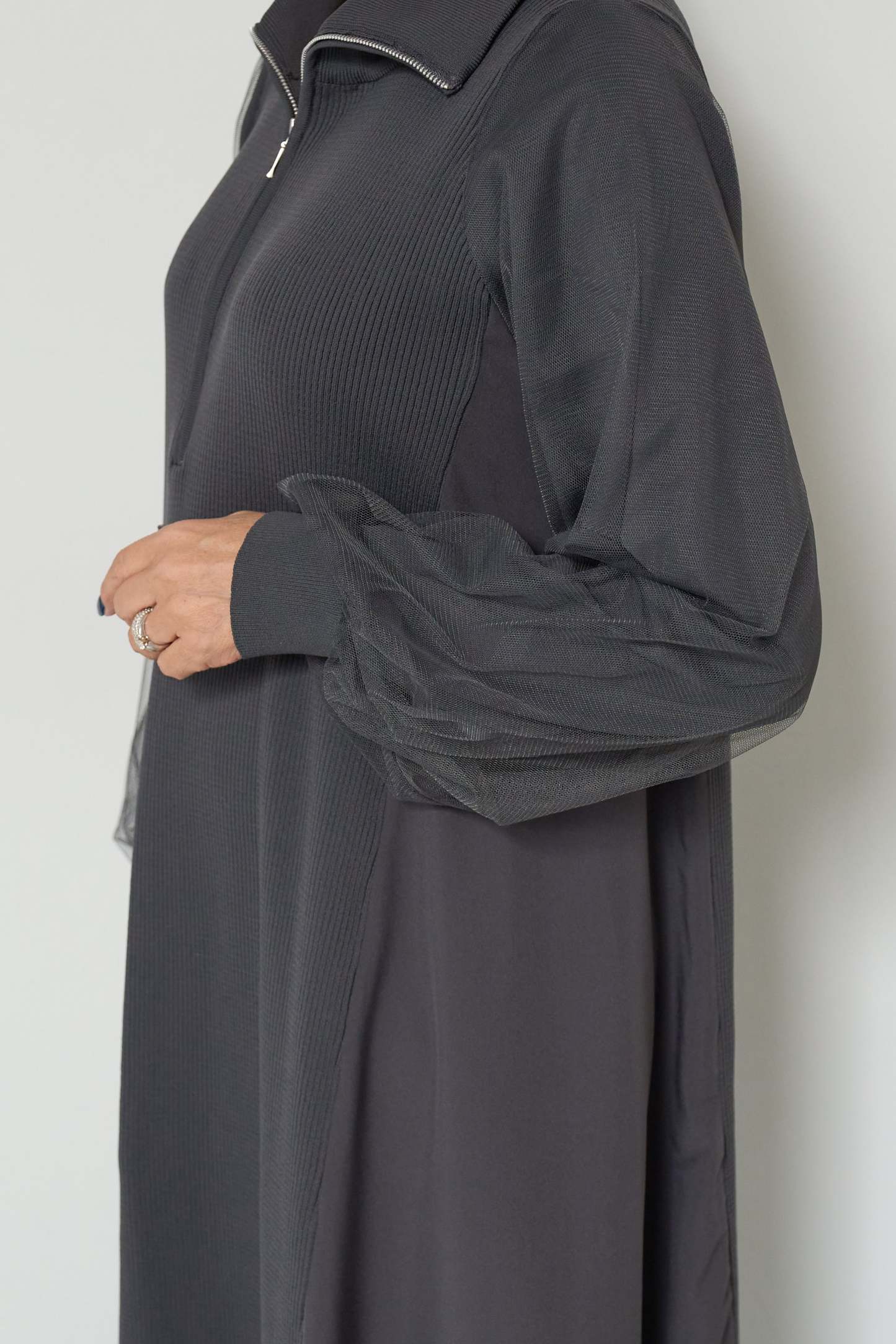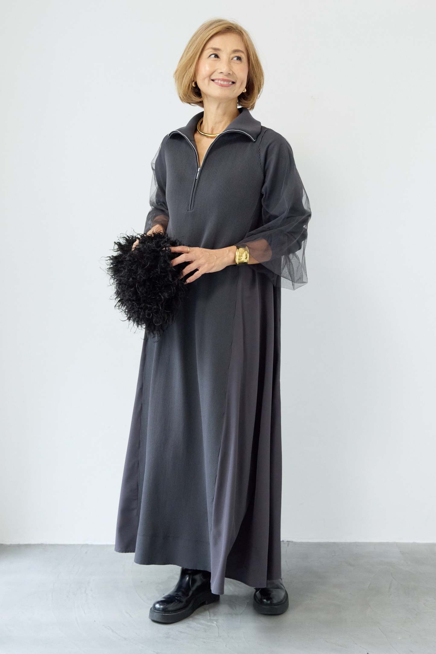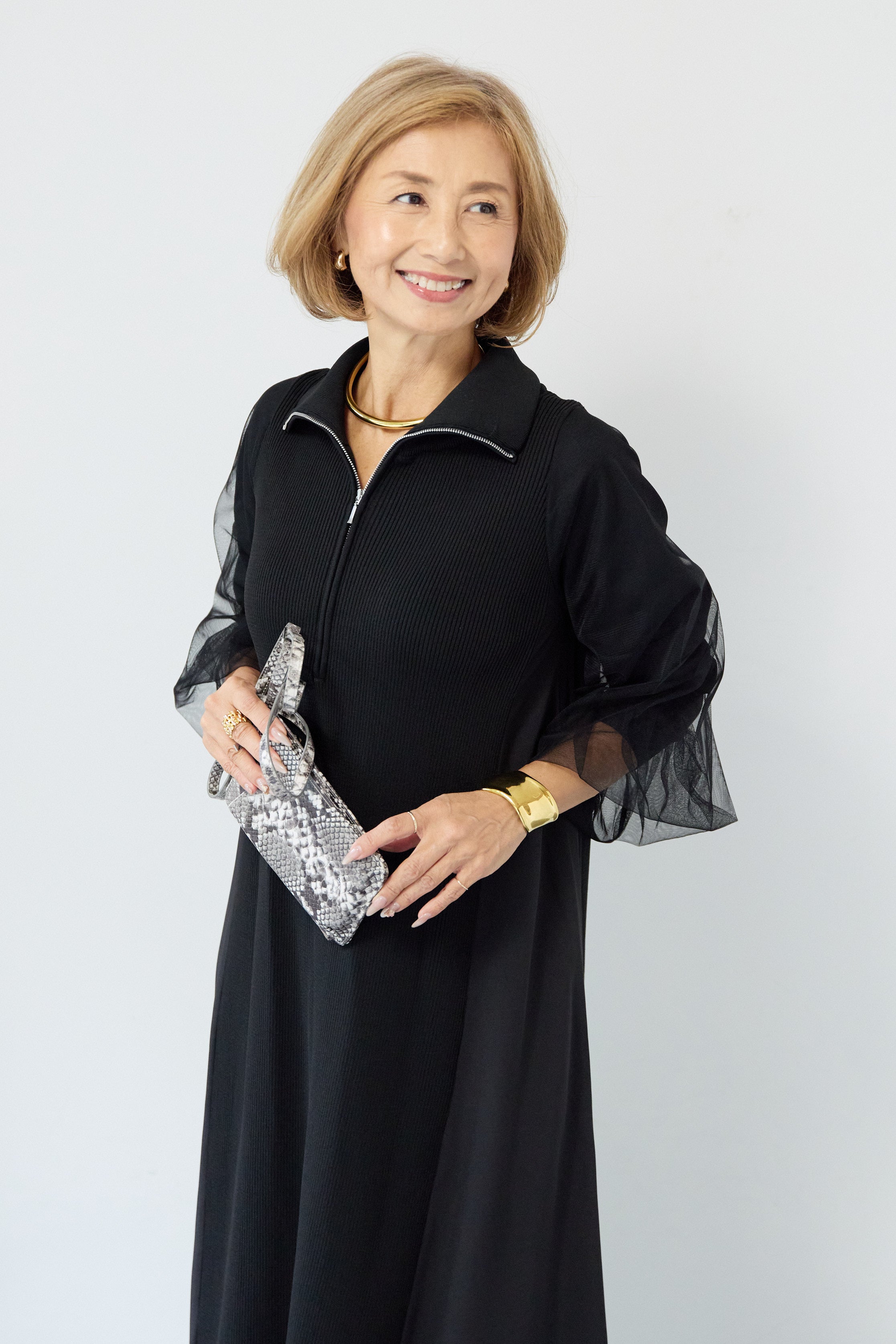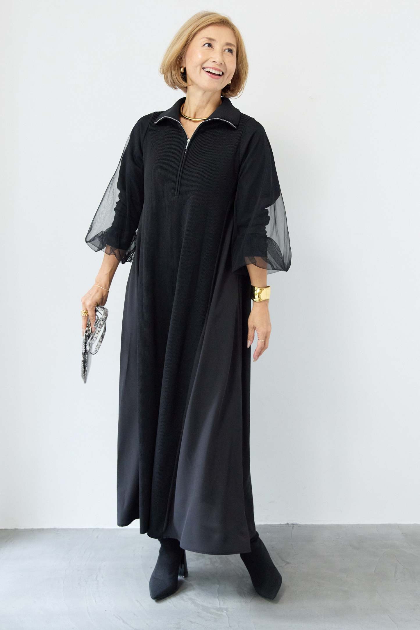 チュールスリーブニットワンピース