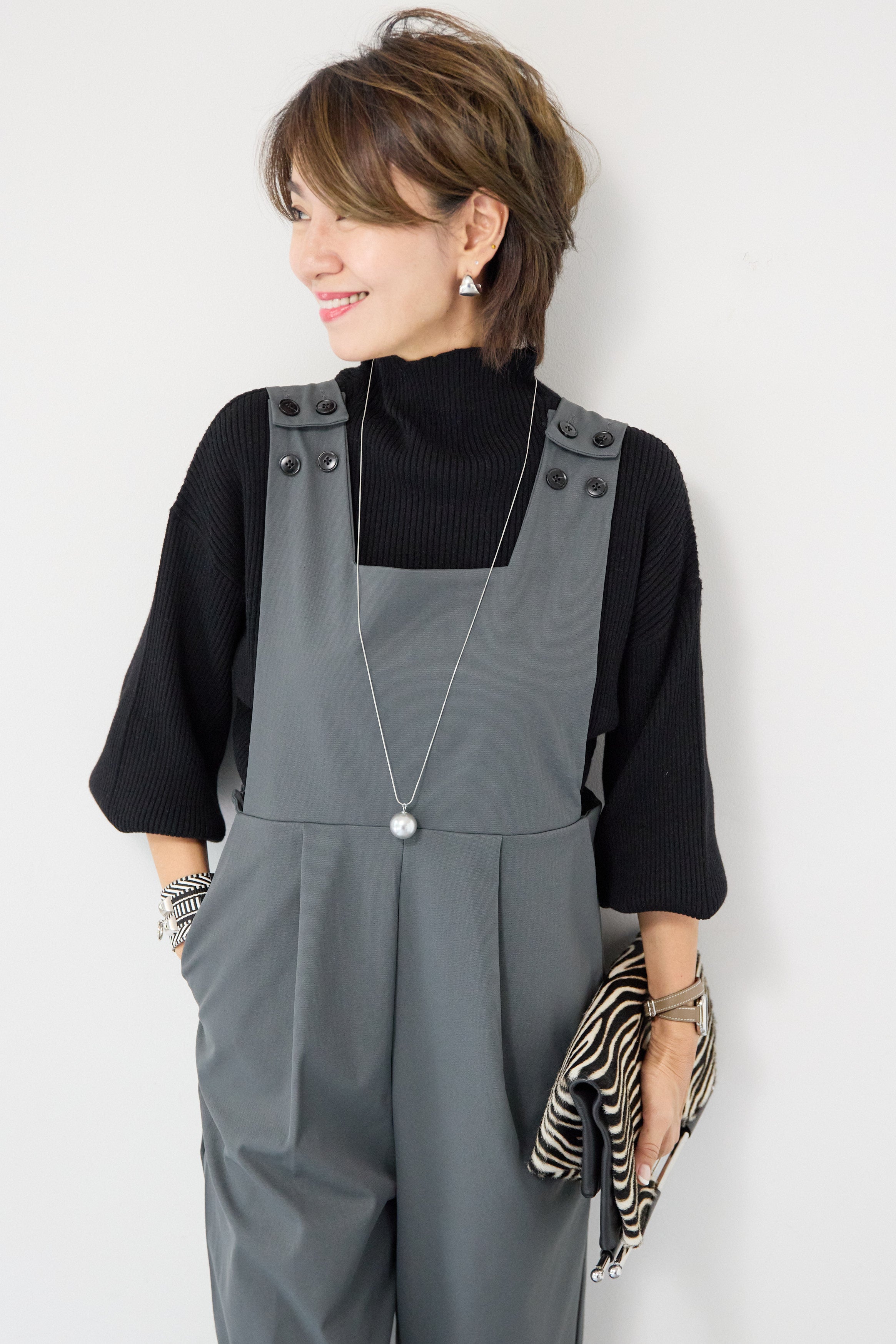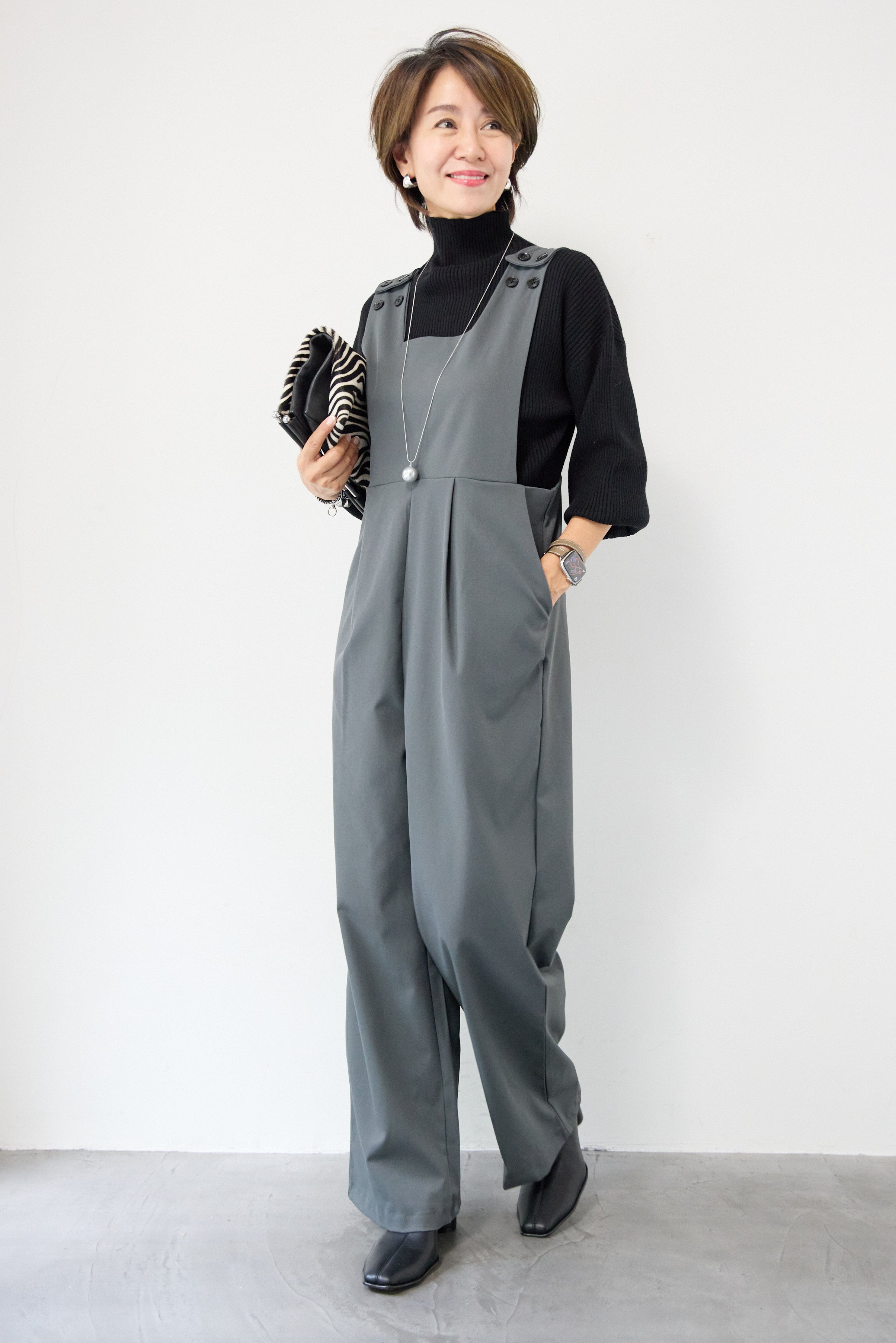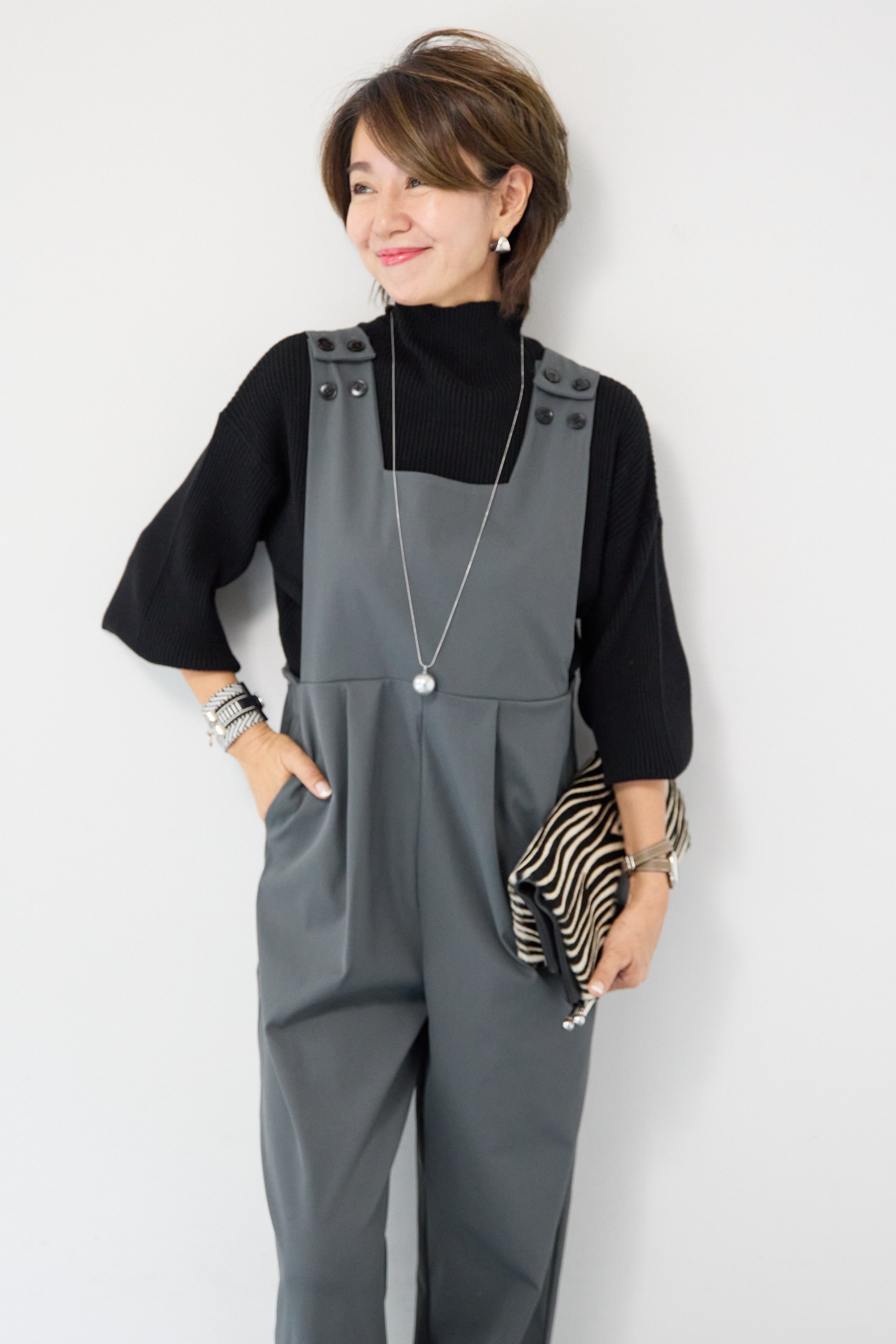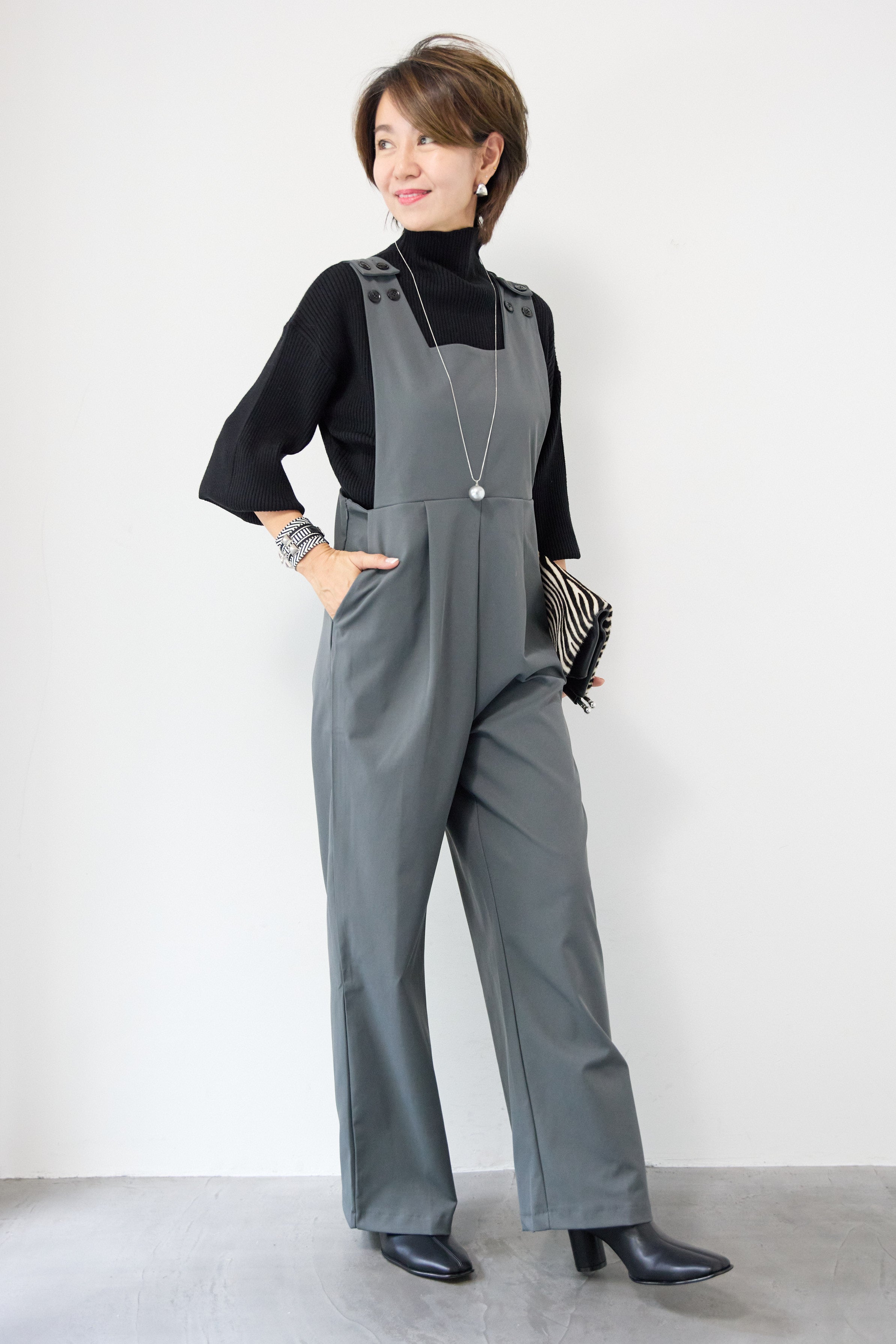 ハイウエストモードツイルサロペット