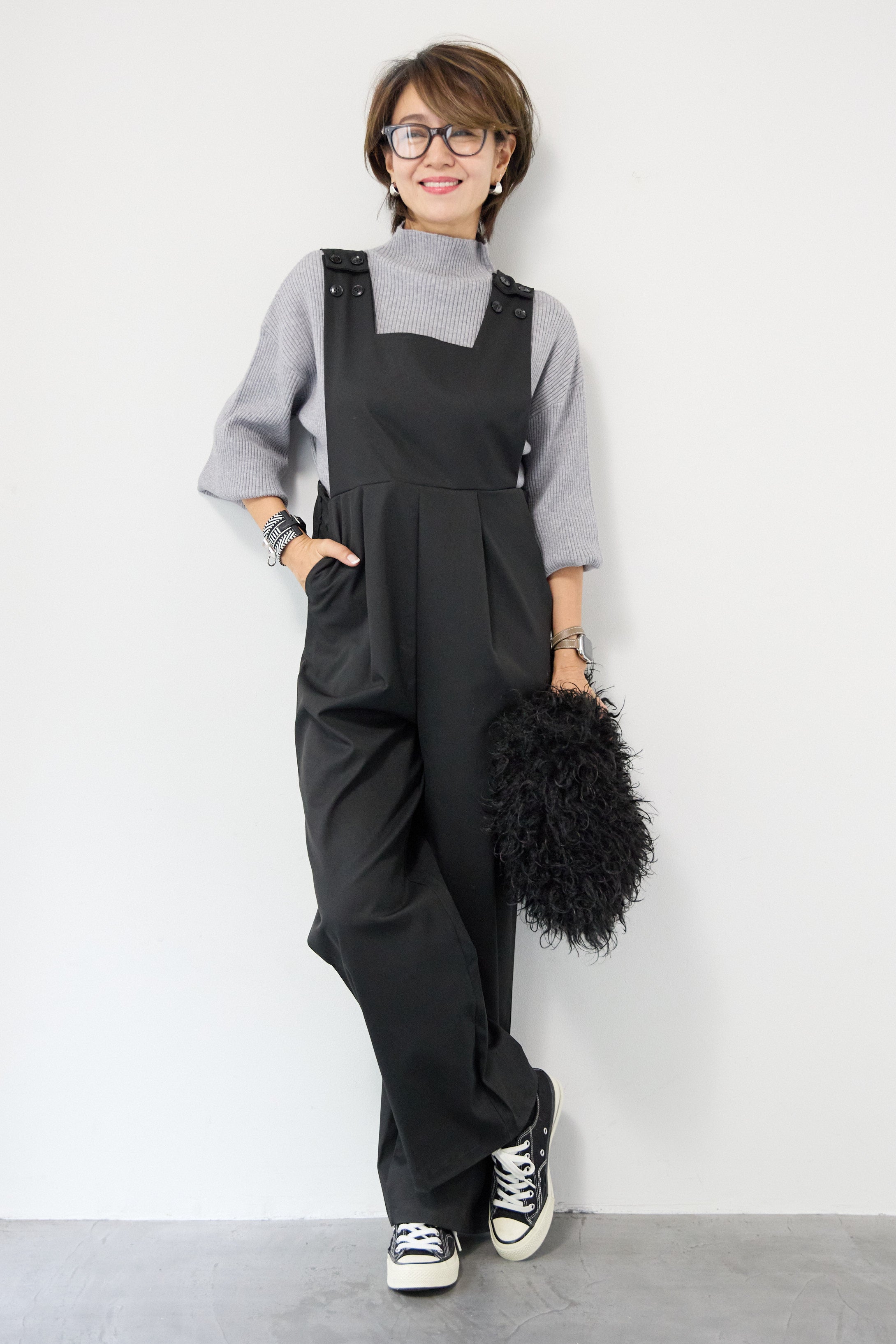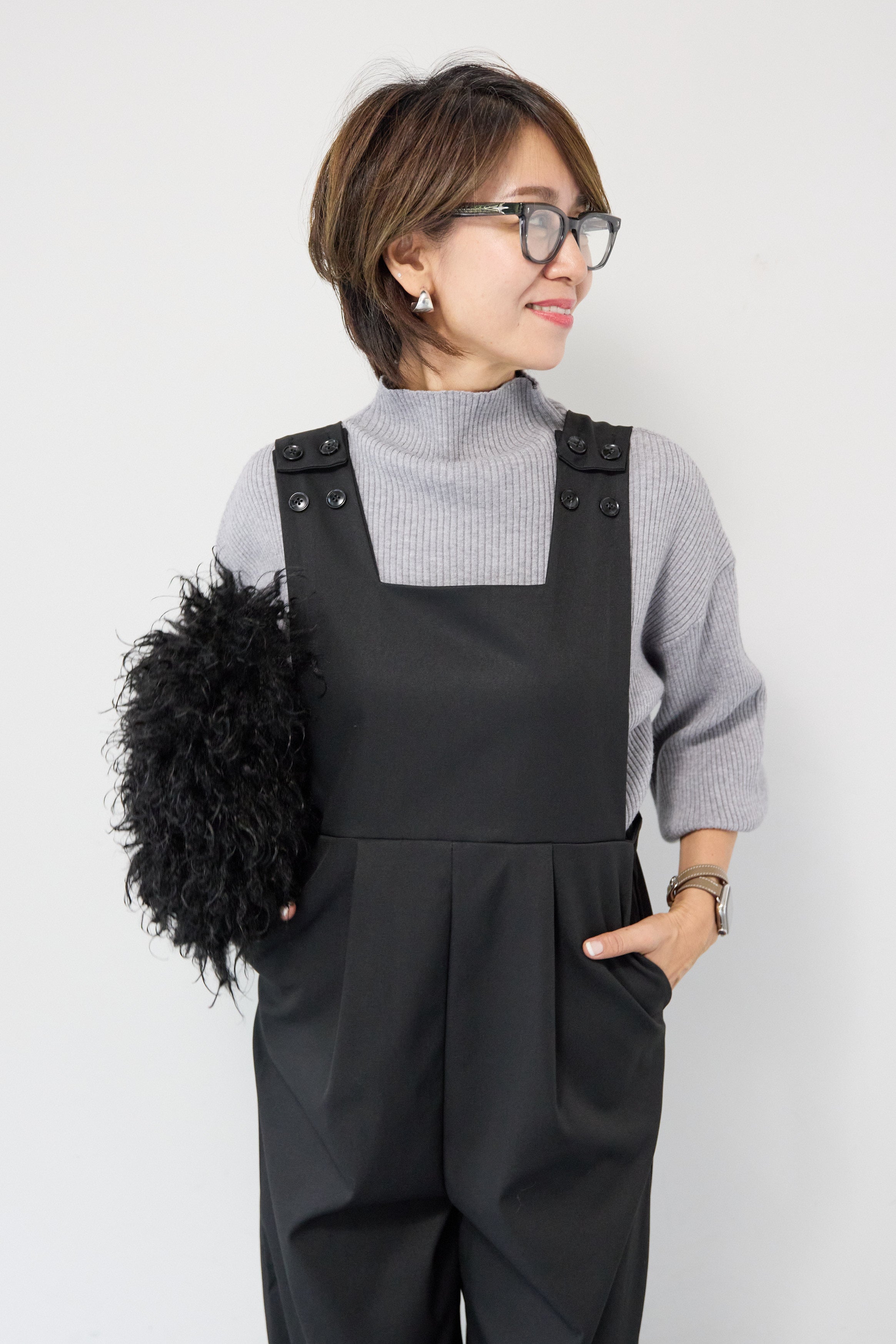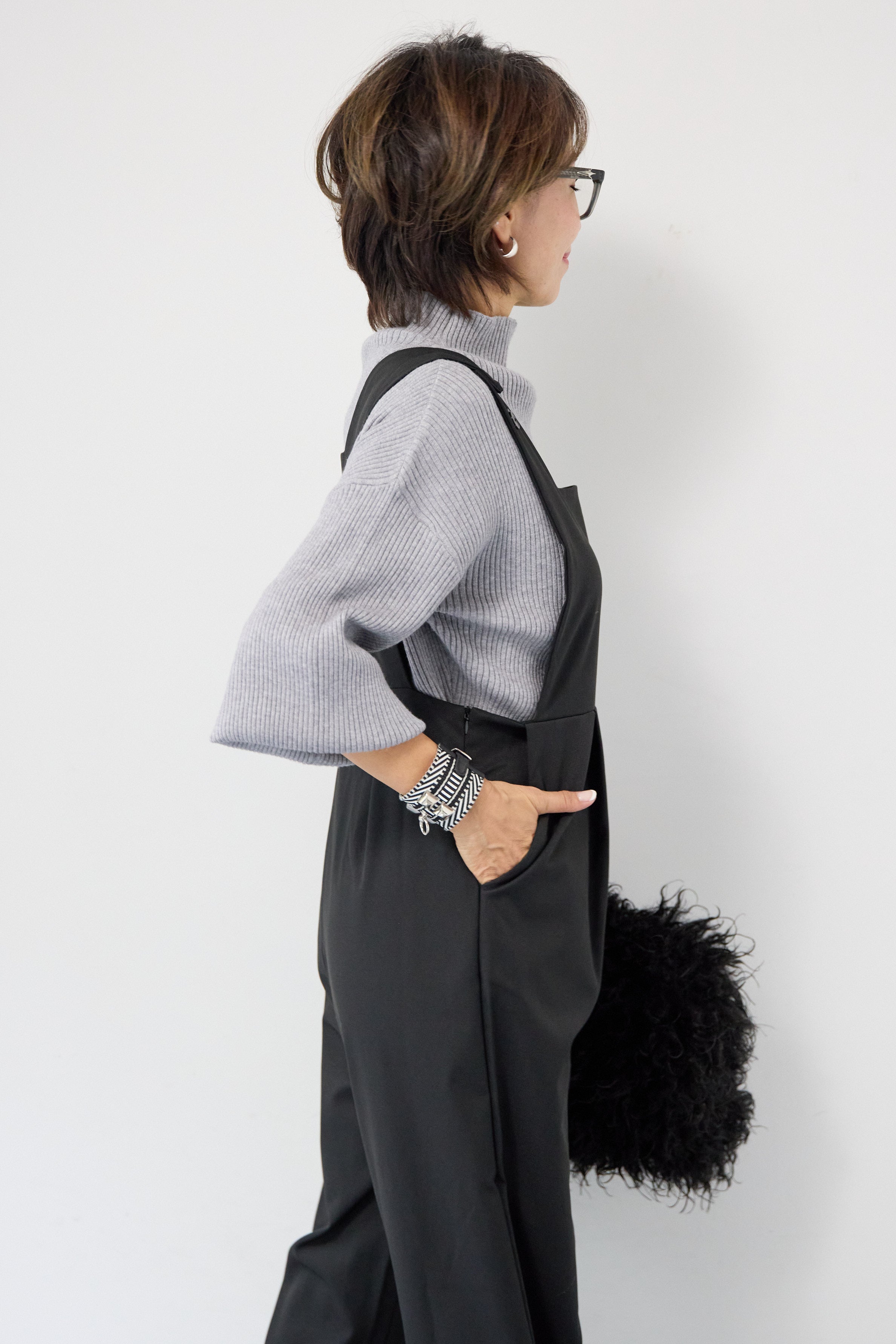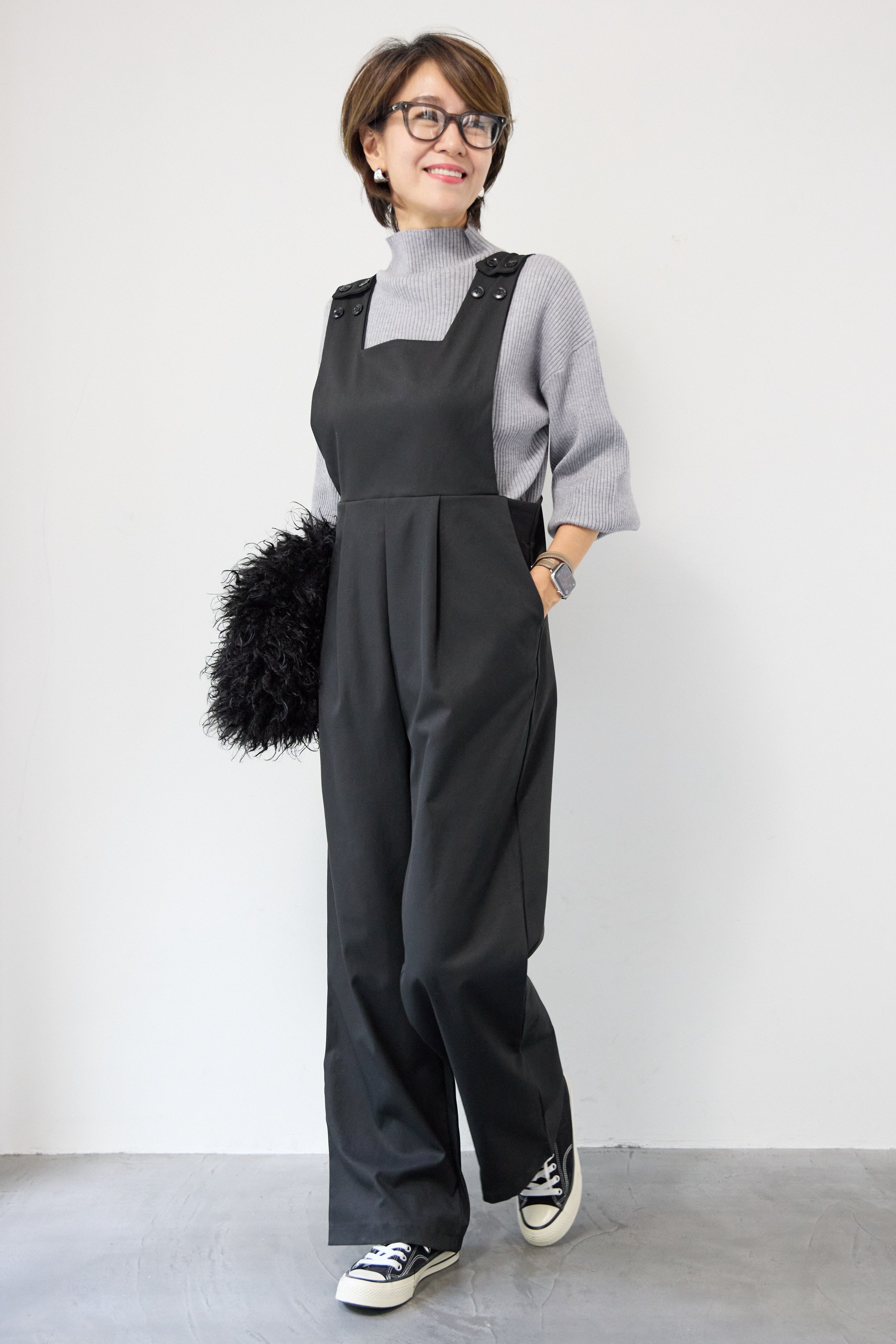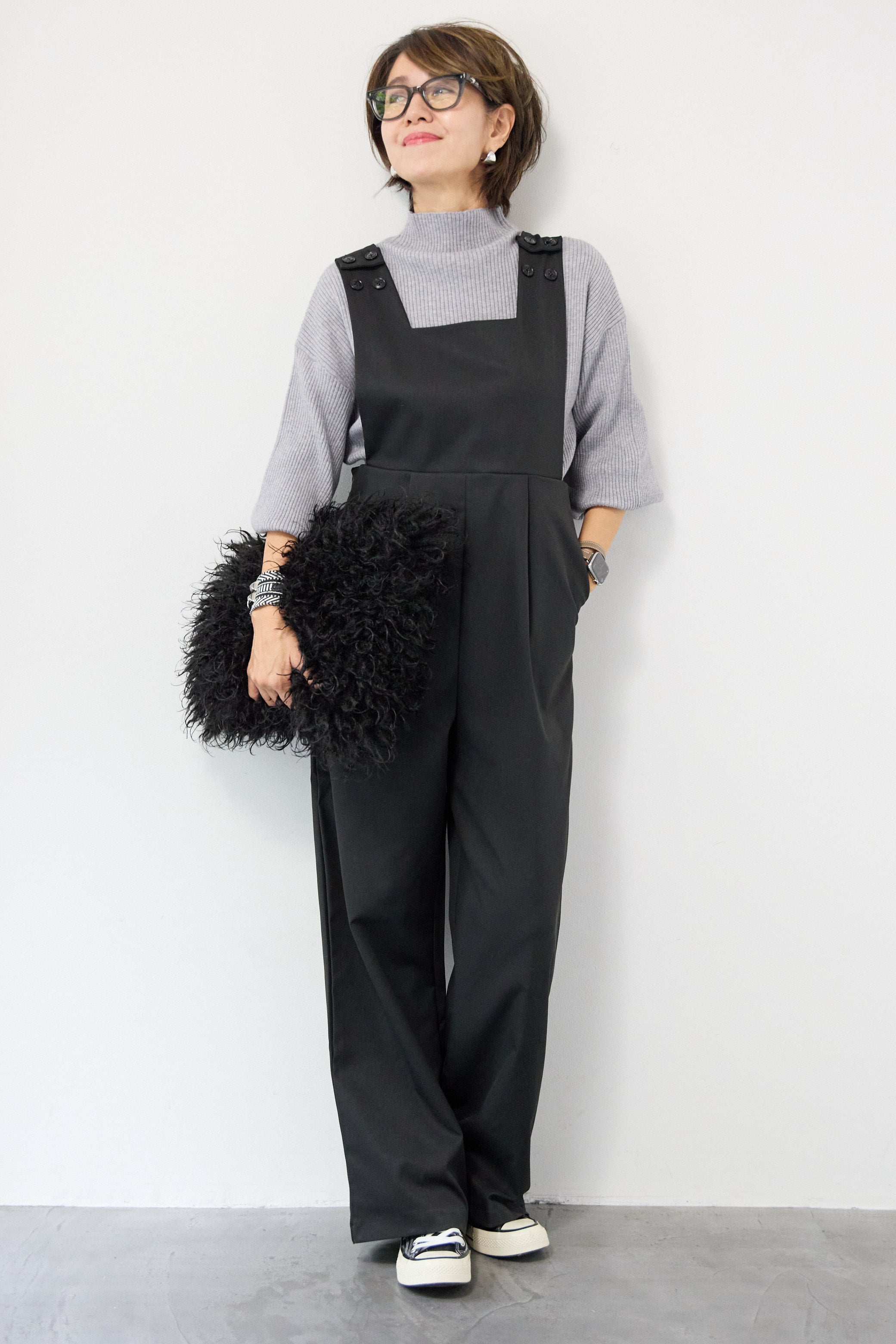 ハイウエストモードツイルサロペット