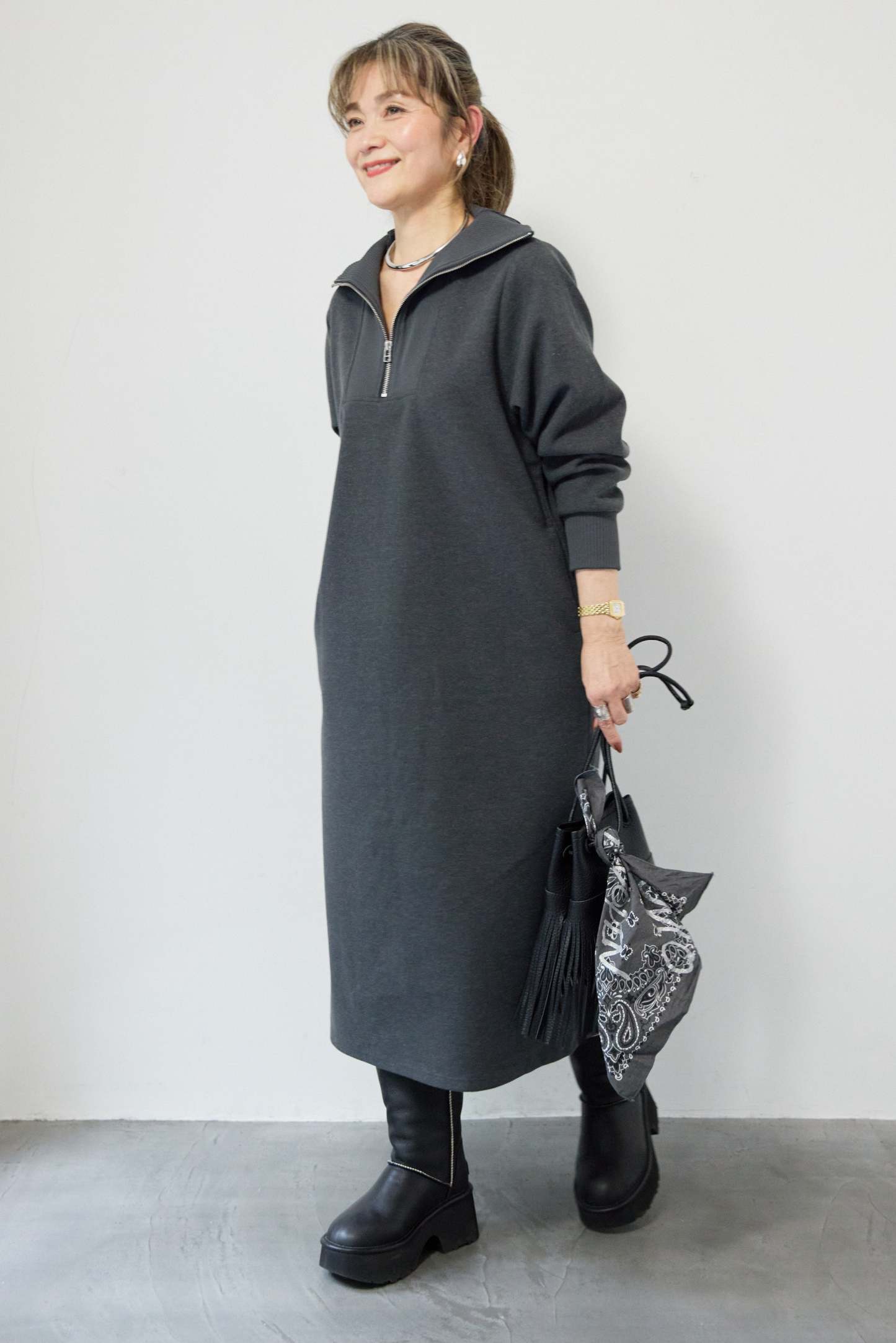 圧縮起毛ステンニットワンピース