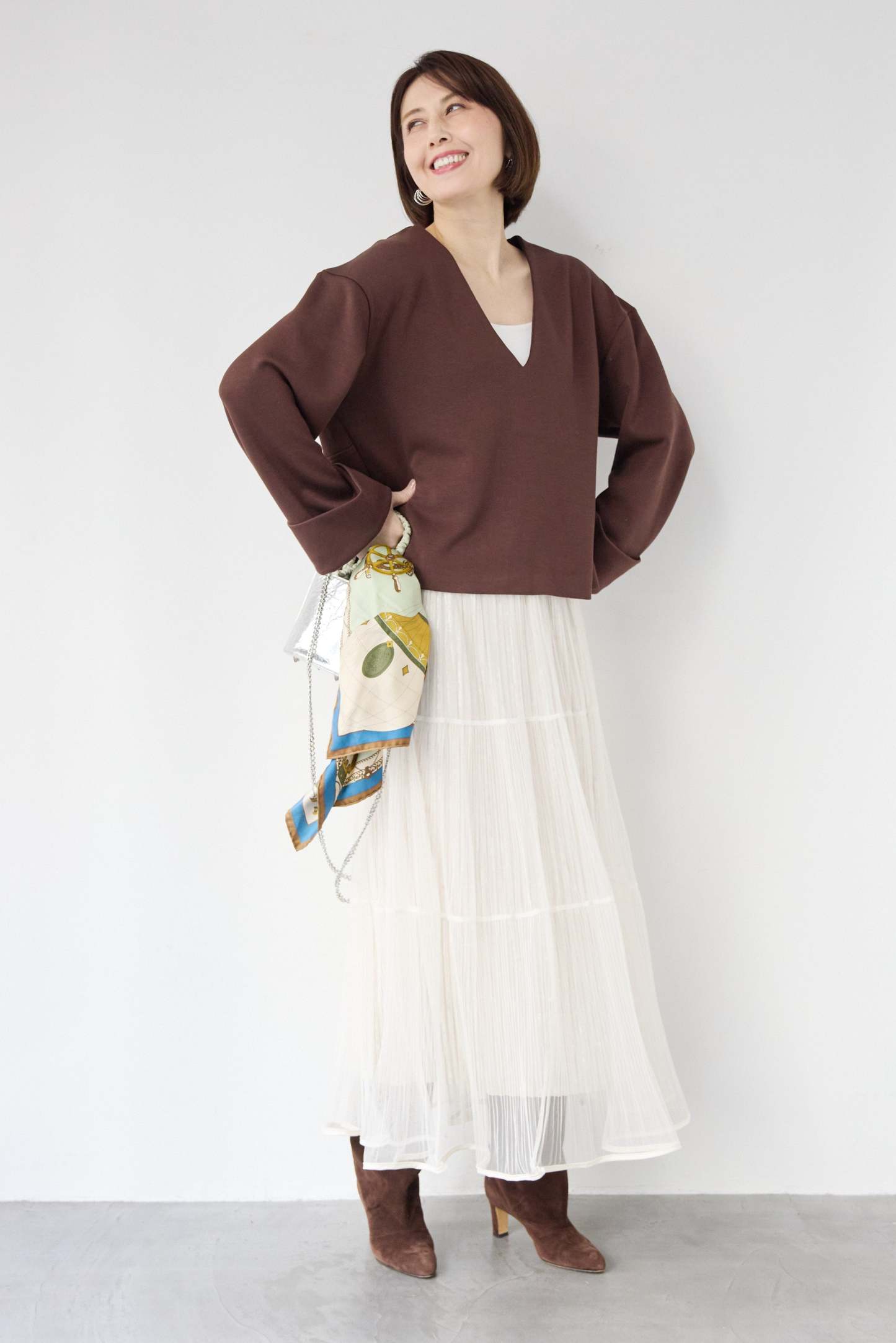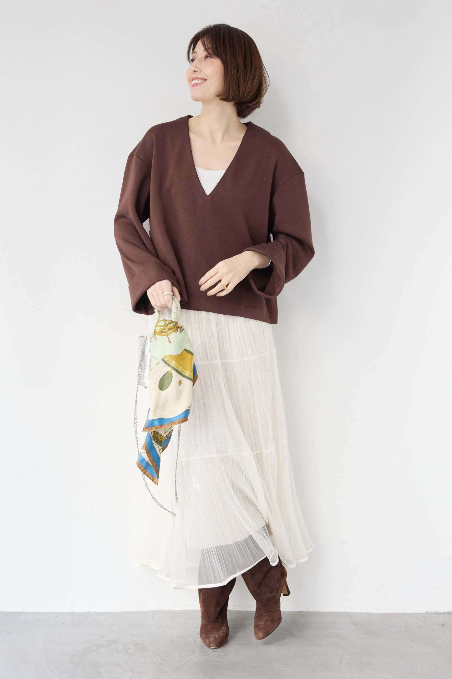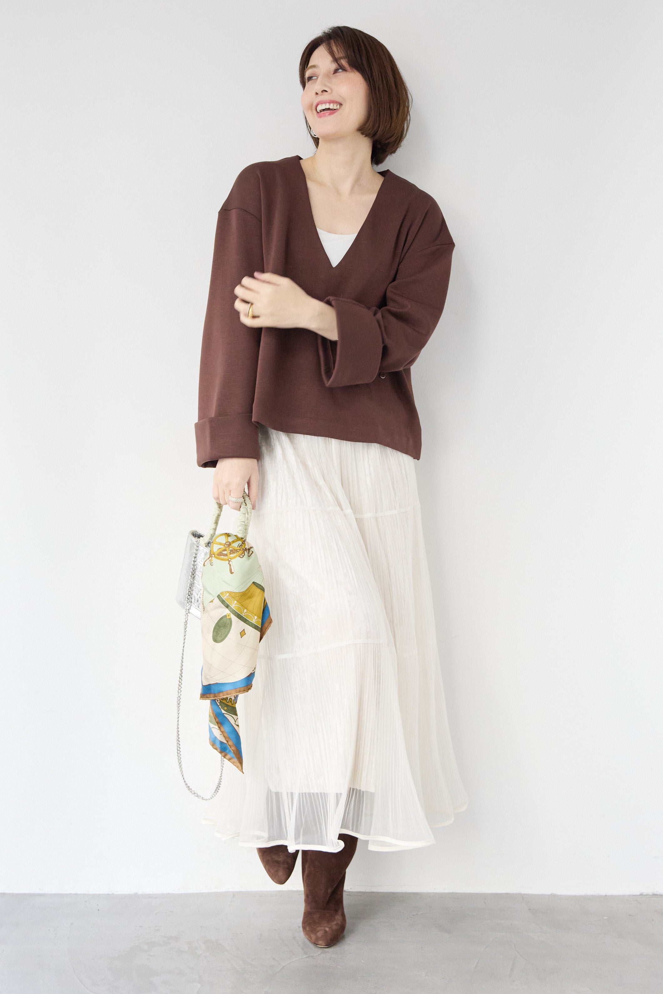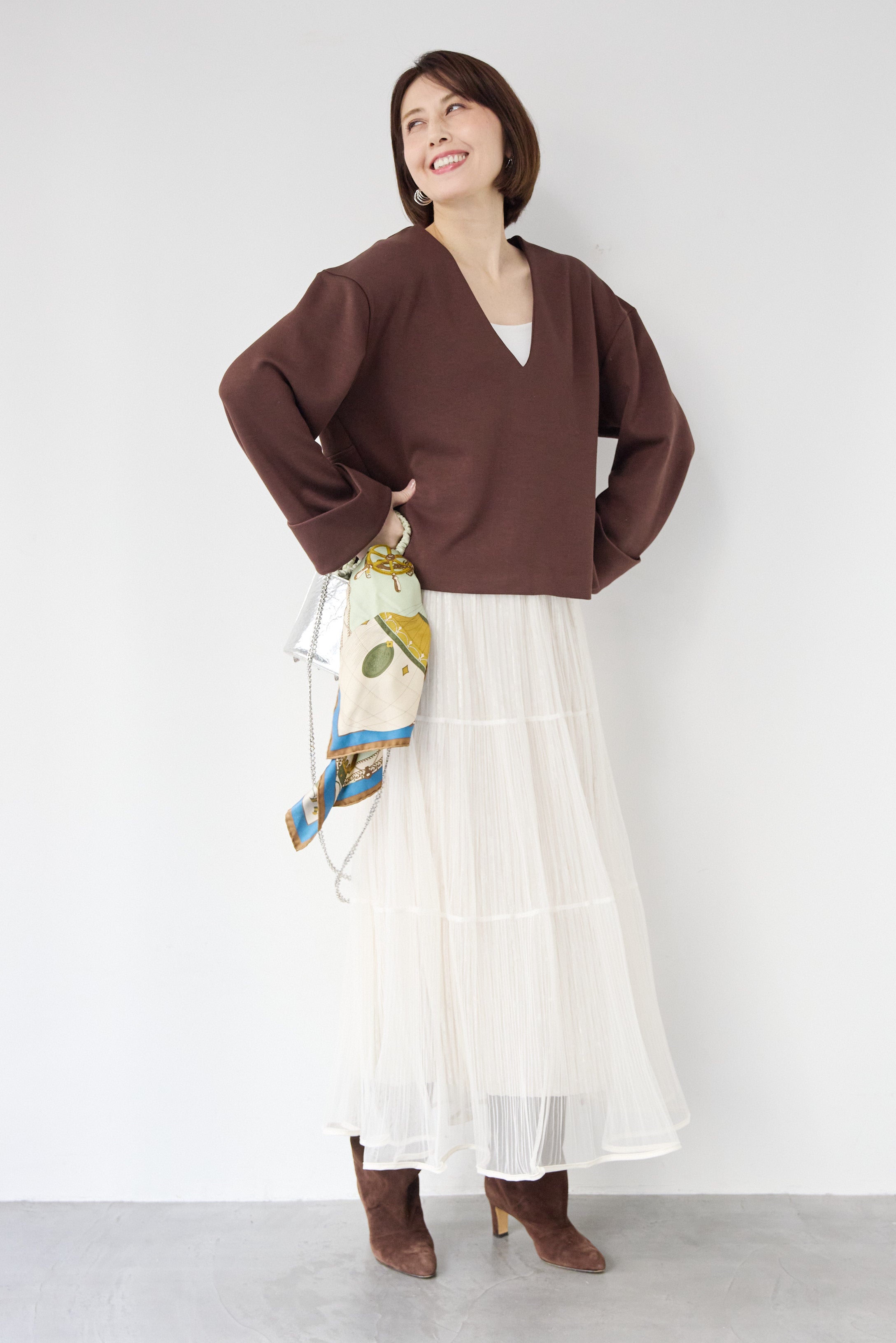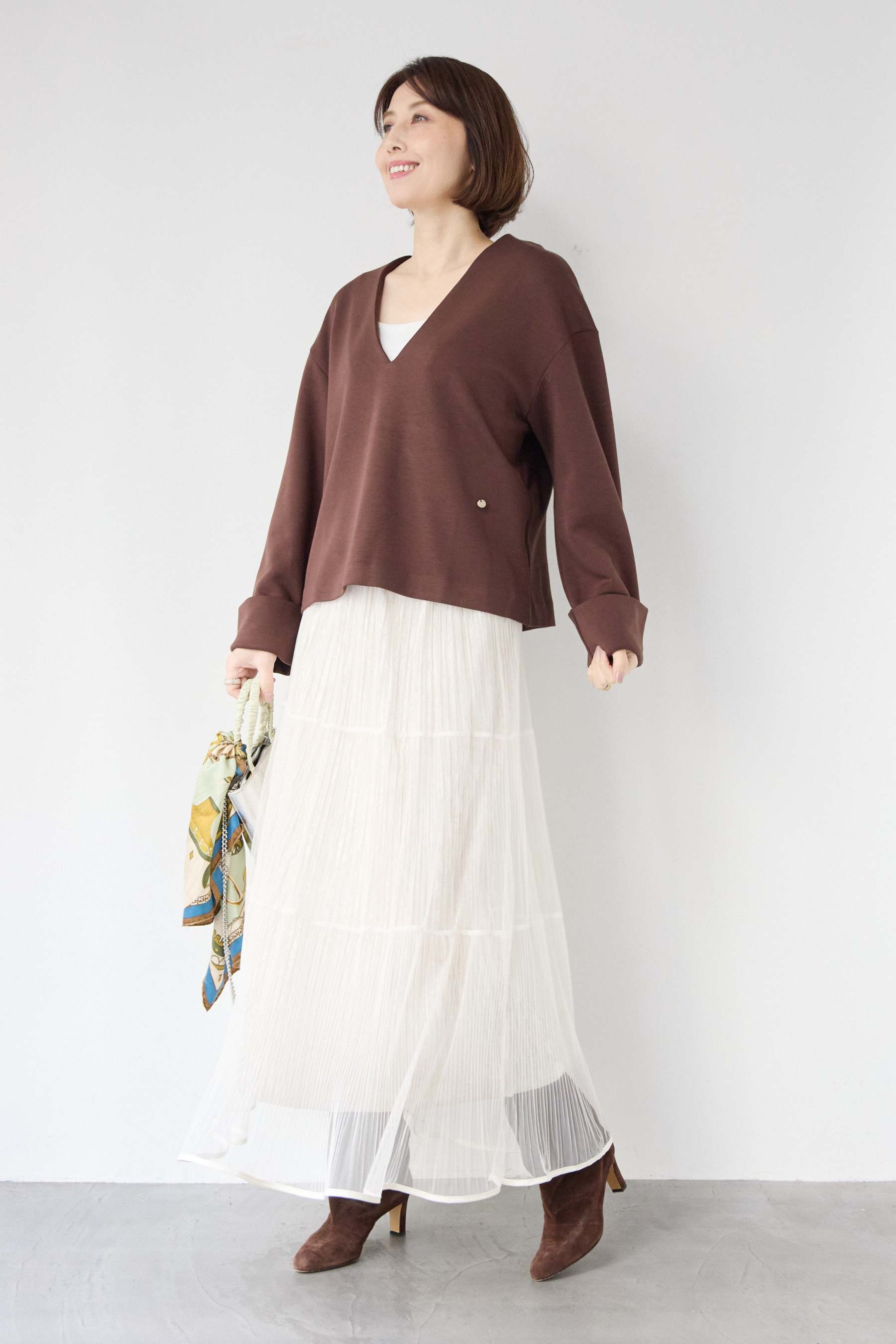 [SET]Vネックフリースダンボールプルオーバー+ライトチュールマキシスカート(2set)