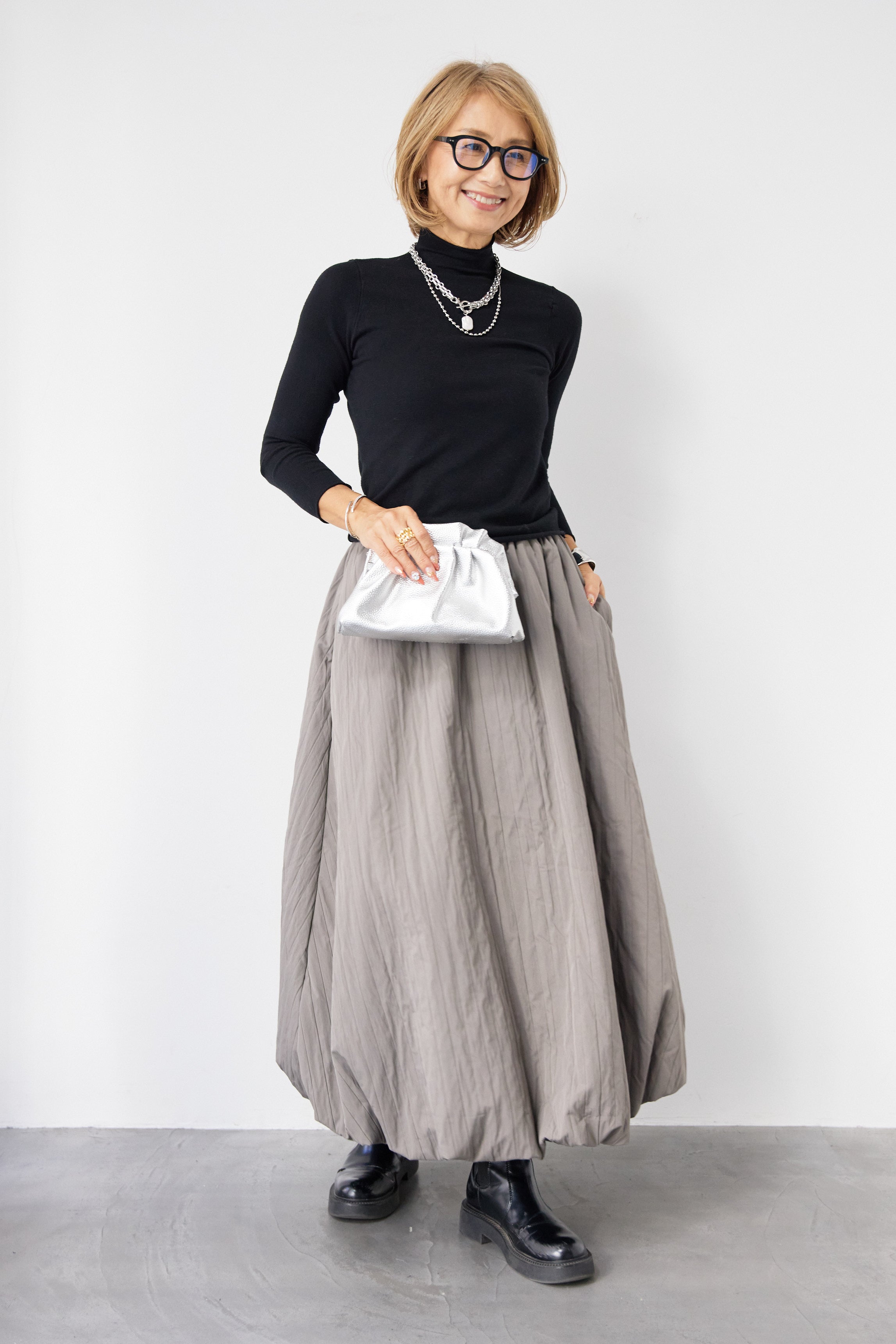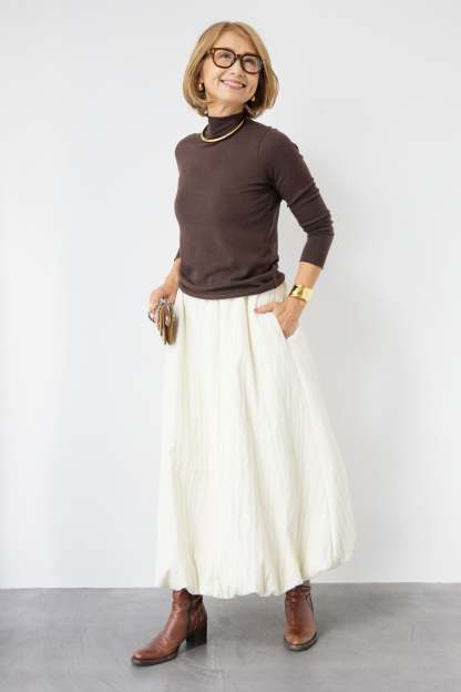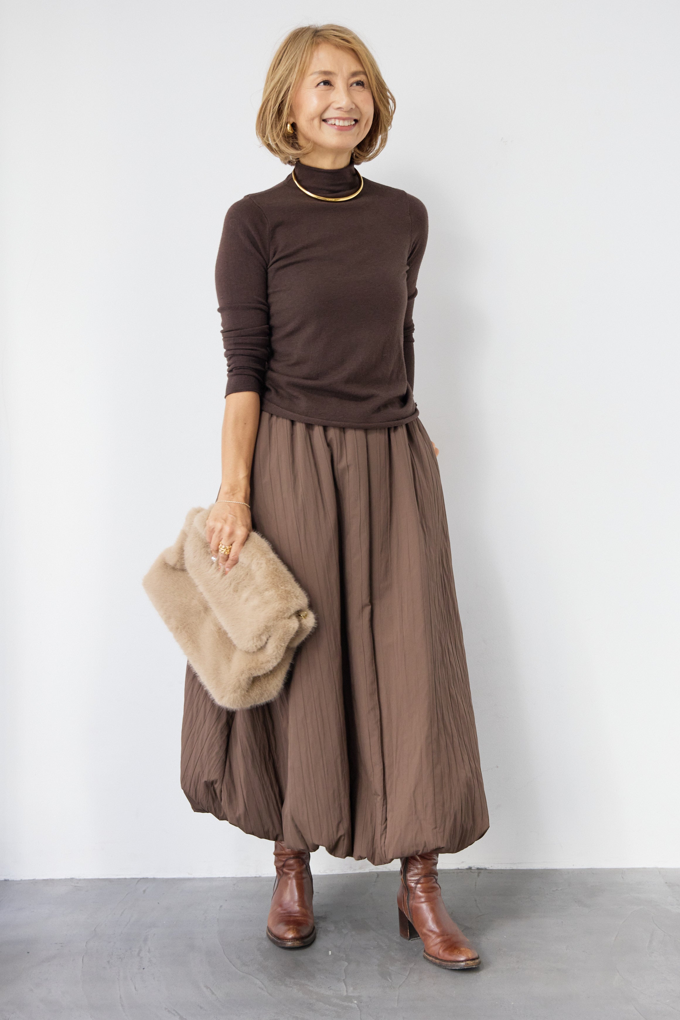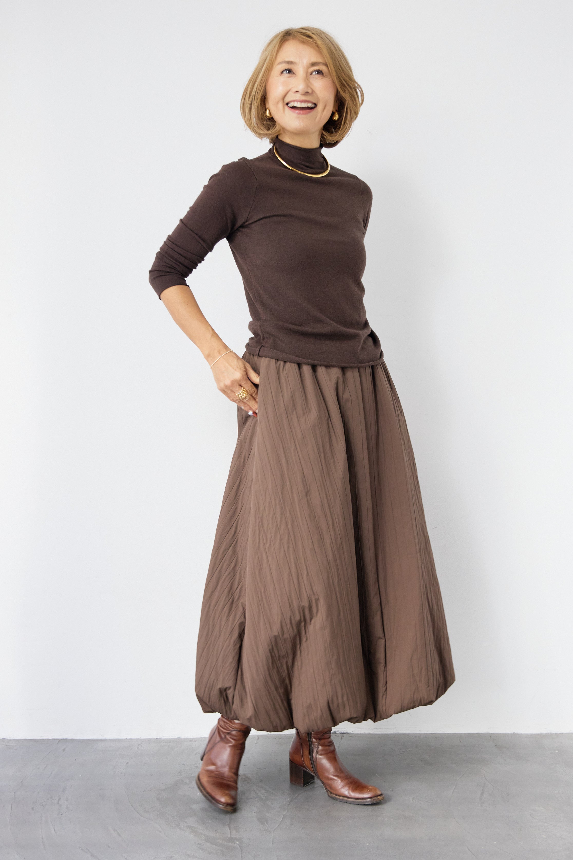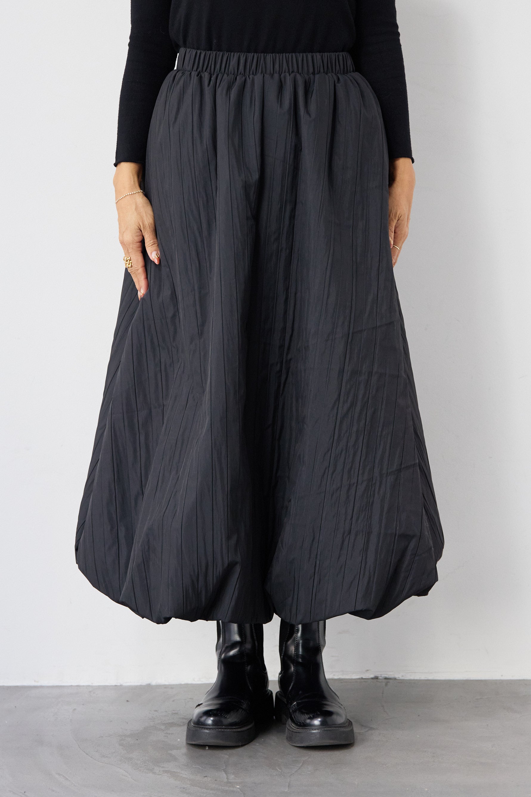 [SET]ロールエッジタートルニット+中綿エアリーバルーンスカート(2set)