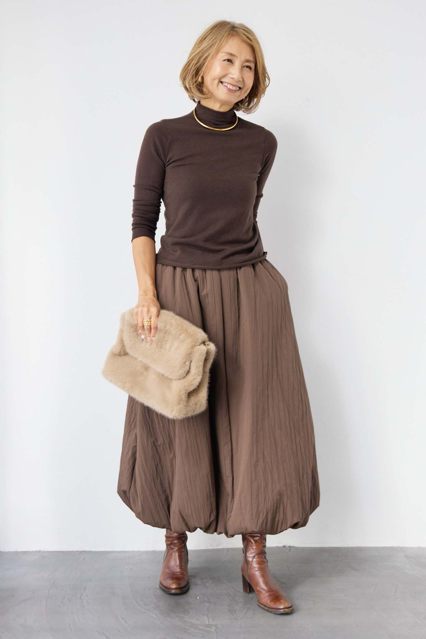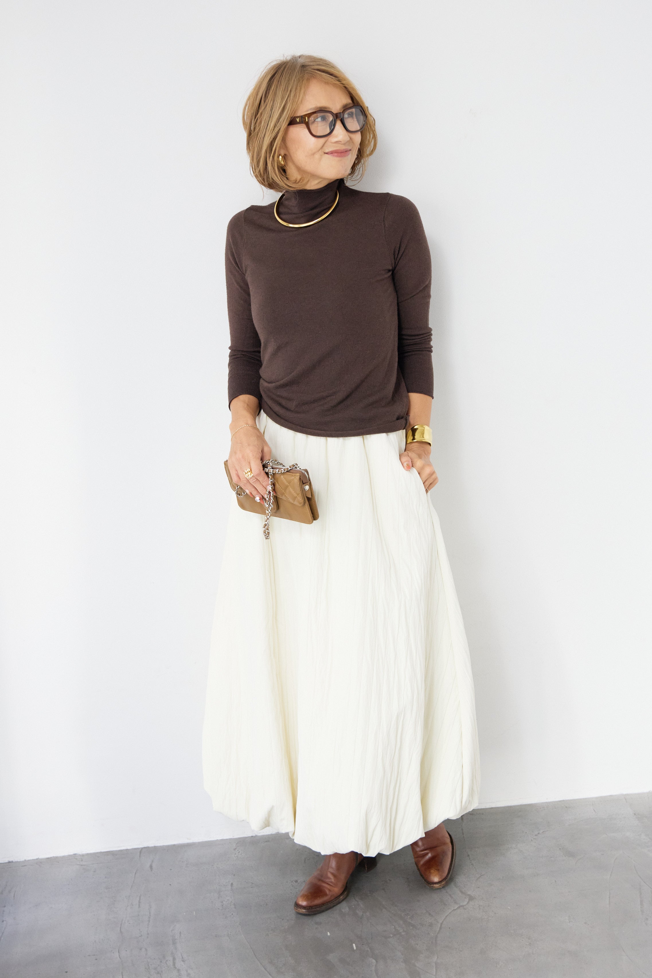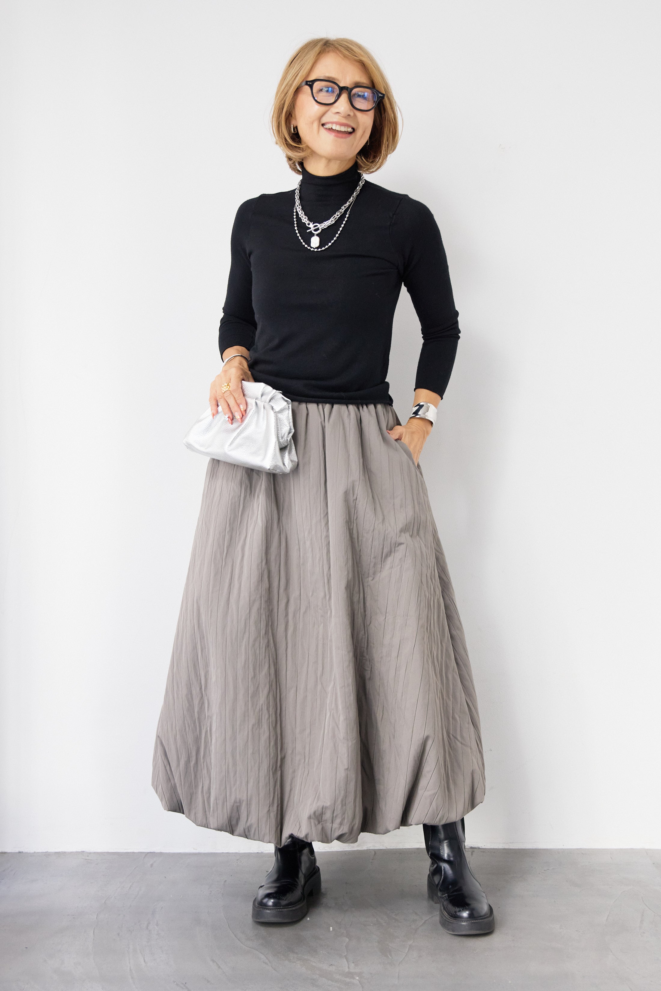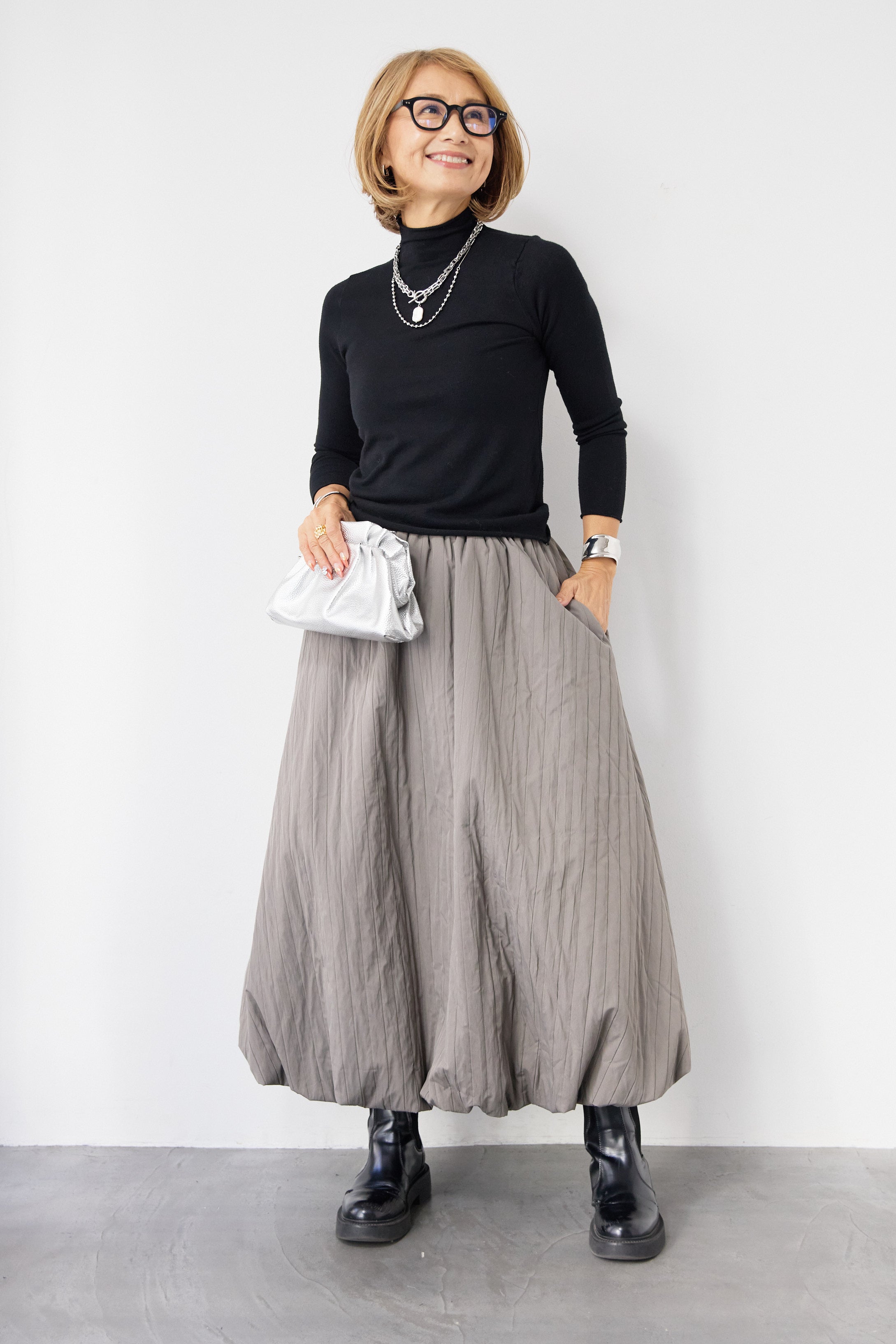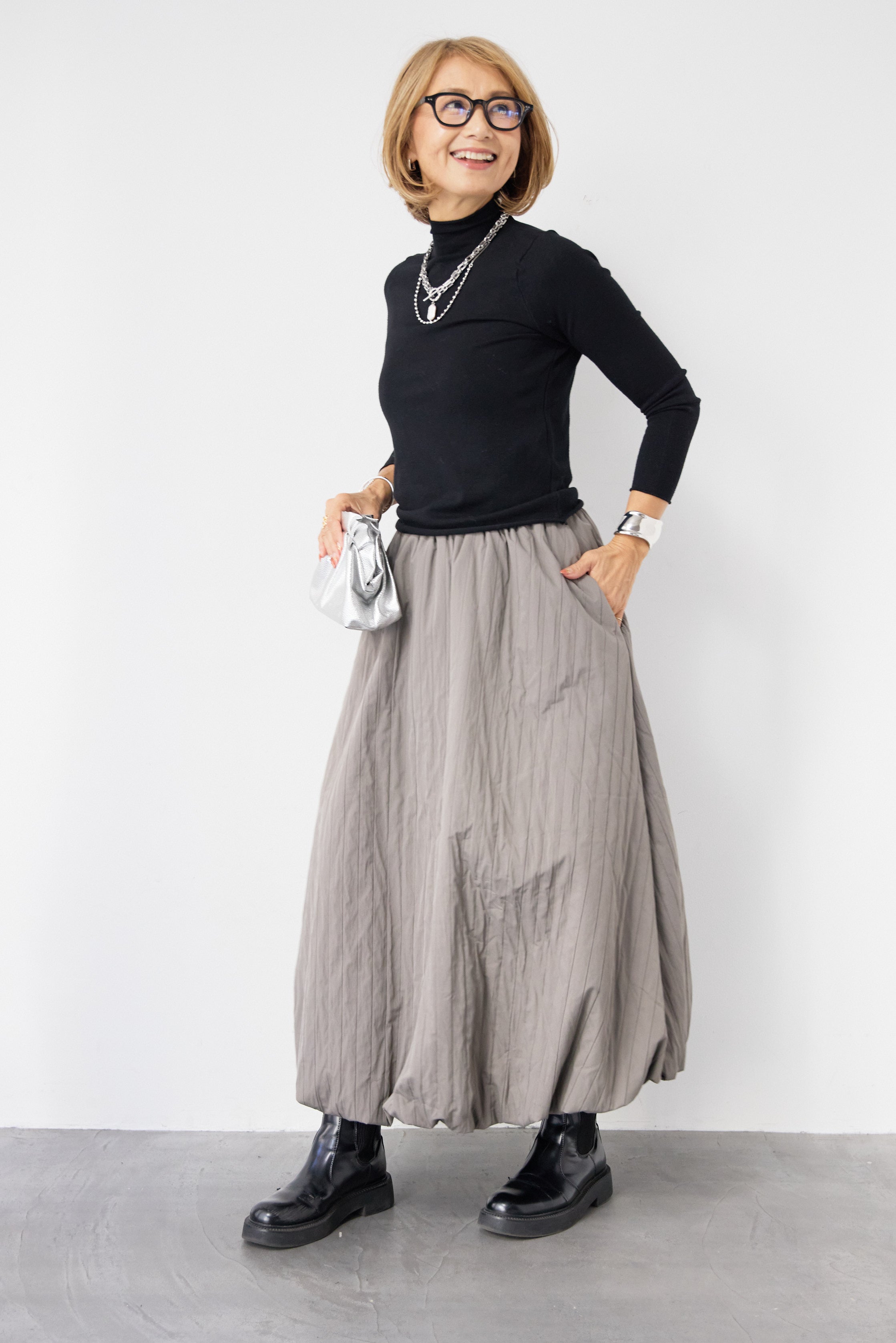[SET]ロールエッジタートルニット+中綿エアリーバルーンスカート(2set)