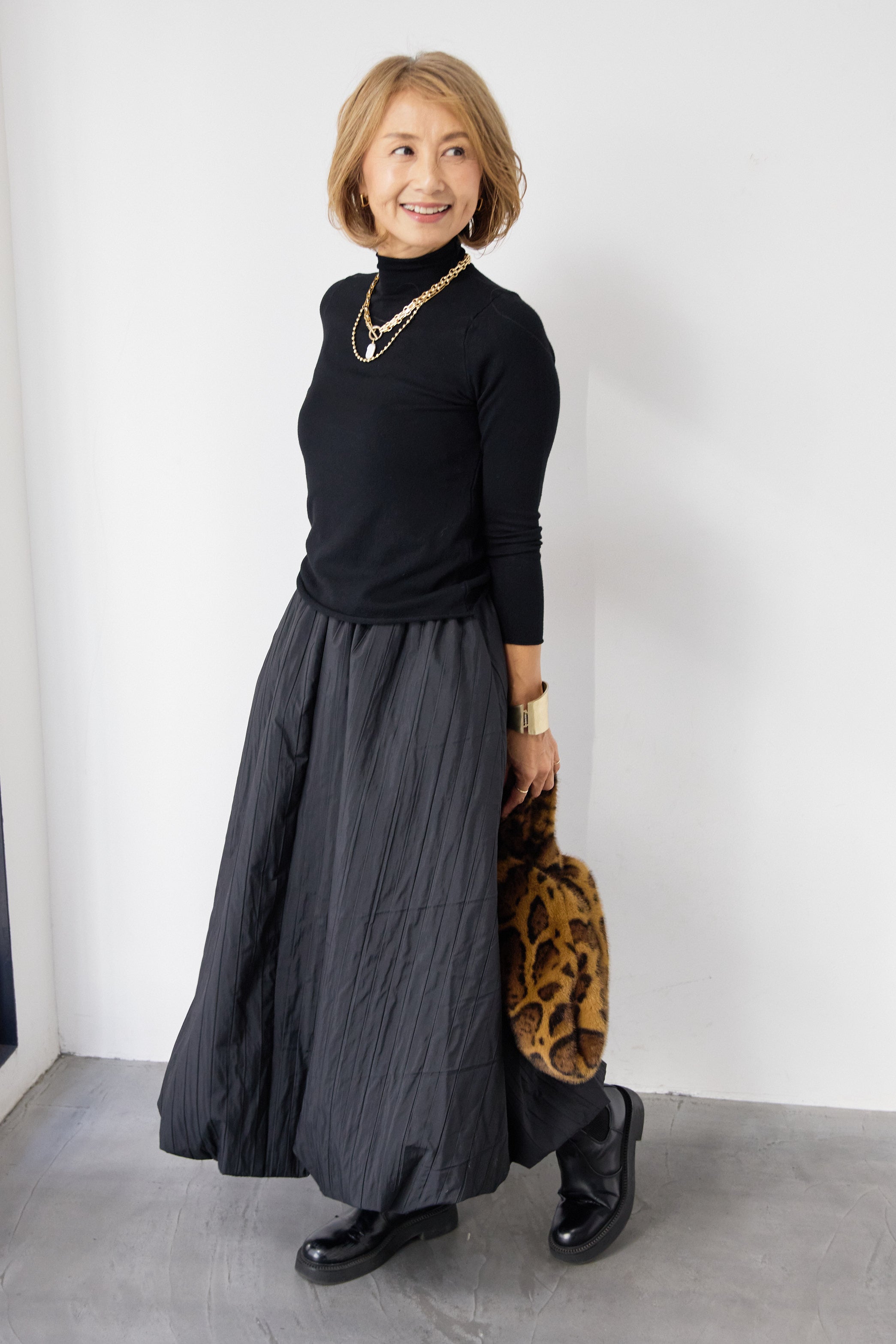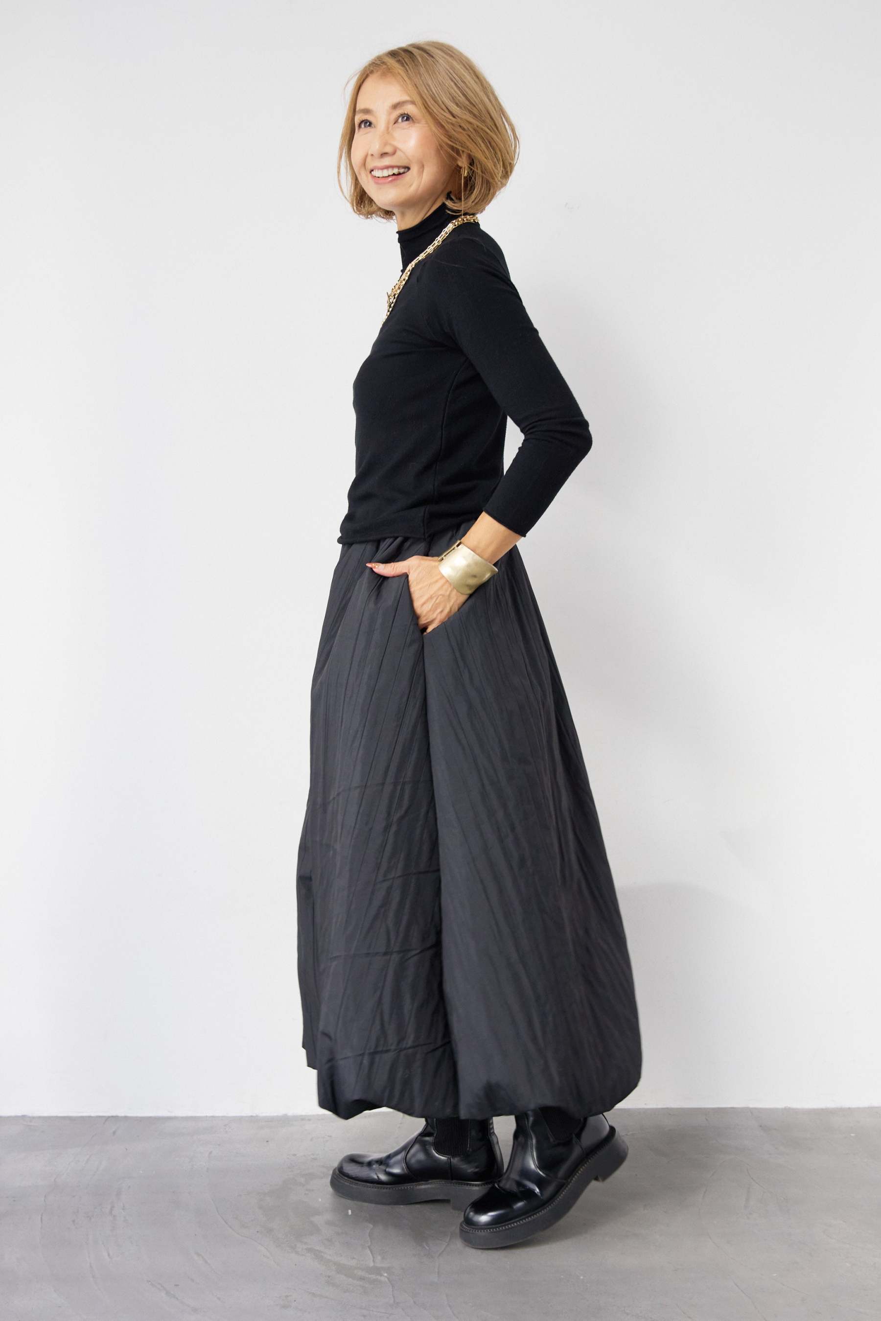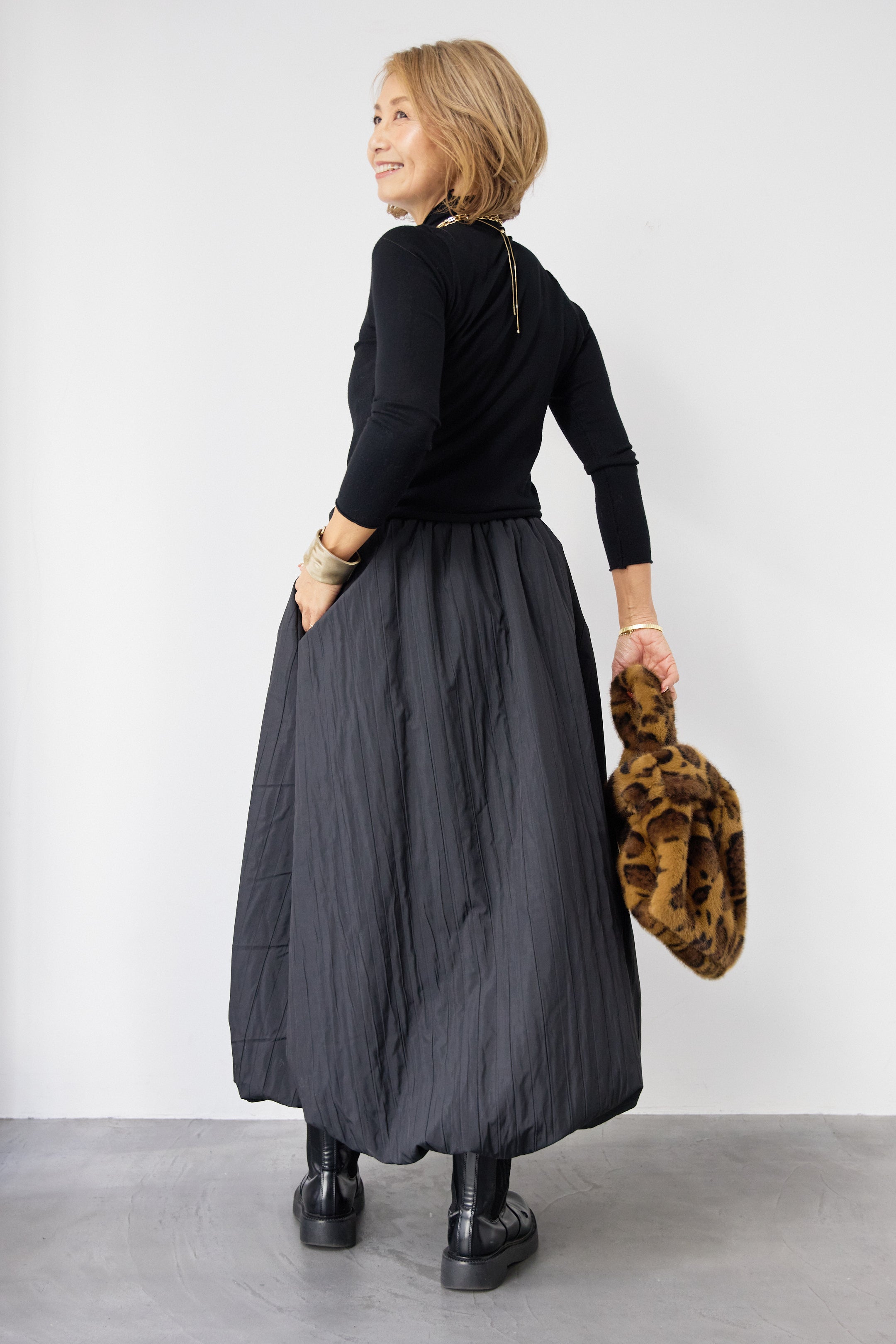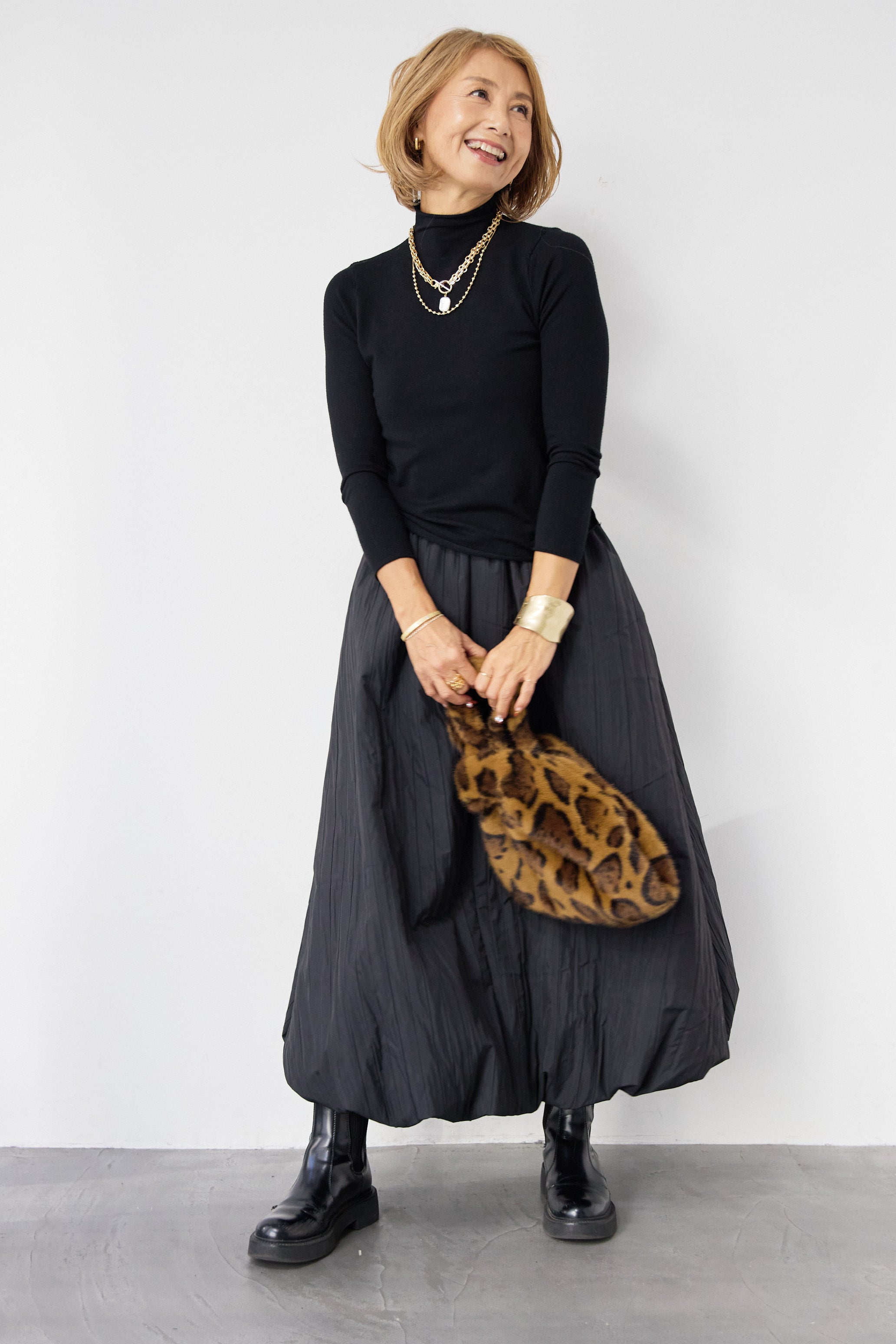 [SET]ロールエッジタートルニット+中綿エアリーバルーンスカート(2set)