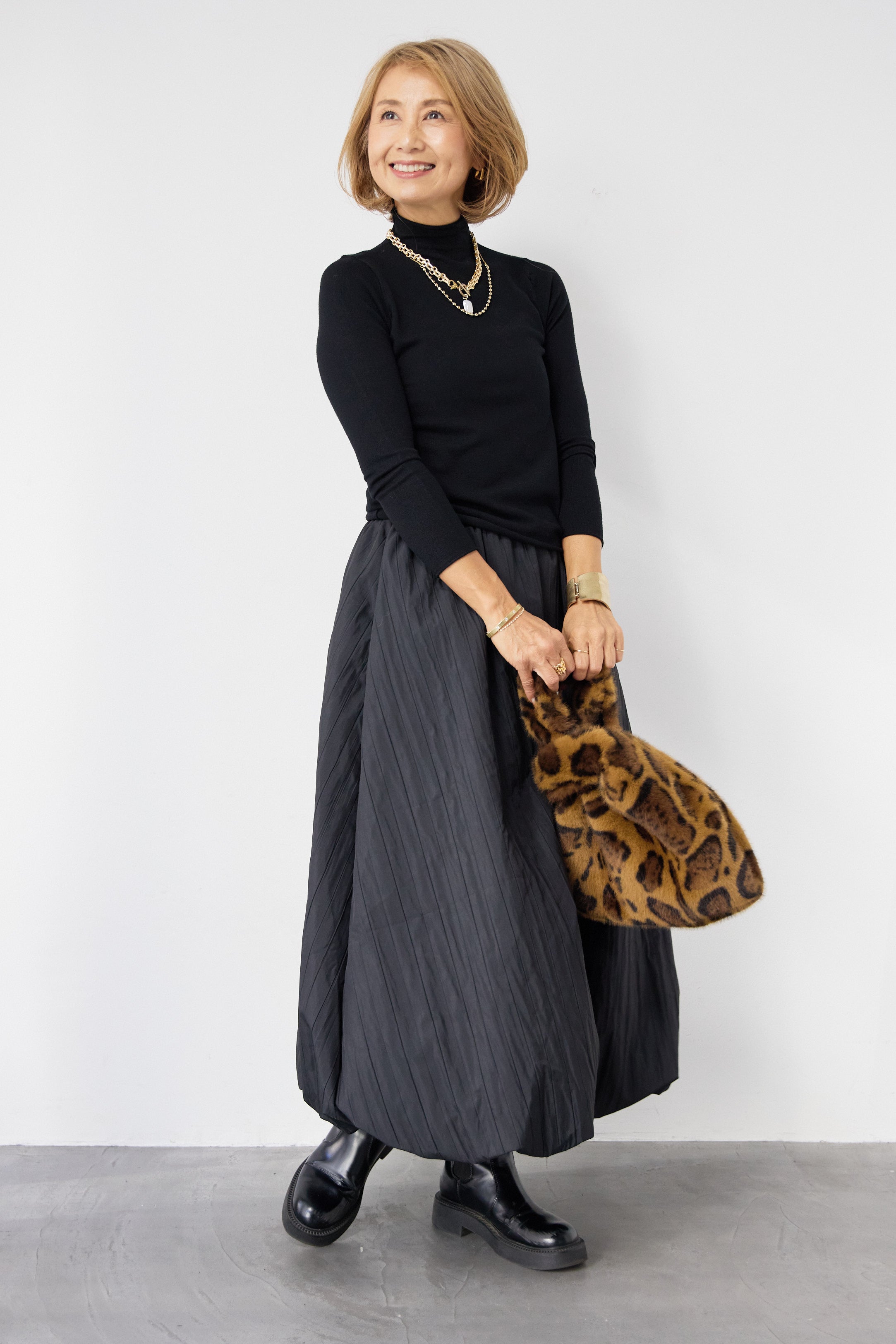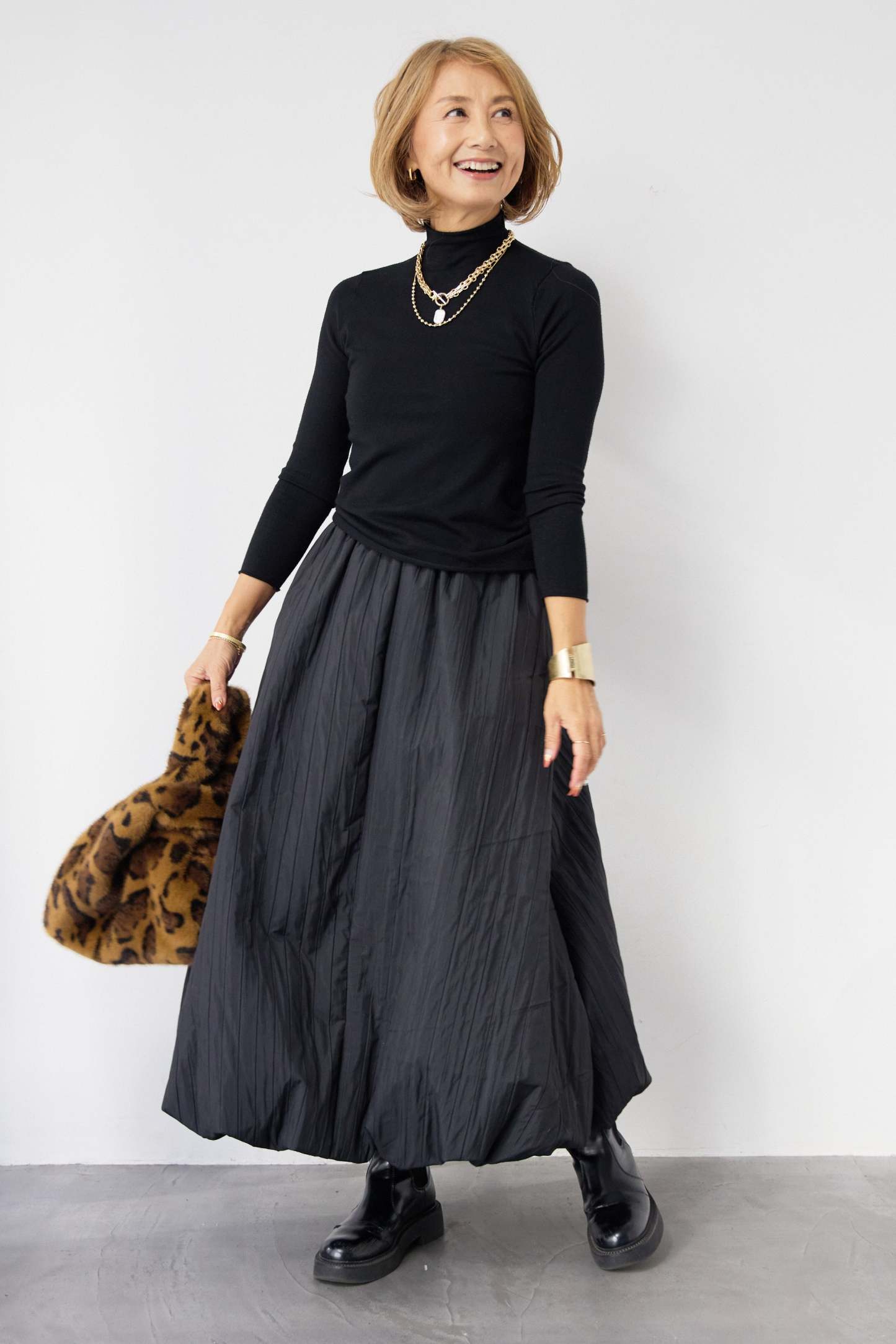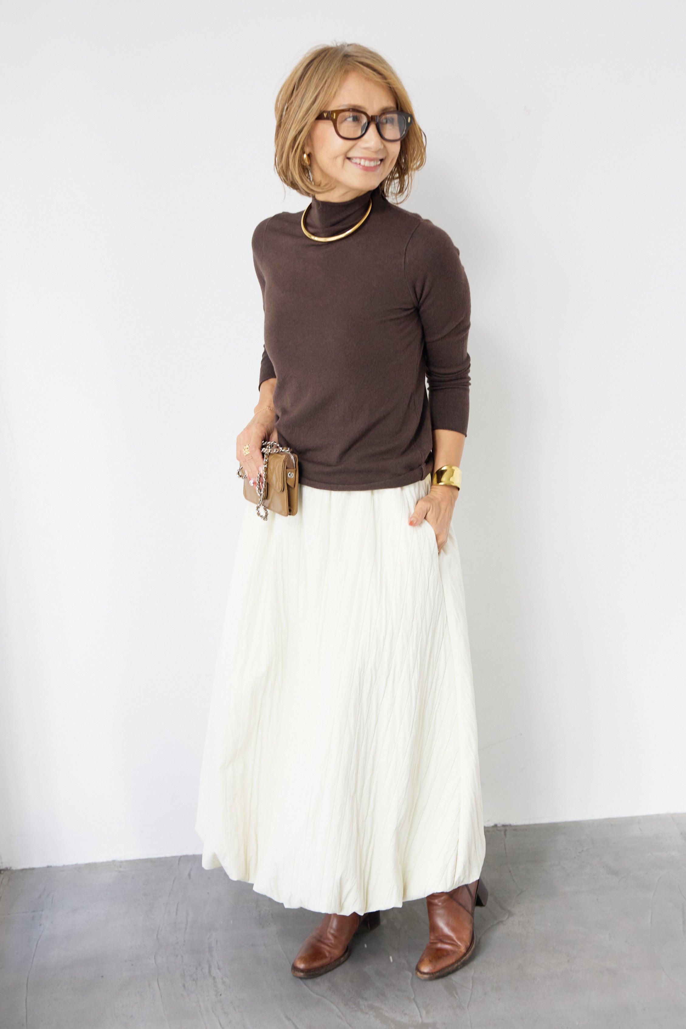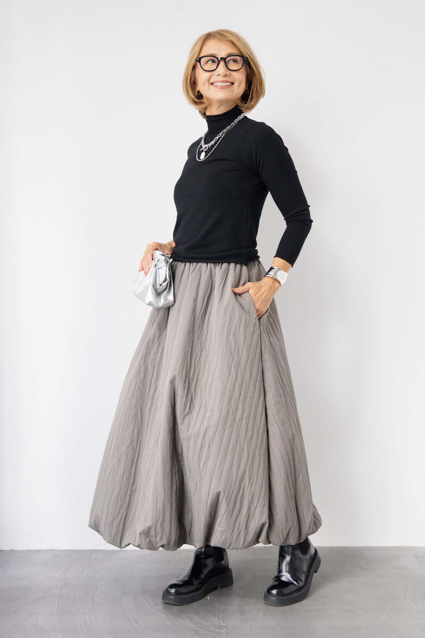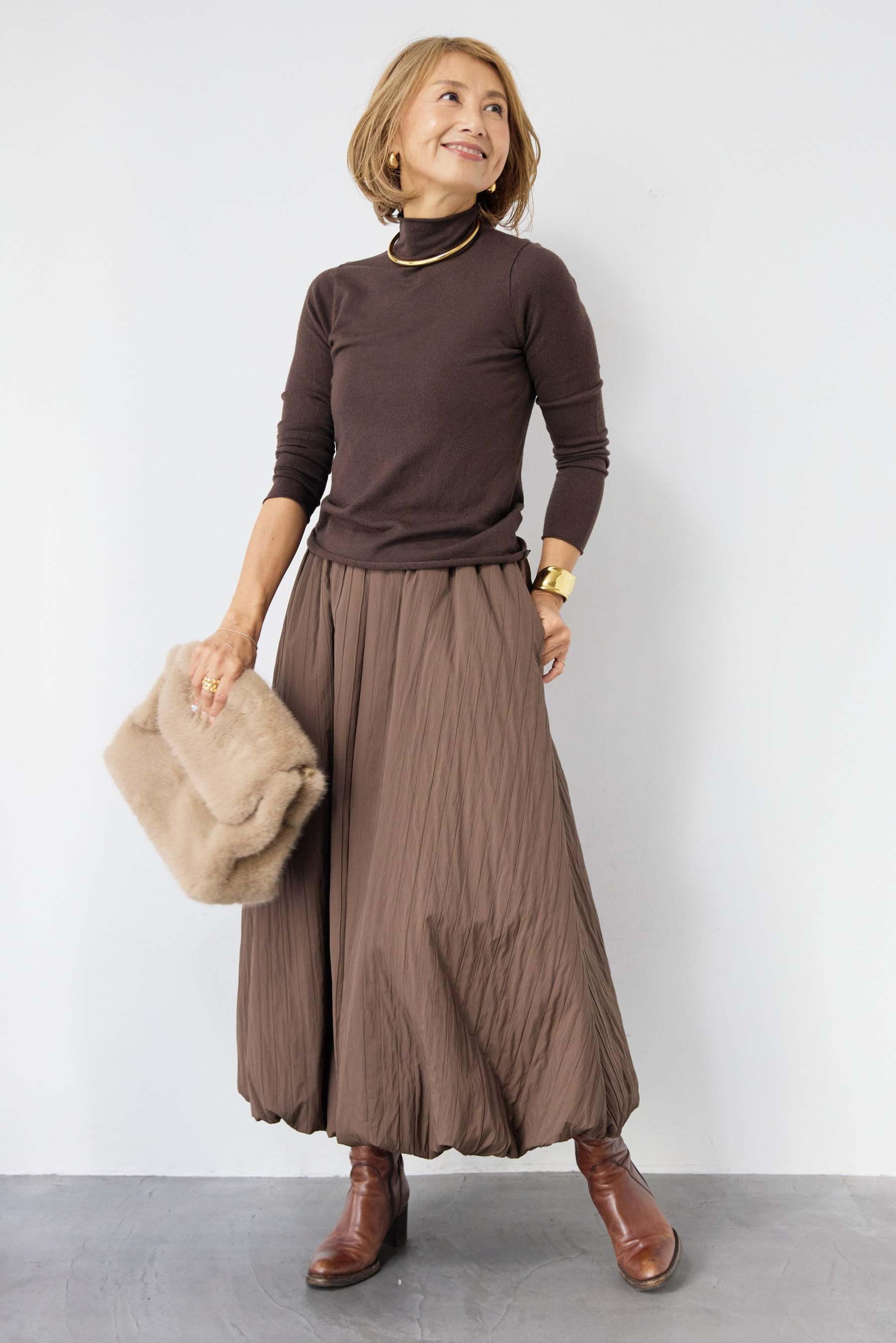 [SET]ロールエッジタートルニット+中綿エアリーバルーンスカート(2set)