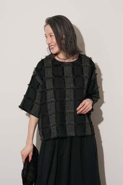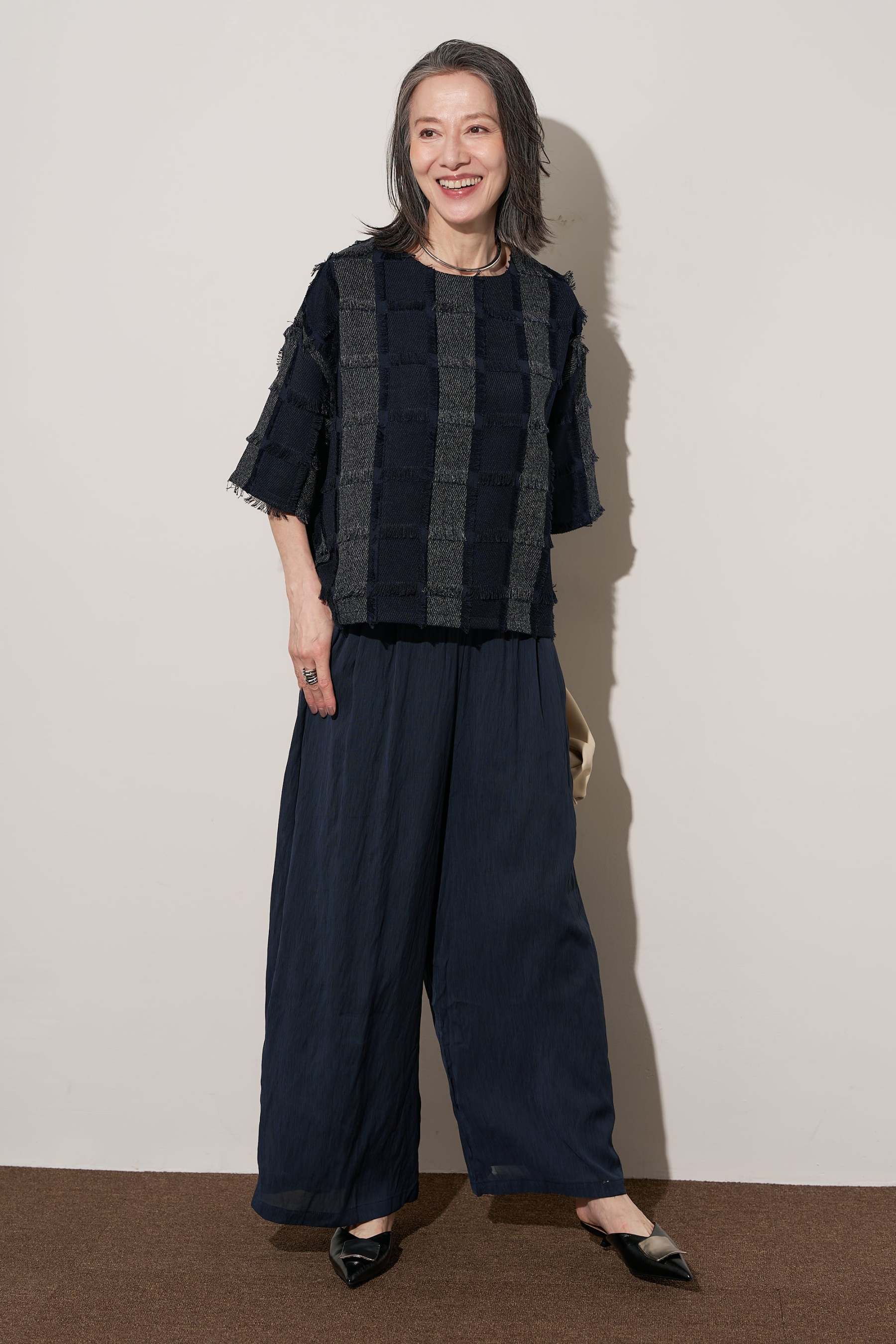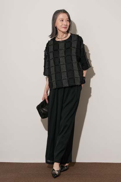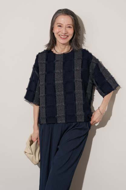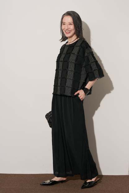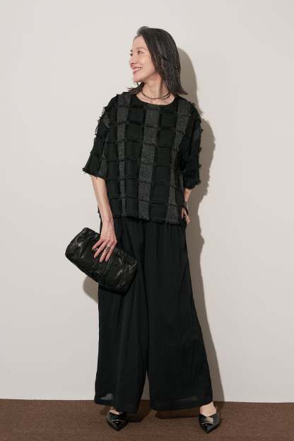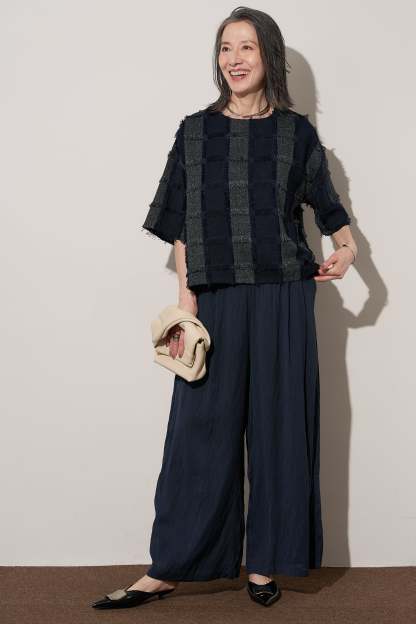 [SET]ジャガードフリンジプルオーバー+ギャザーリラックスパンツ(2set)