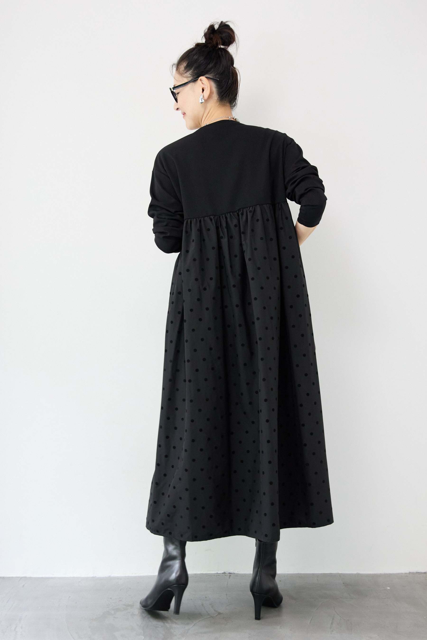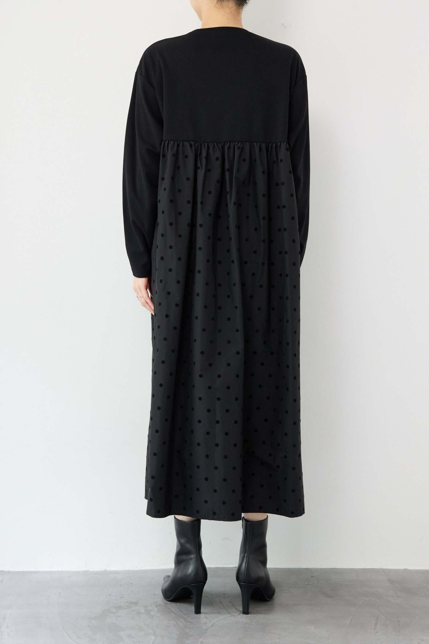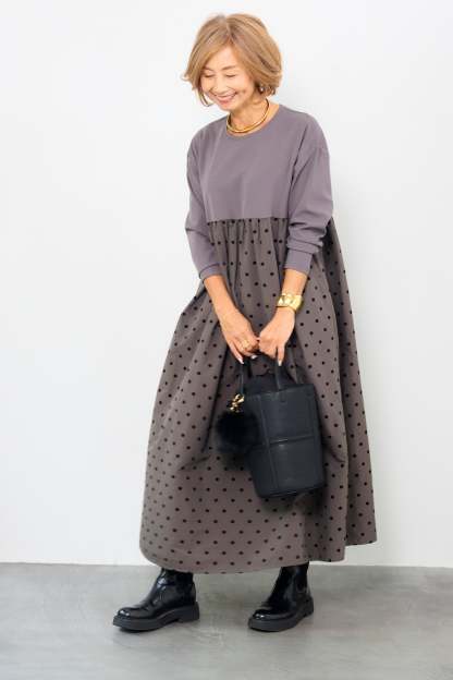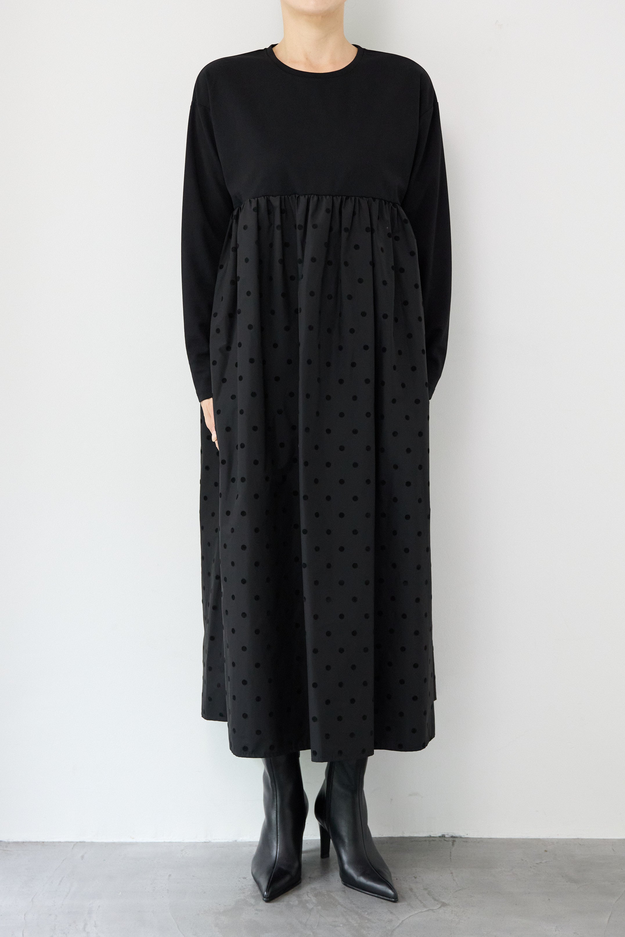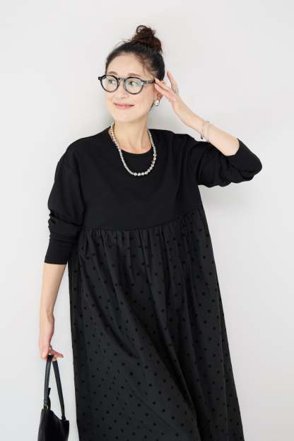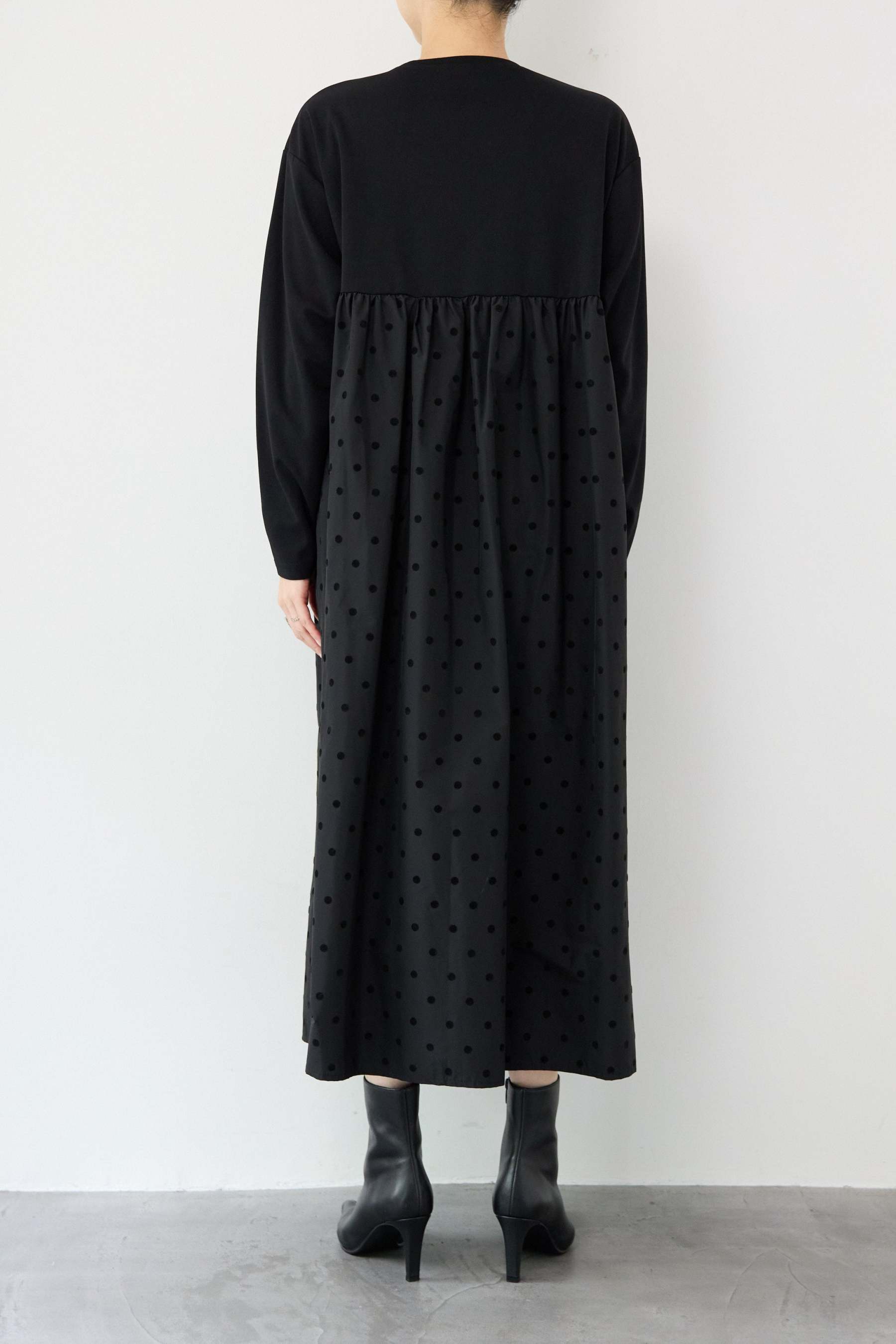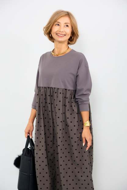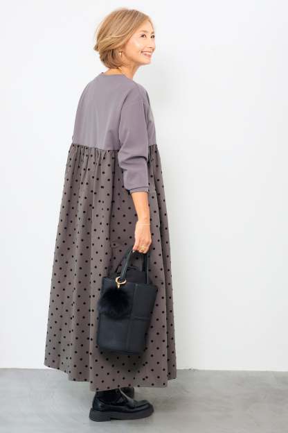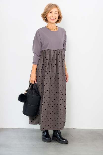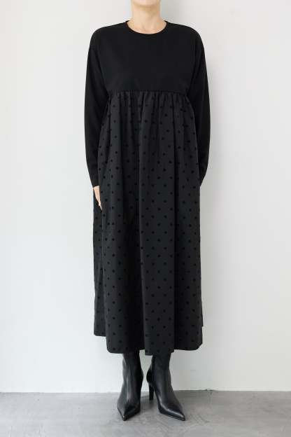フロッキードット切替ワンピース