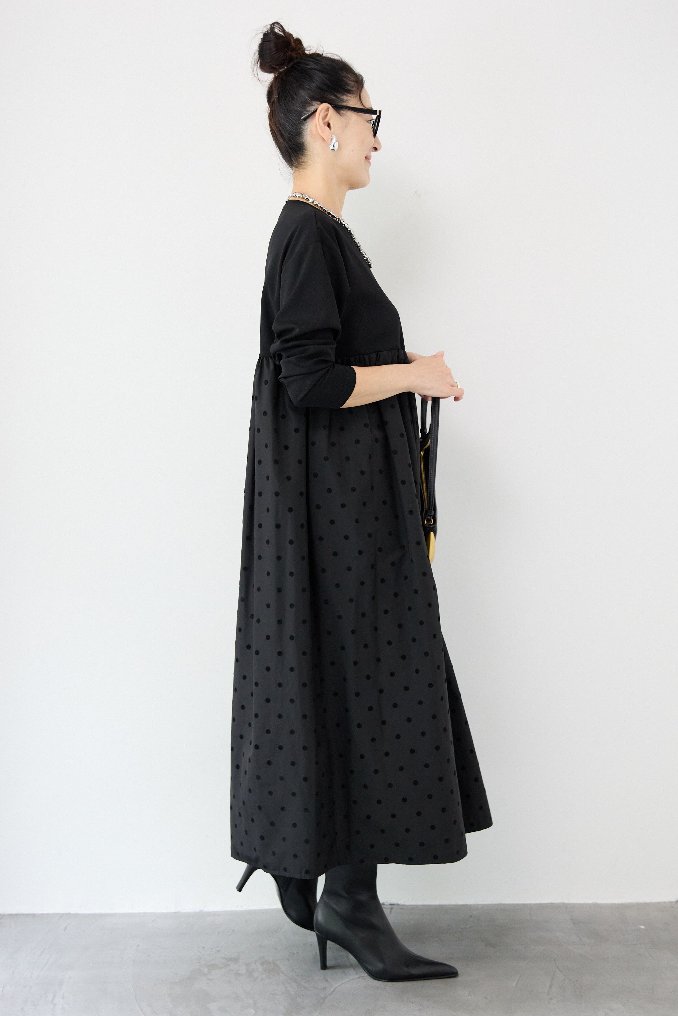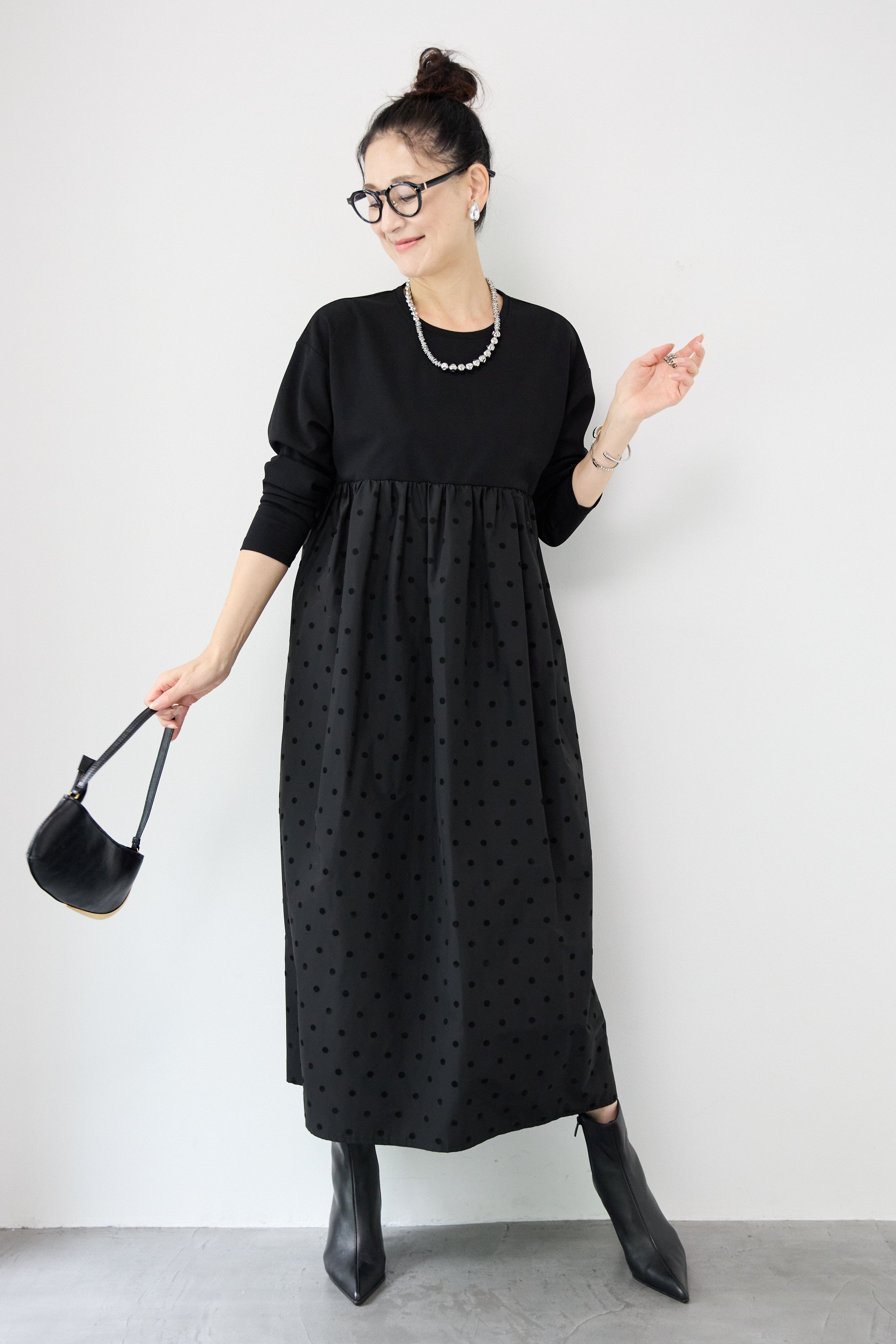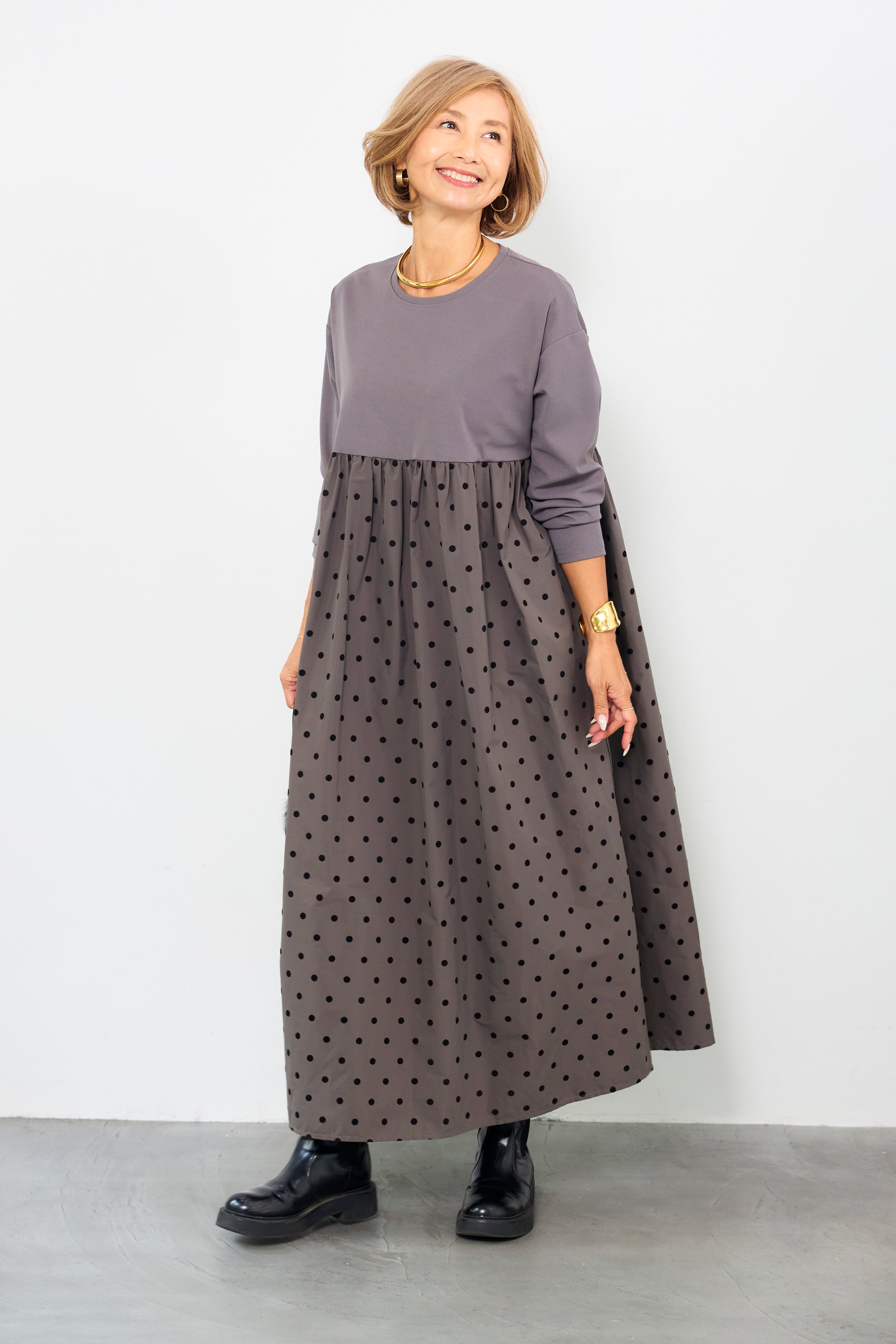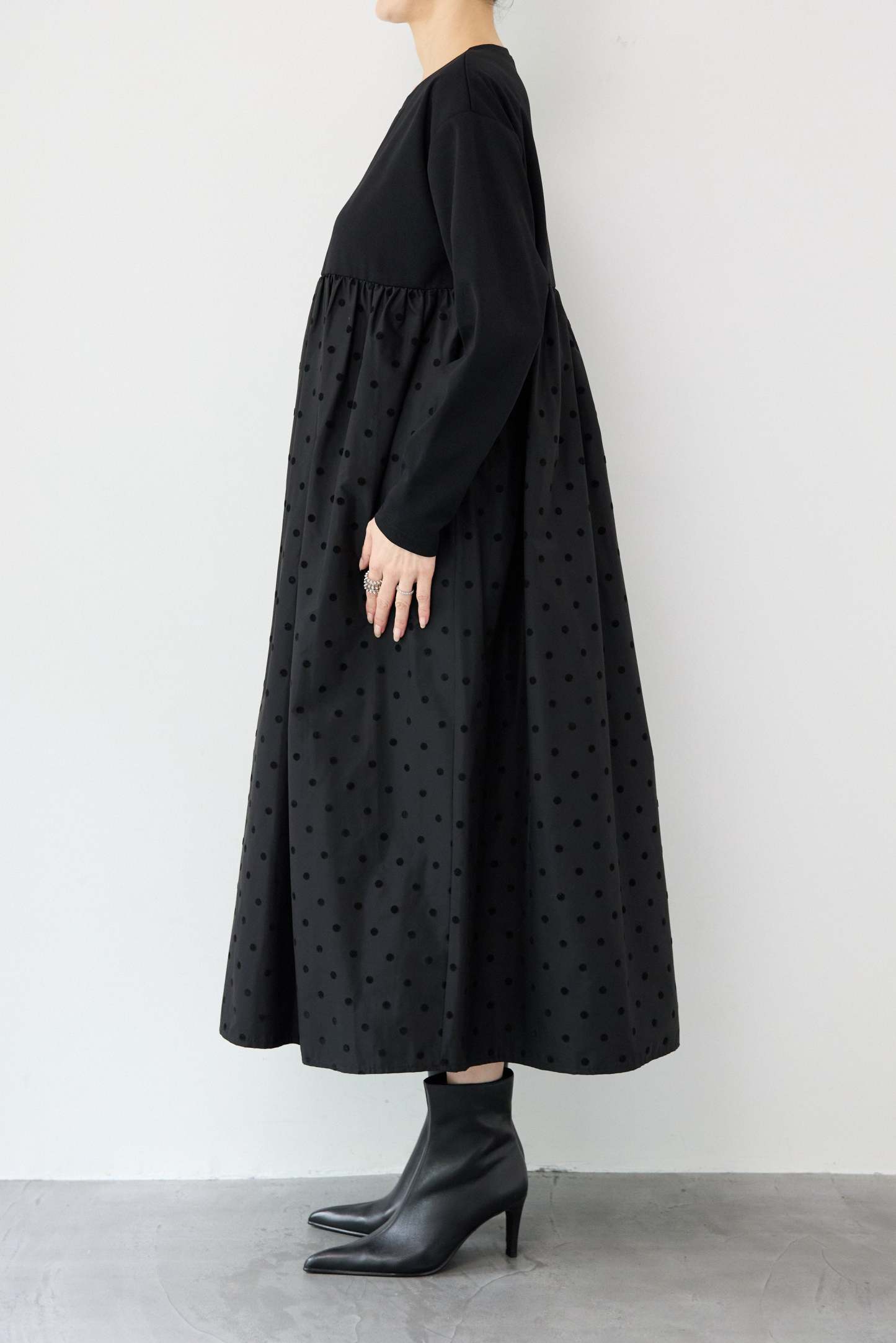フロッキードット切替ワンピース