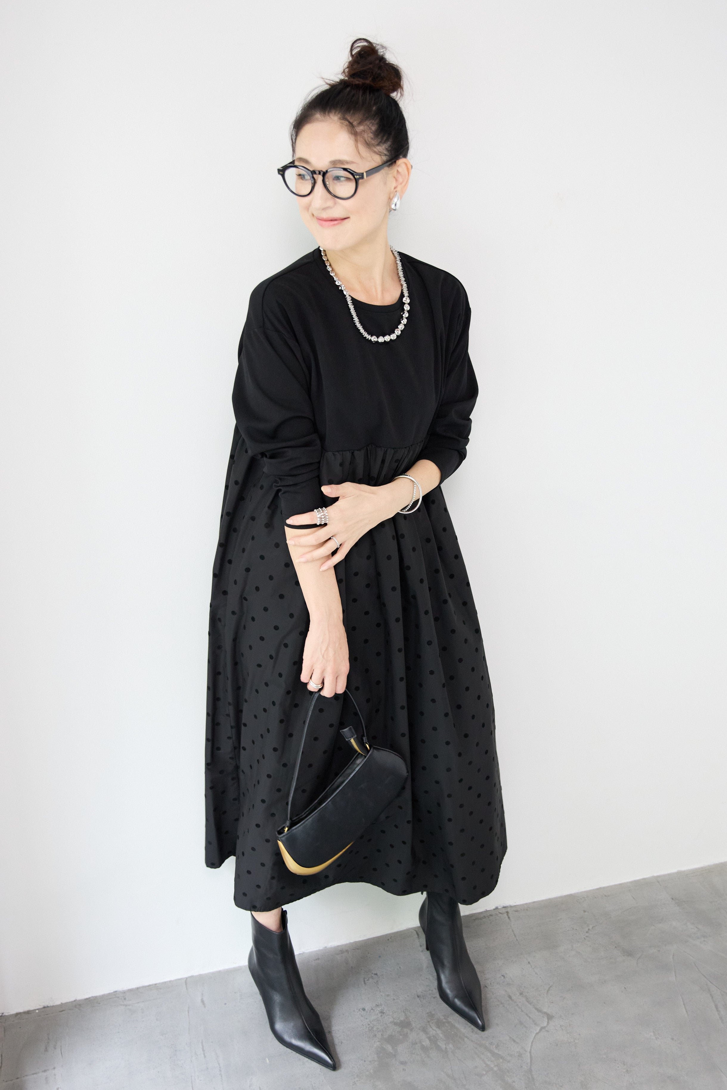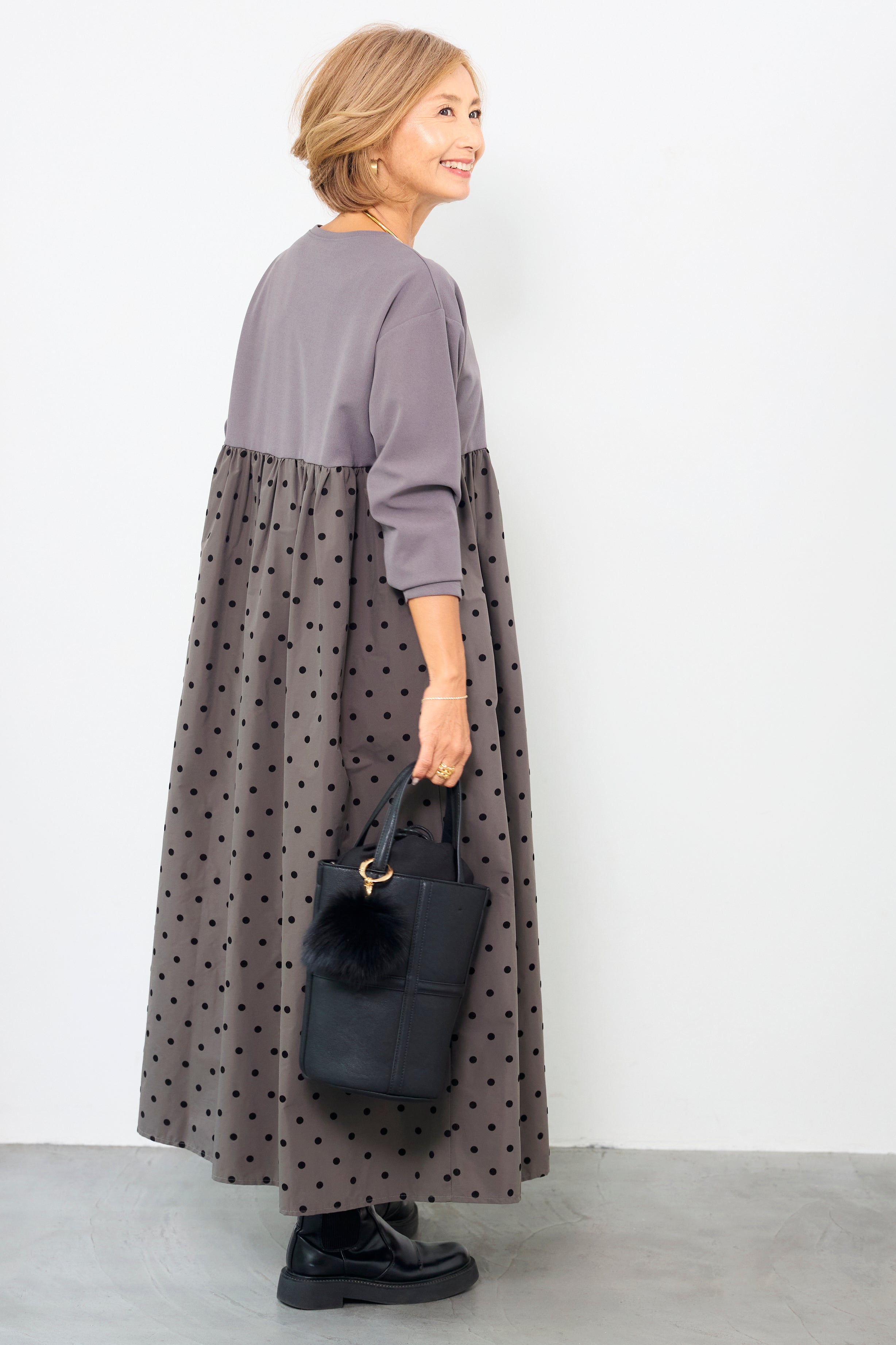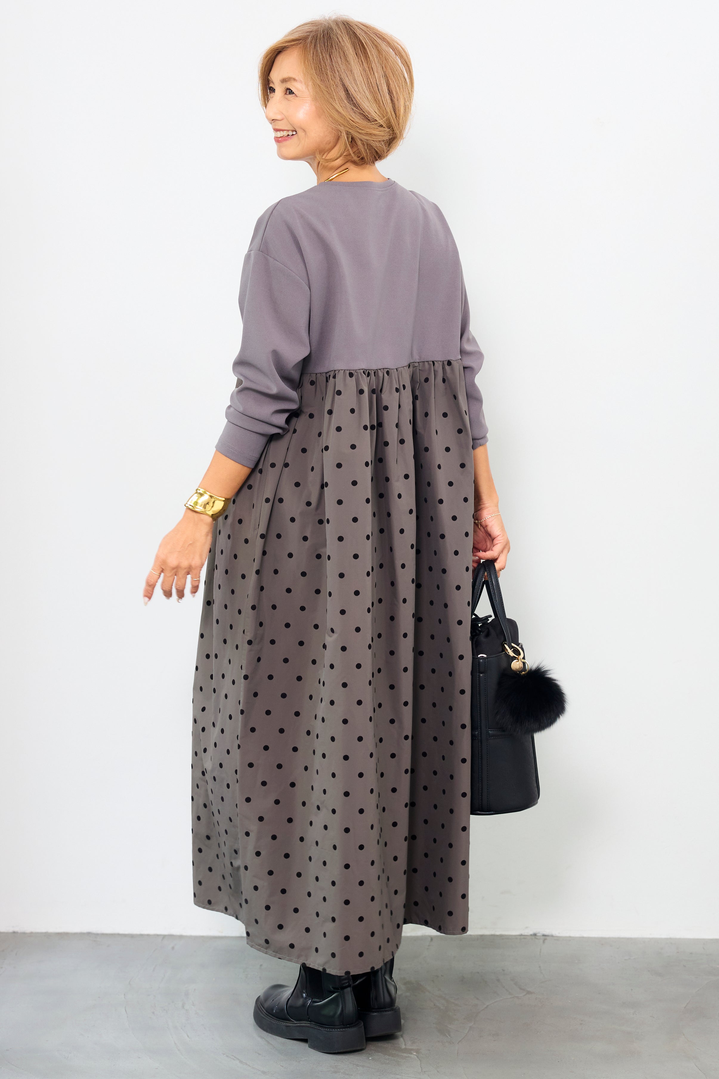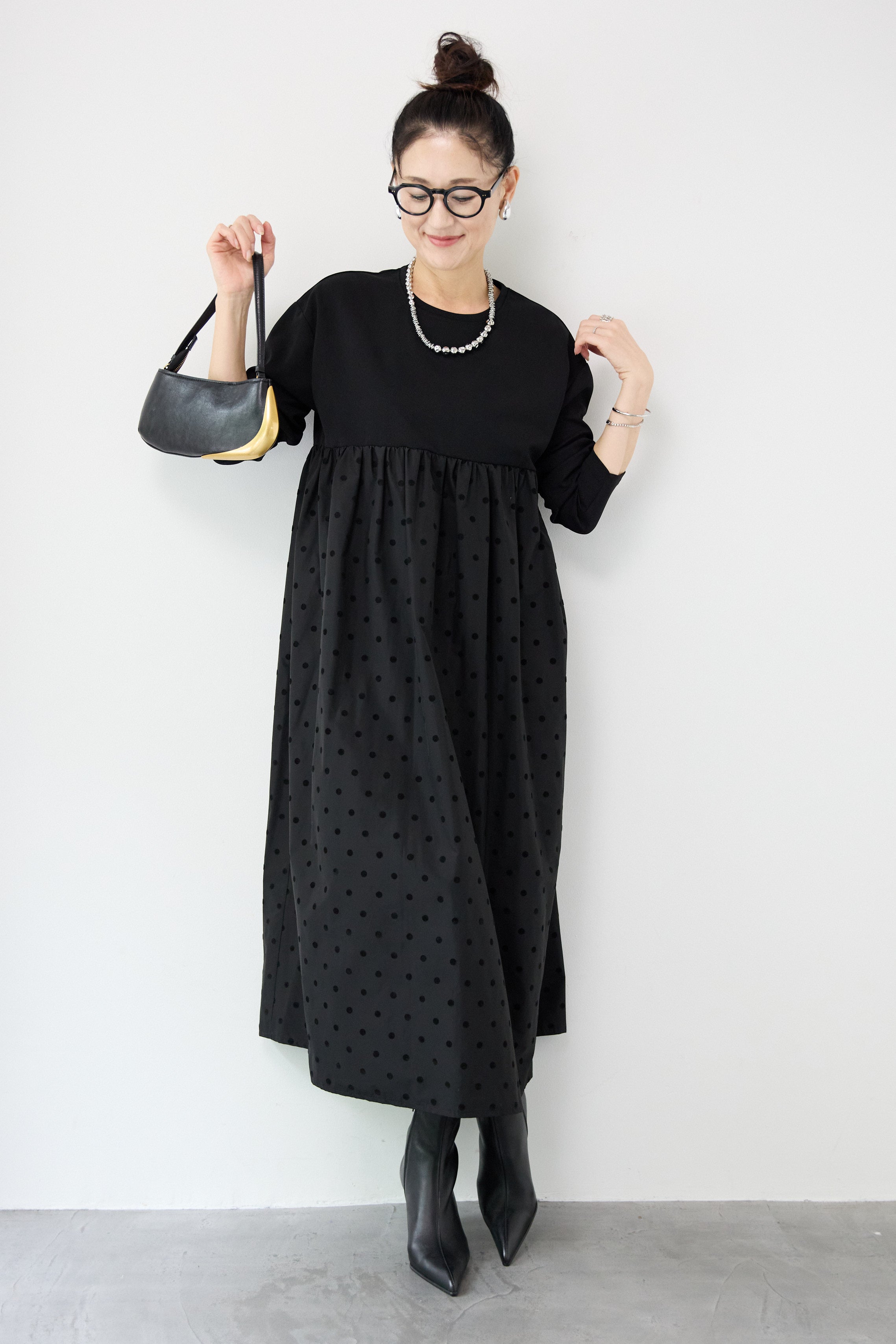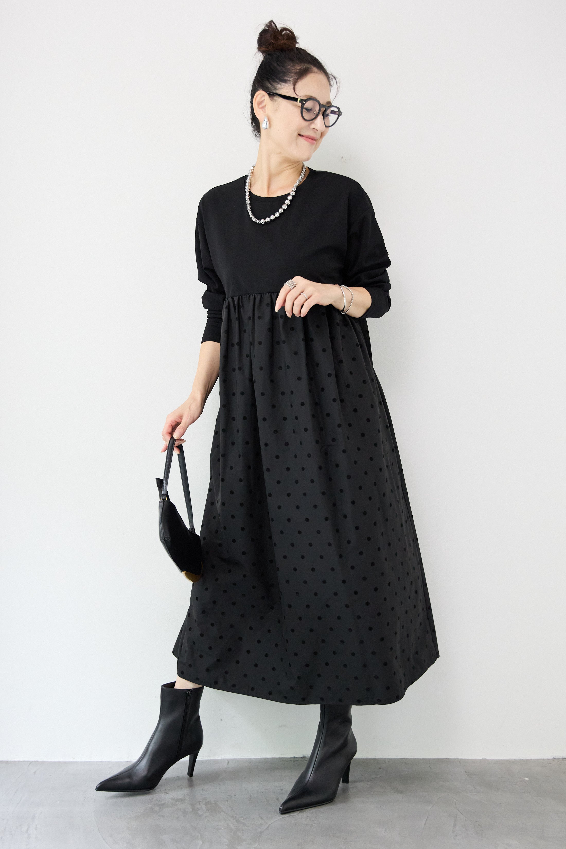 フロッキードット切替ワンピース
