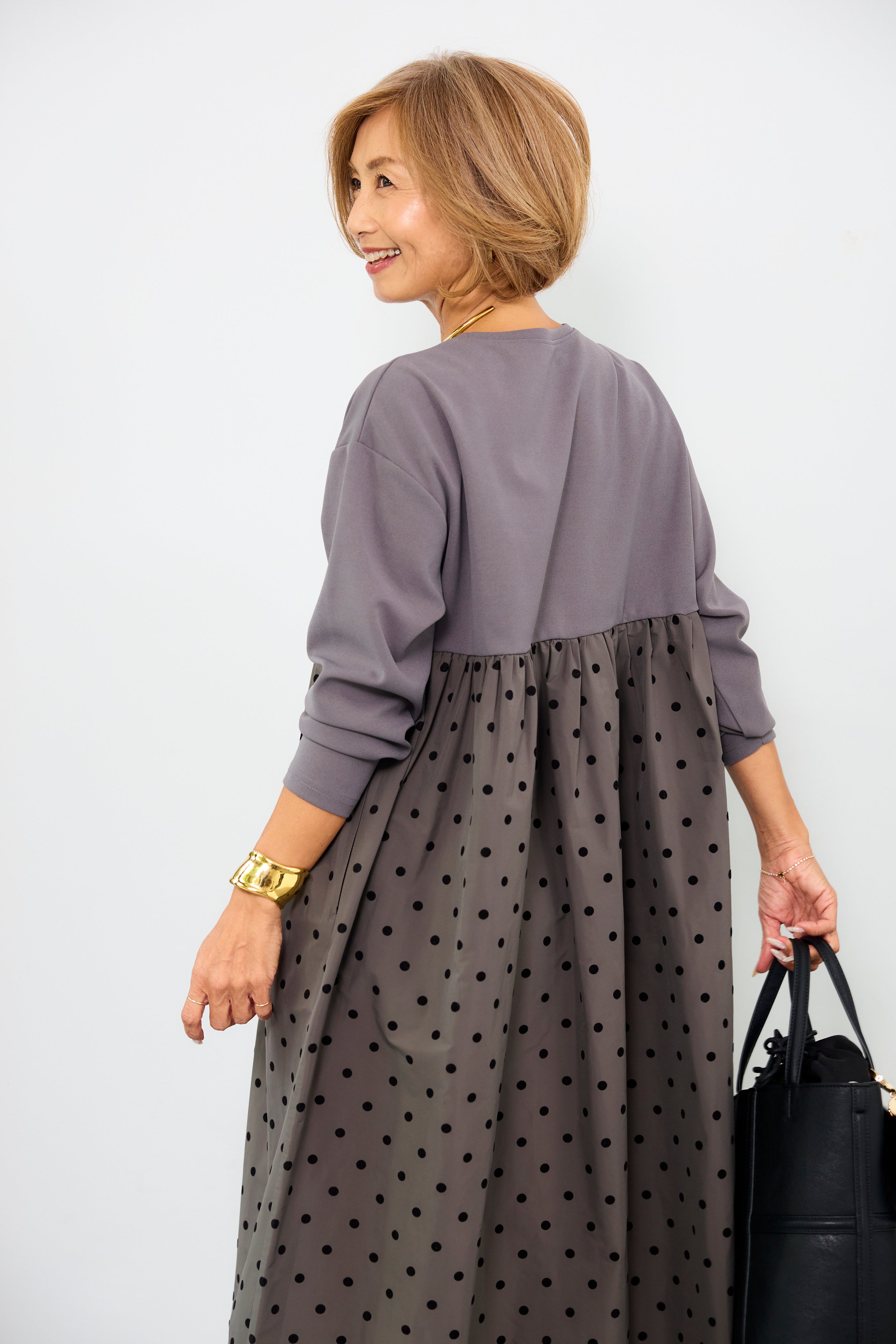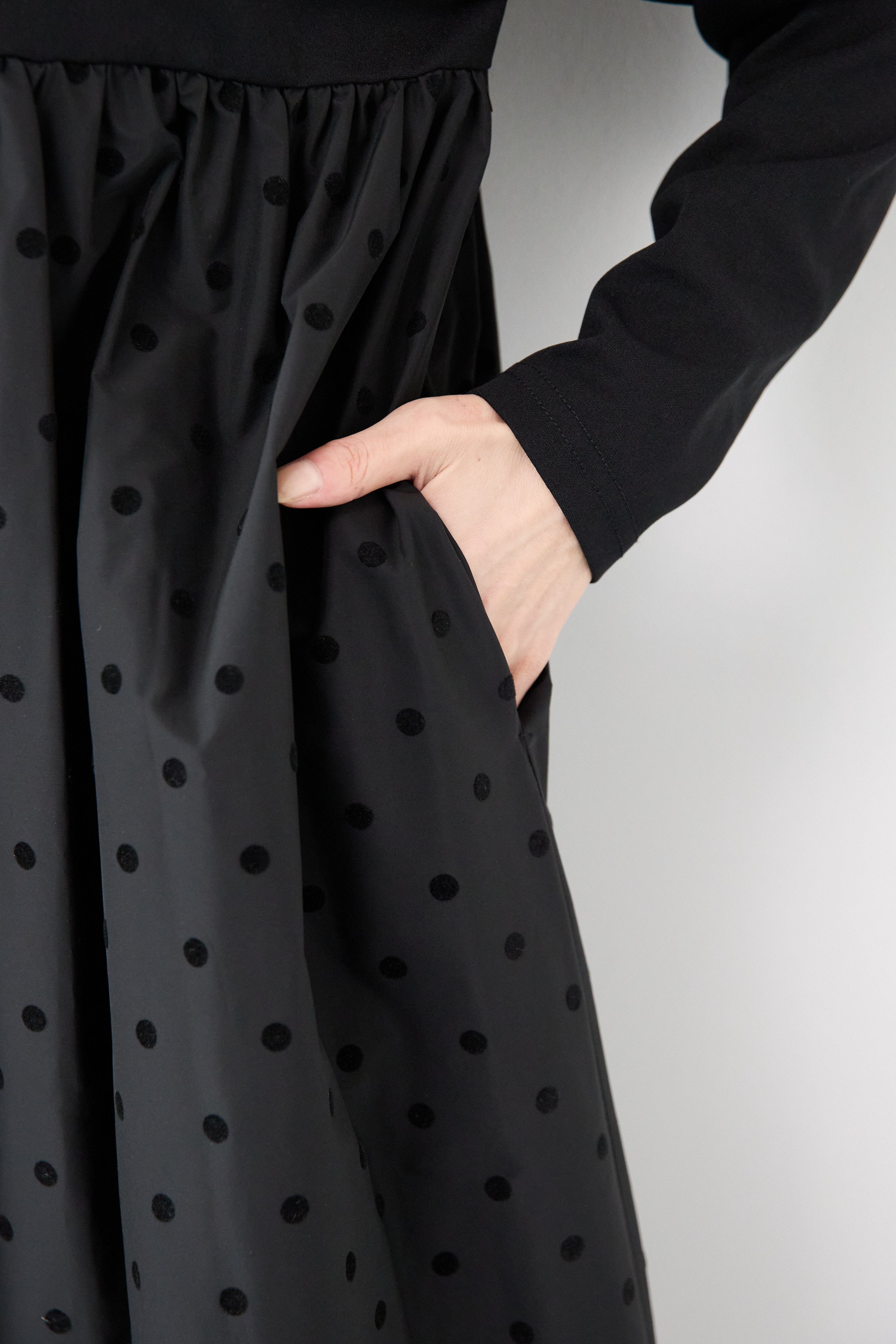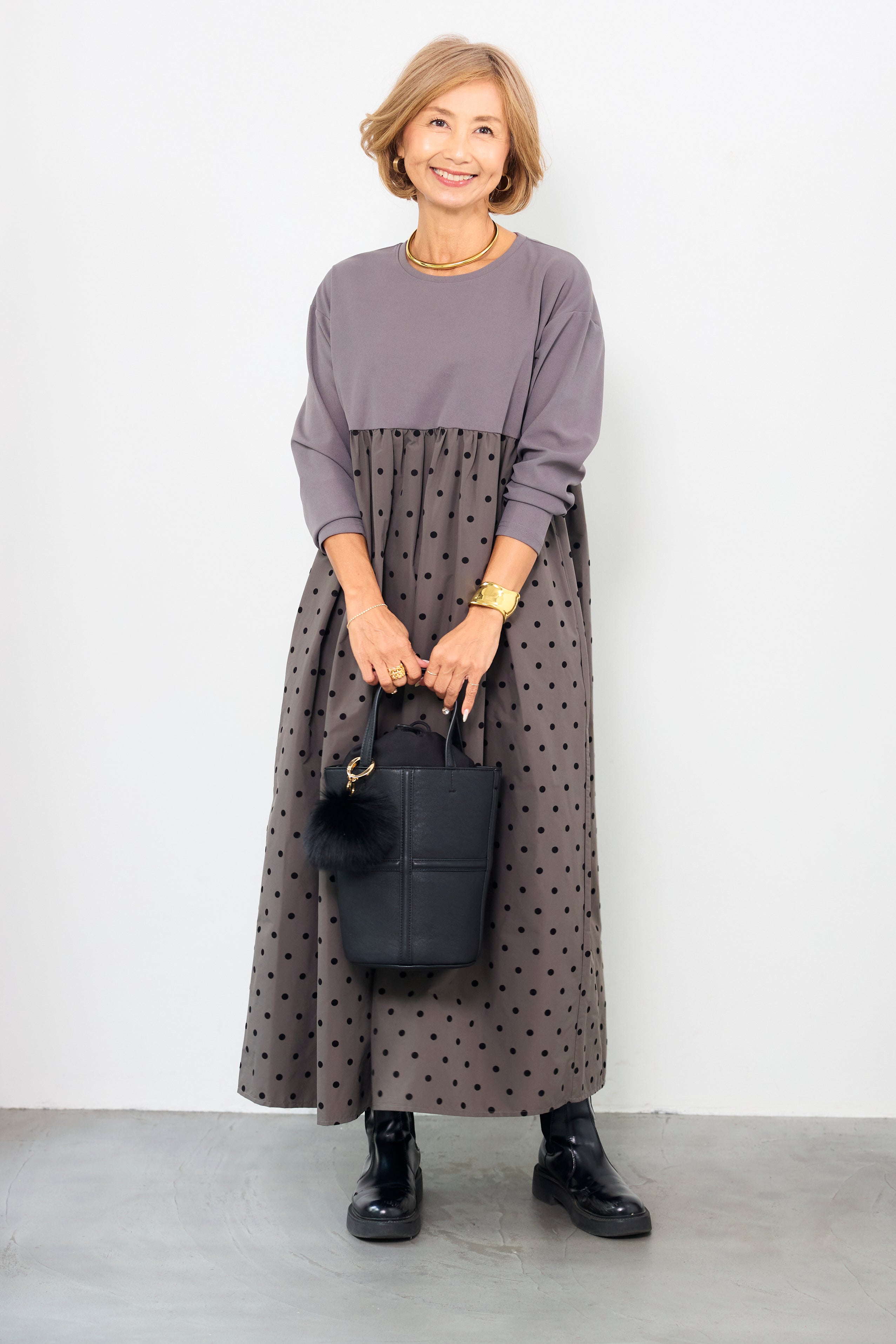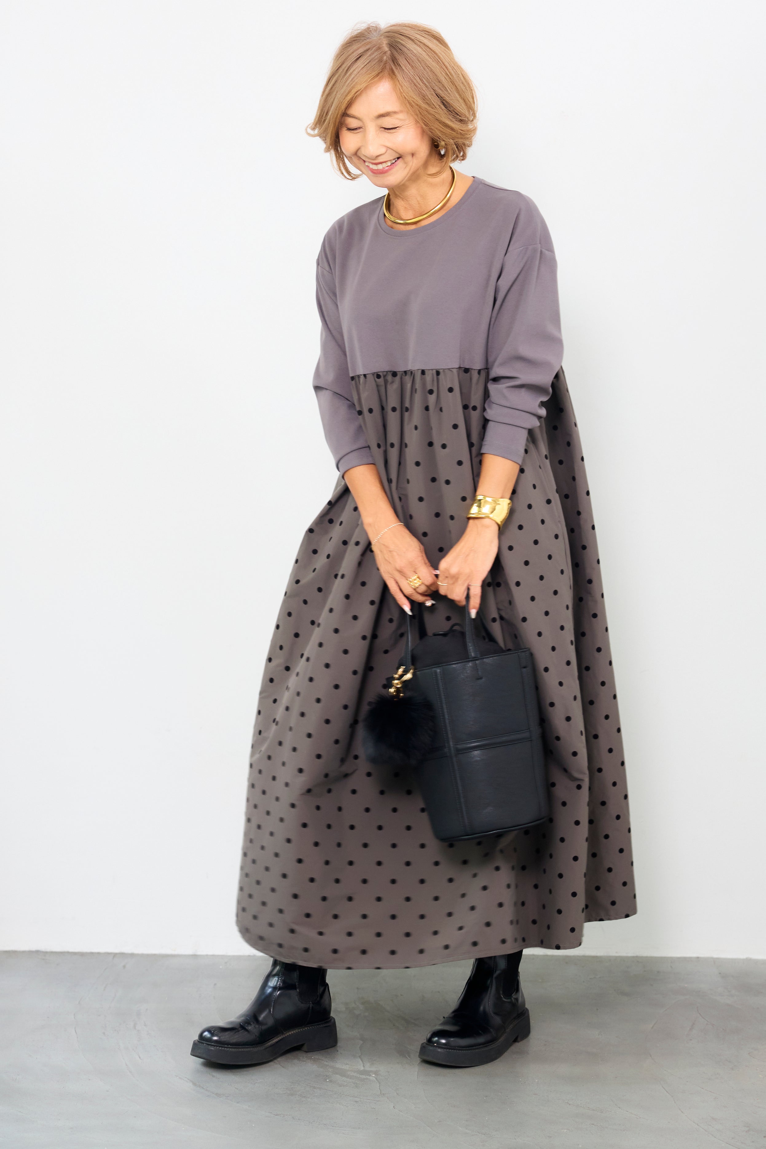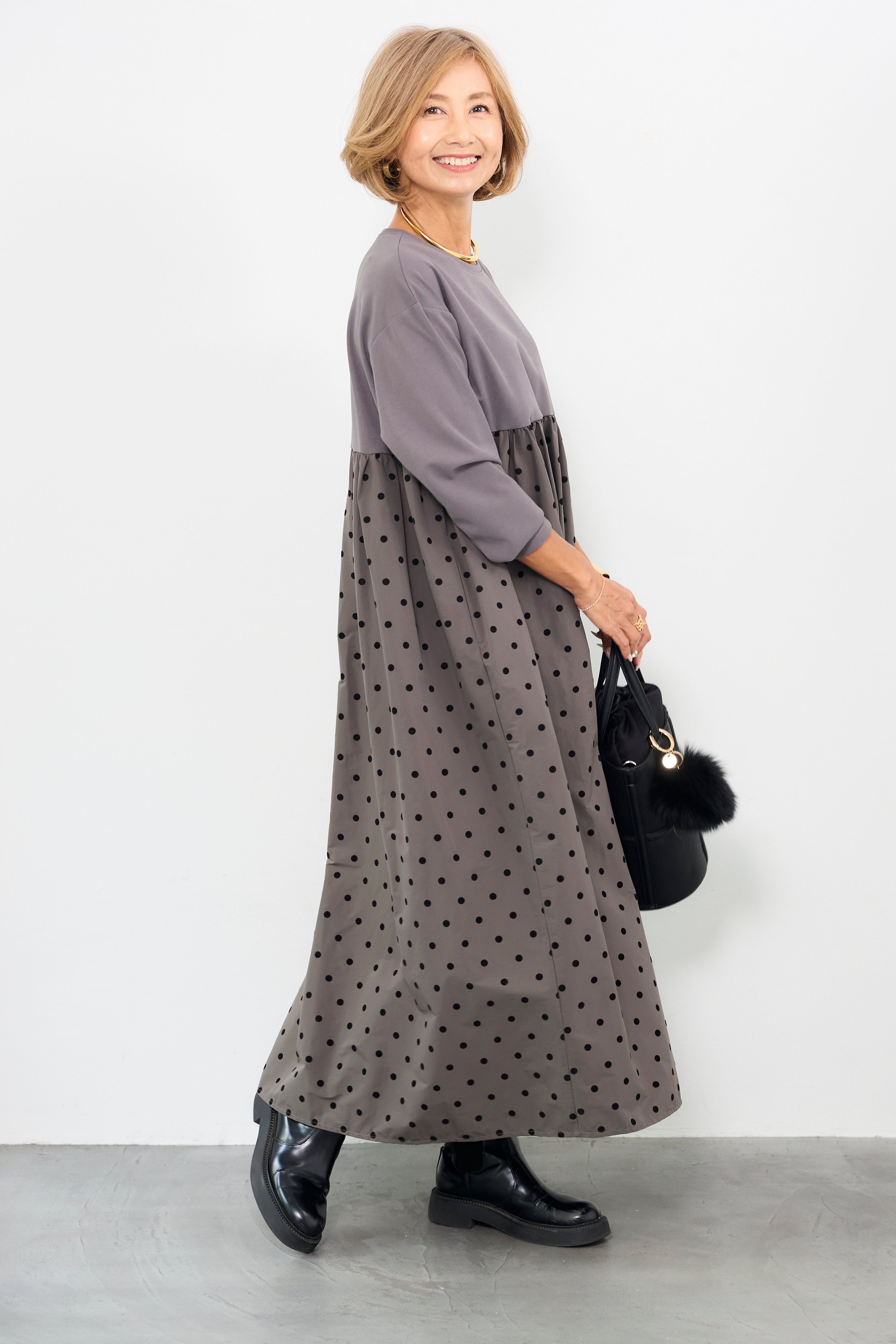 フロッキードット切替ワンピース