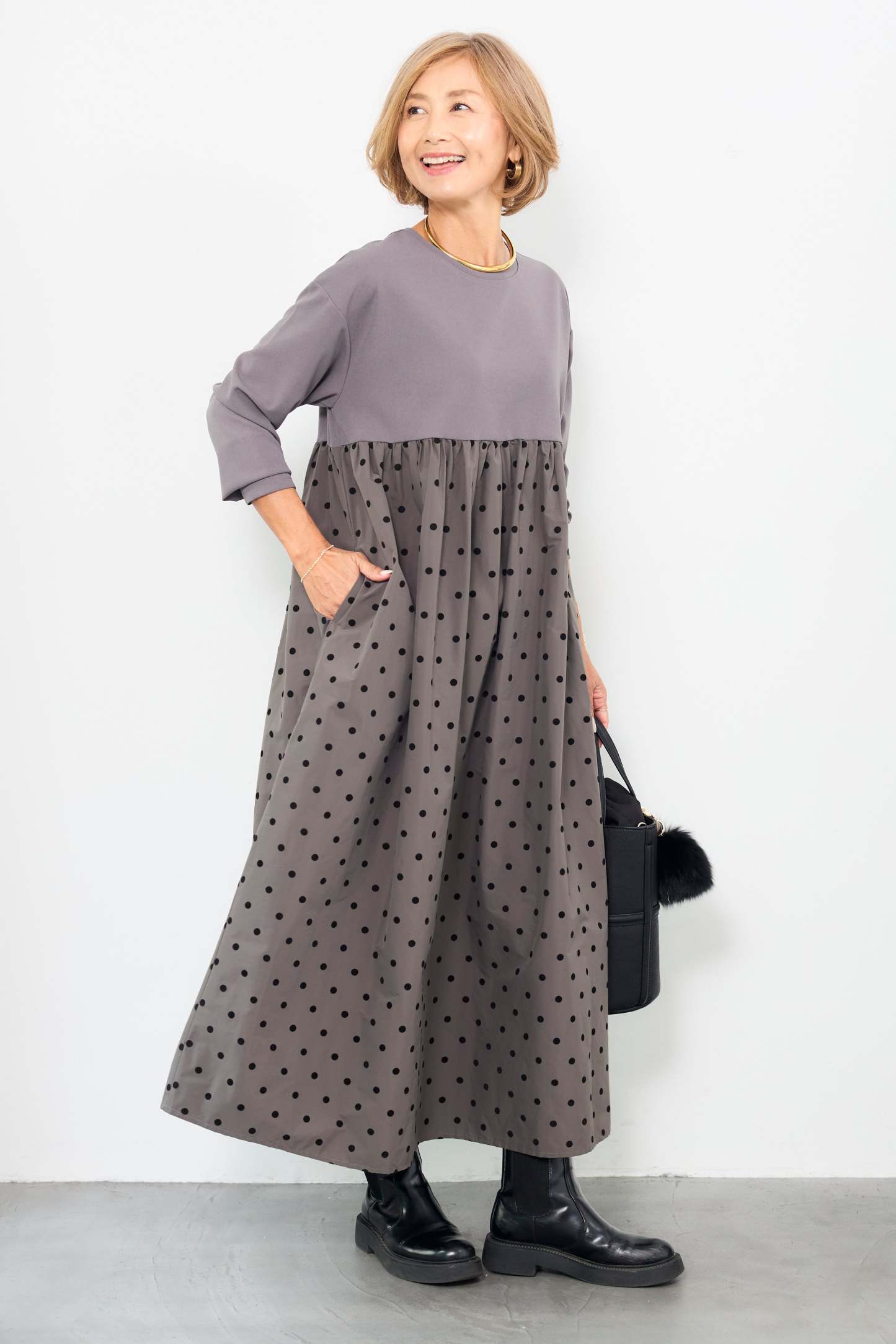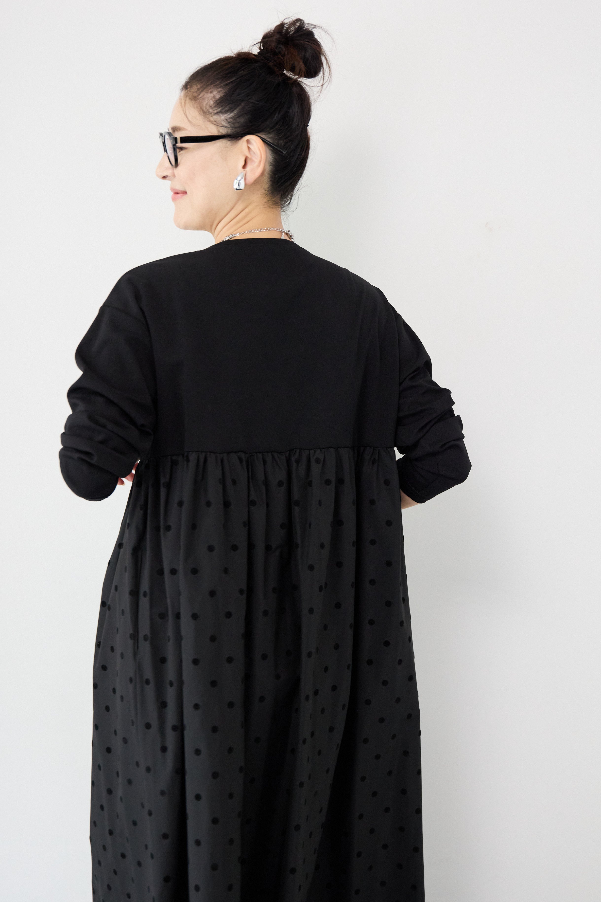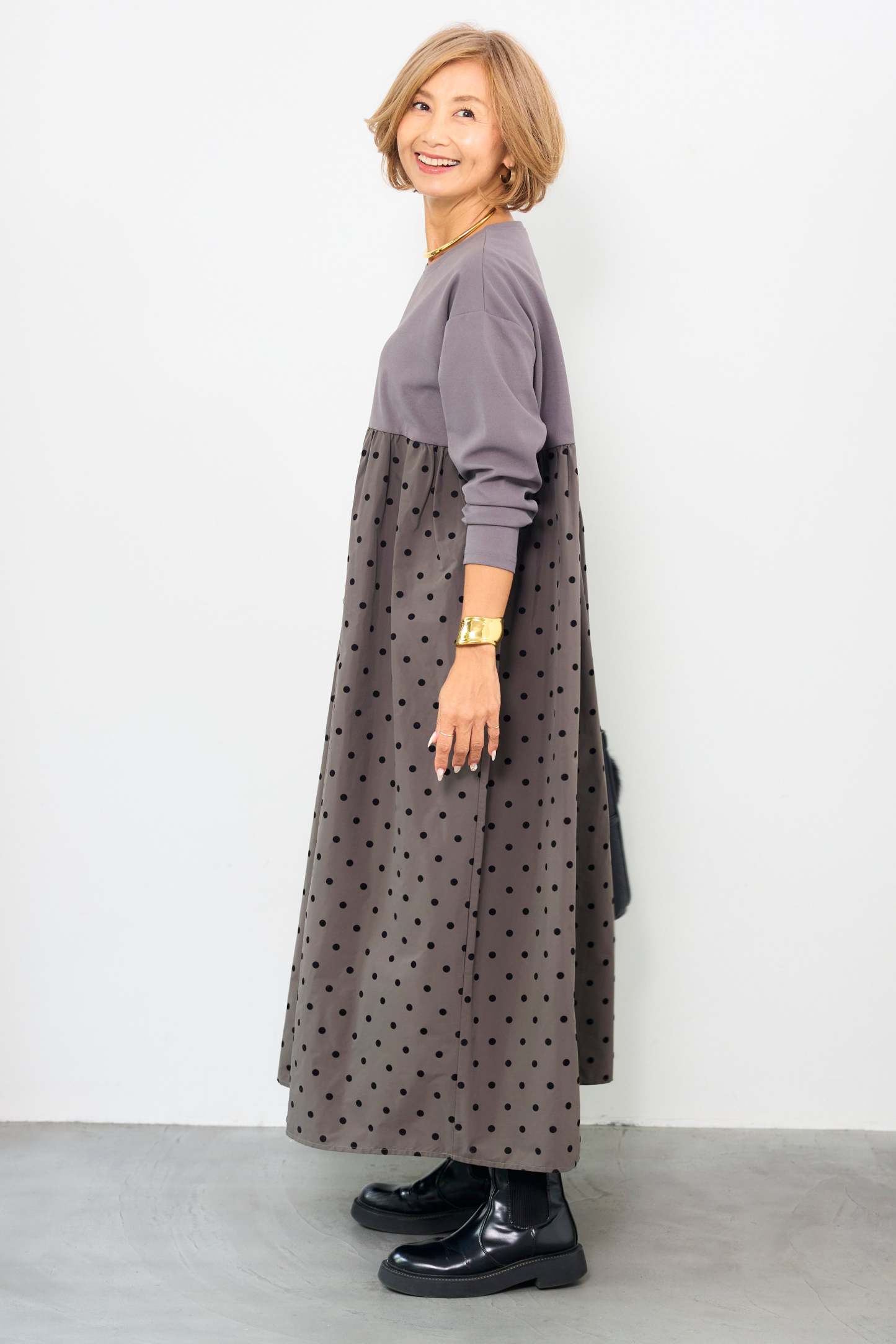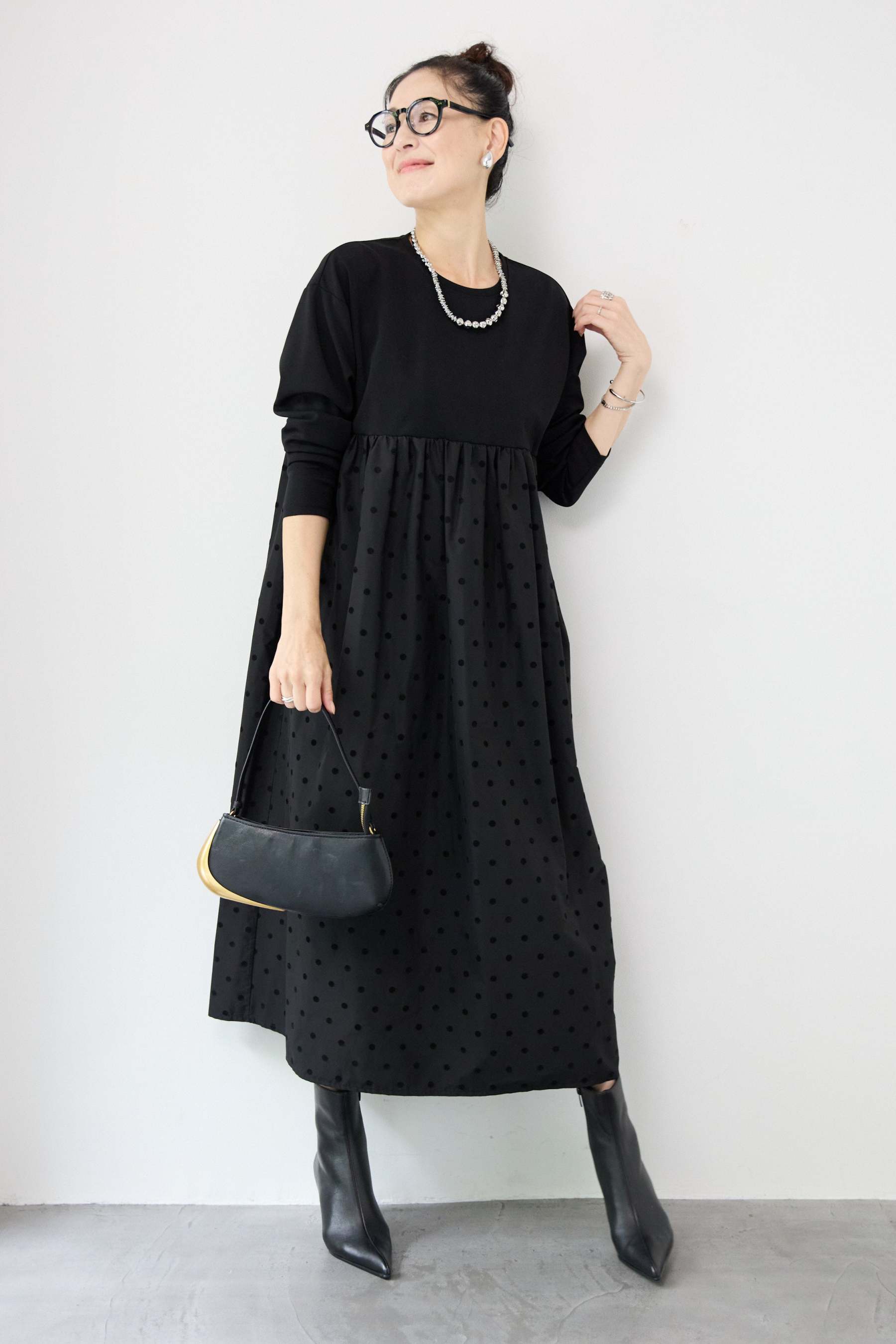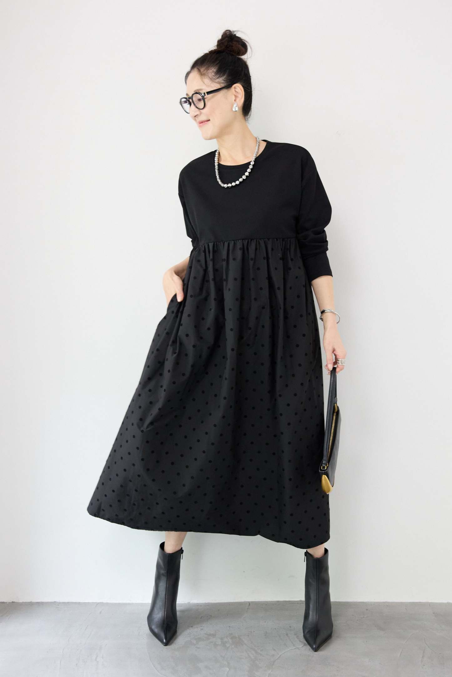 フロッキードット切替ワンピース