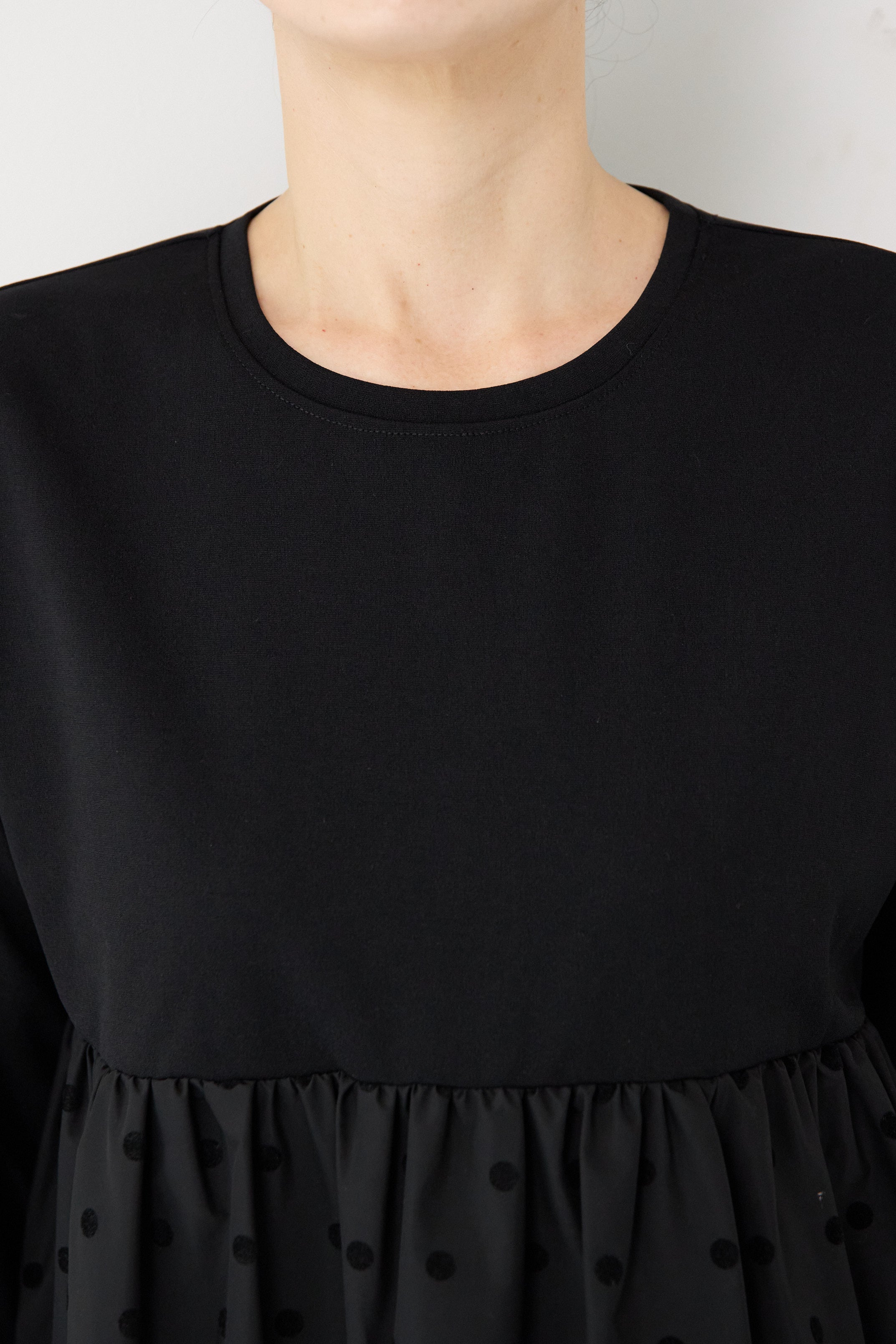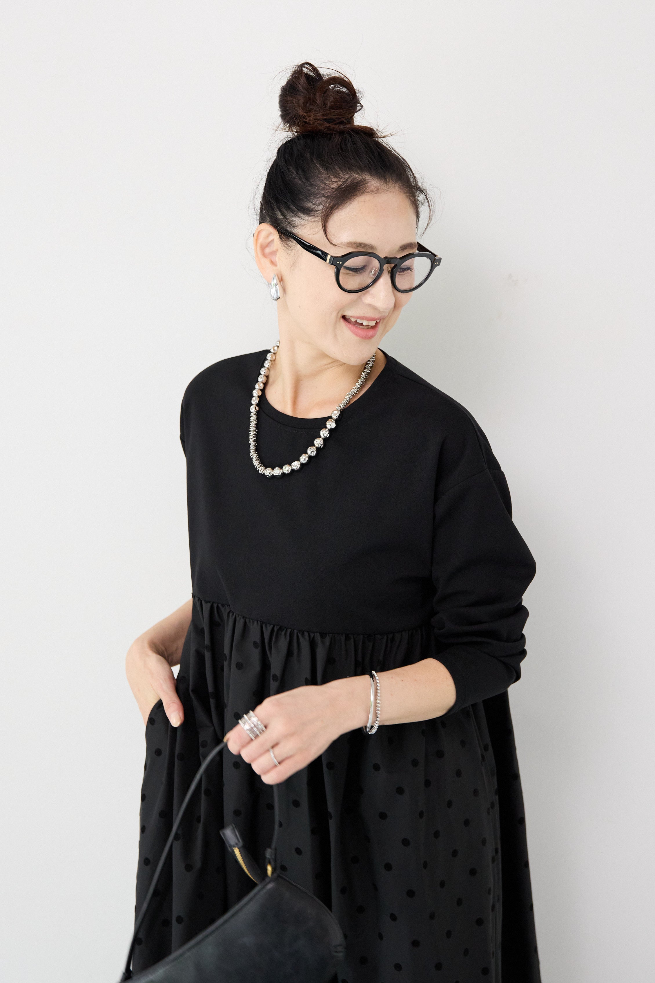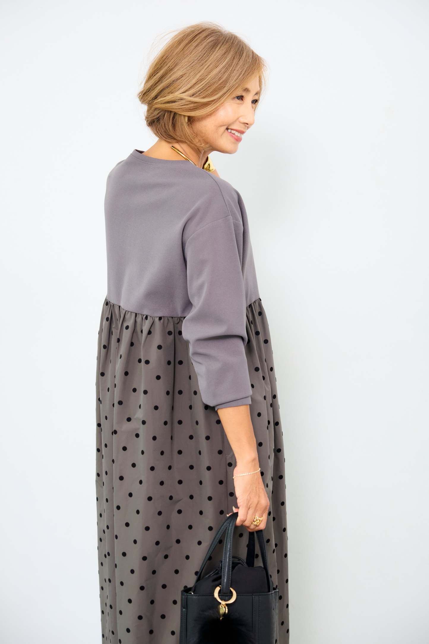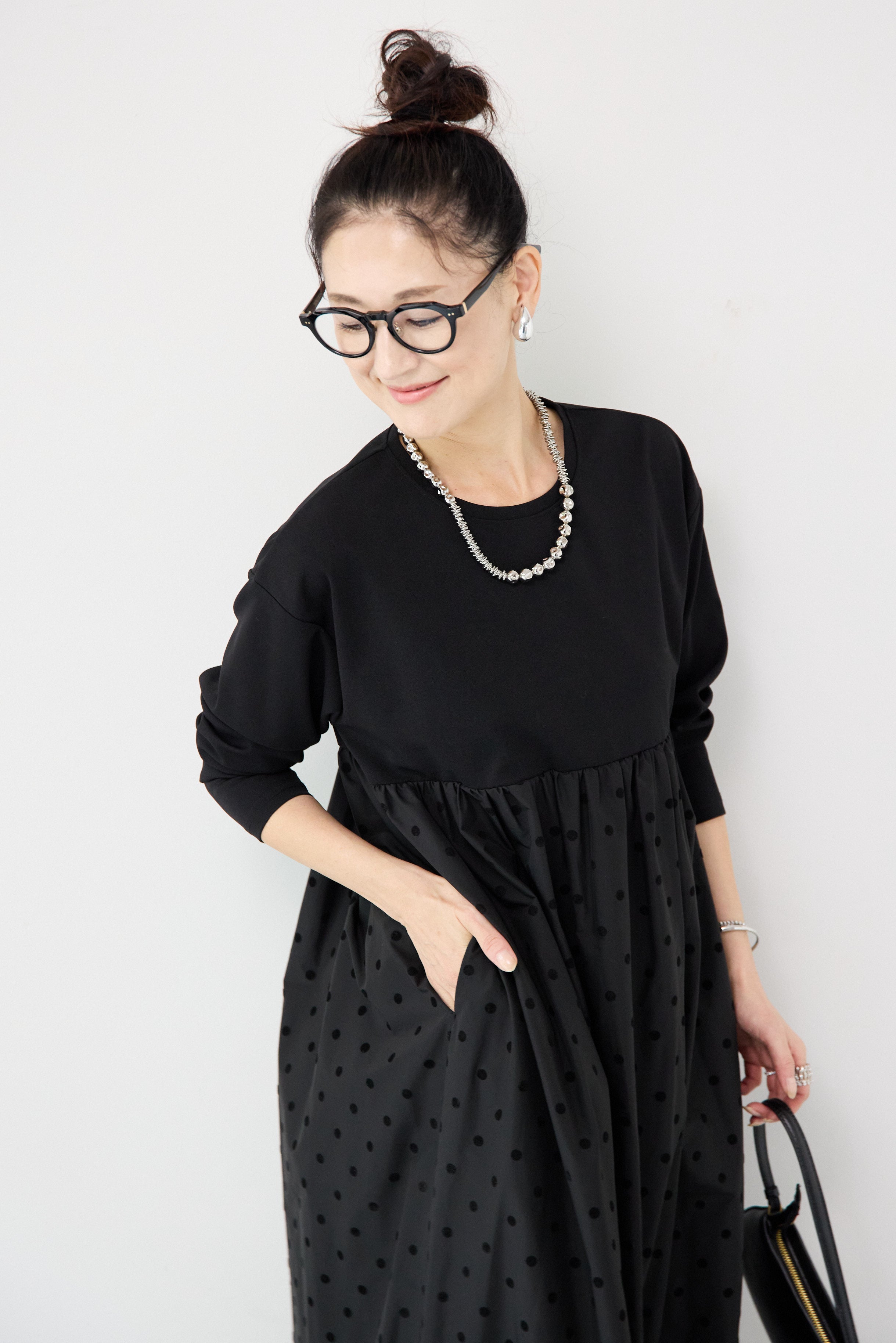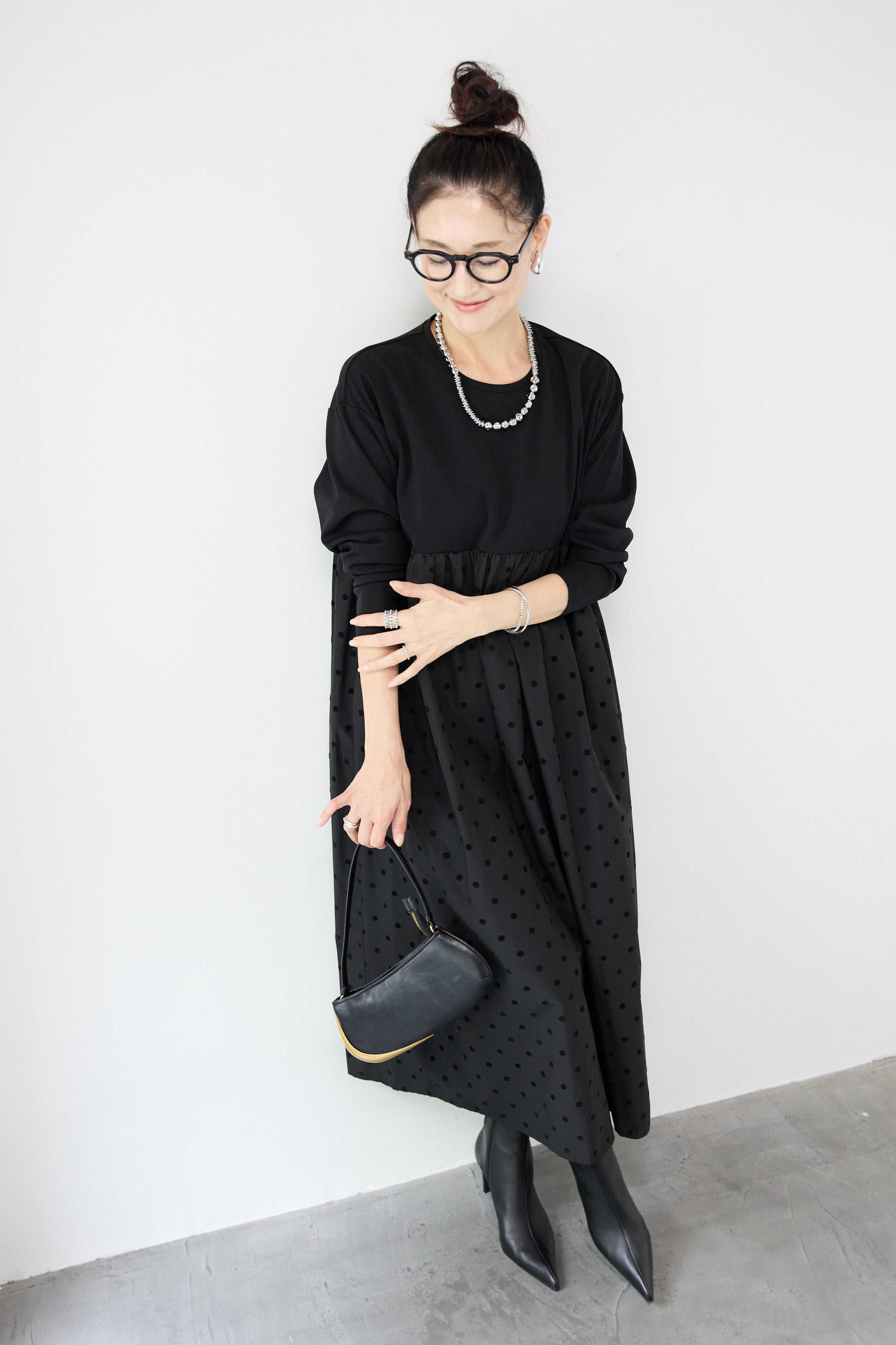 フロッキードット切替ワンピース