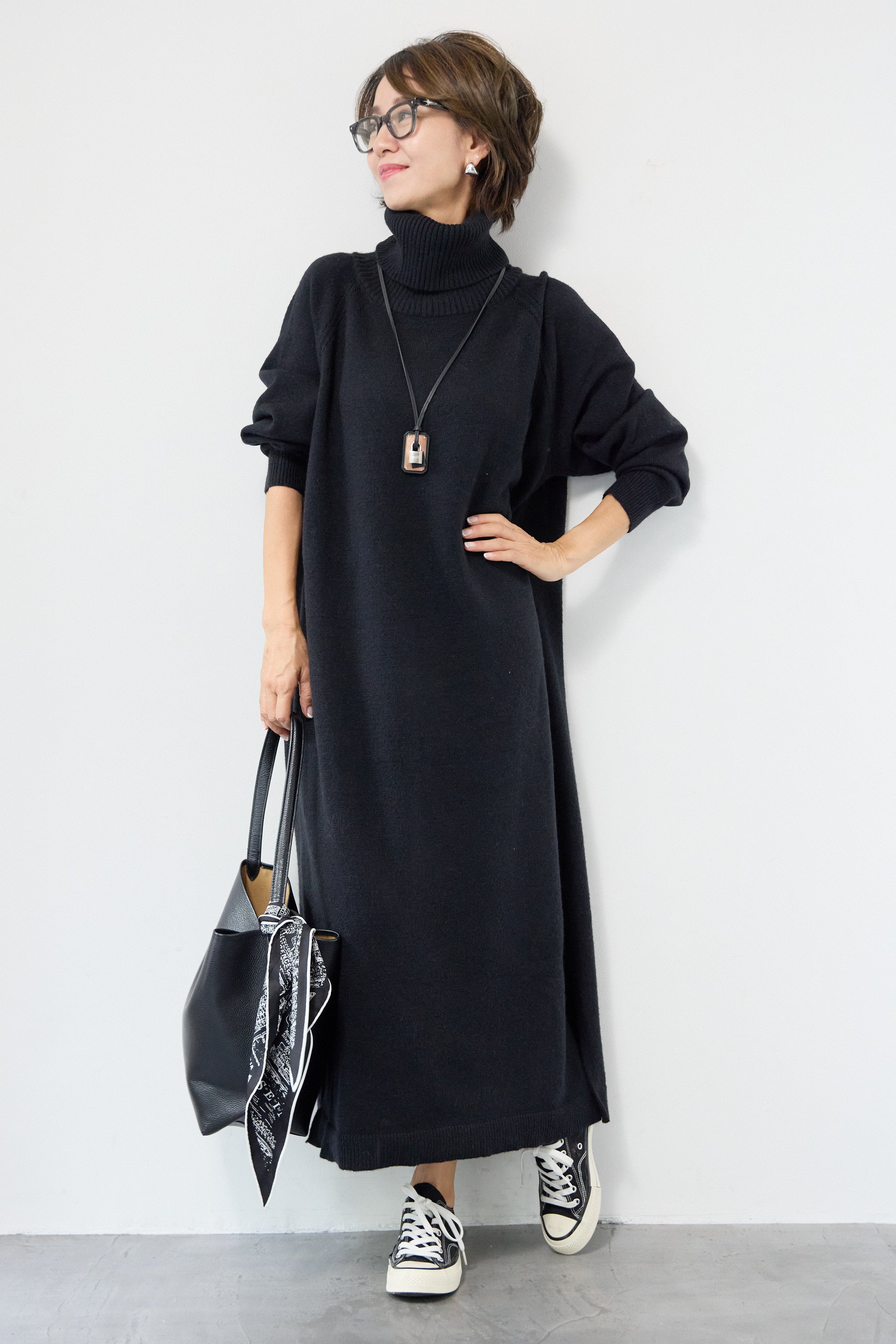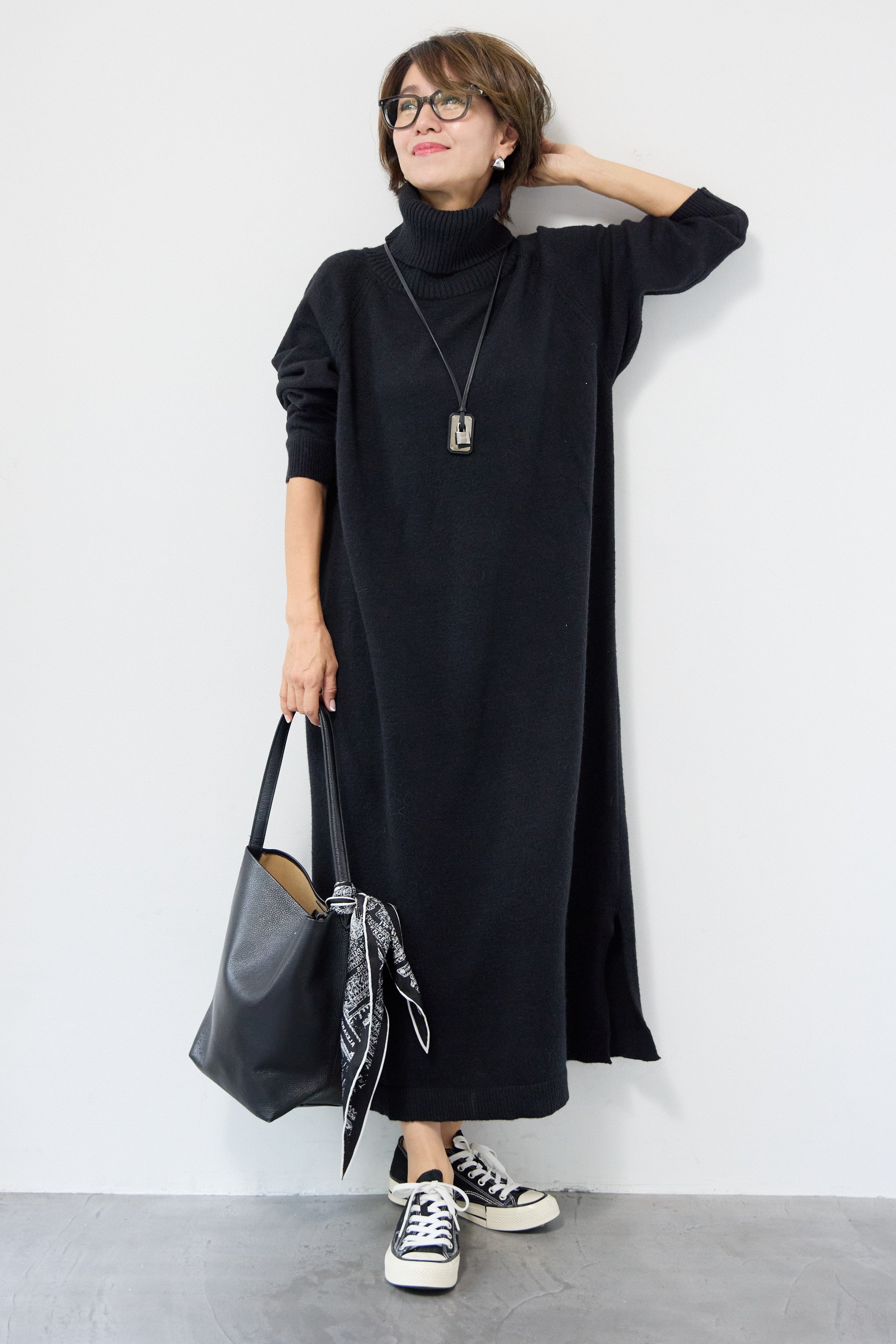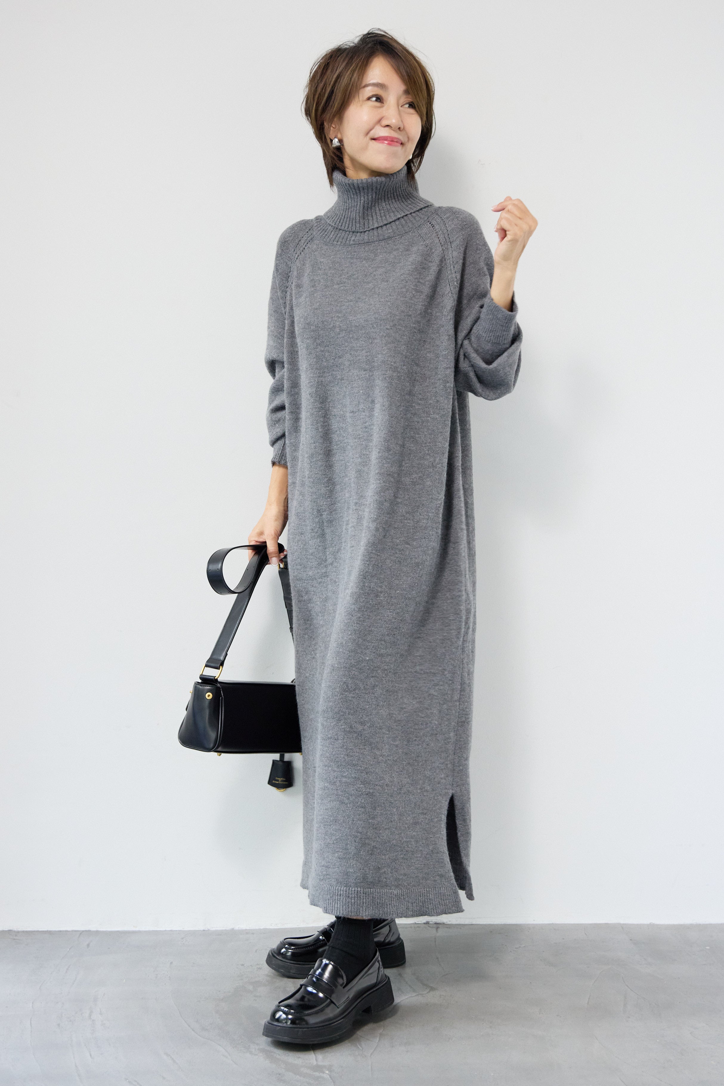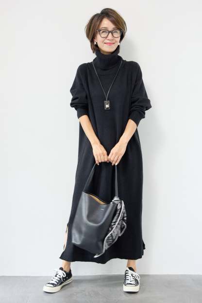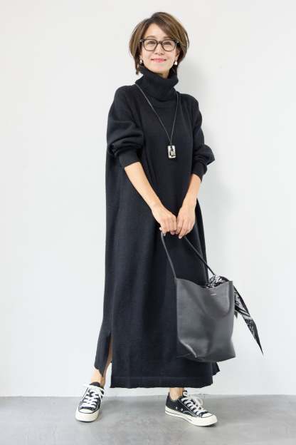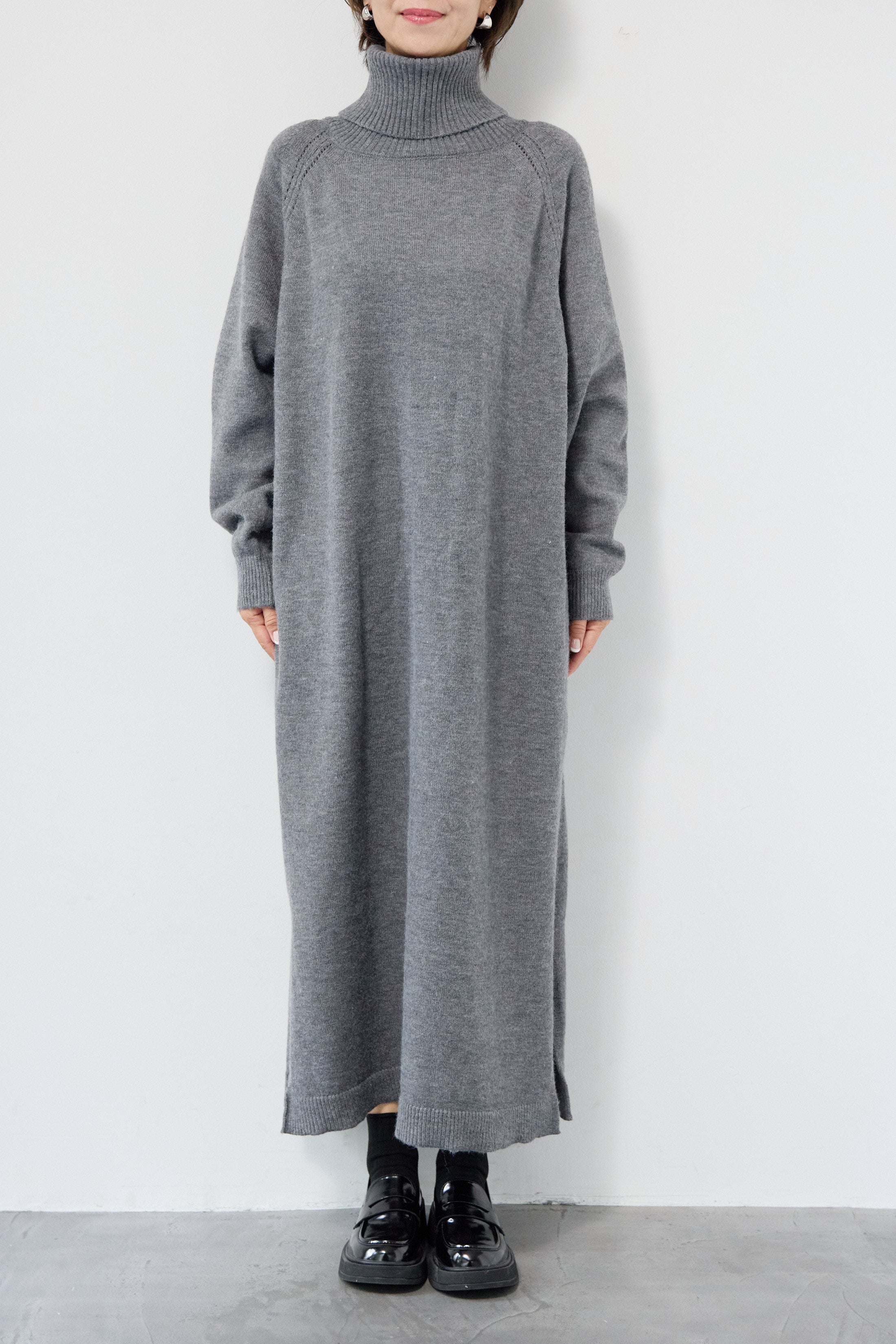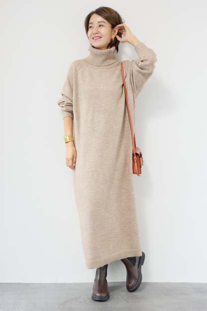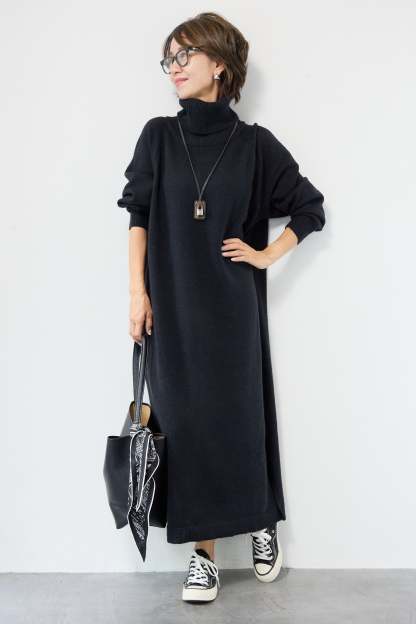 ルーズフィットタートルニットワンピース