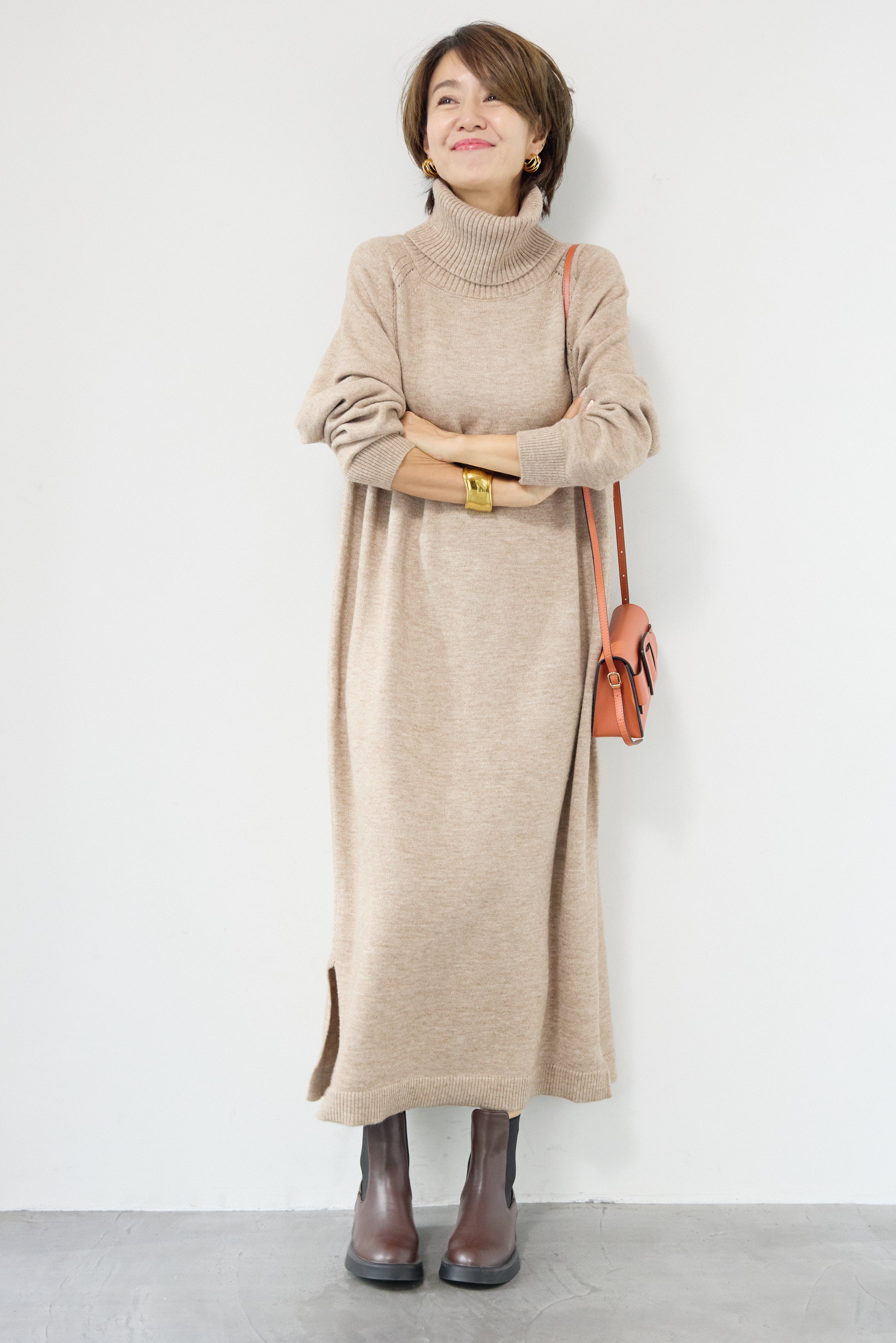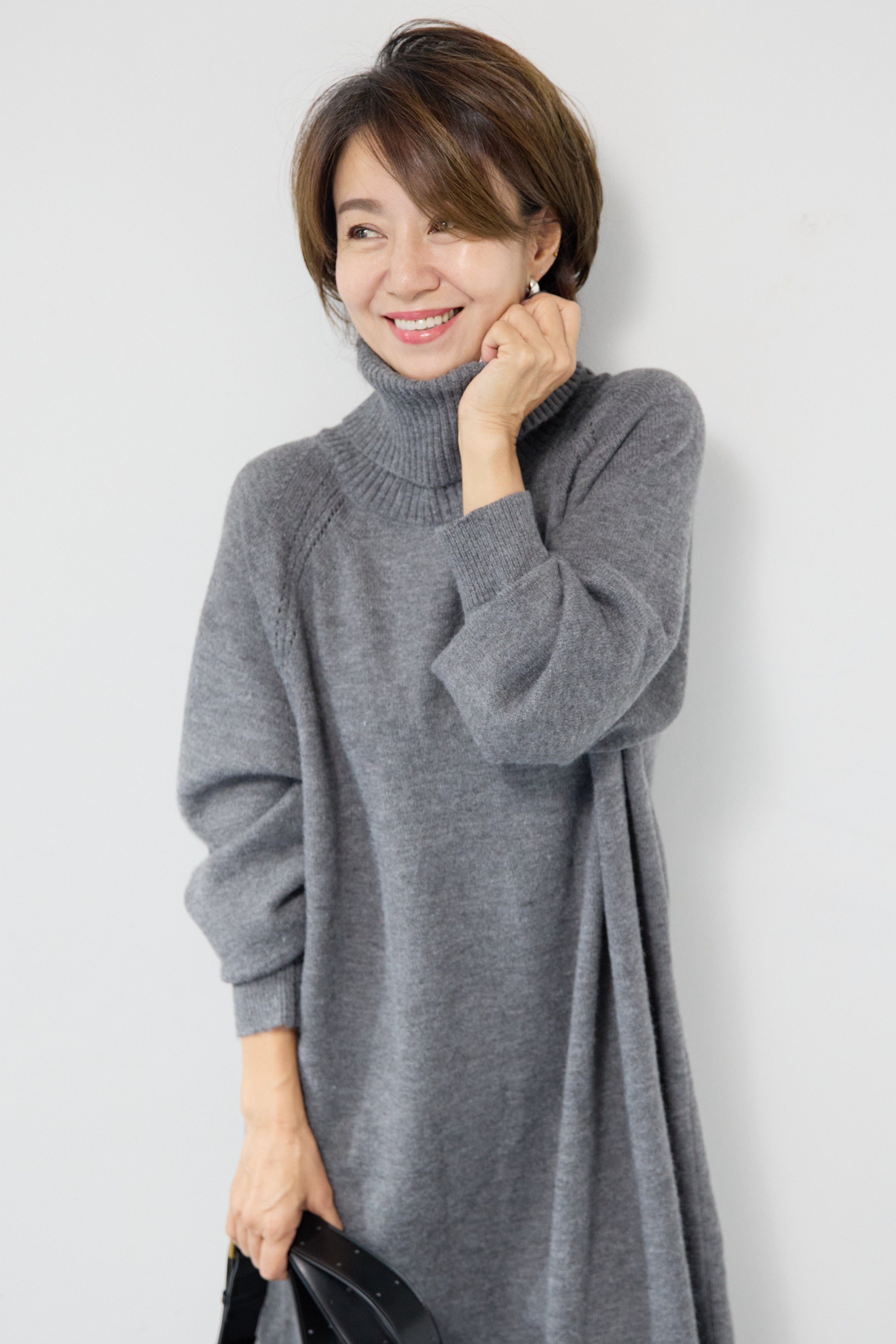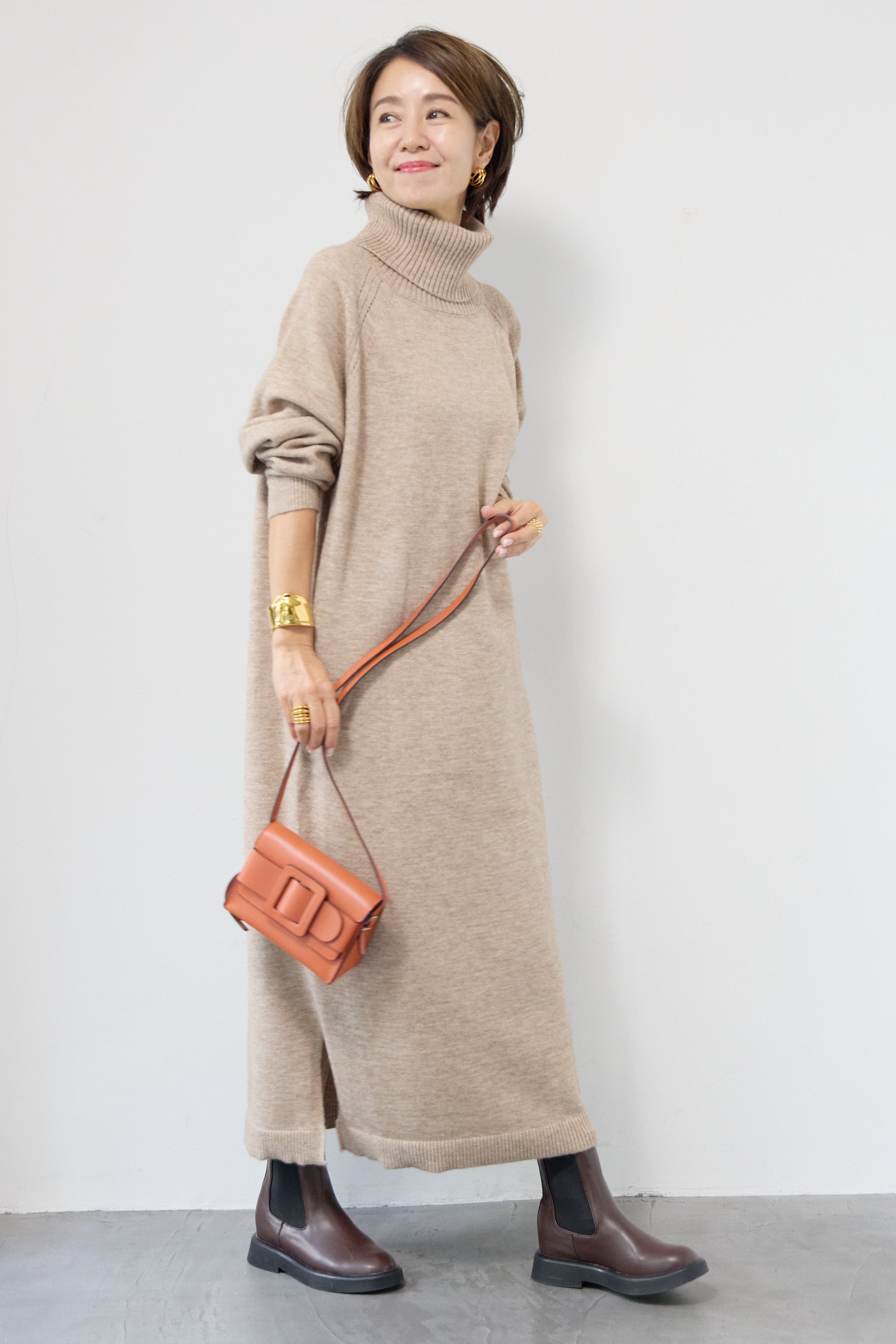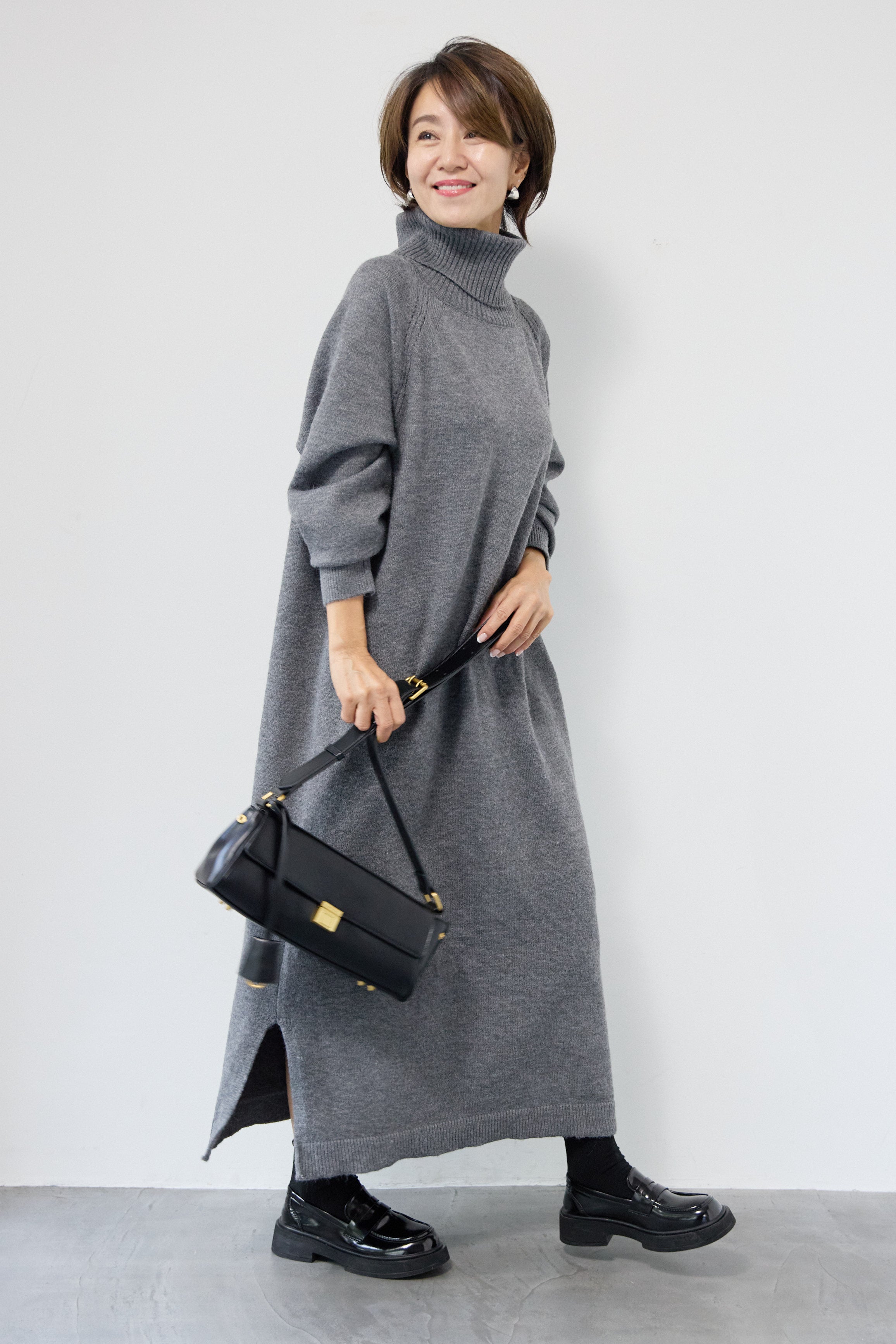 ルーズフィットタートルニットワンピース