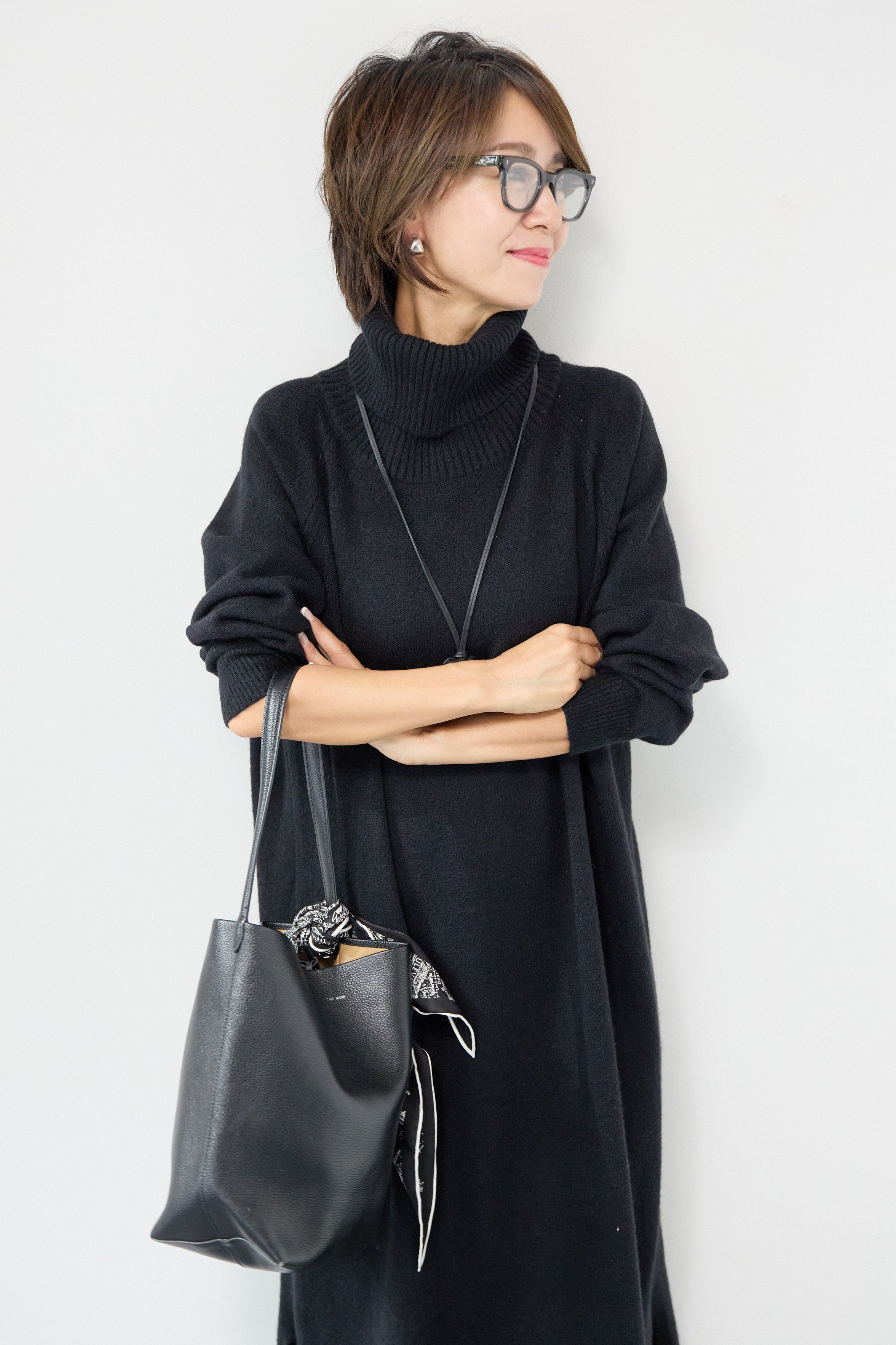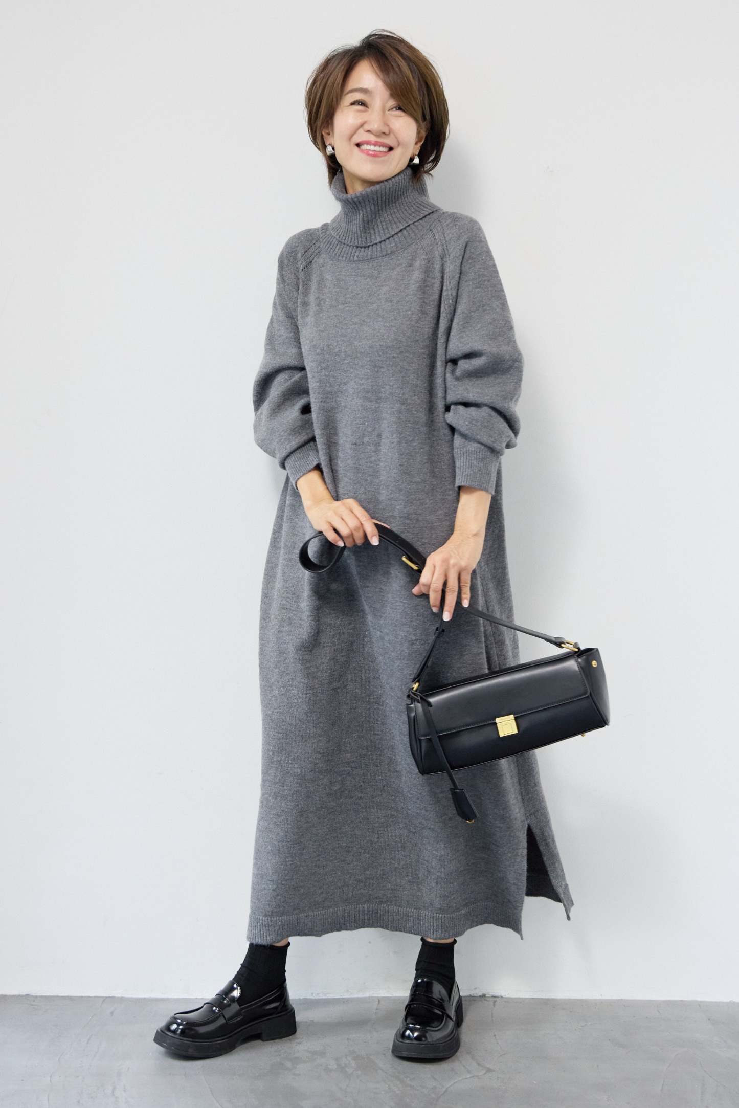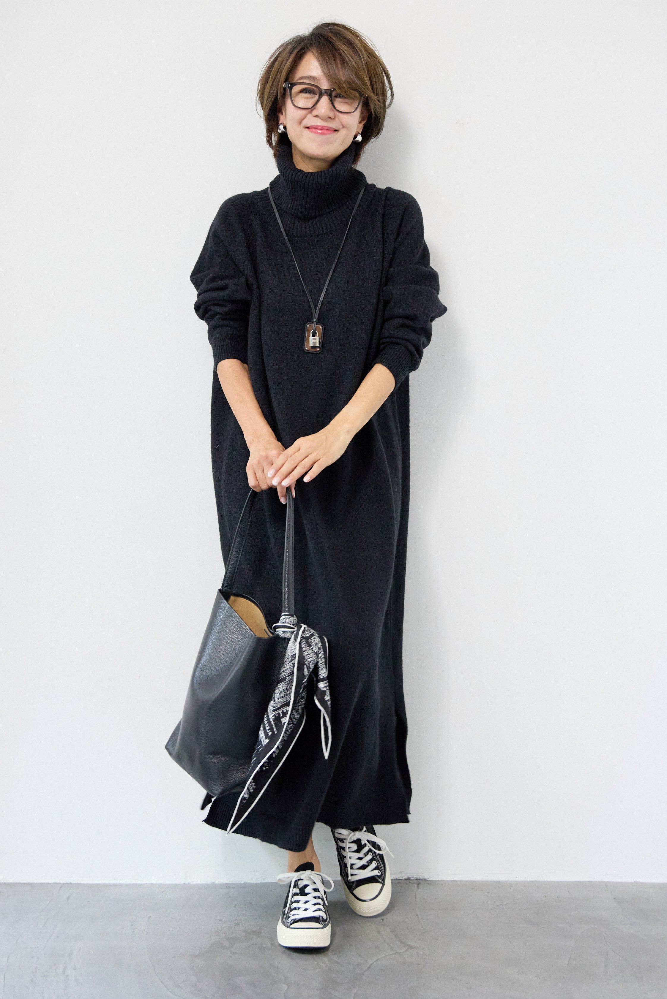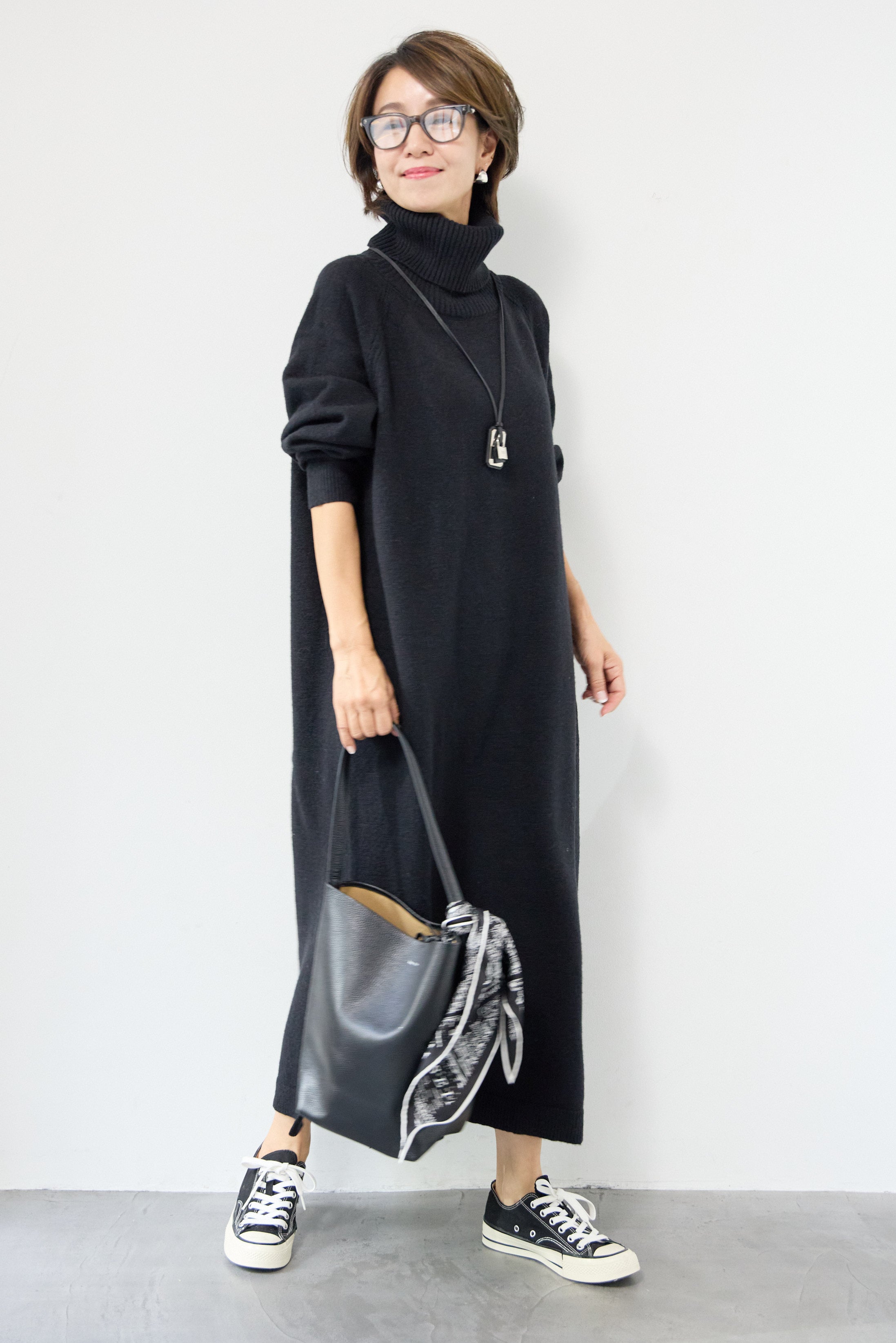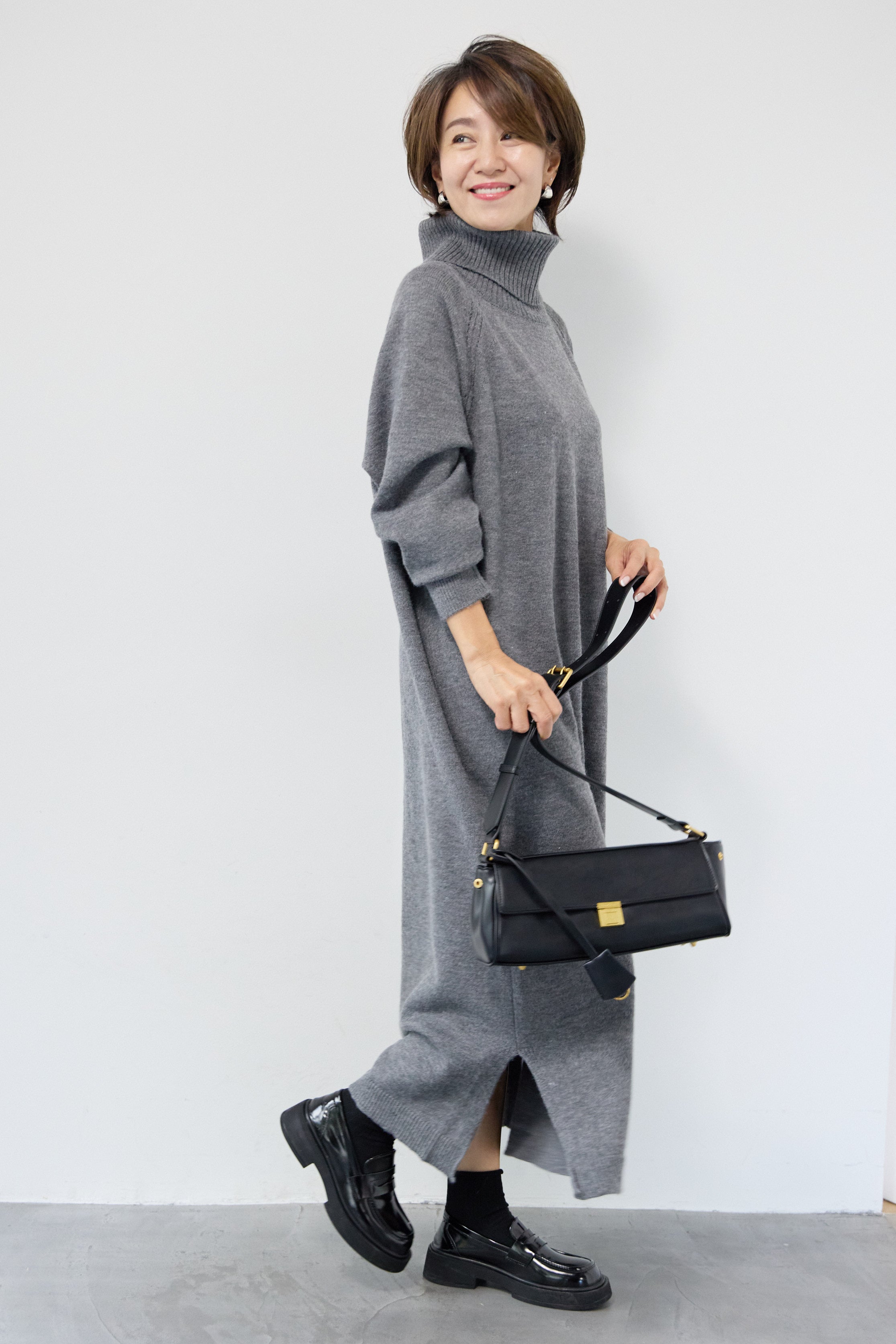 ルーズフィットタートルニットワンピース
