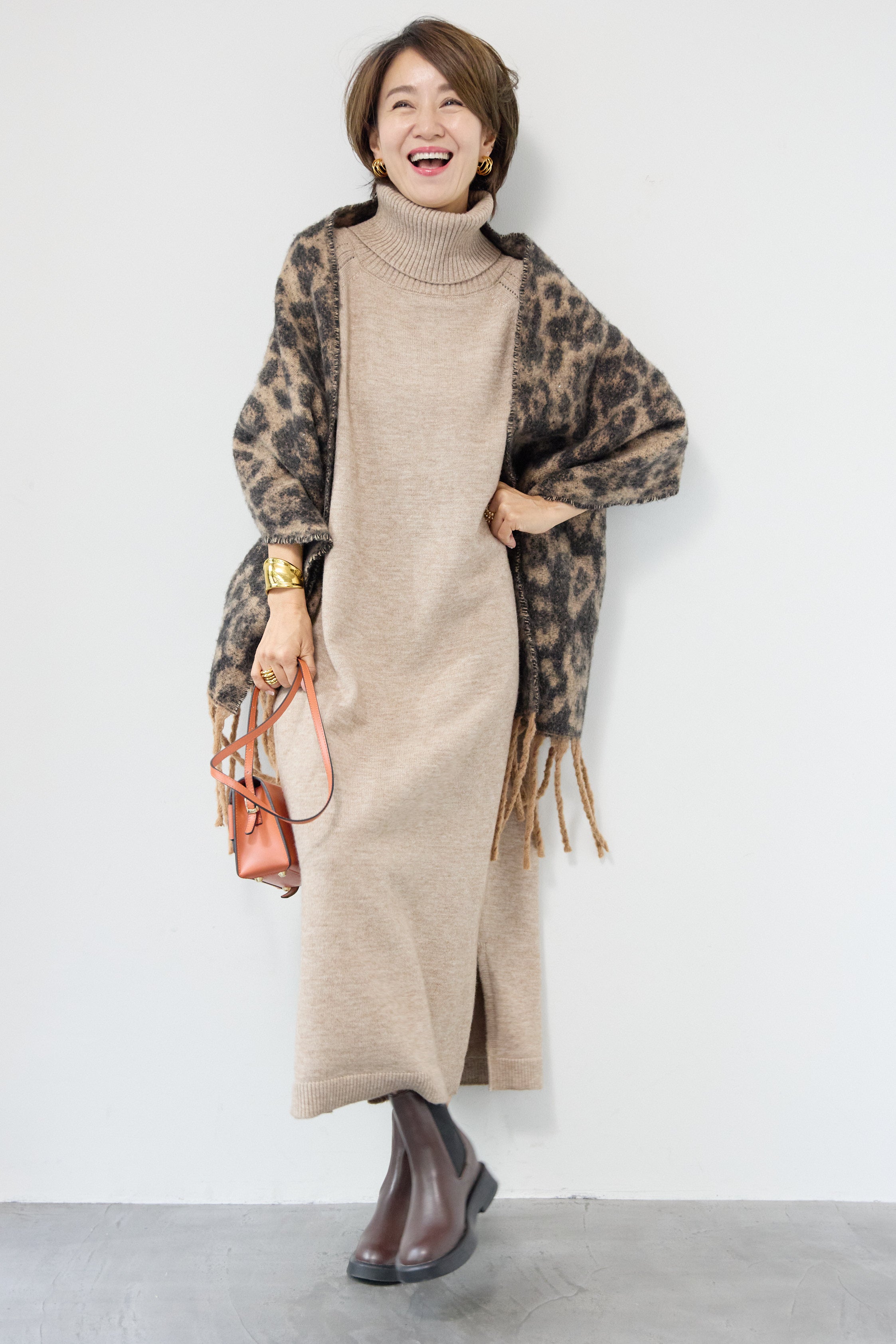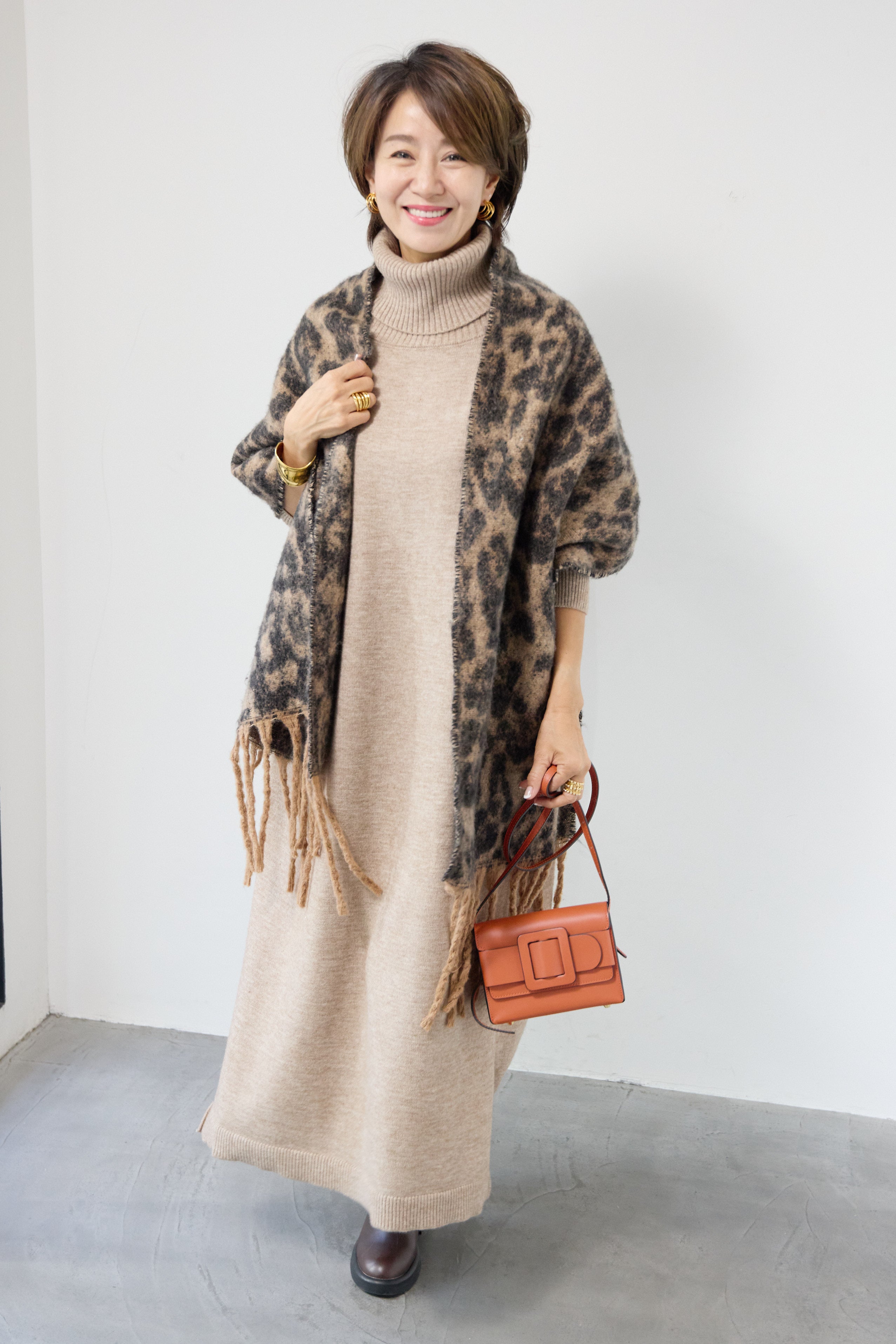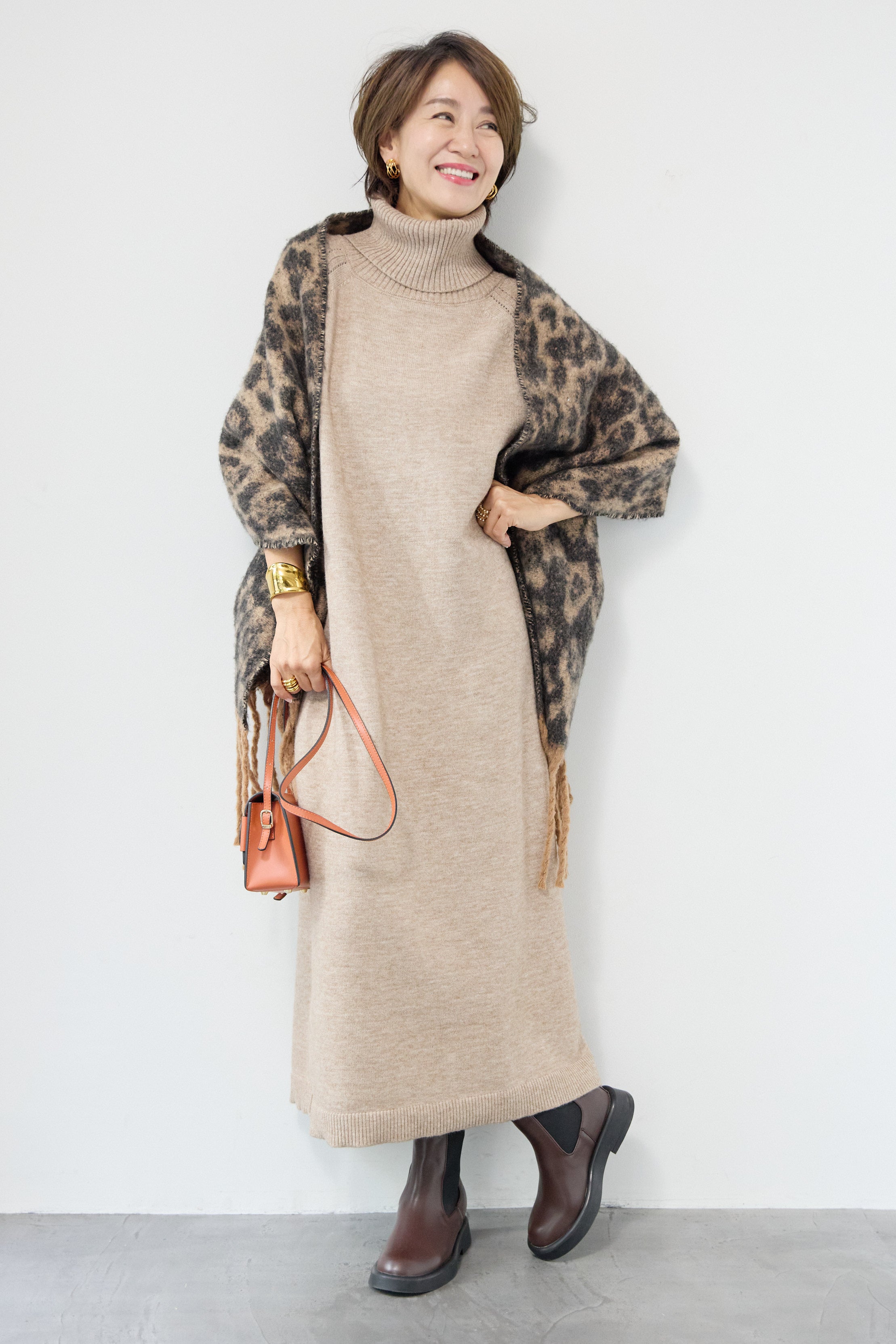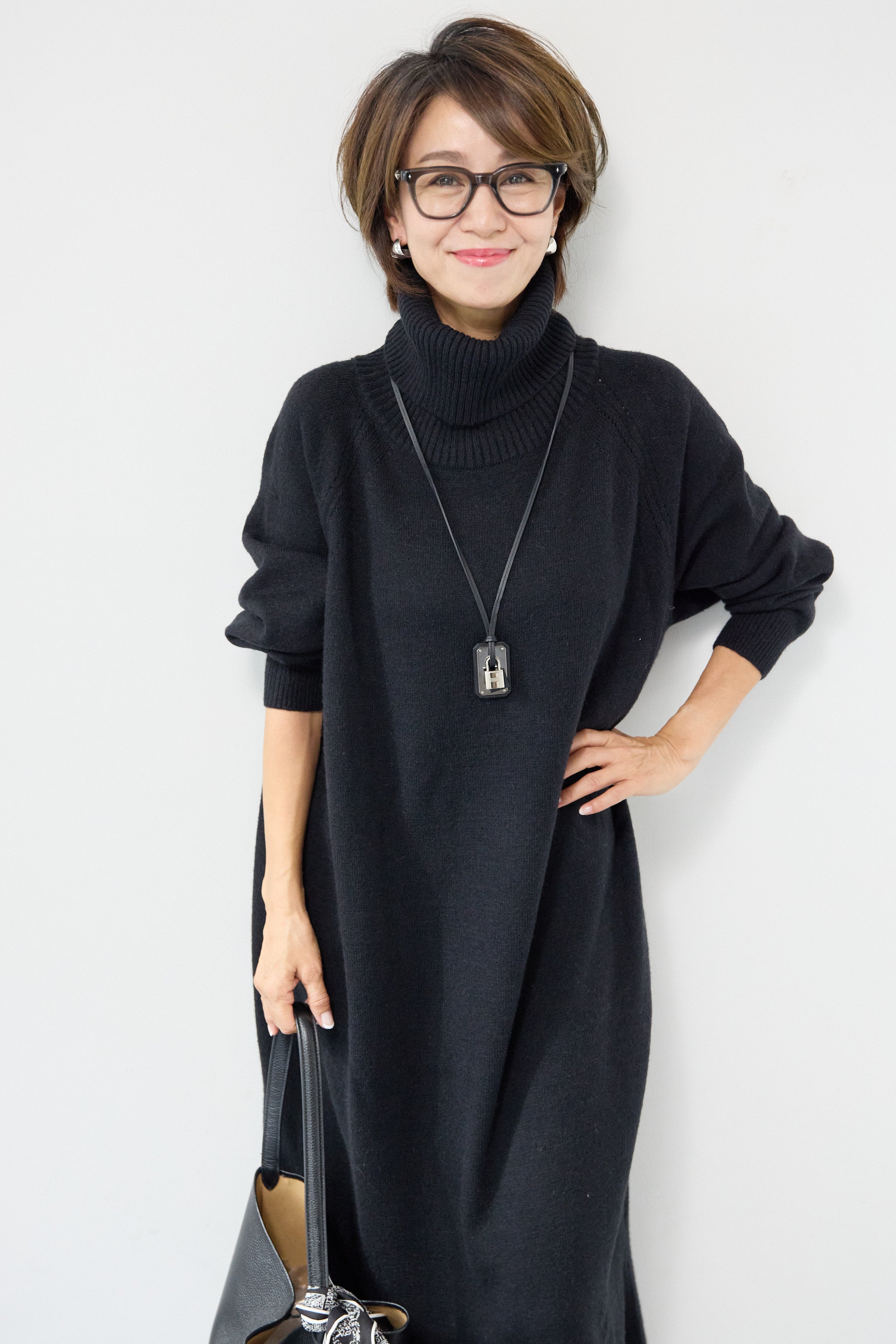 ルーズフィットタートルニットワンピース
