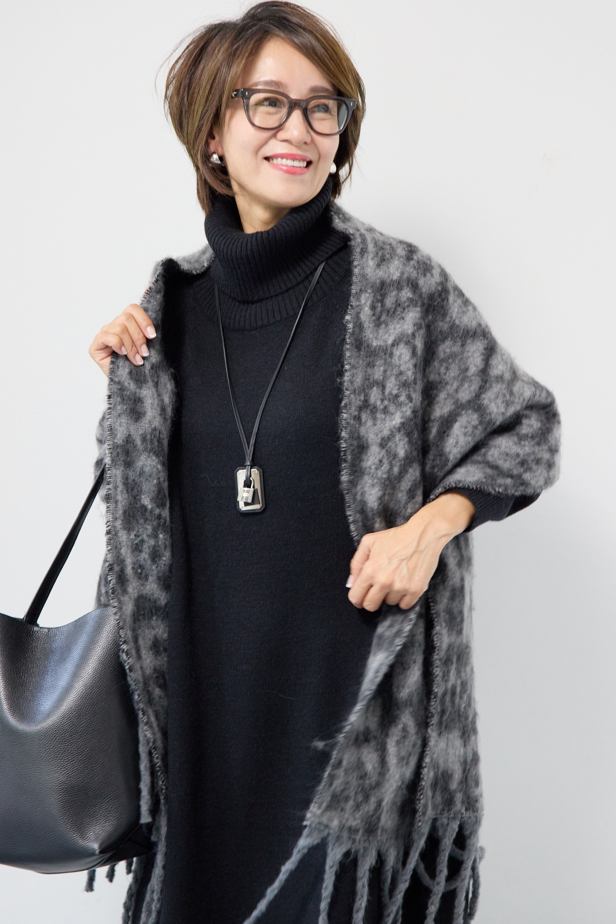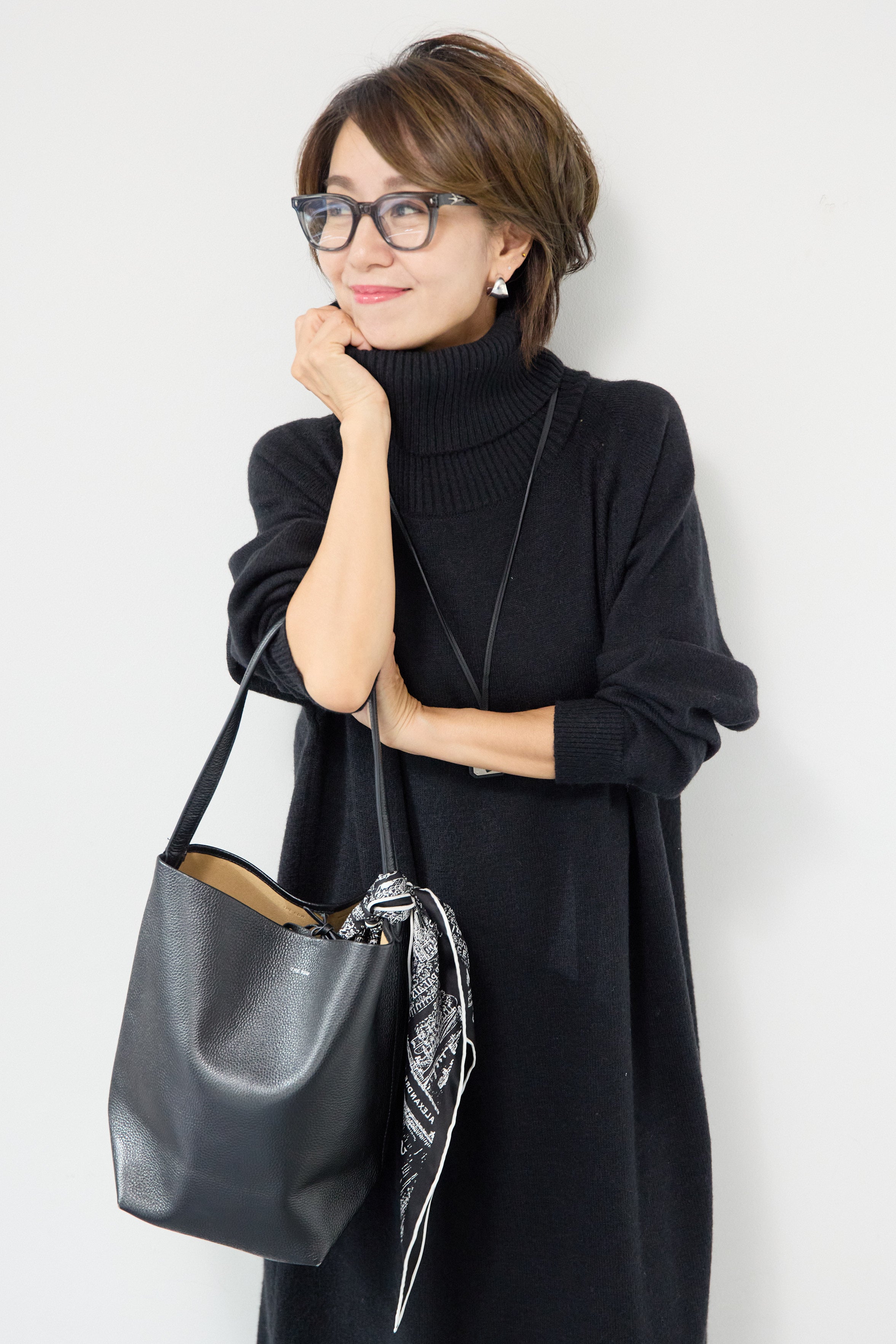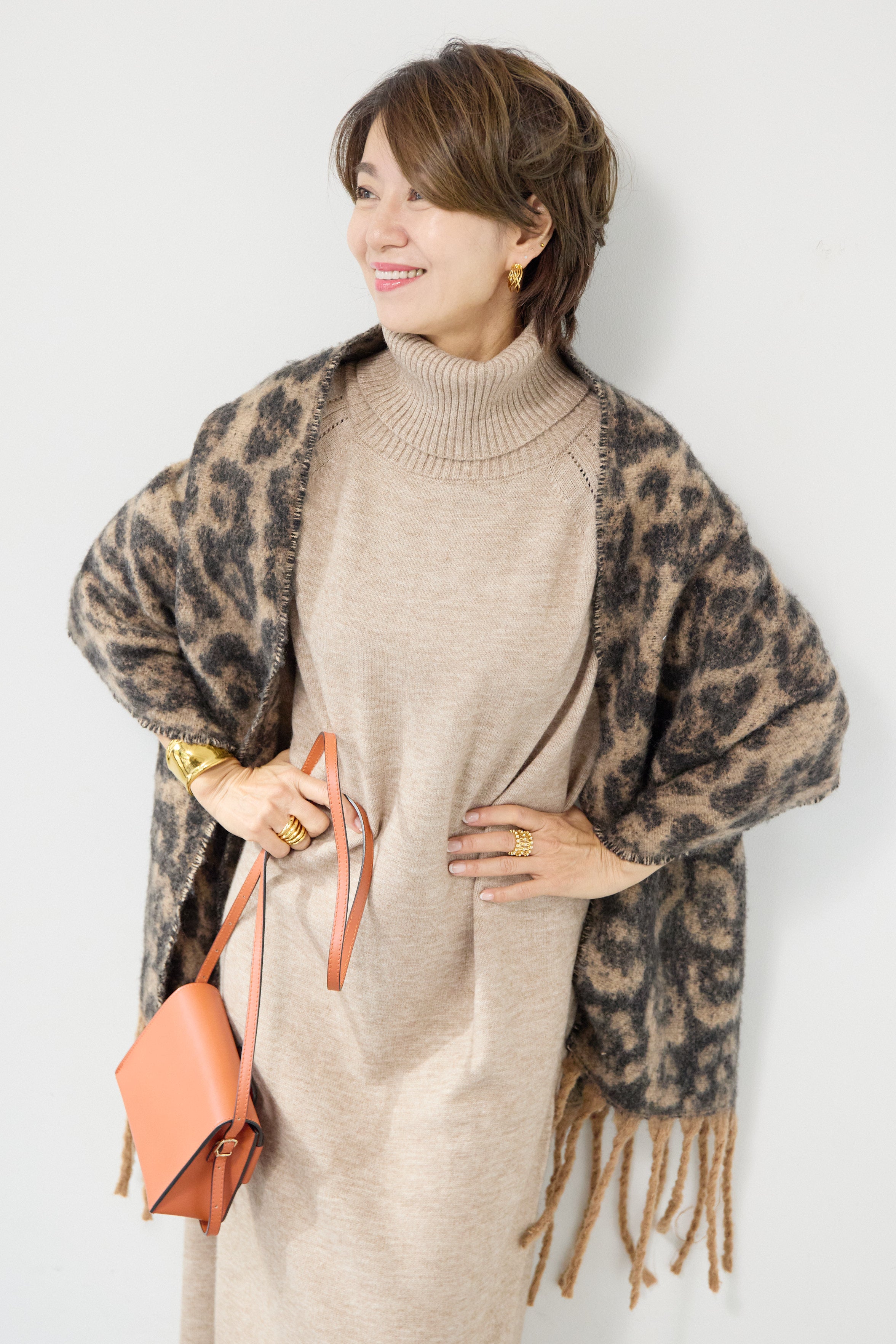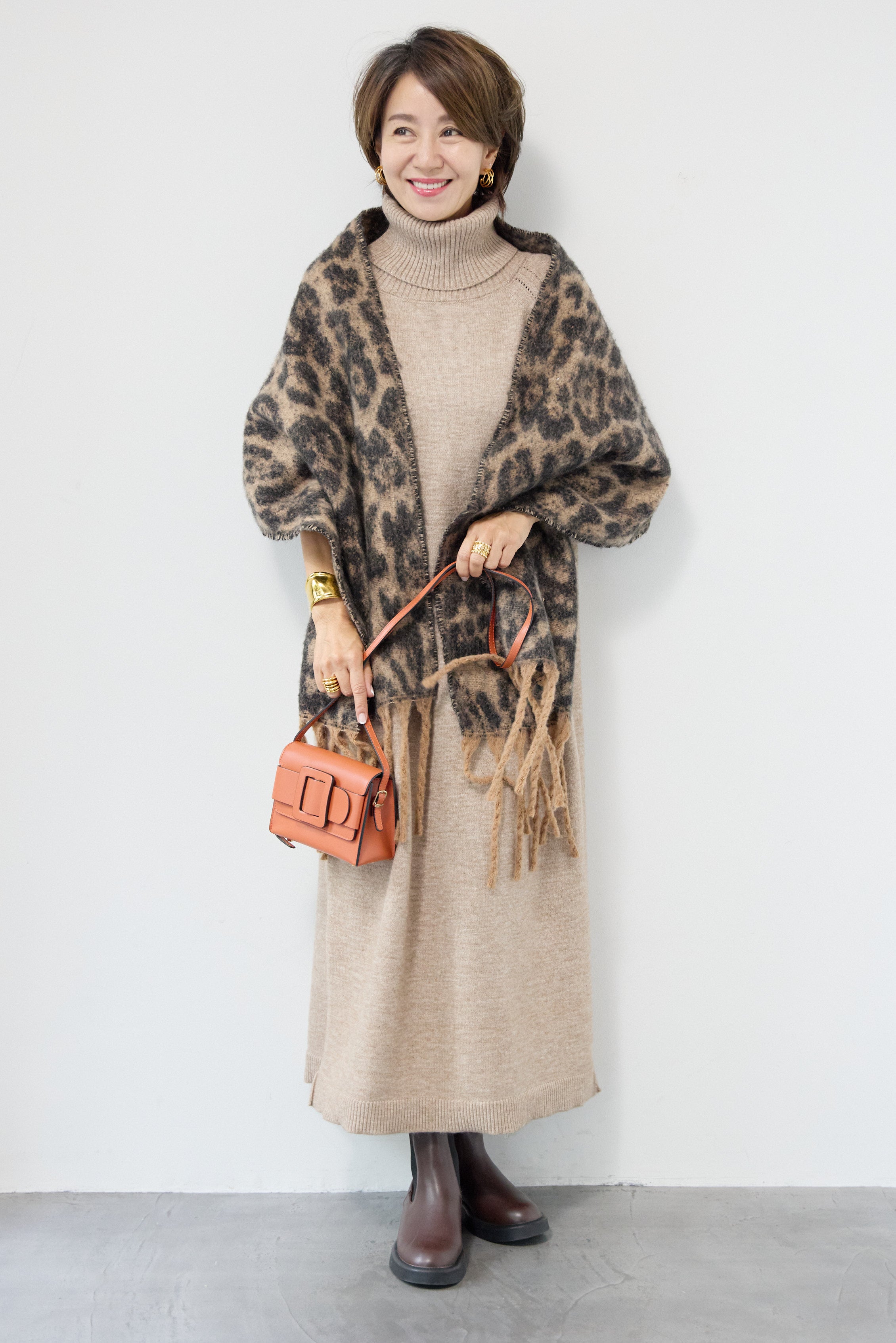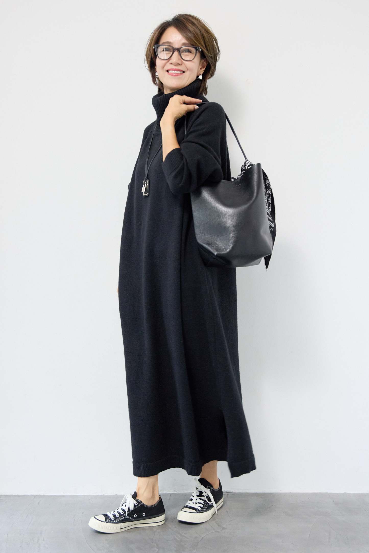 ルーズフィットタートルニットワンピース