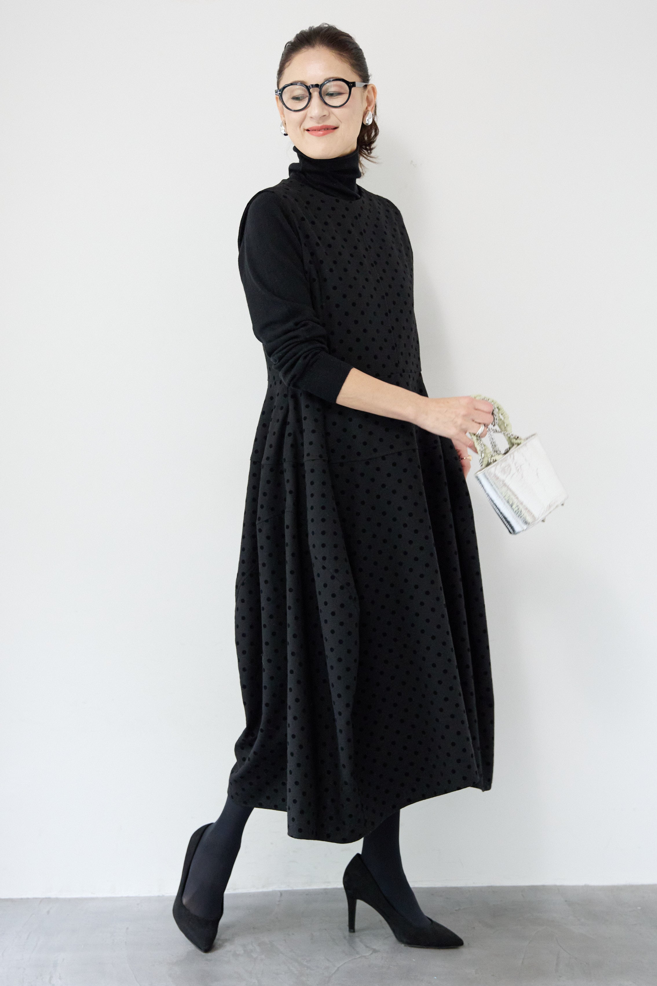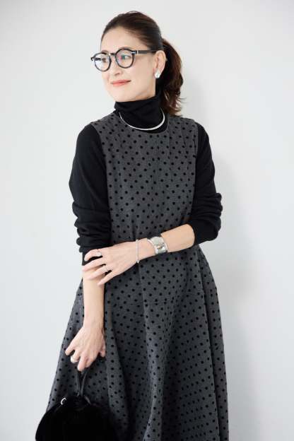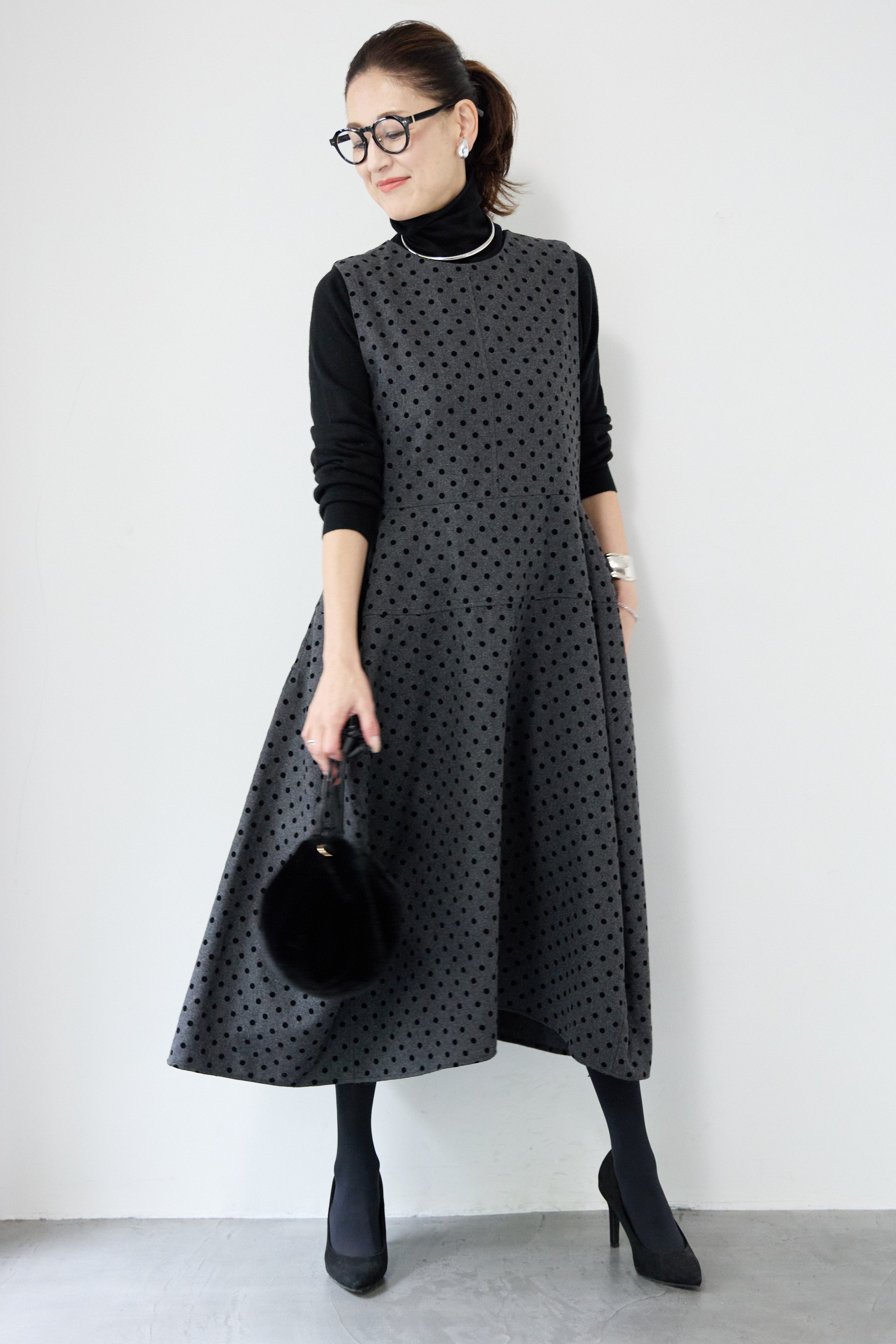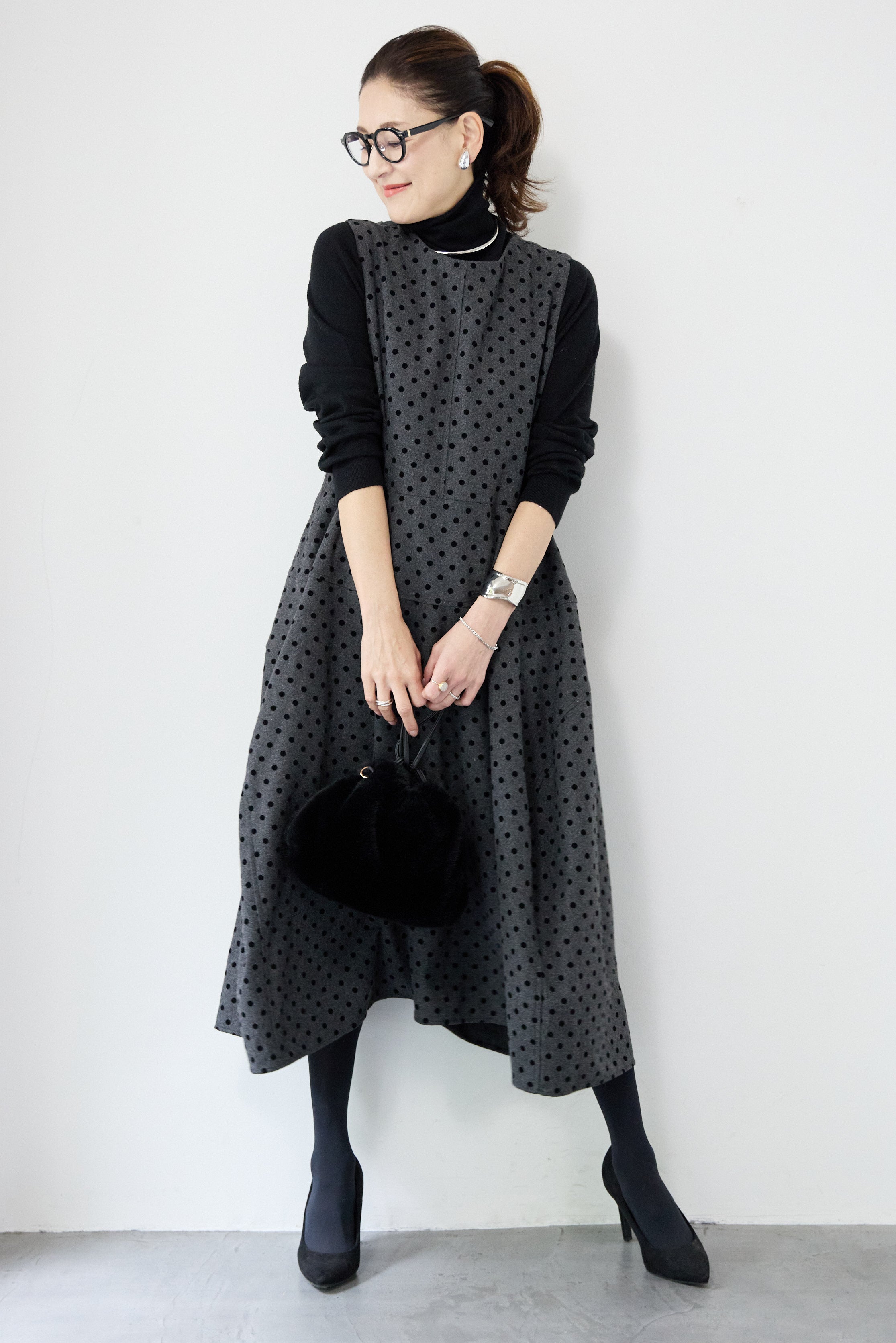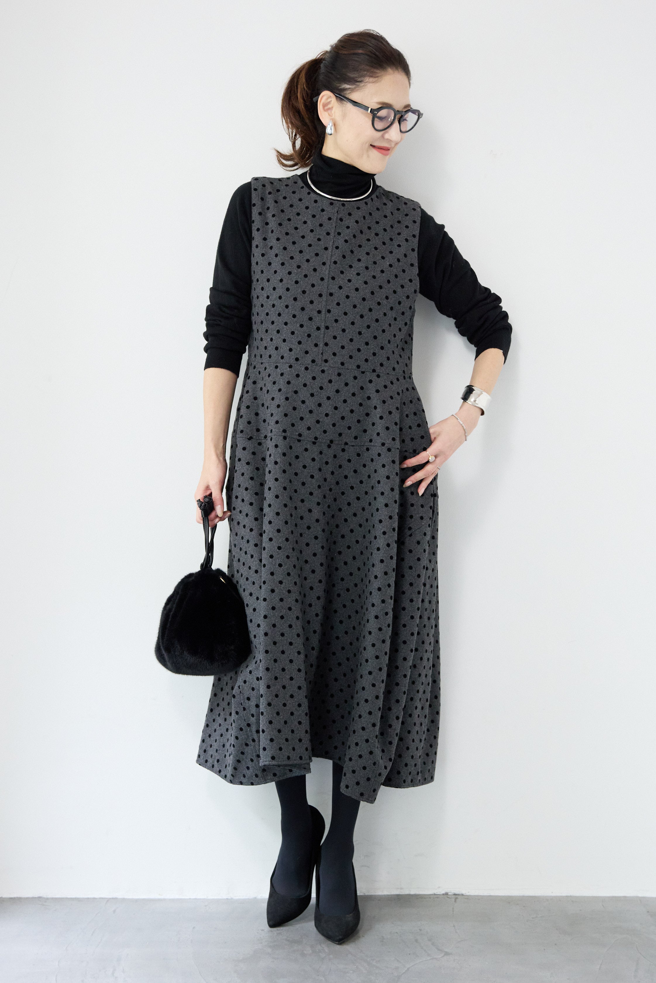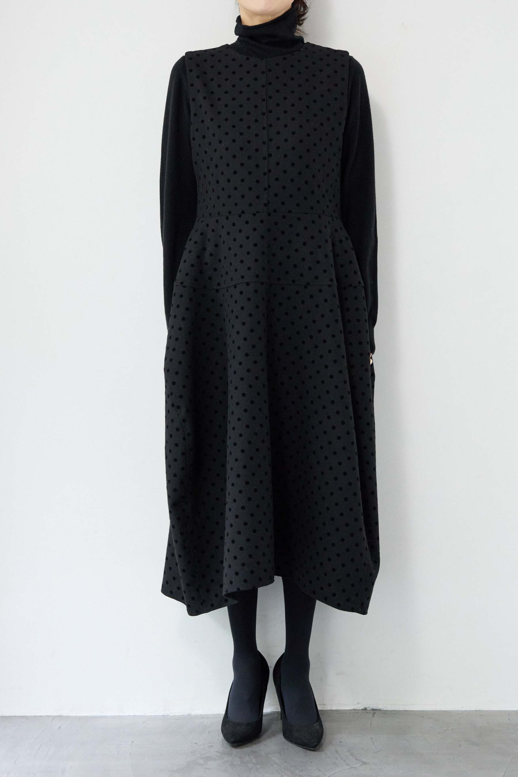 フロッキードット フレアジャンパースカート
