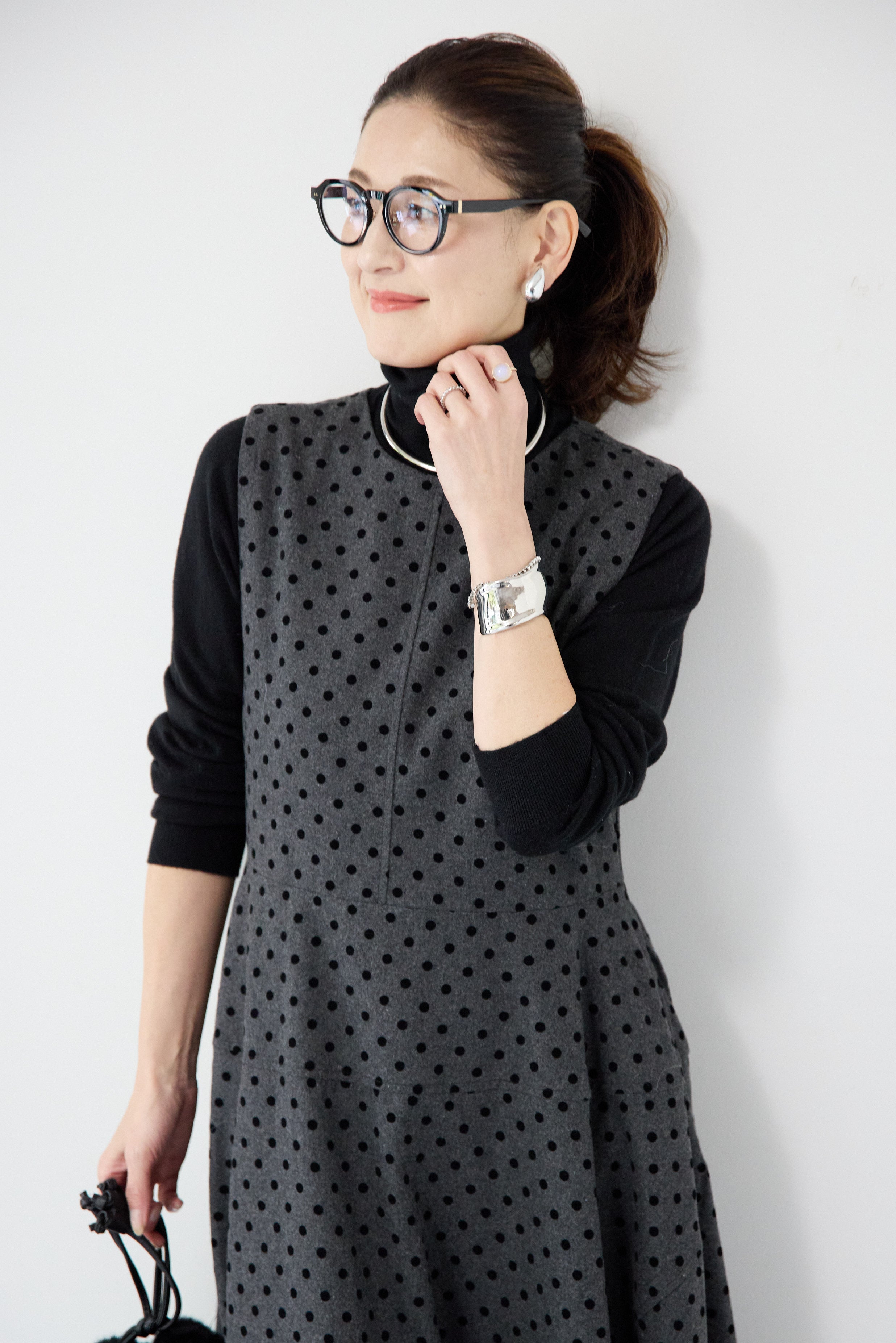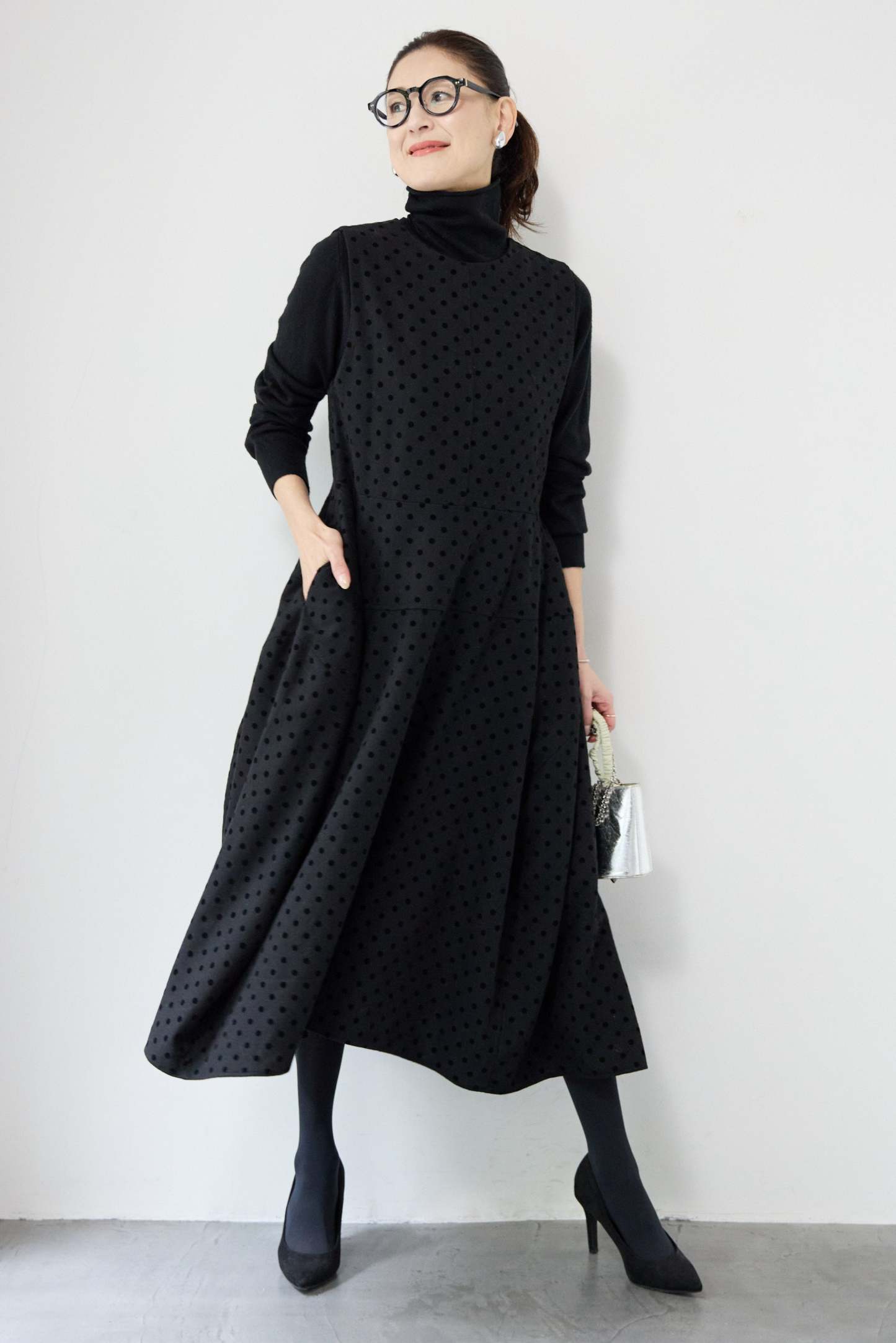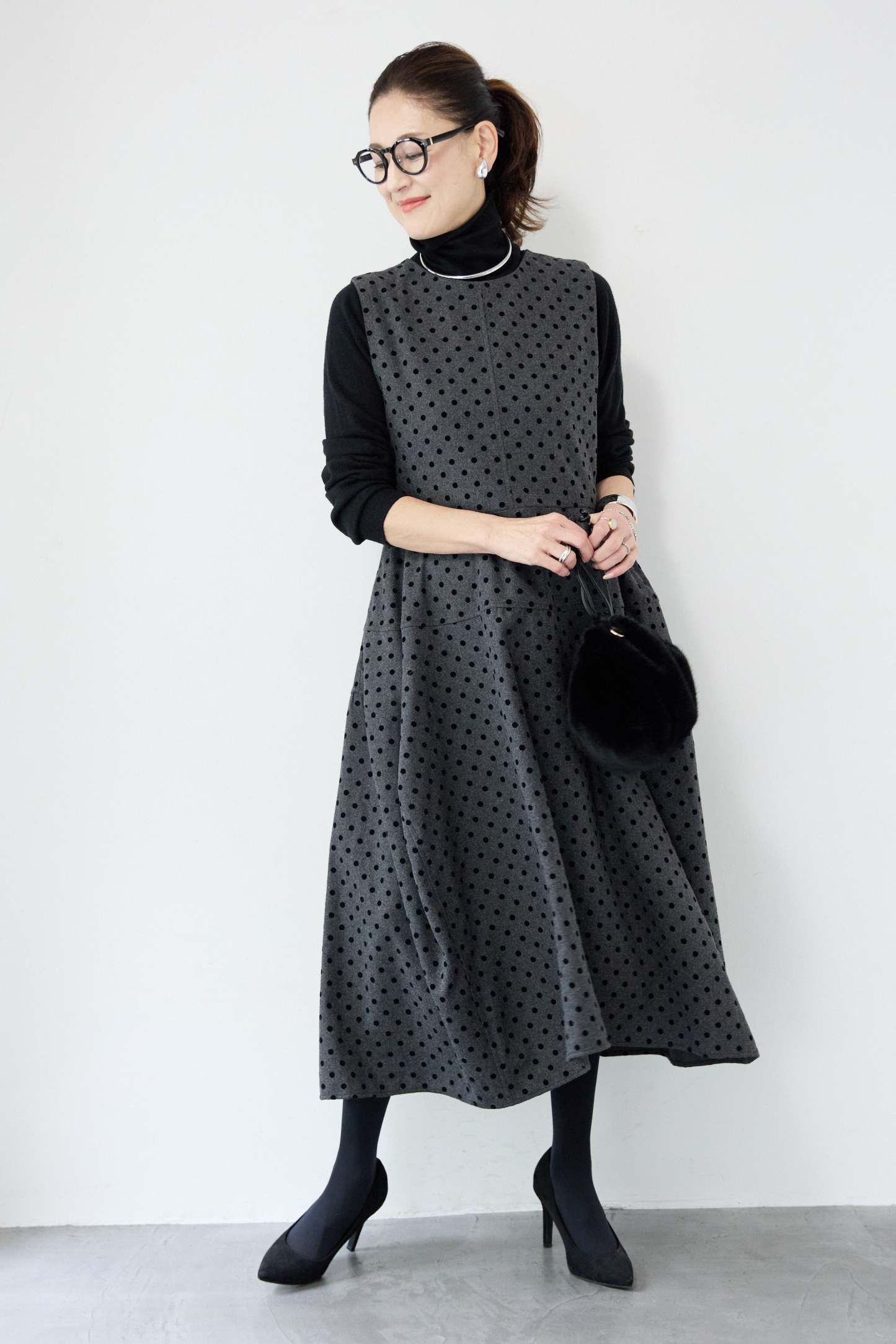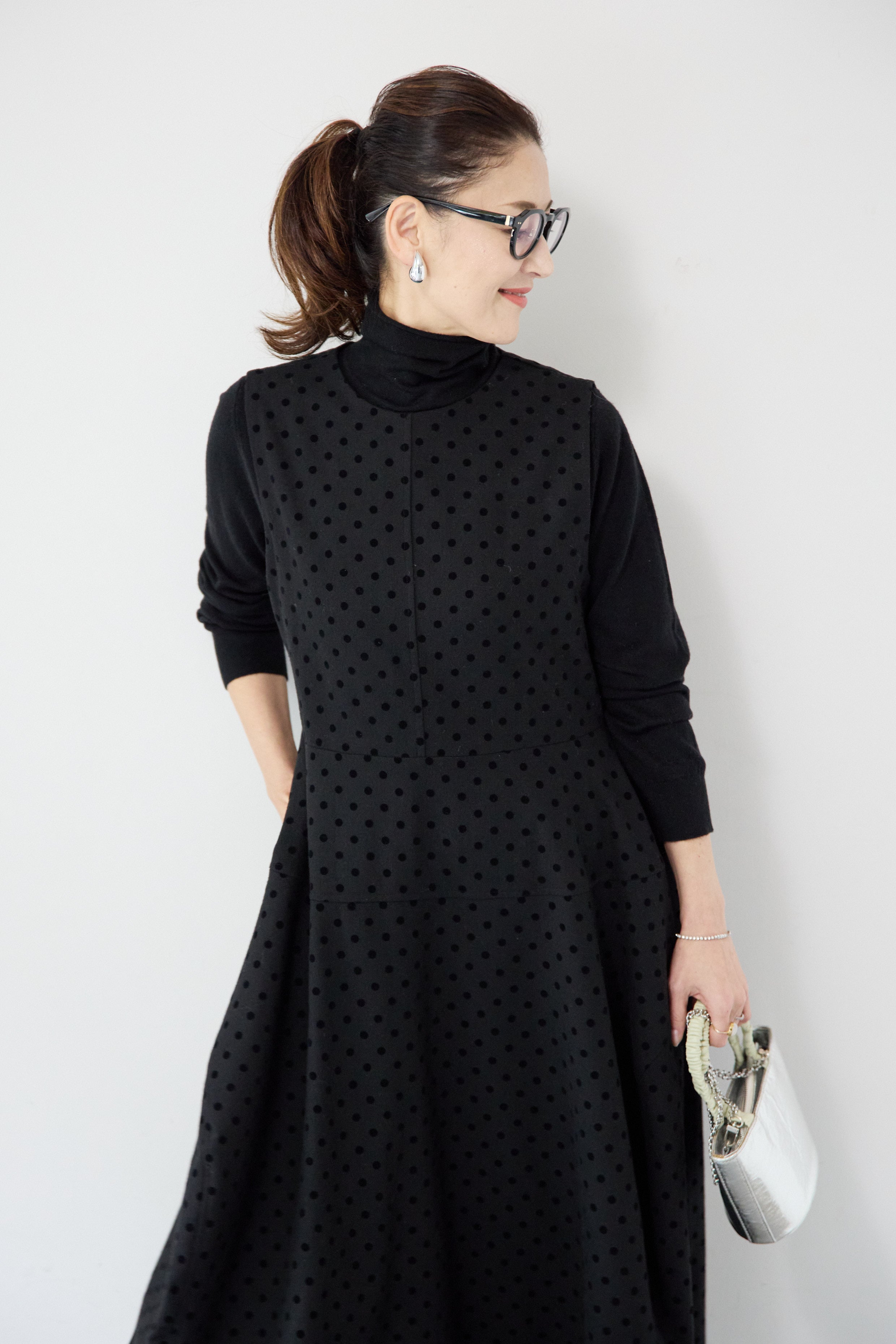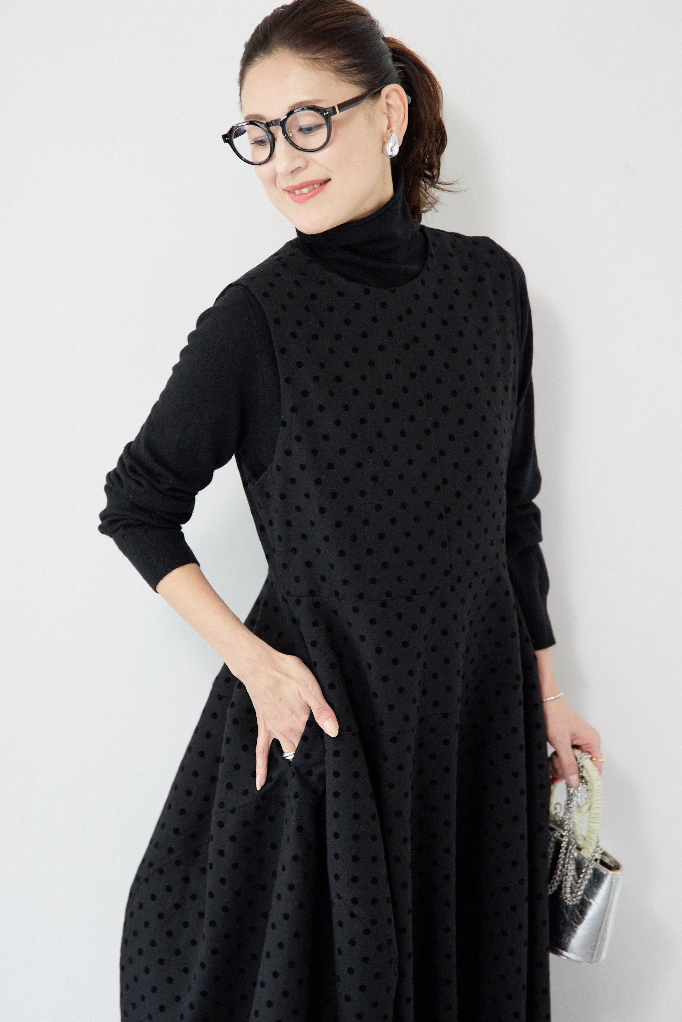 フロッキードット フレアジャンパースカート