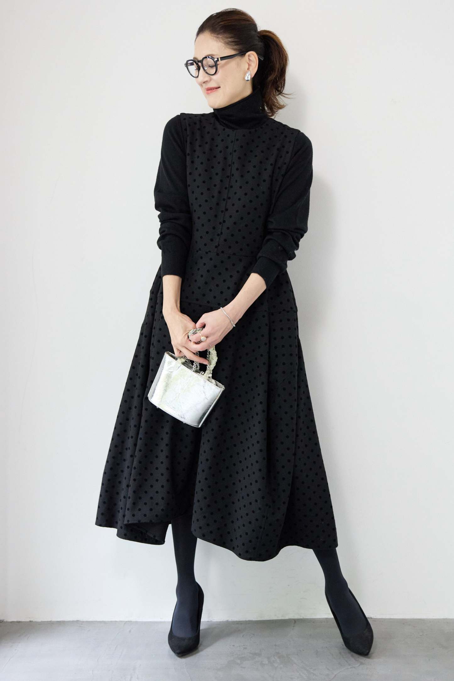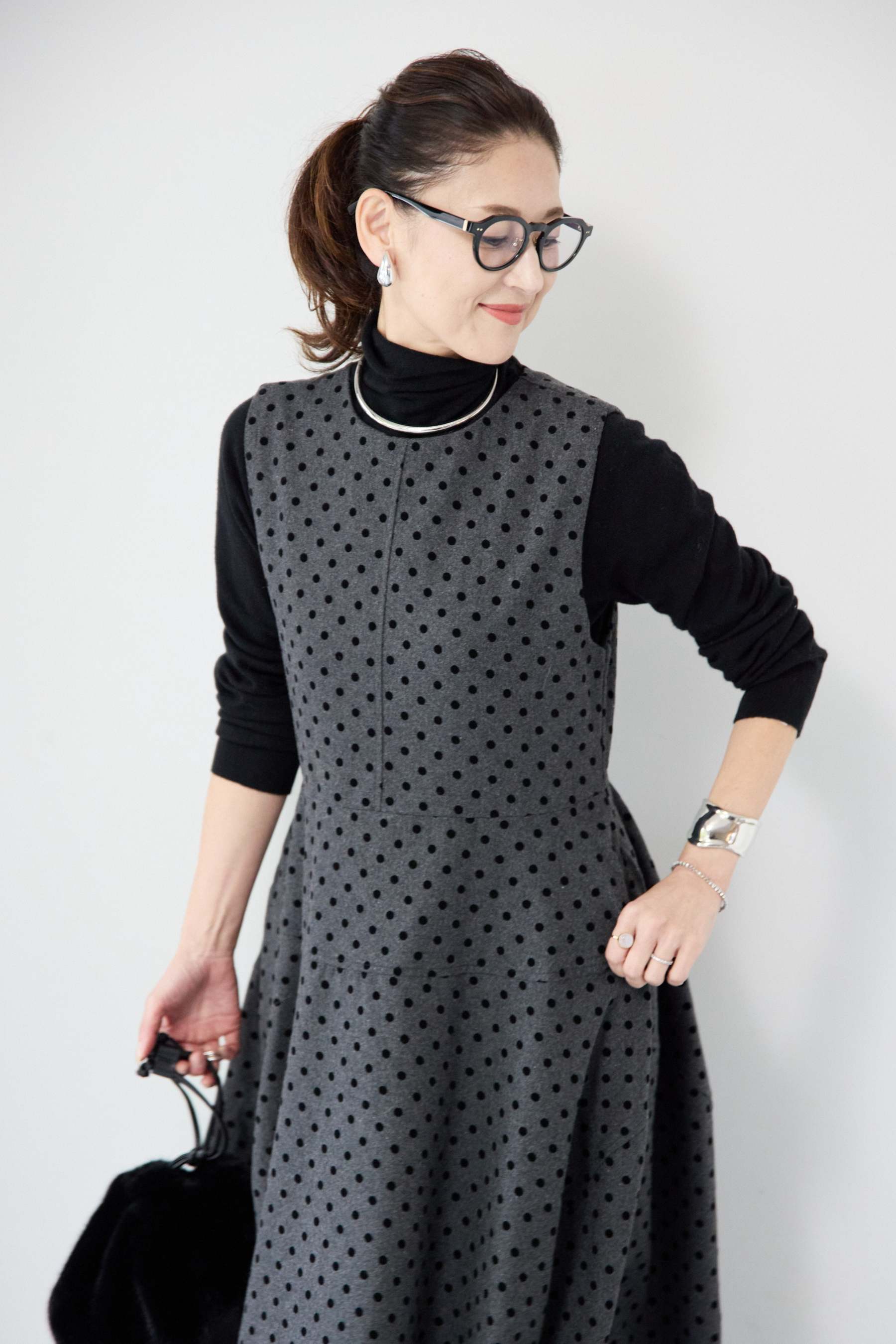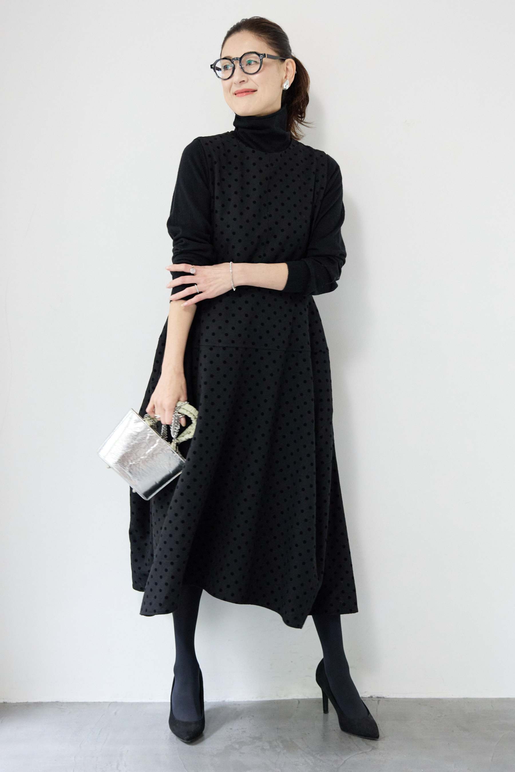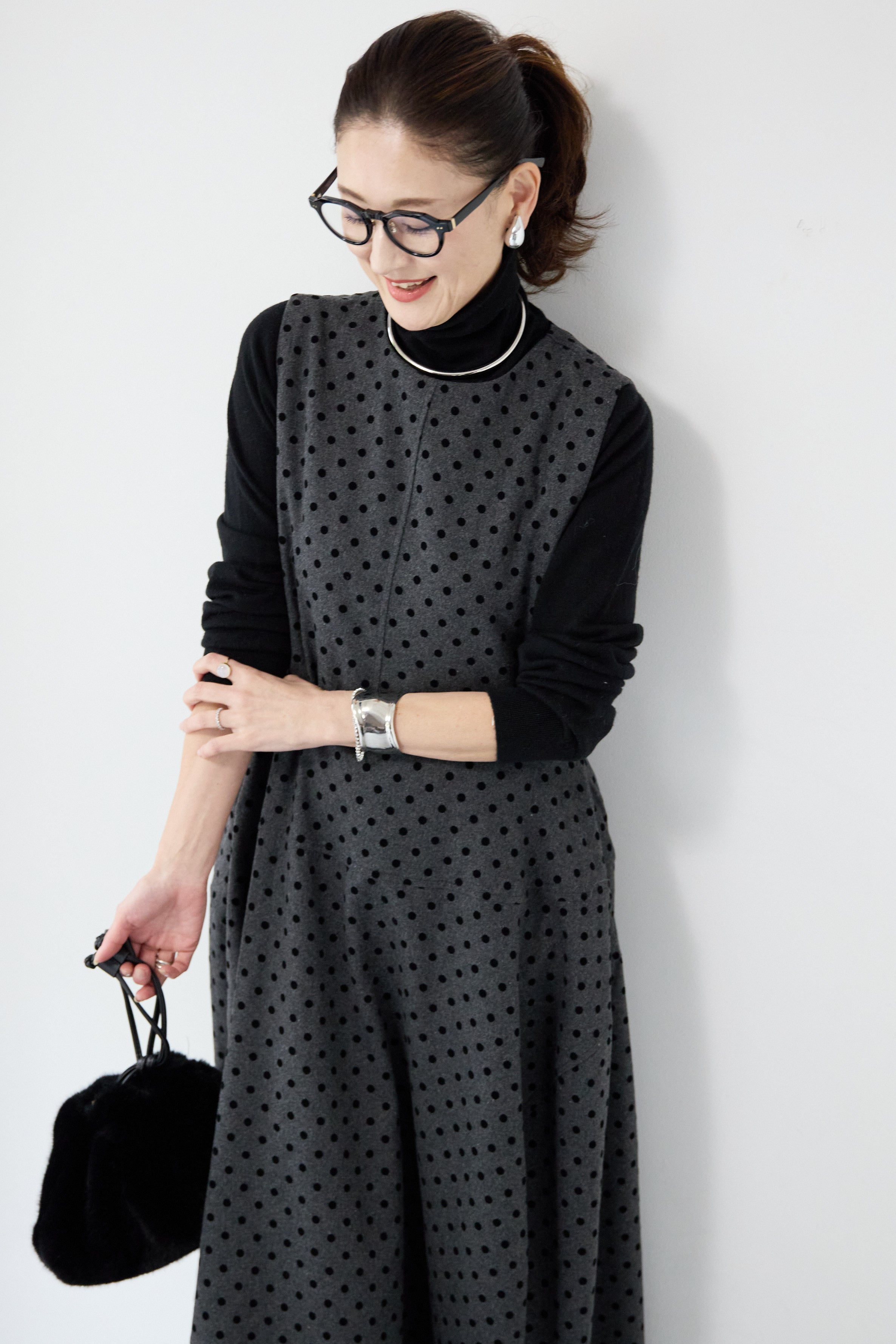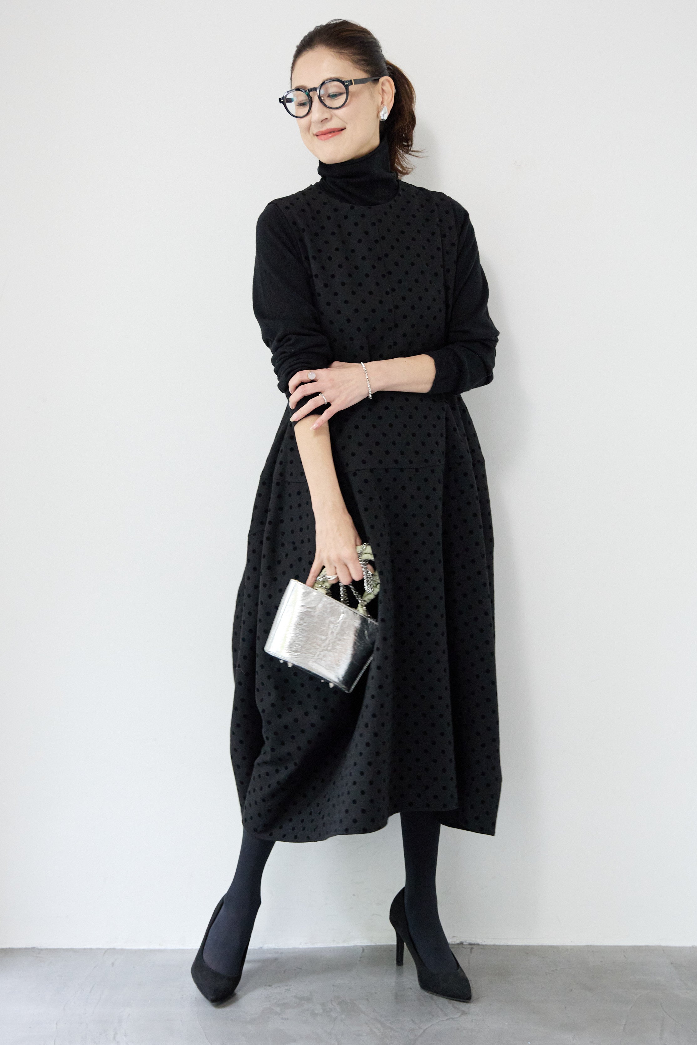 フロッキードット フレアジャンパースカート