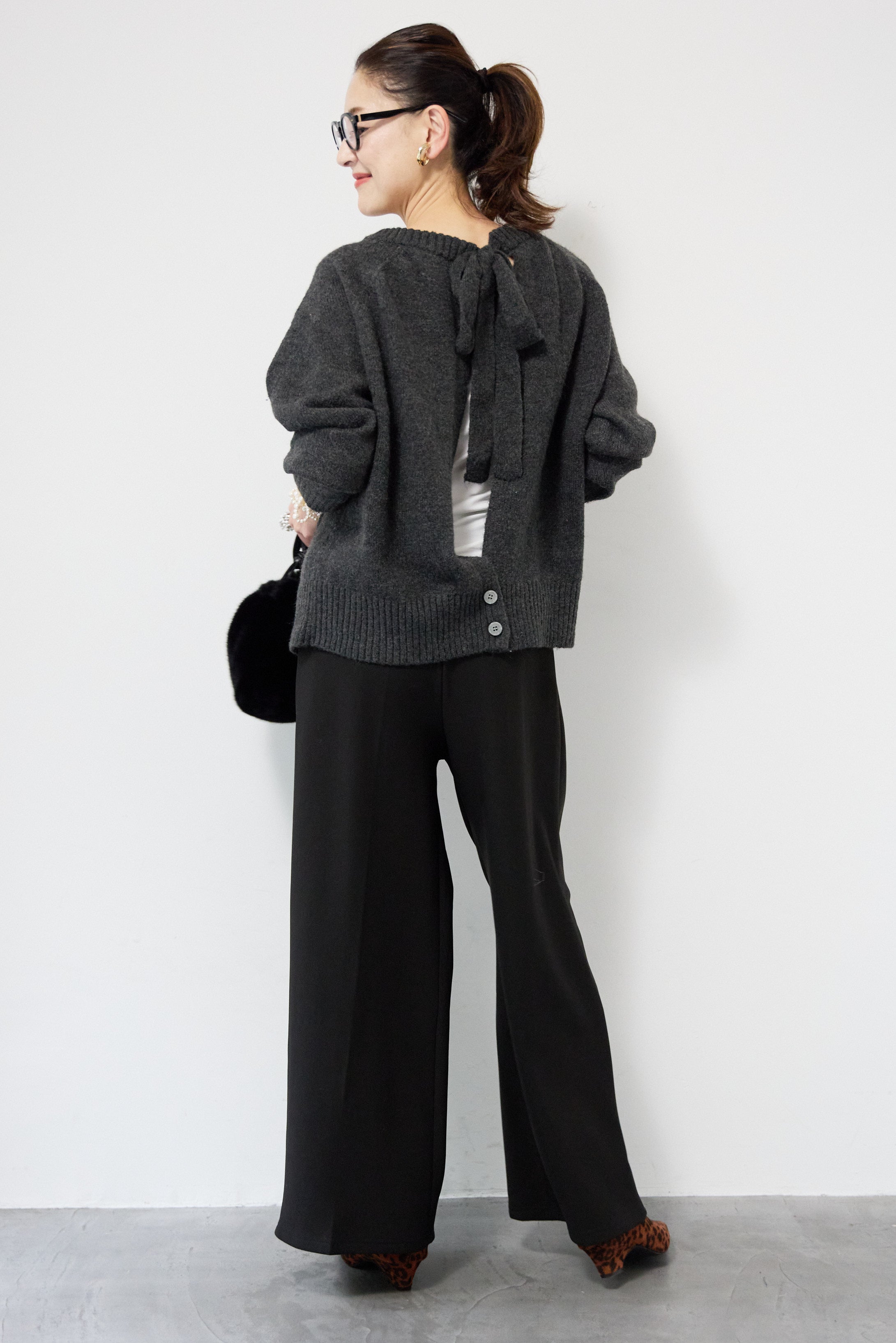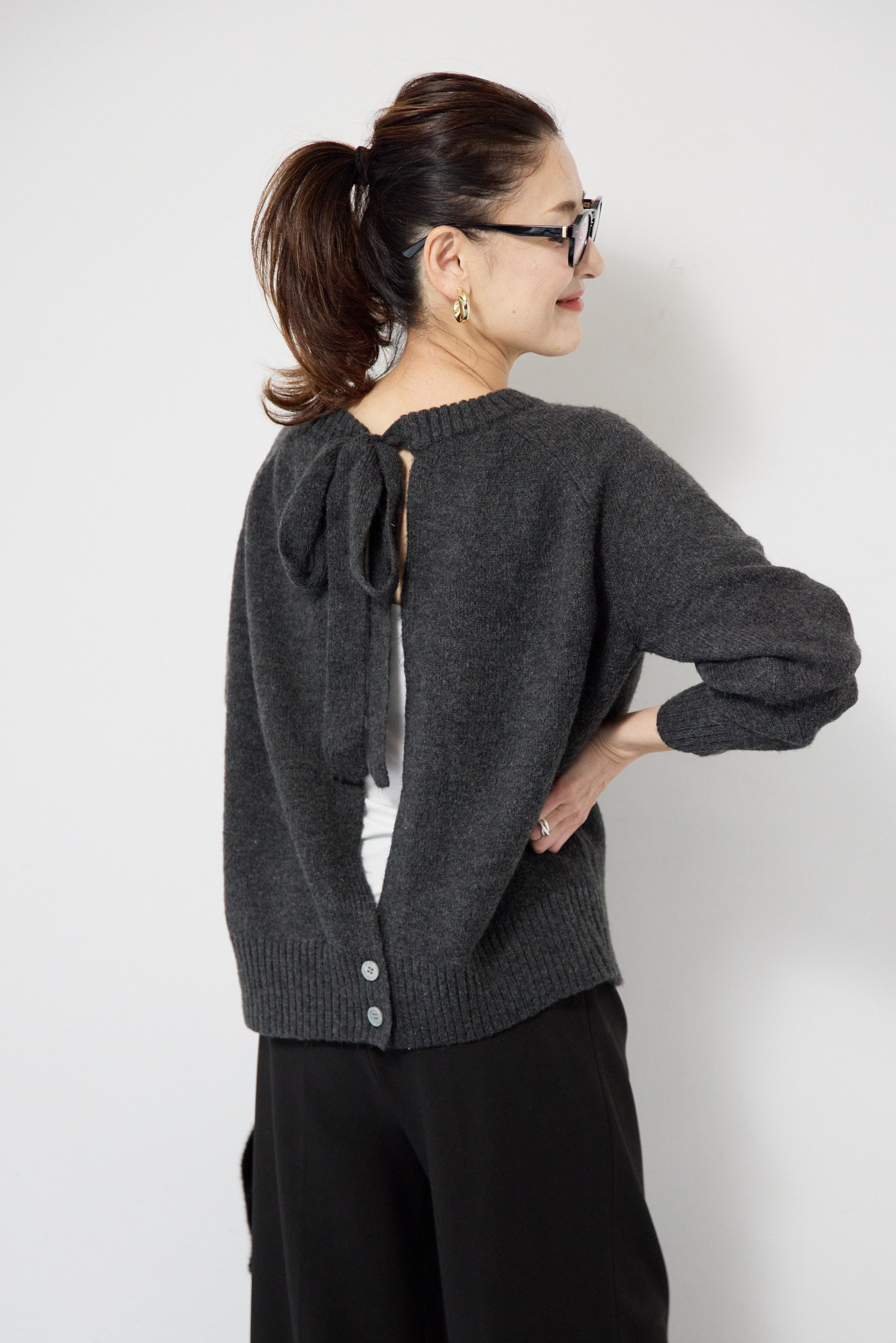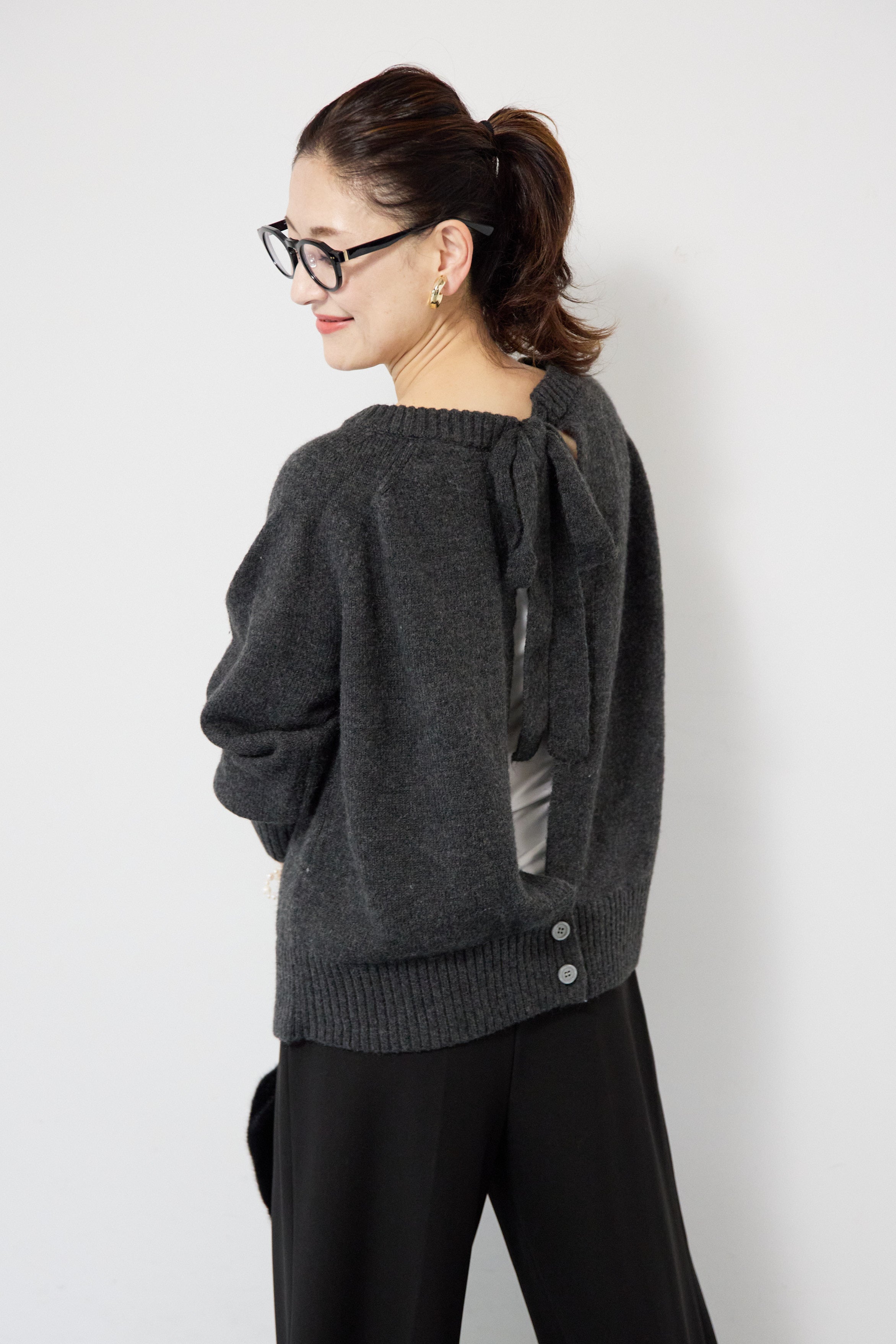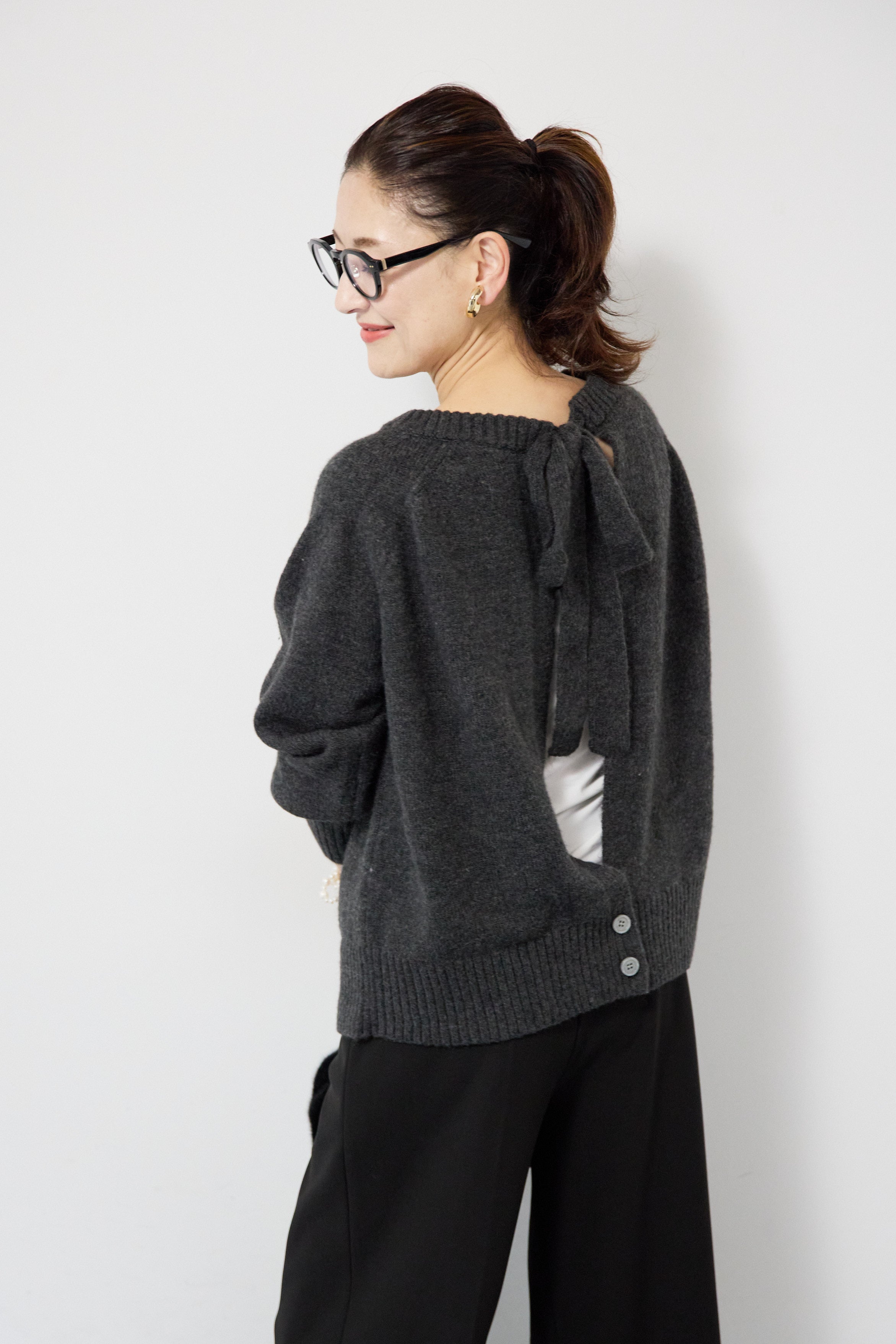 バックシャンリボンデザインニット