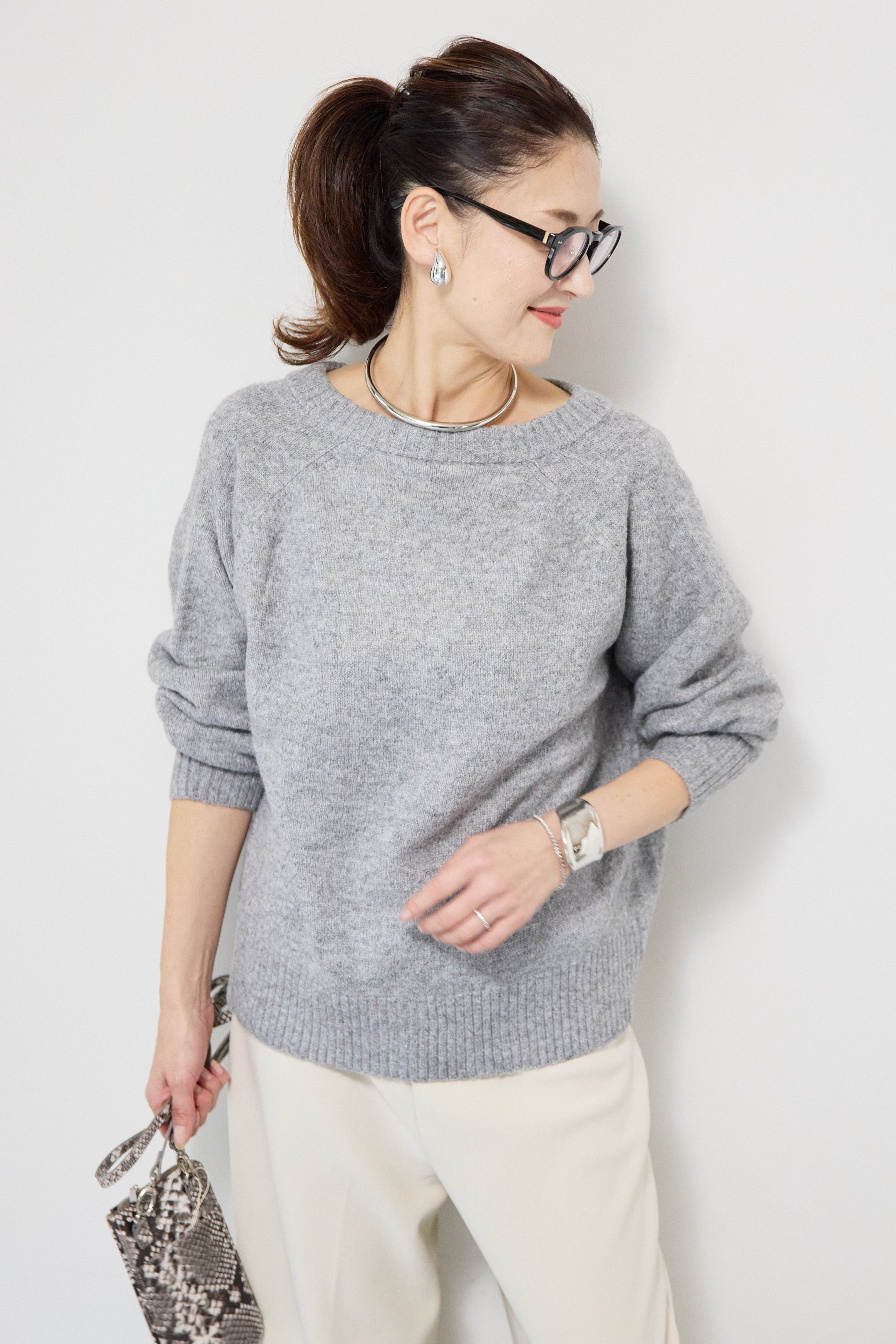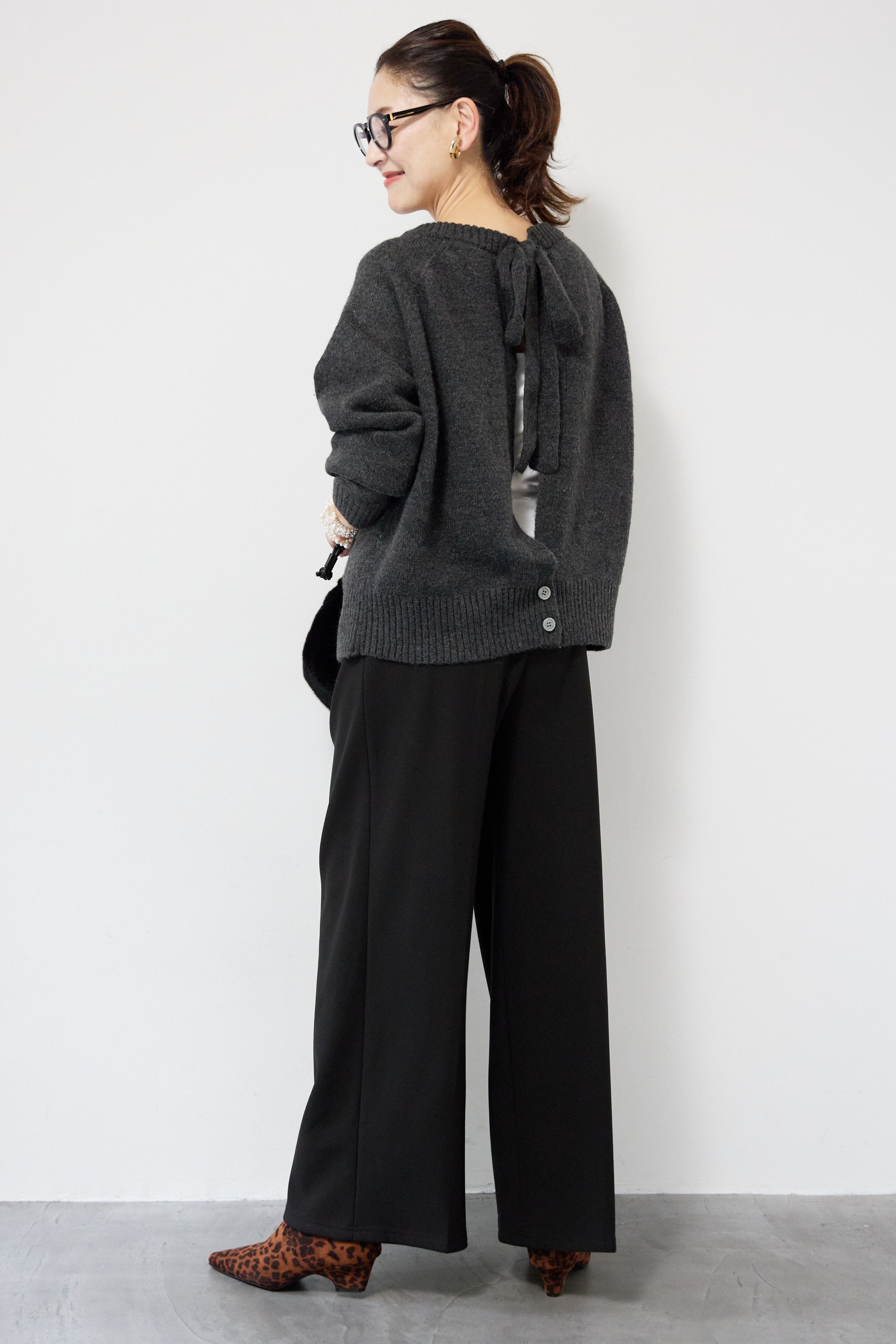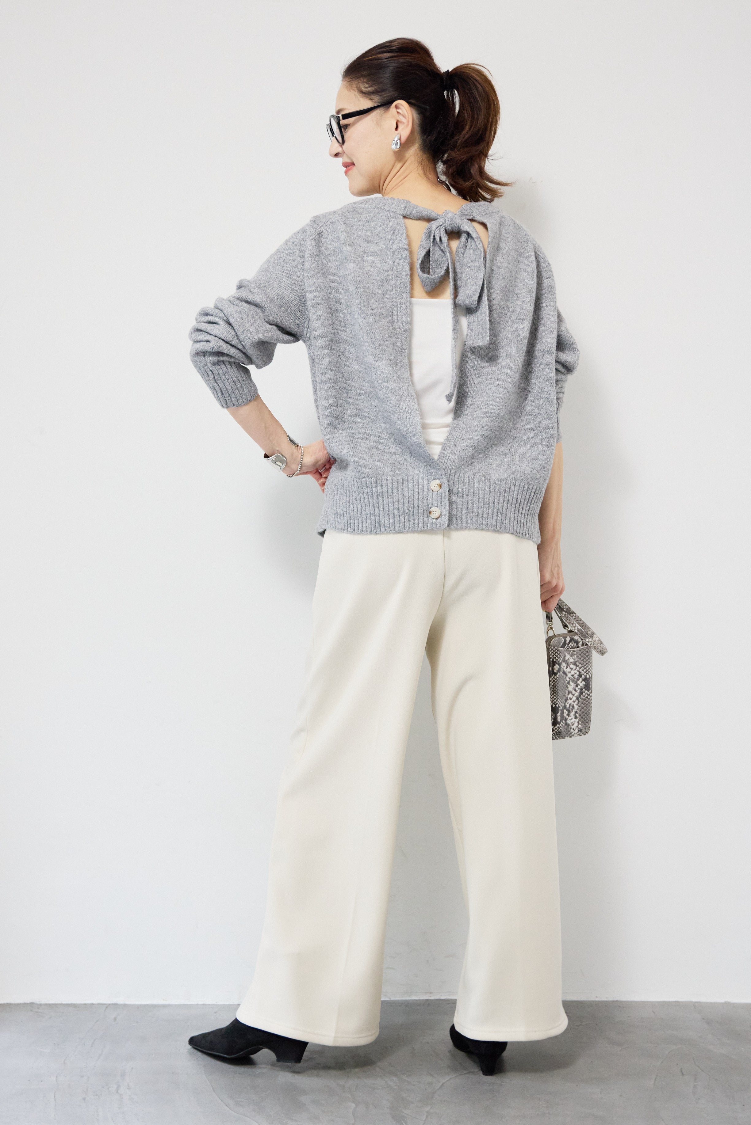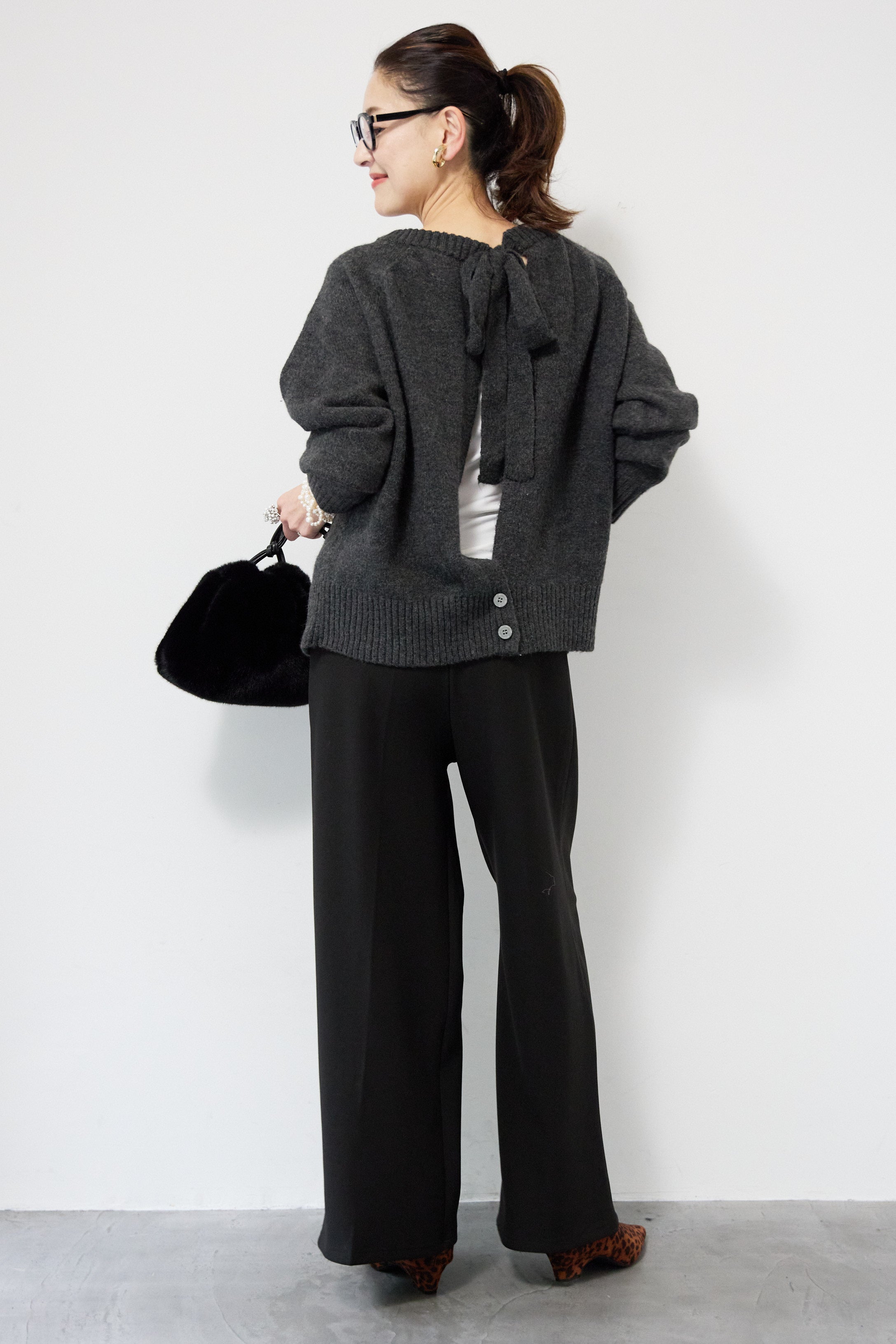 バックシャンリボンデザインニット