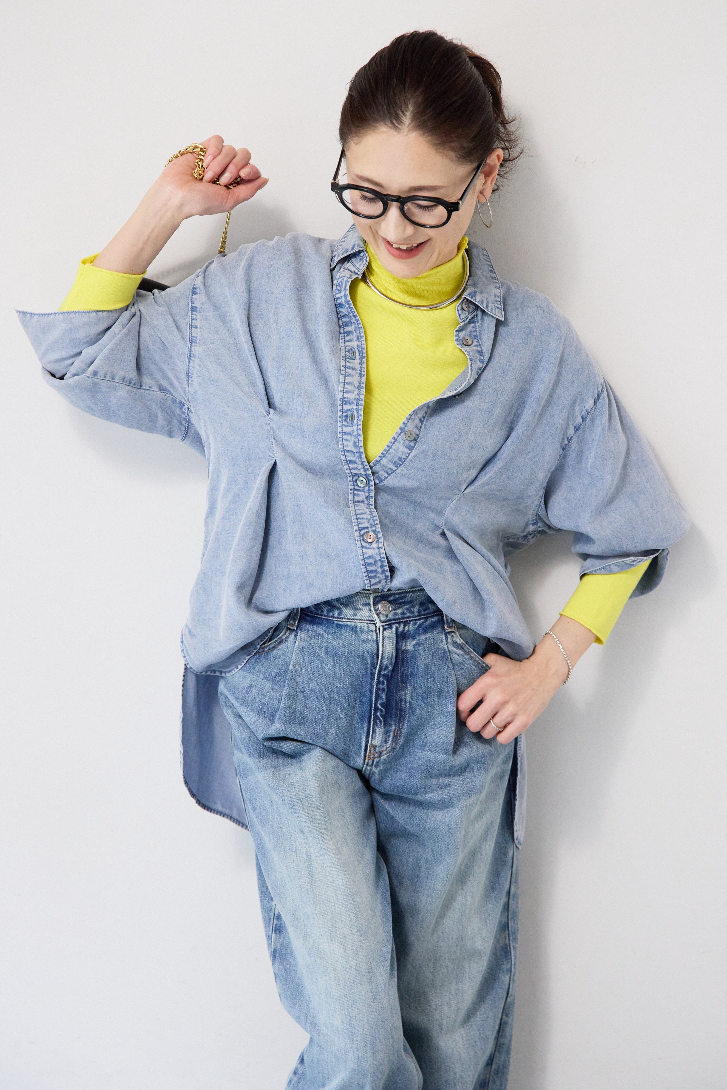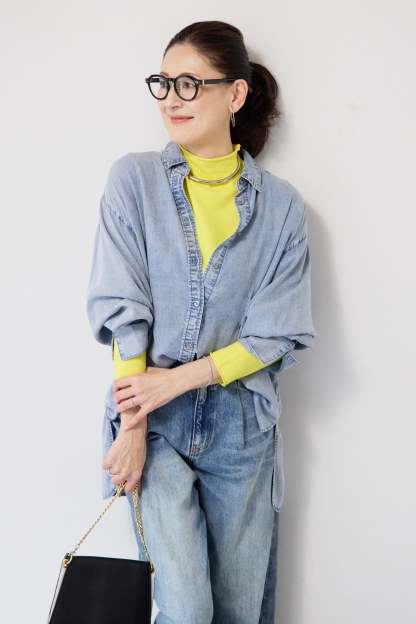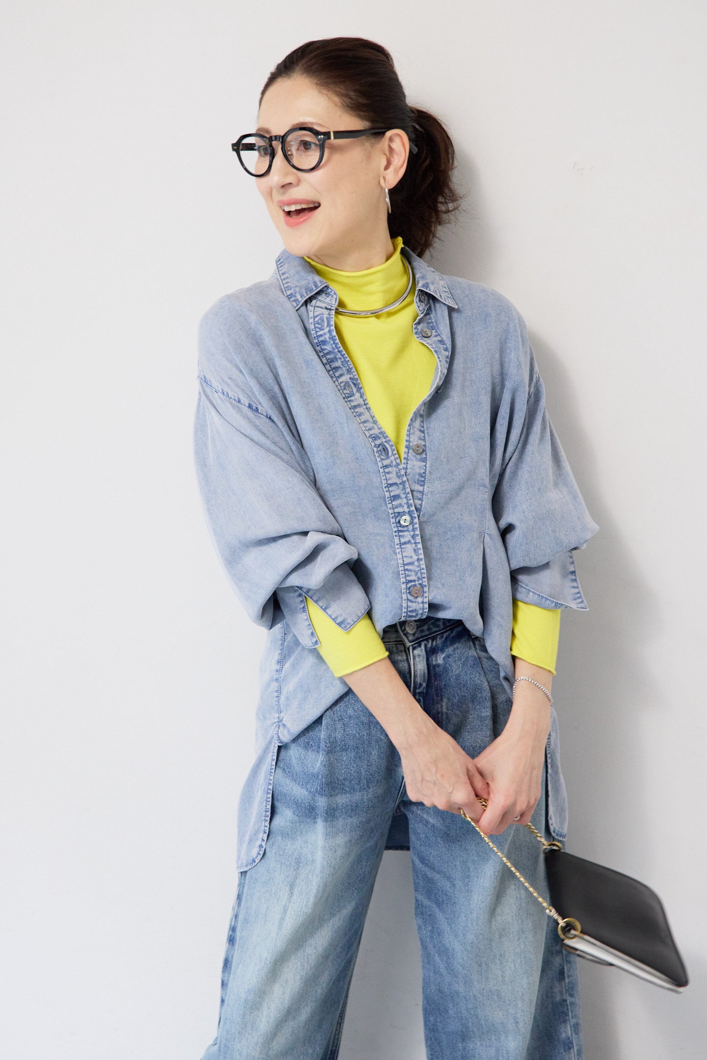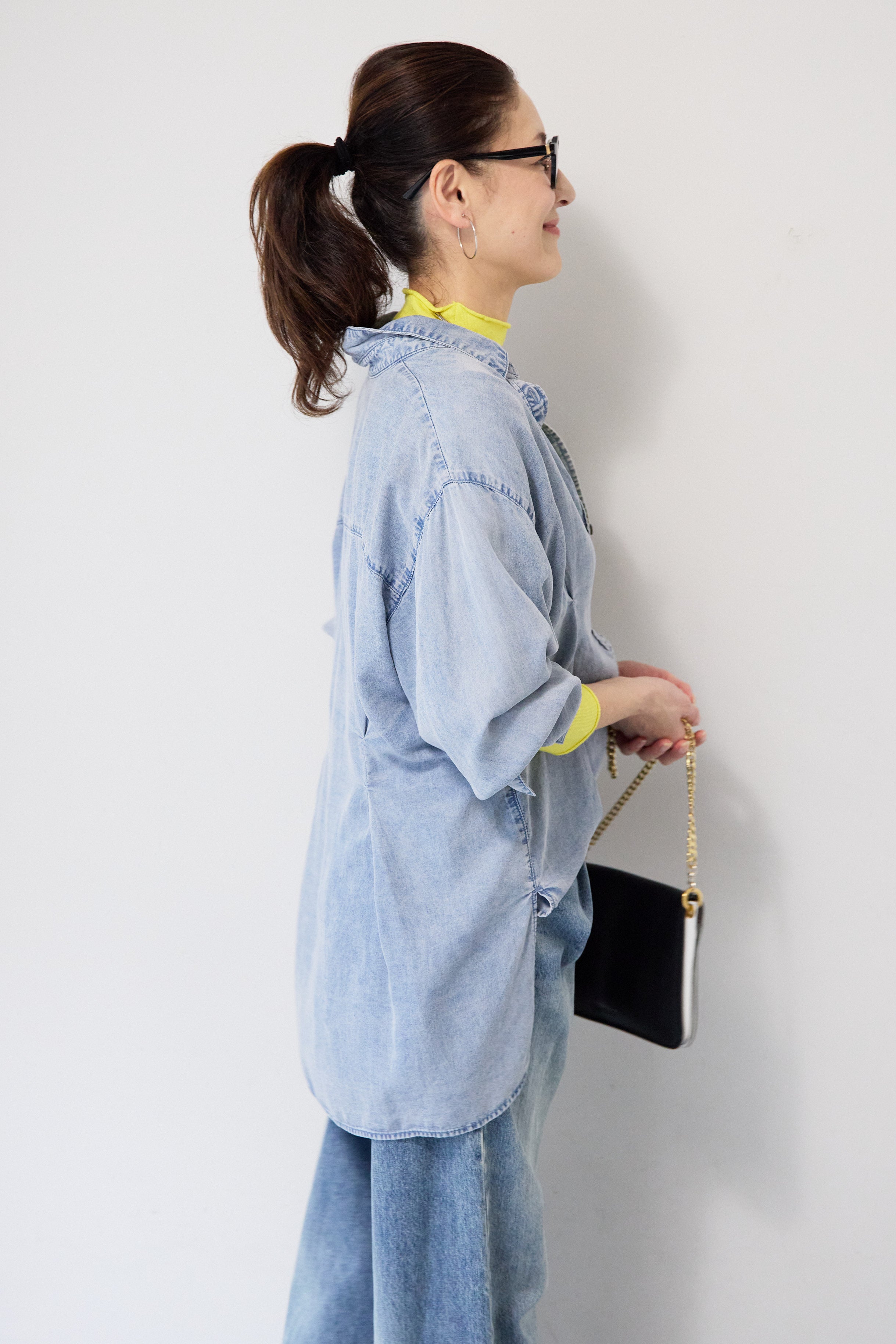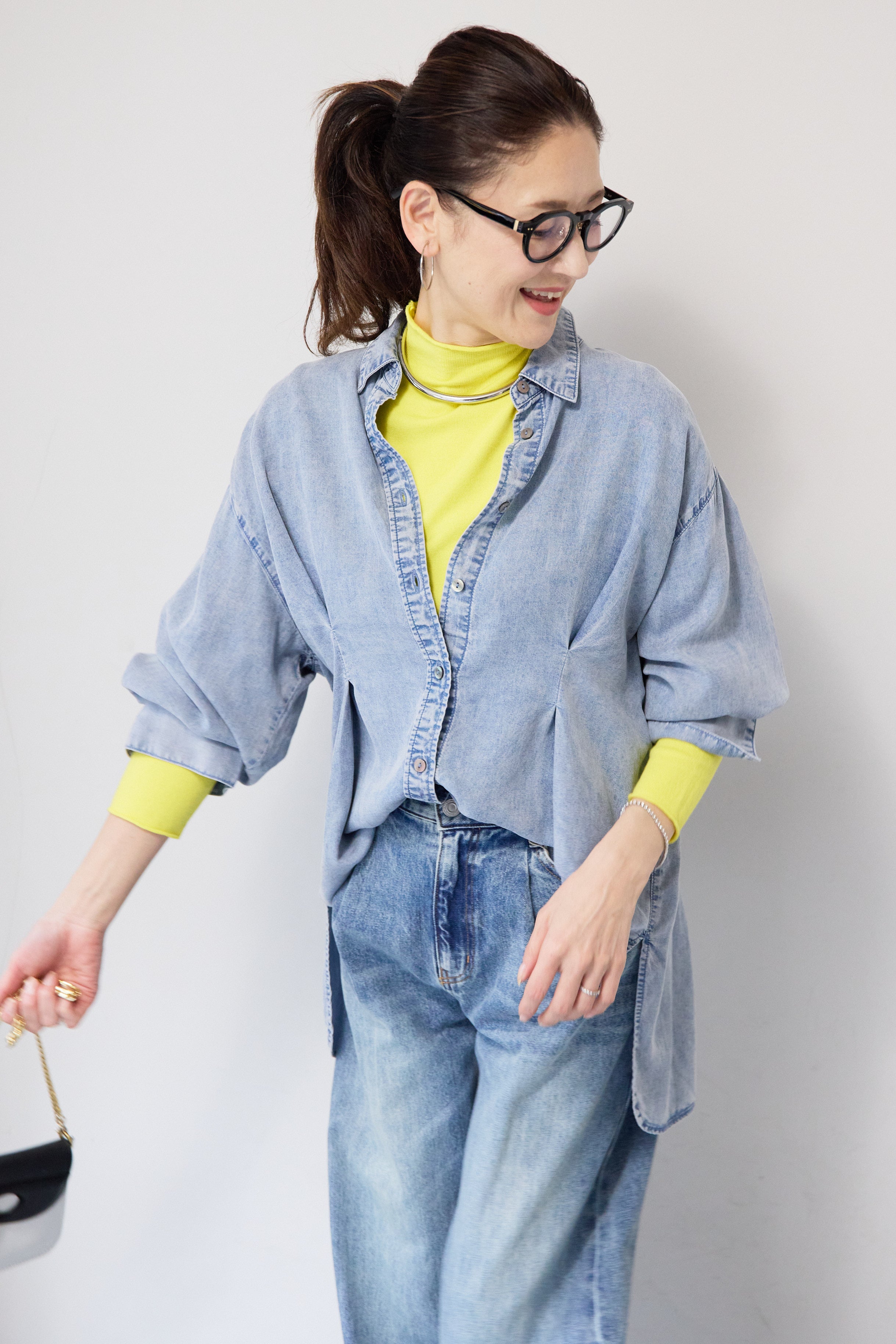 テンセルデニムタックシャツ