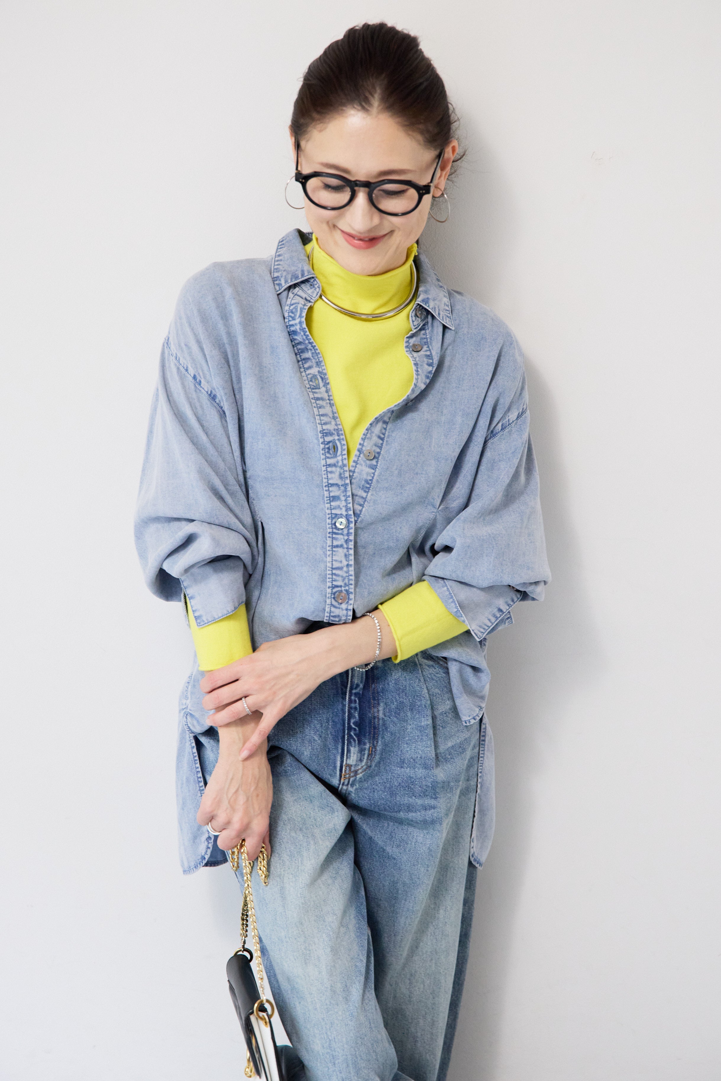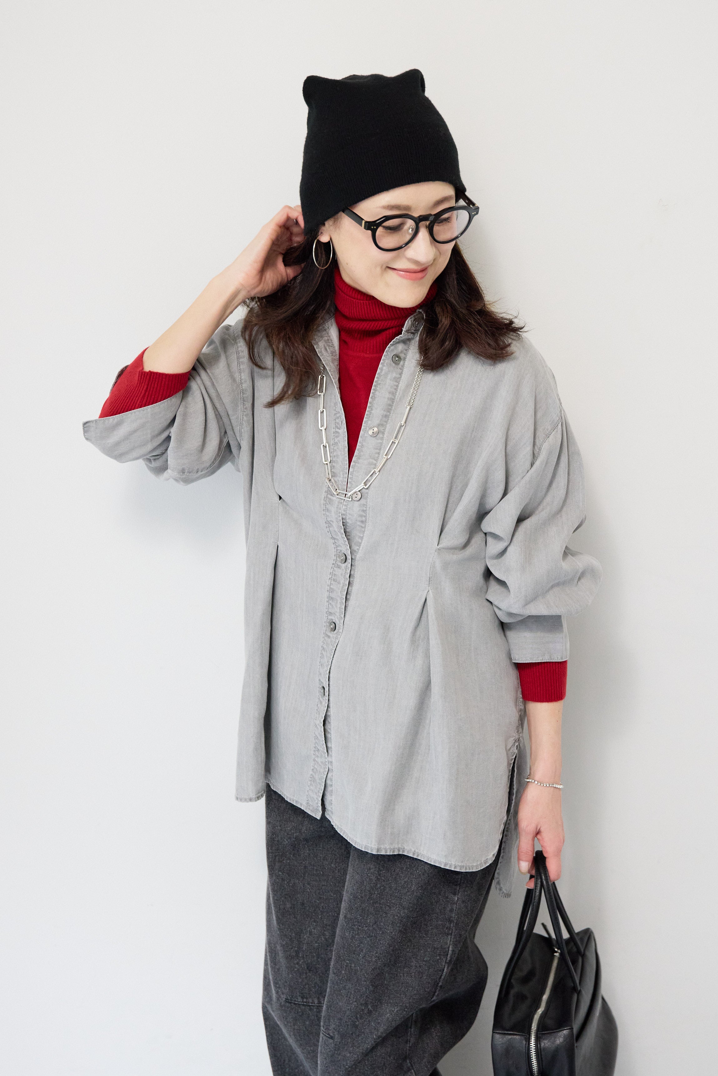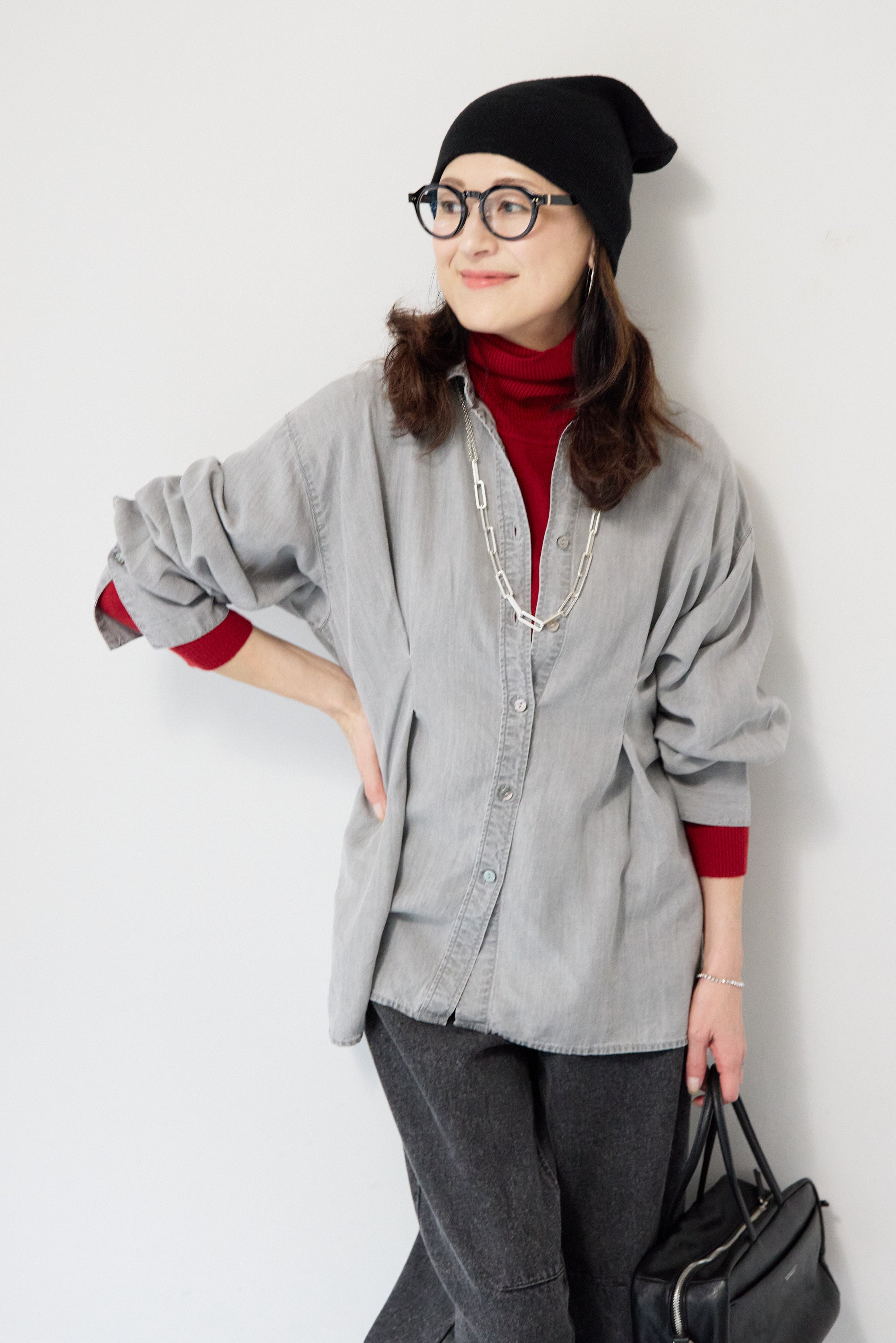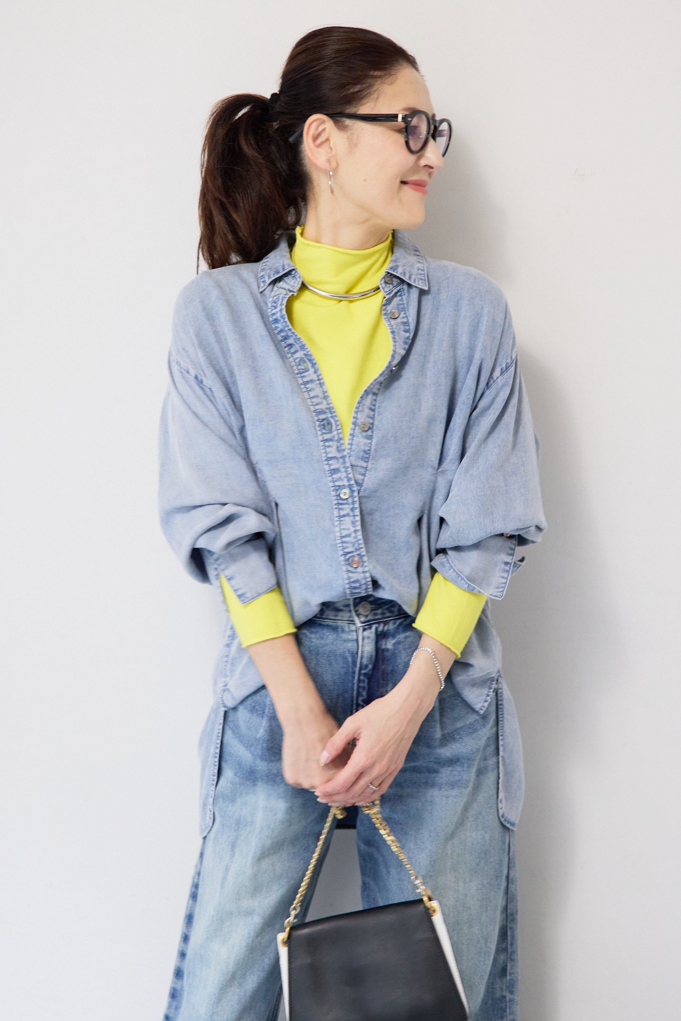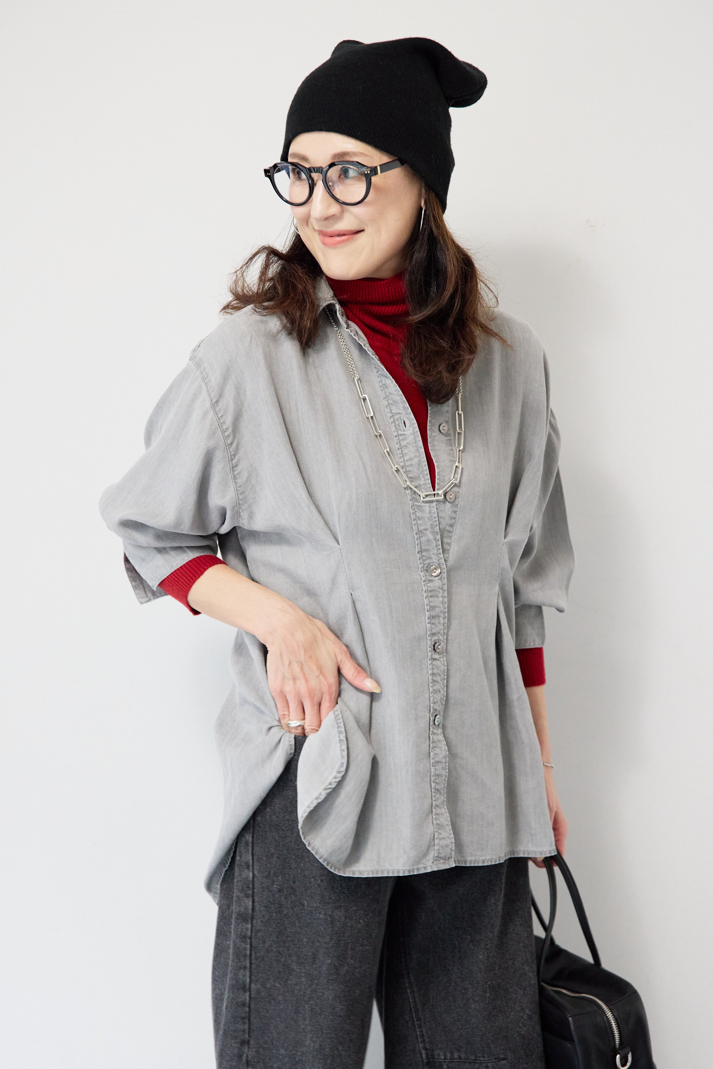 テンセルデニムタックシャツ