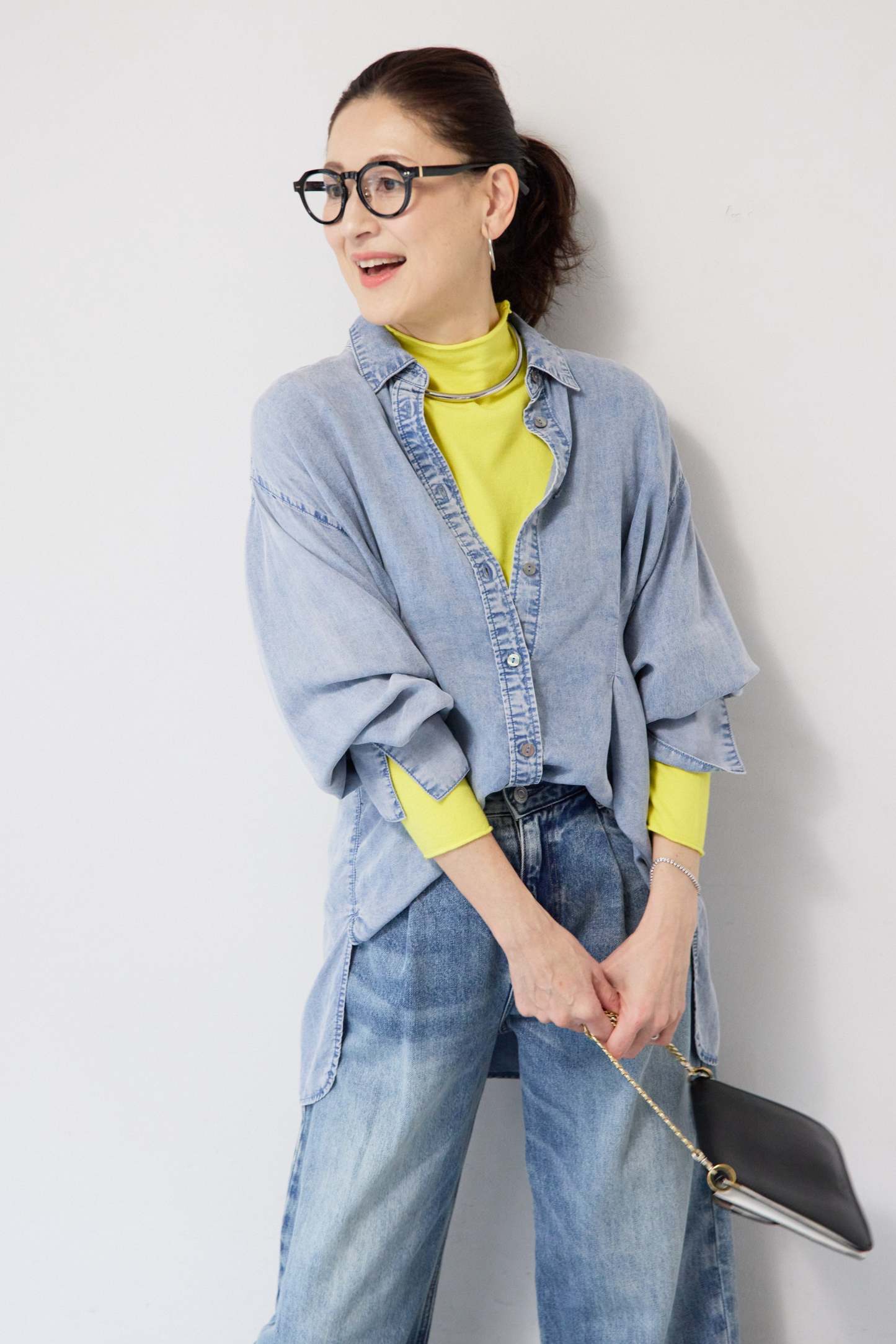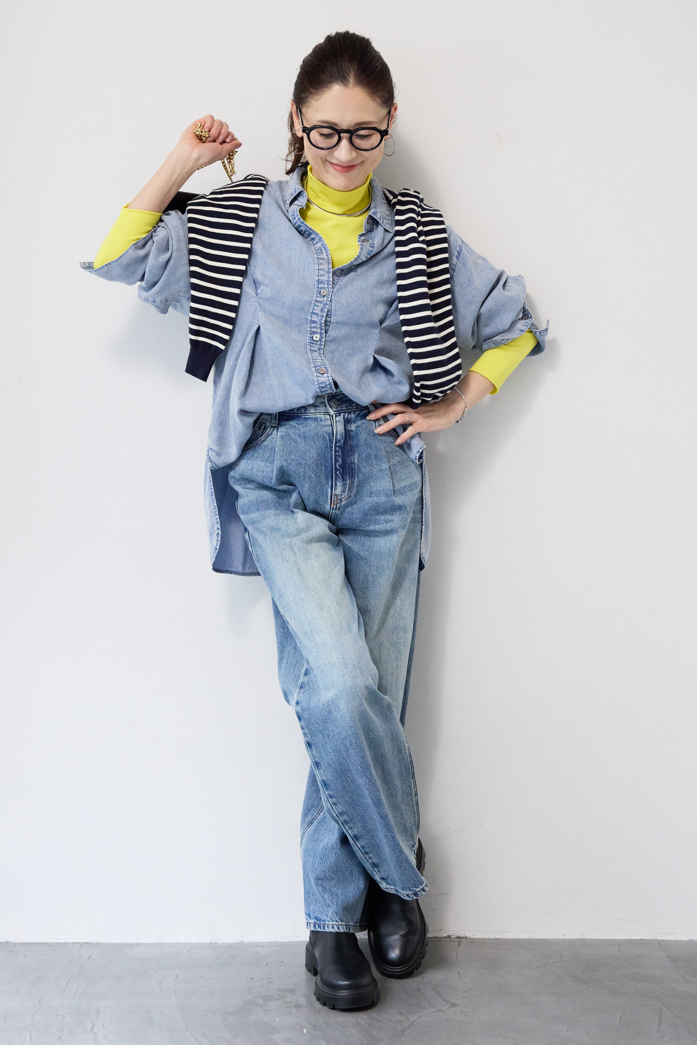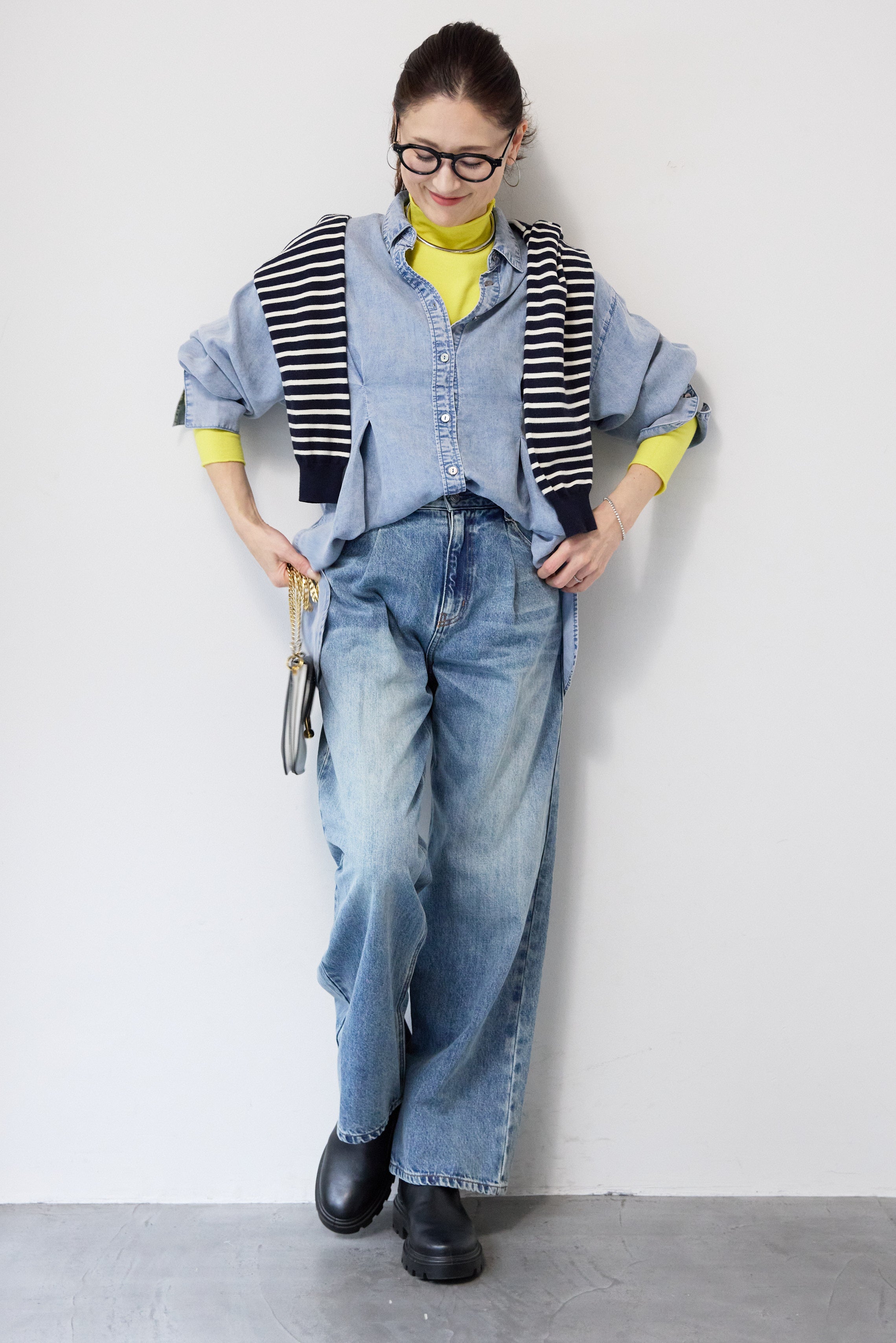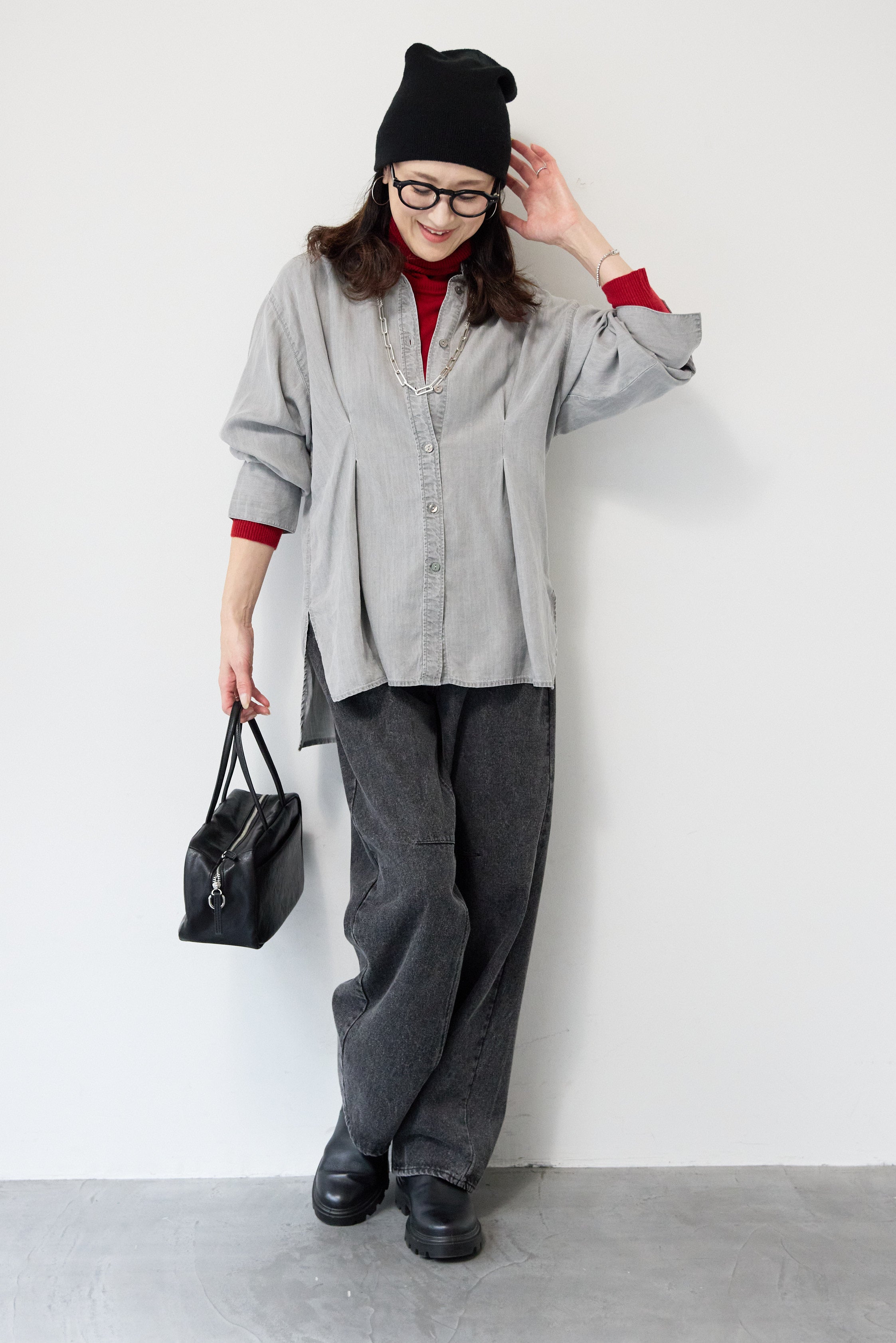 テンセルデニムタックシャツ